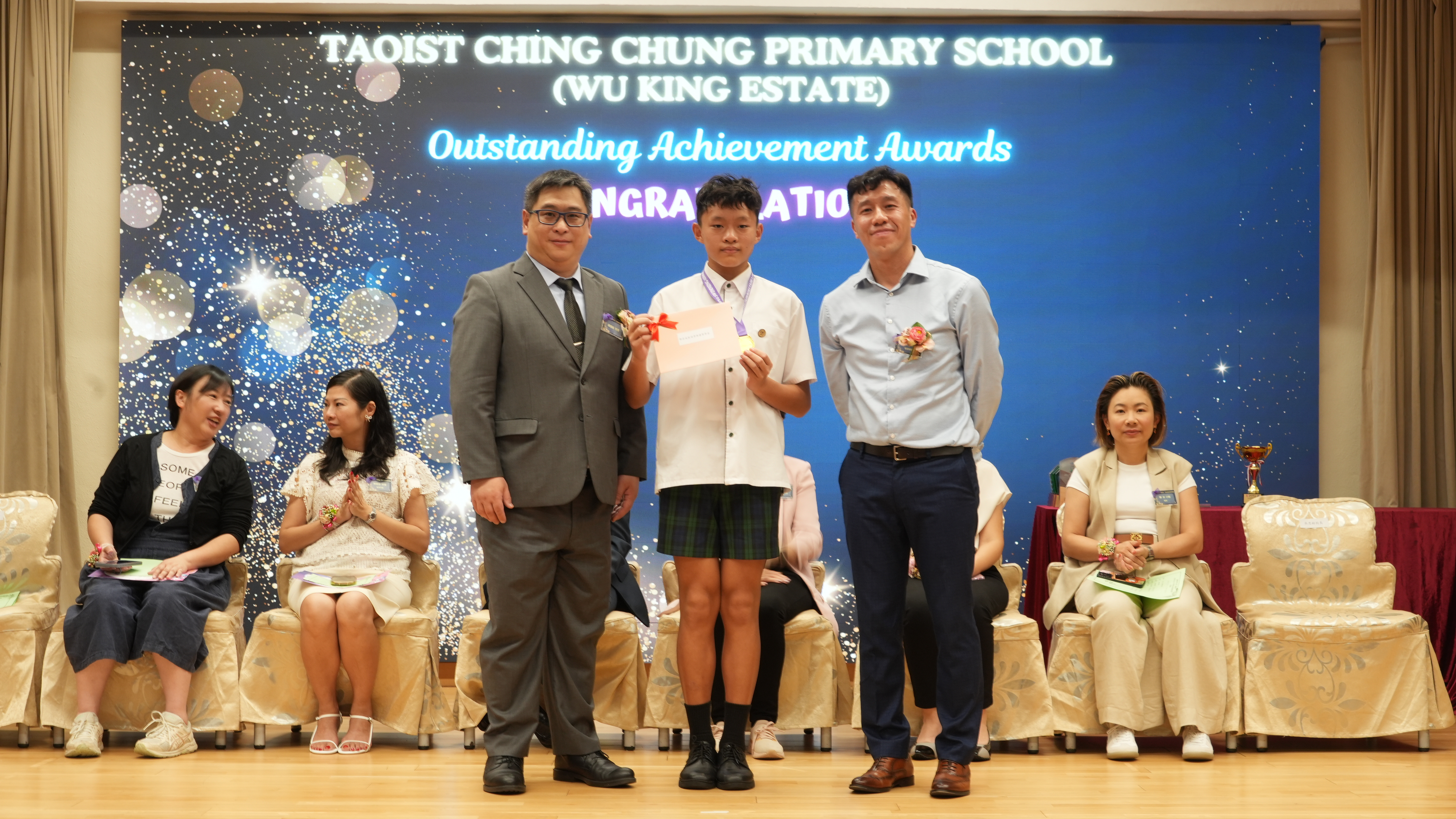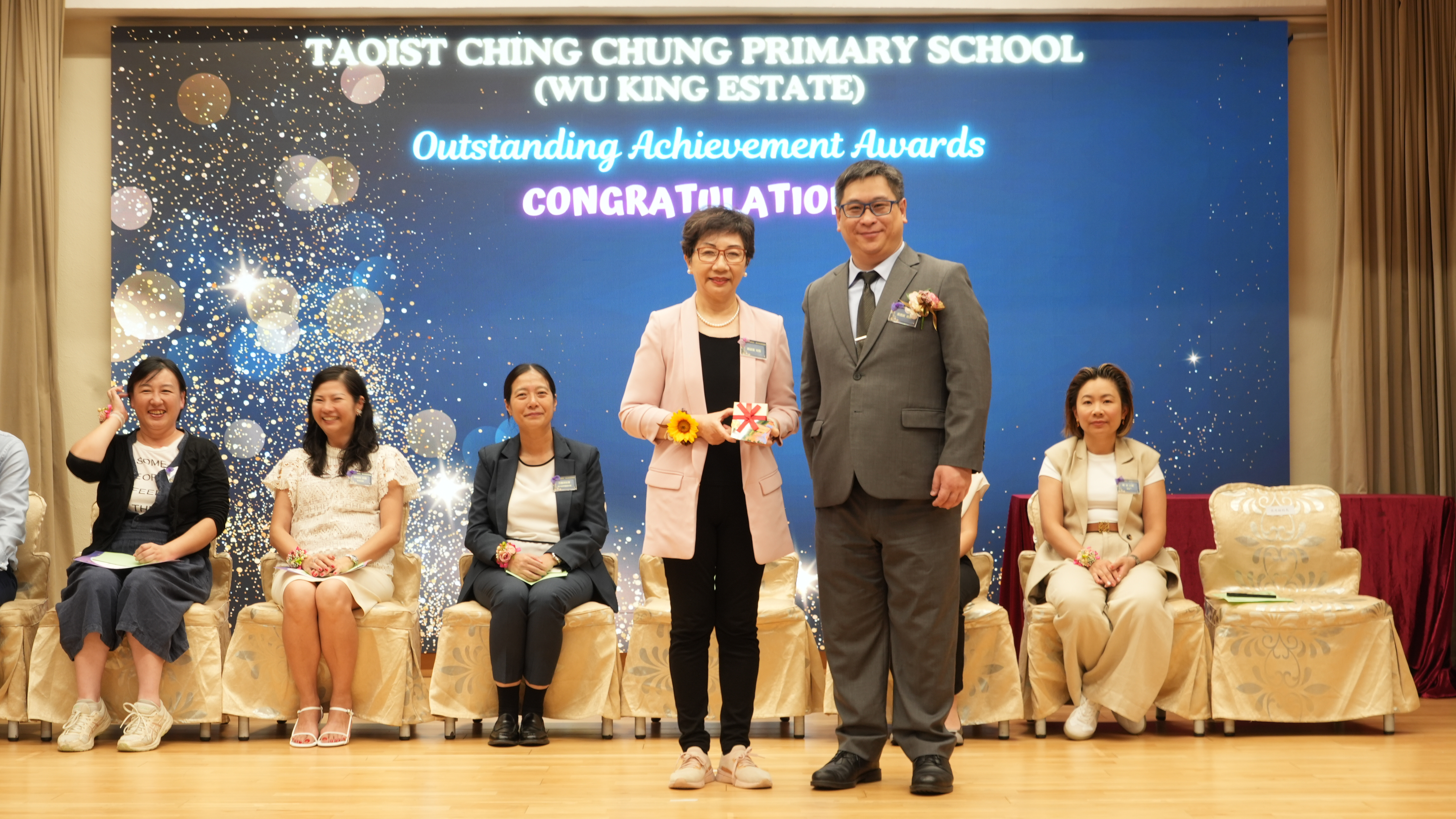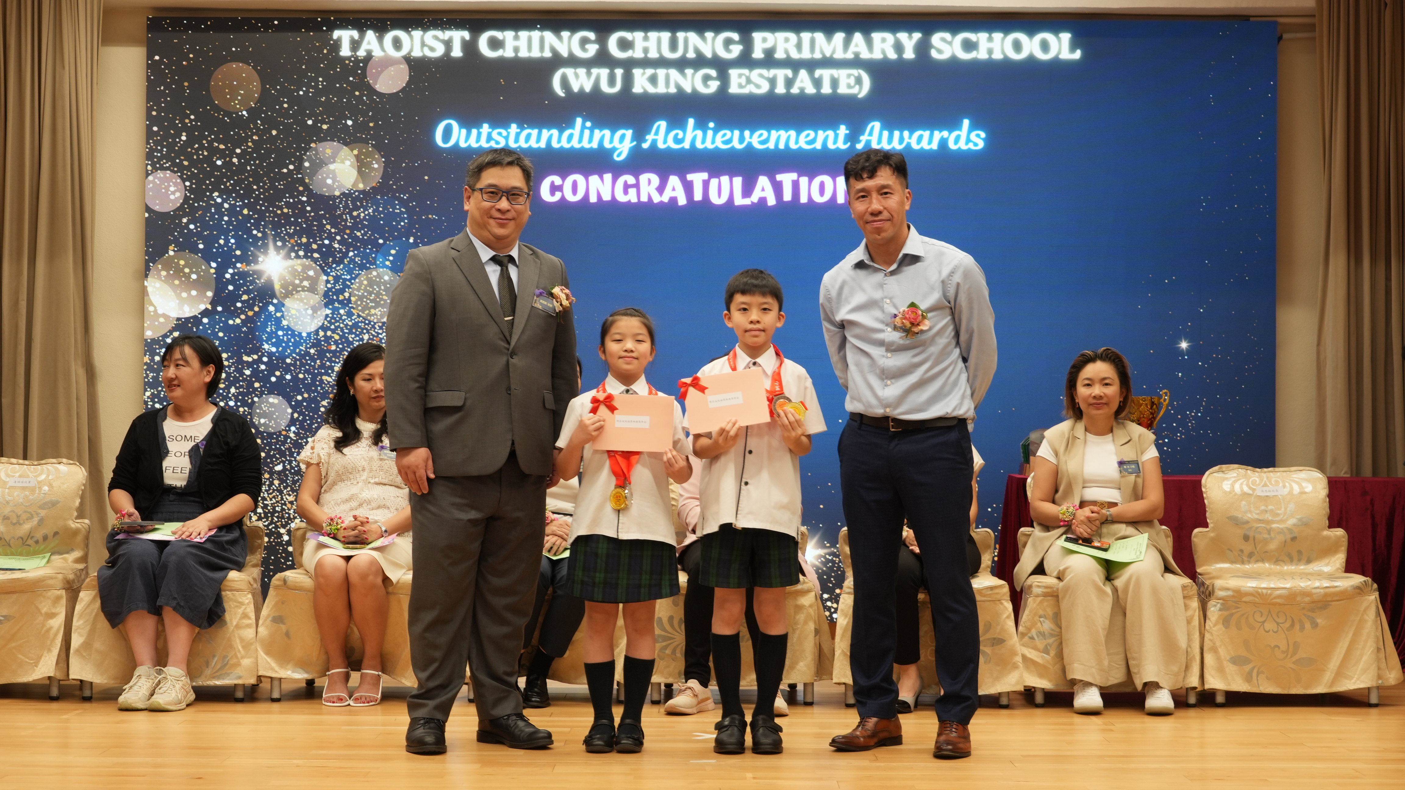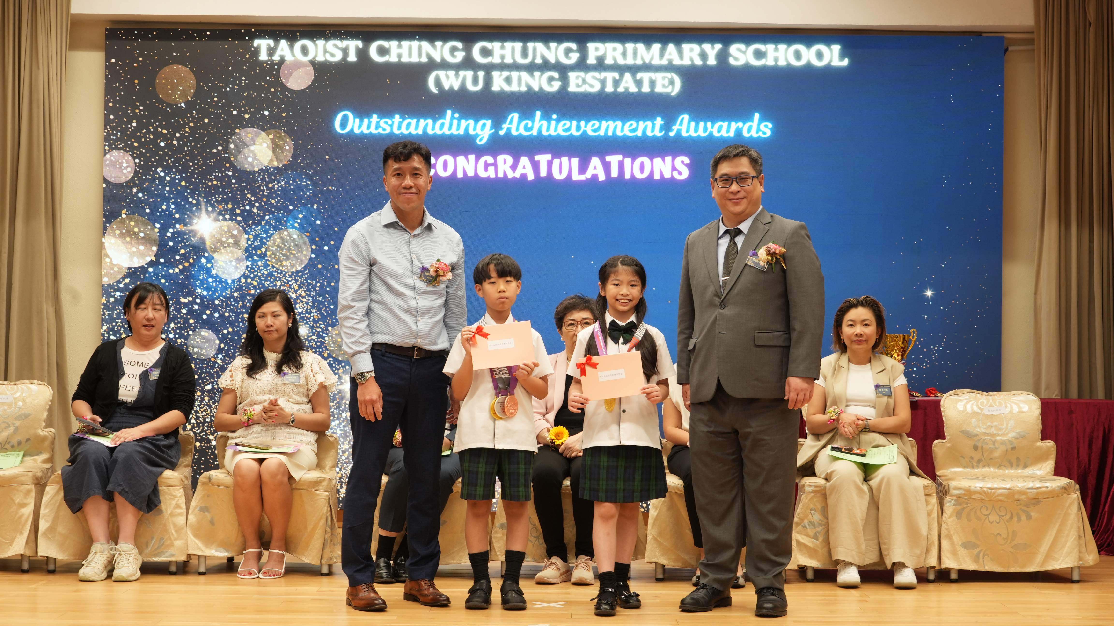 本年度傑出成就頒獎典禮,由校監趙淑儀女士、辦學團體校董趙卓敏女士、辦學團體校董方嘉琪女士、家長校董陳栩淨女士、校友校董凌紹球先生、家教會主席承曉燕女士、校友韓冰女士為頒獎嘉賓。是次典禮頒獎項目高達一百多項,再次祝賀獲獎的同學和家長,期望同學繼續努力,超越自我,再創高峰!