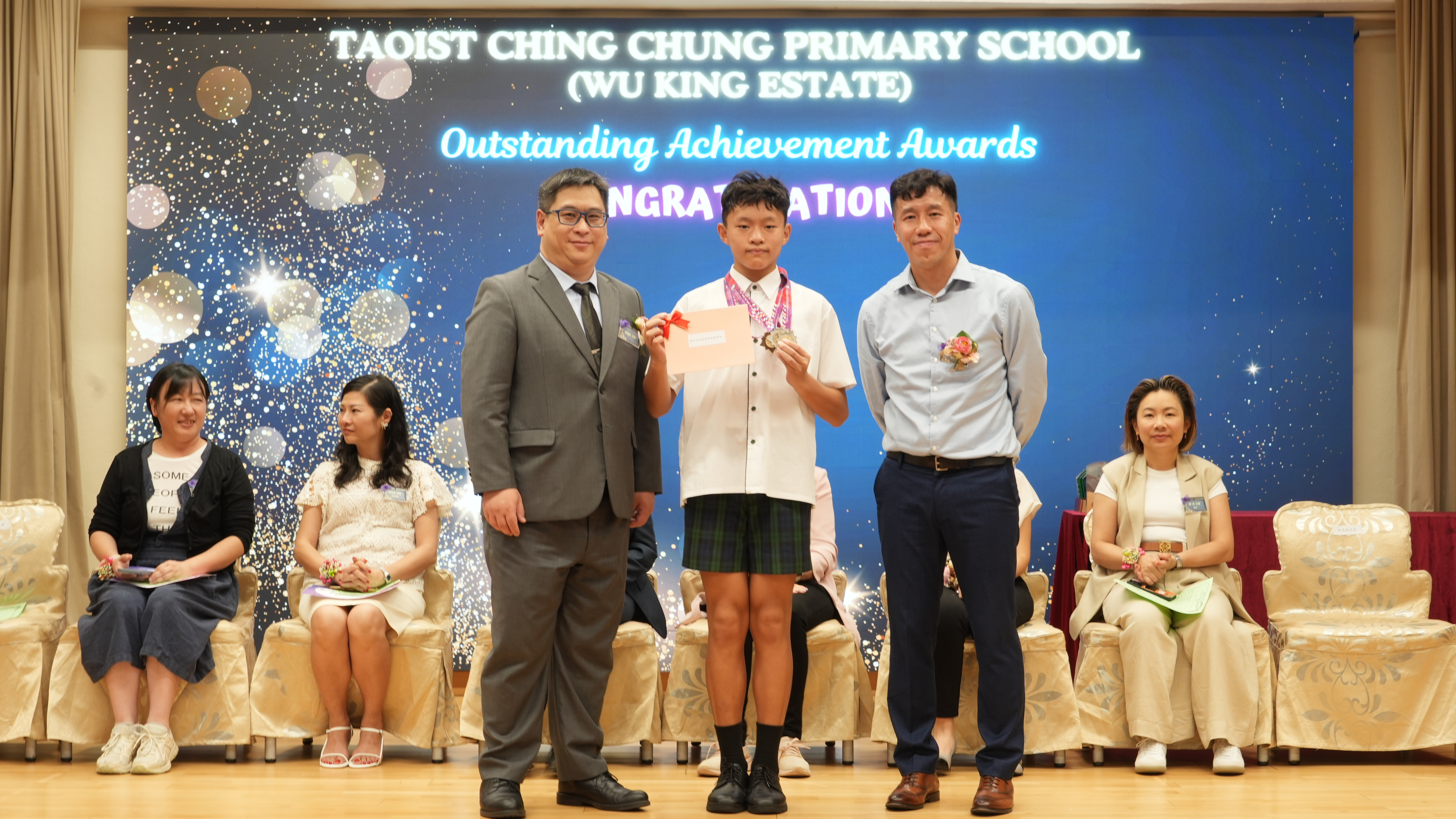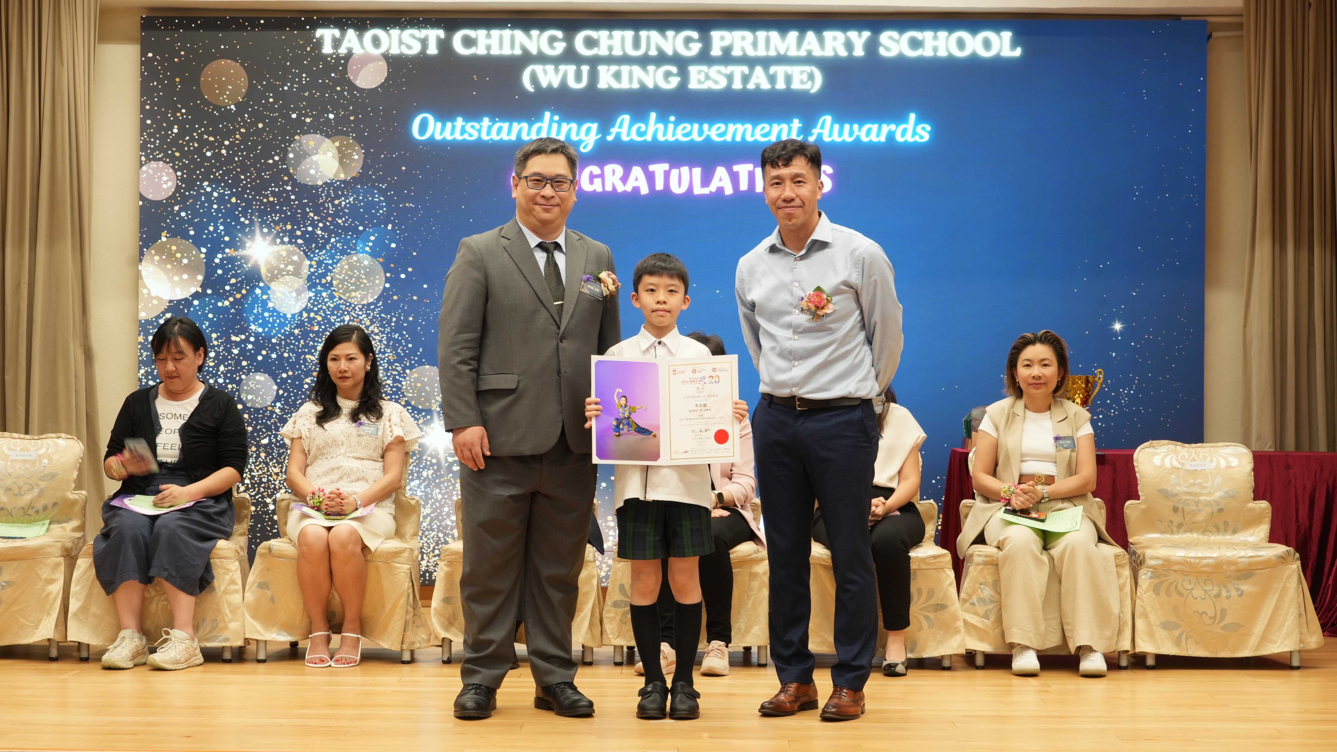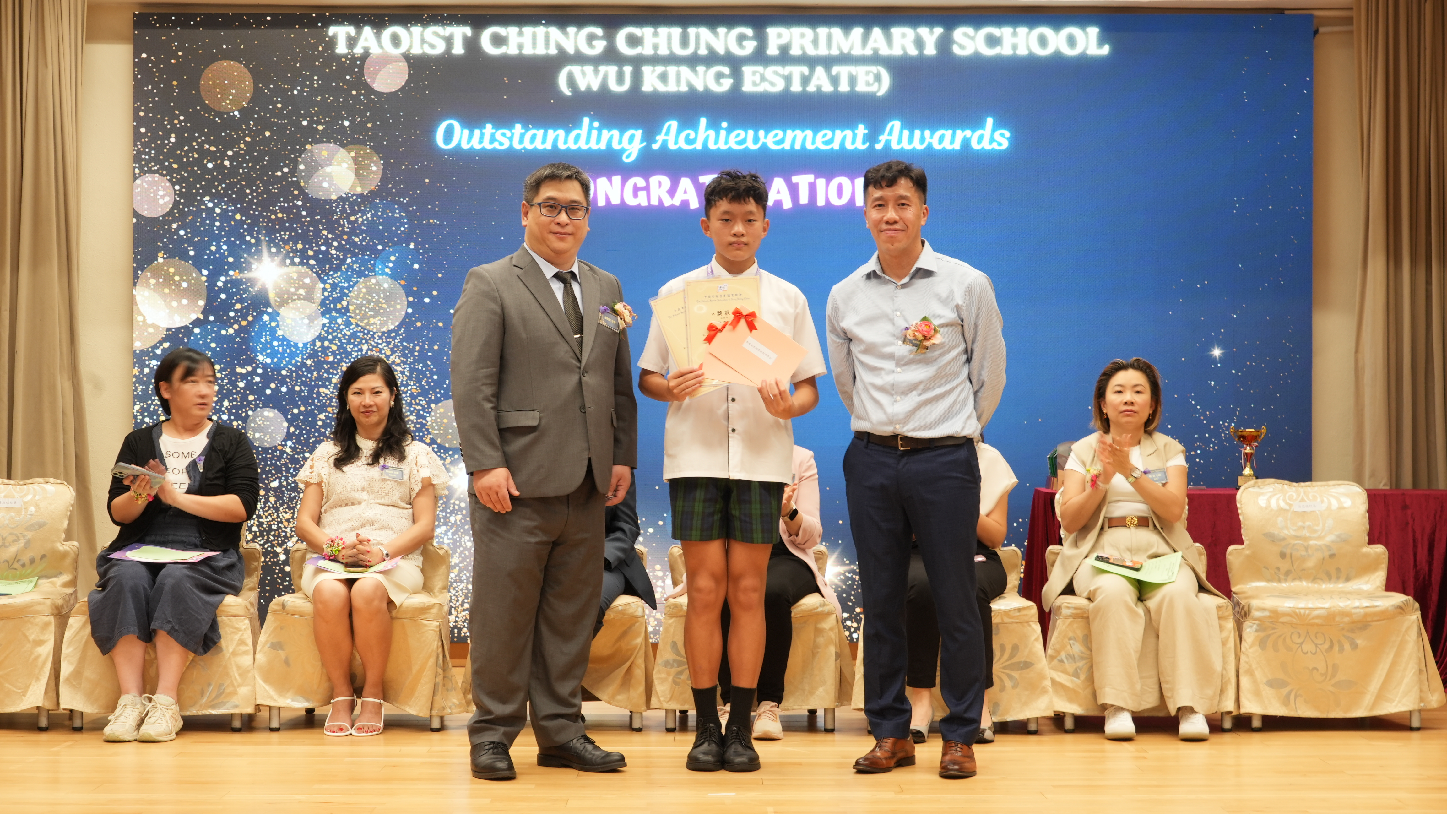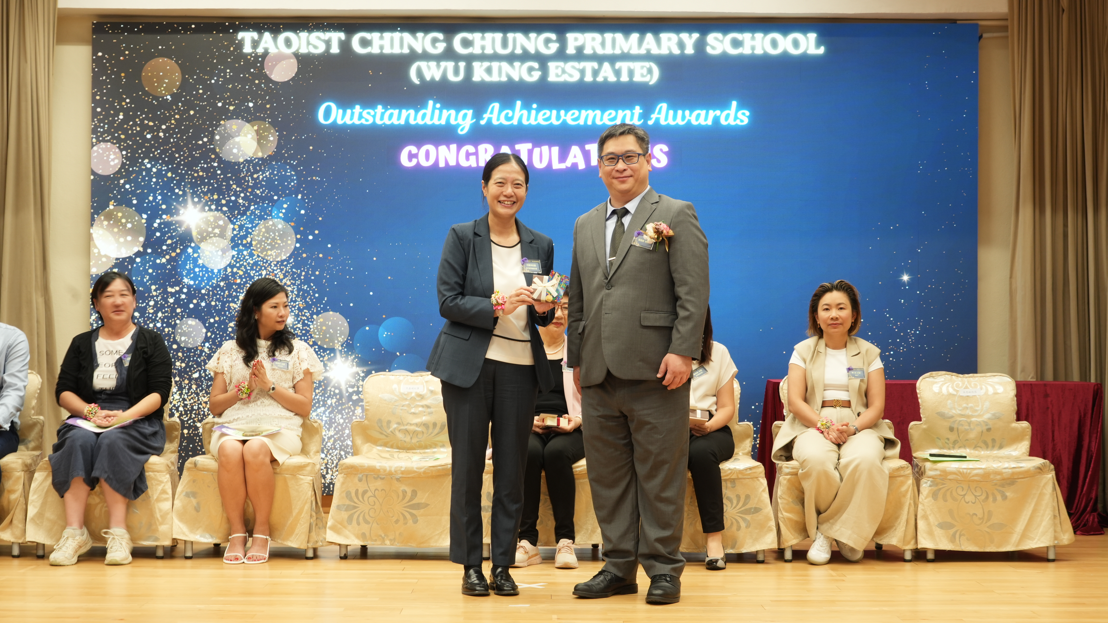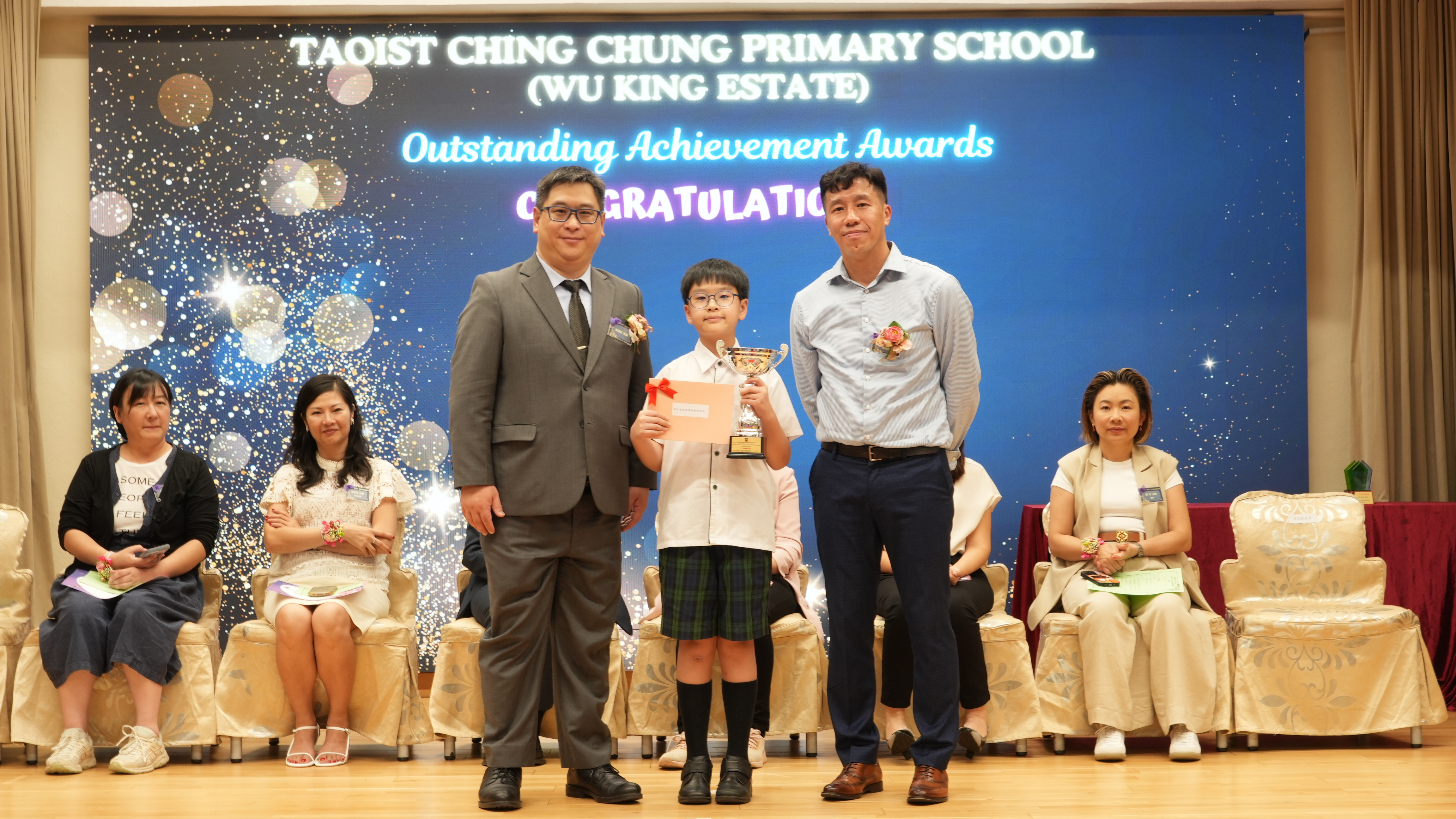 本年度傑出成就頒獎典禮,由校監趙淑儀女士、辦學團體校董趙卓敏女士、辦學團體校董方嘉琪女士、家長校董陳栩淨女士、校友校董凌紹球先生、家教會主席承曉燕女士、校友韓冰女士為頒獎嘉賓。是次典禮頒獎項目高達一百多項,再次祝賀獲獎的同學和家長,期望同學繼續努力,超越自我,再創高峰!