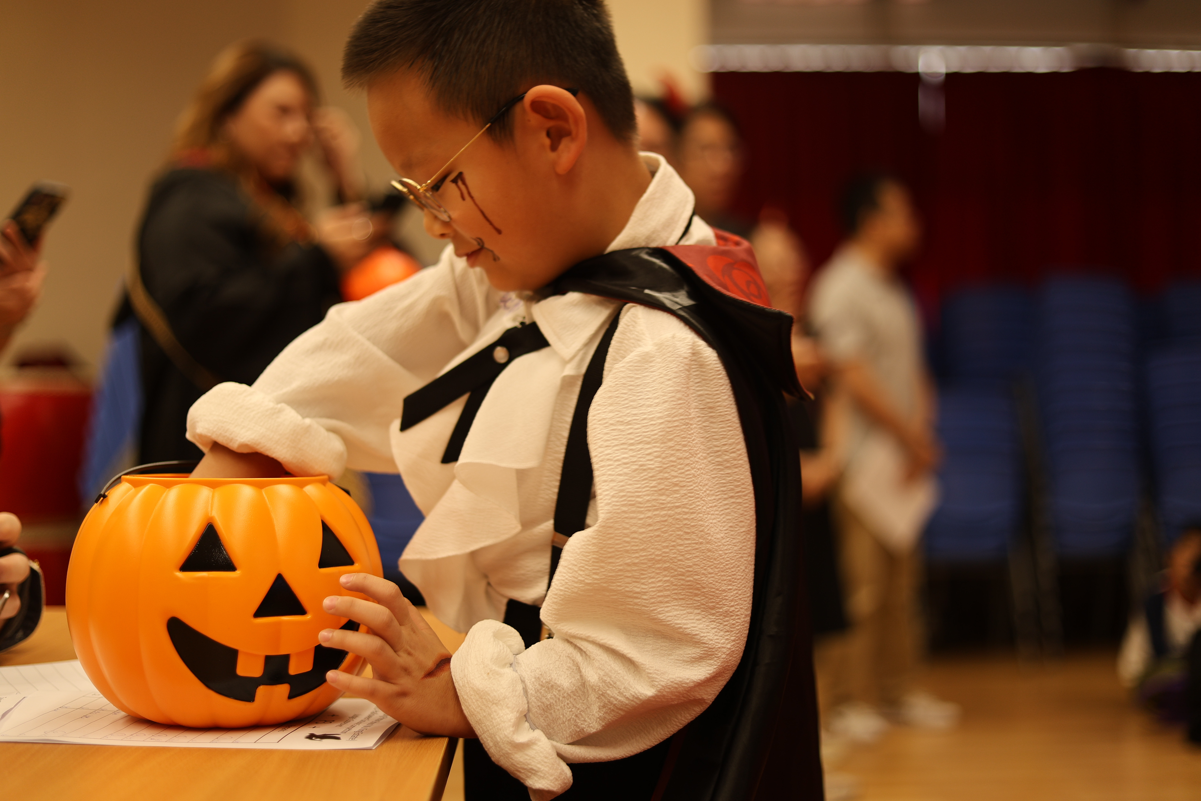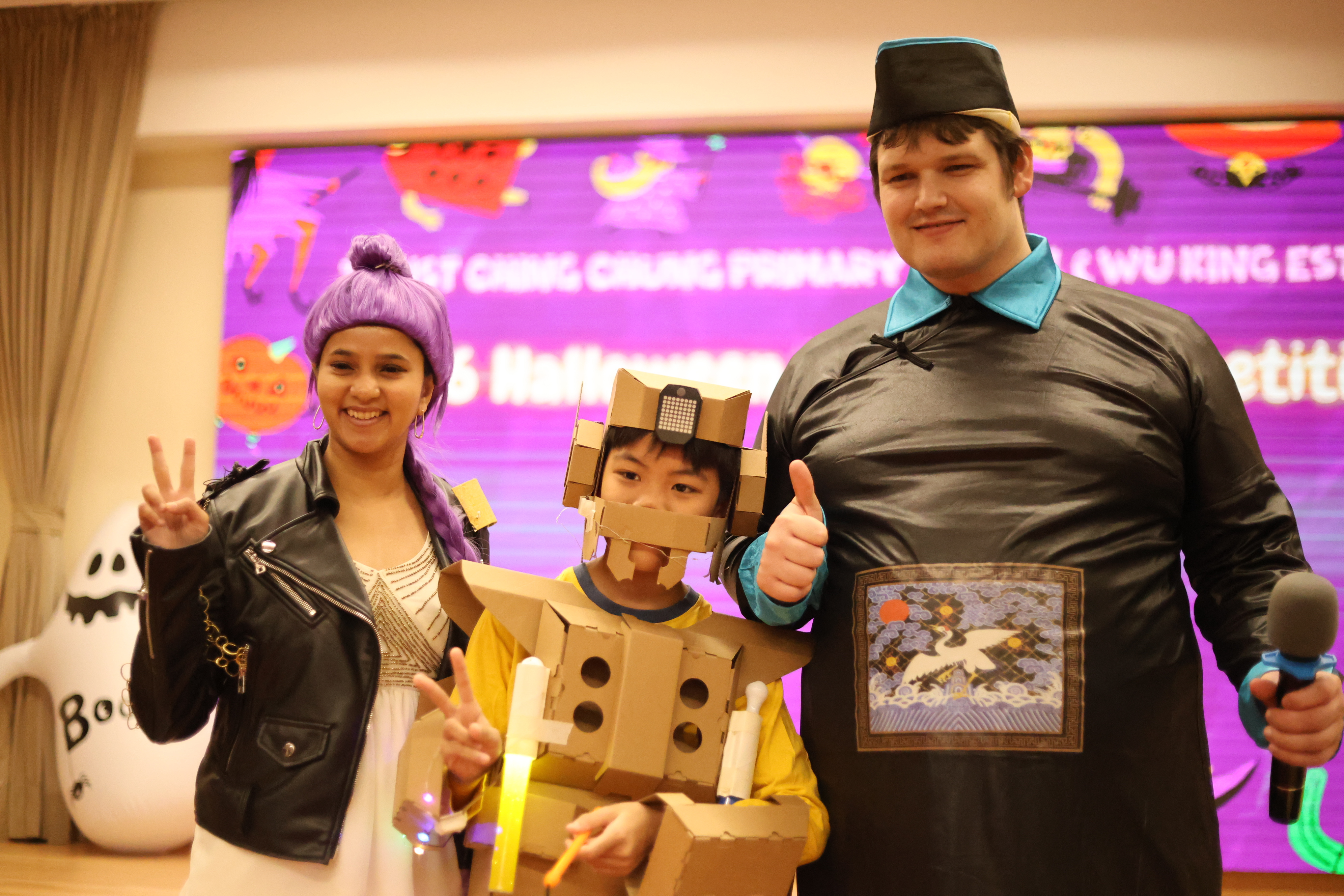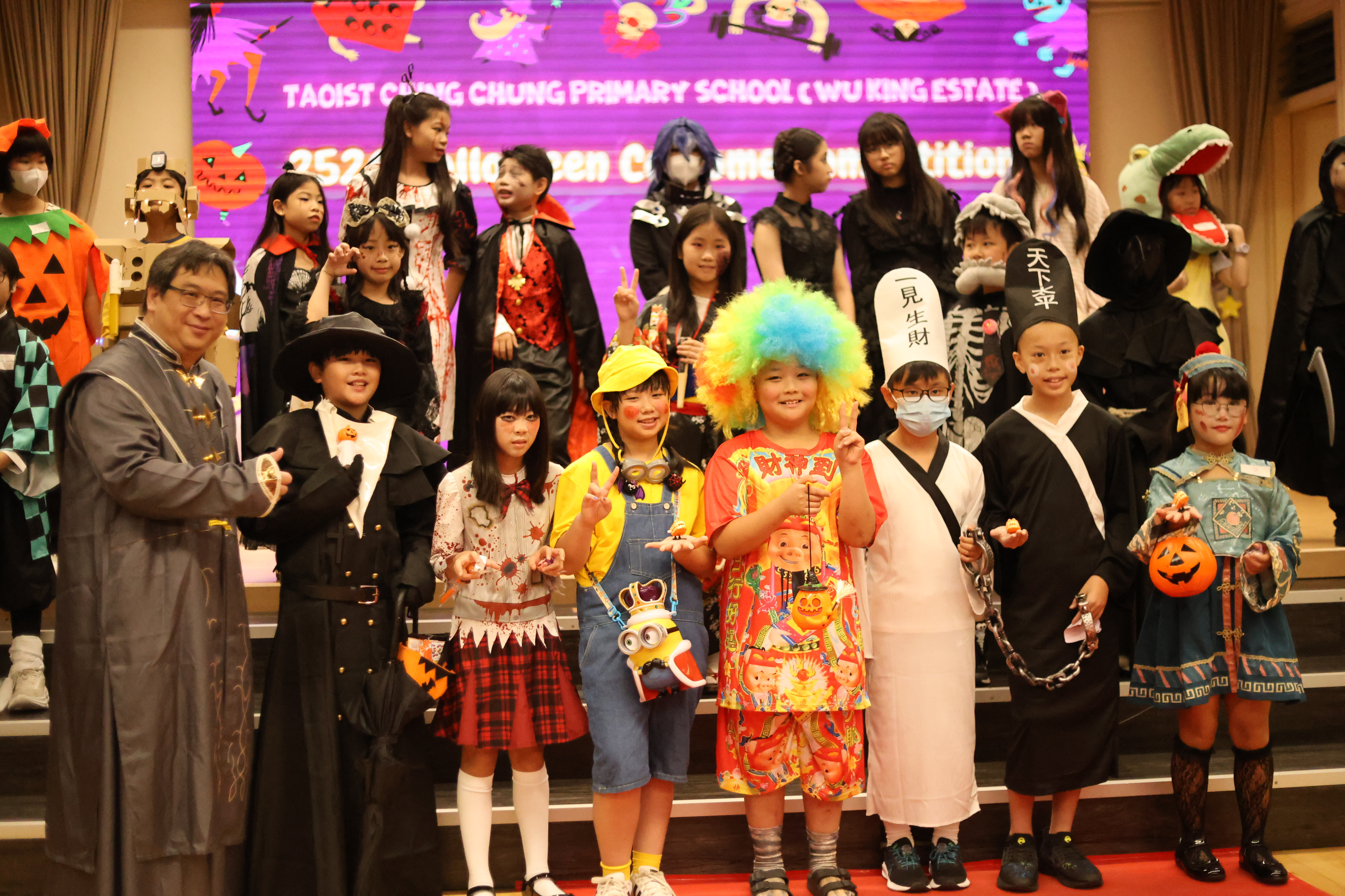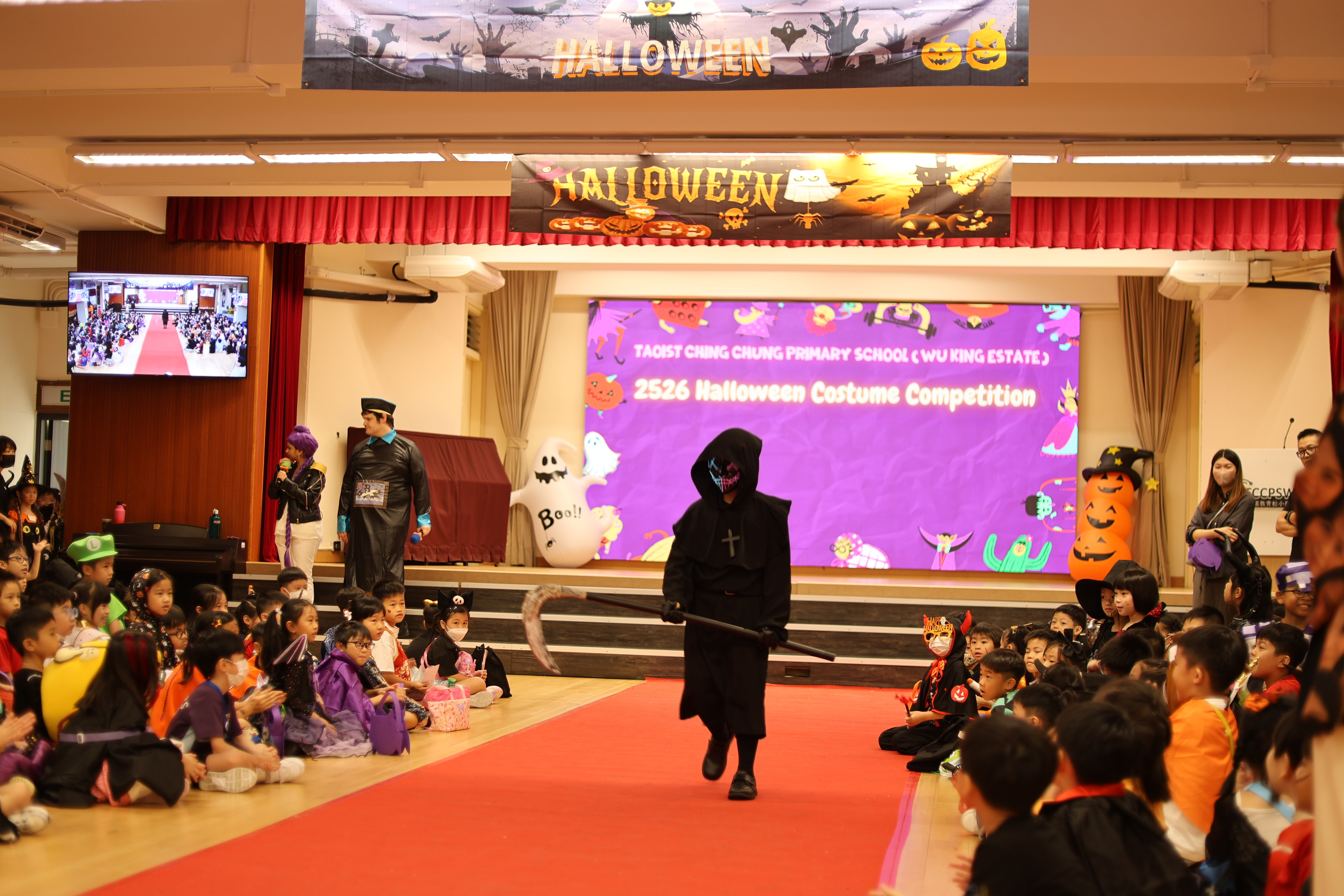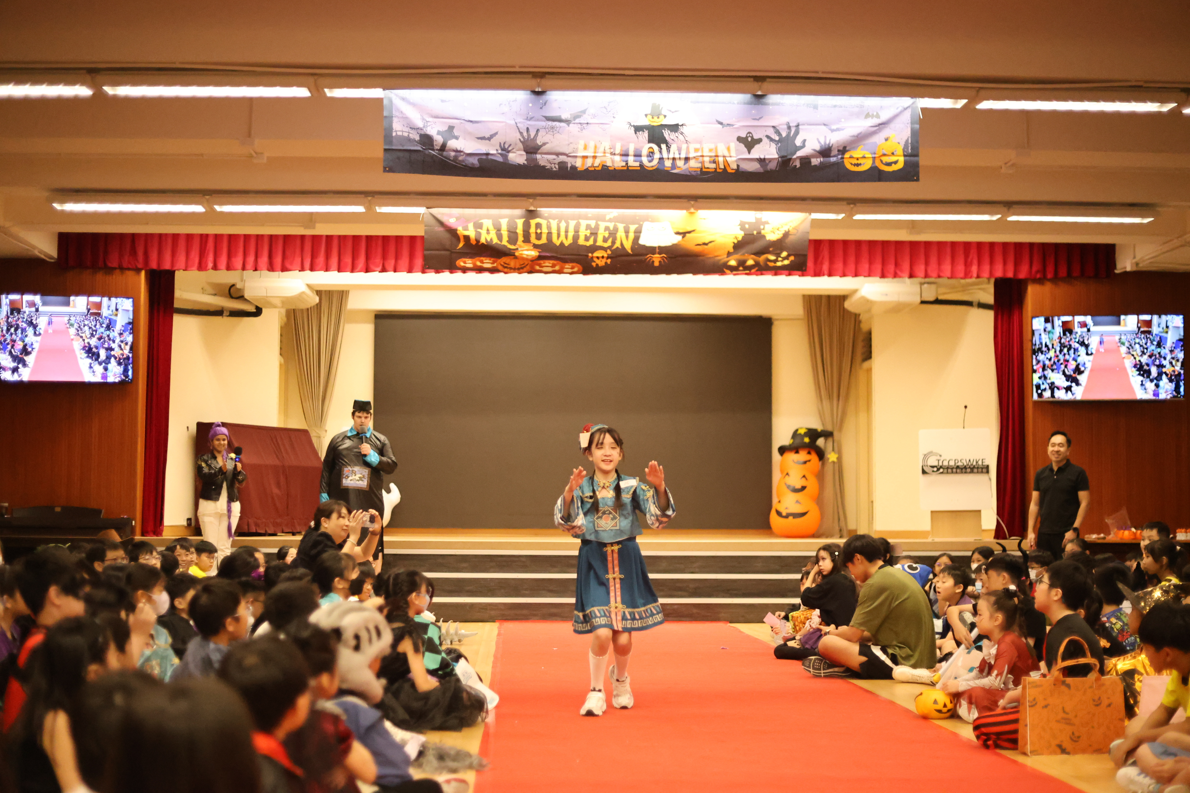 Our Halloween Fashion Show showcased a mix of scary and entertaining characters, from the Chinese god of wealth to mischievous witches. Each student brought their own shine to the red carpet, turning the fashion show into a celebration of creativity and fun!