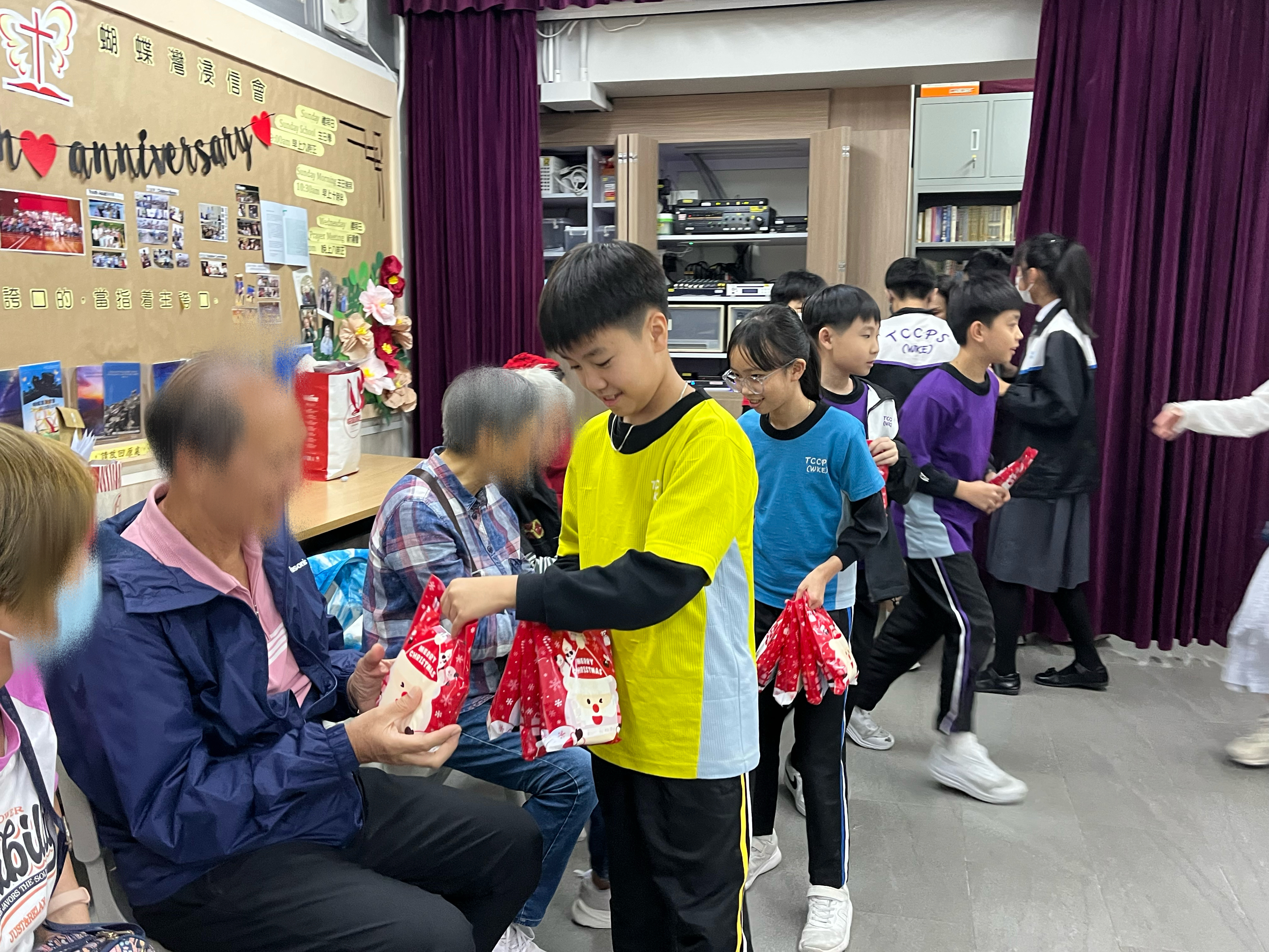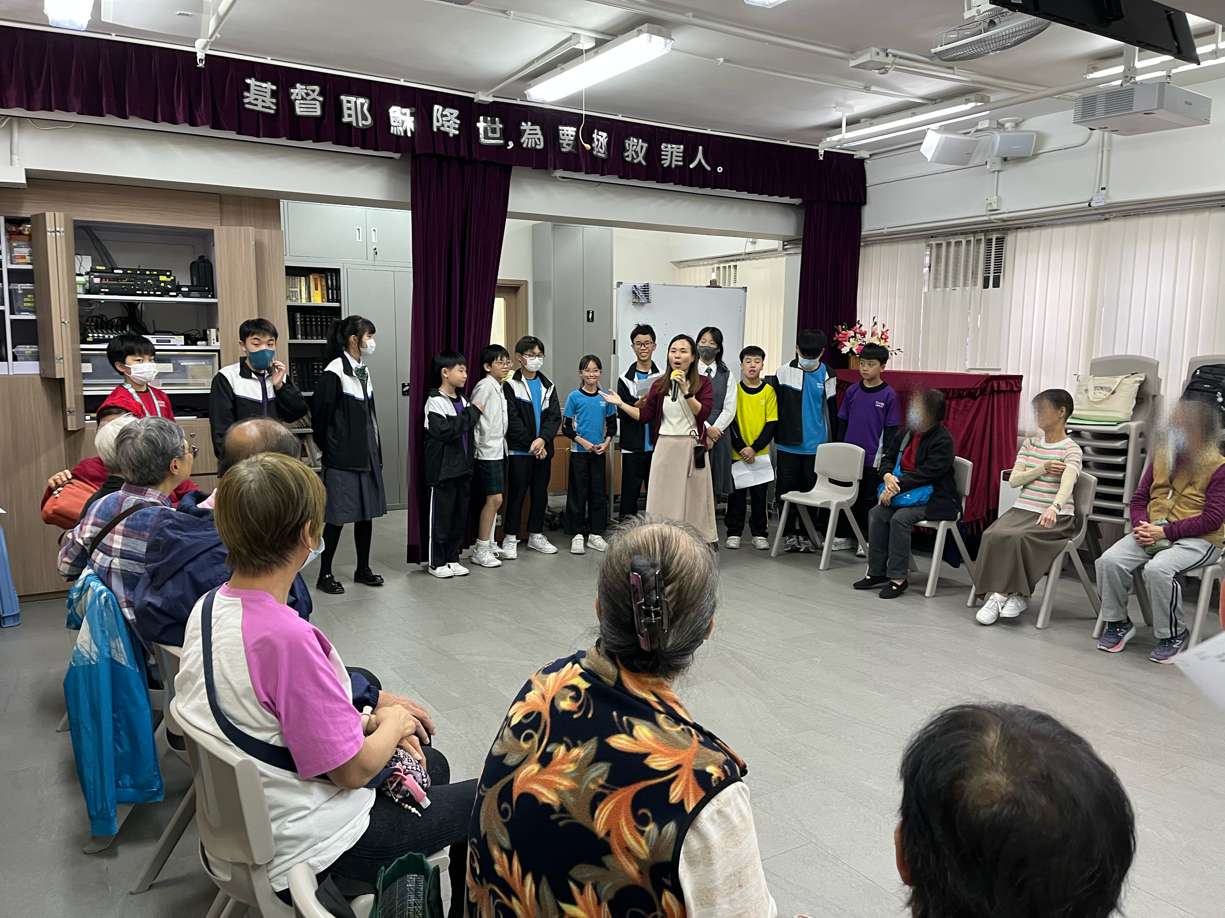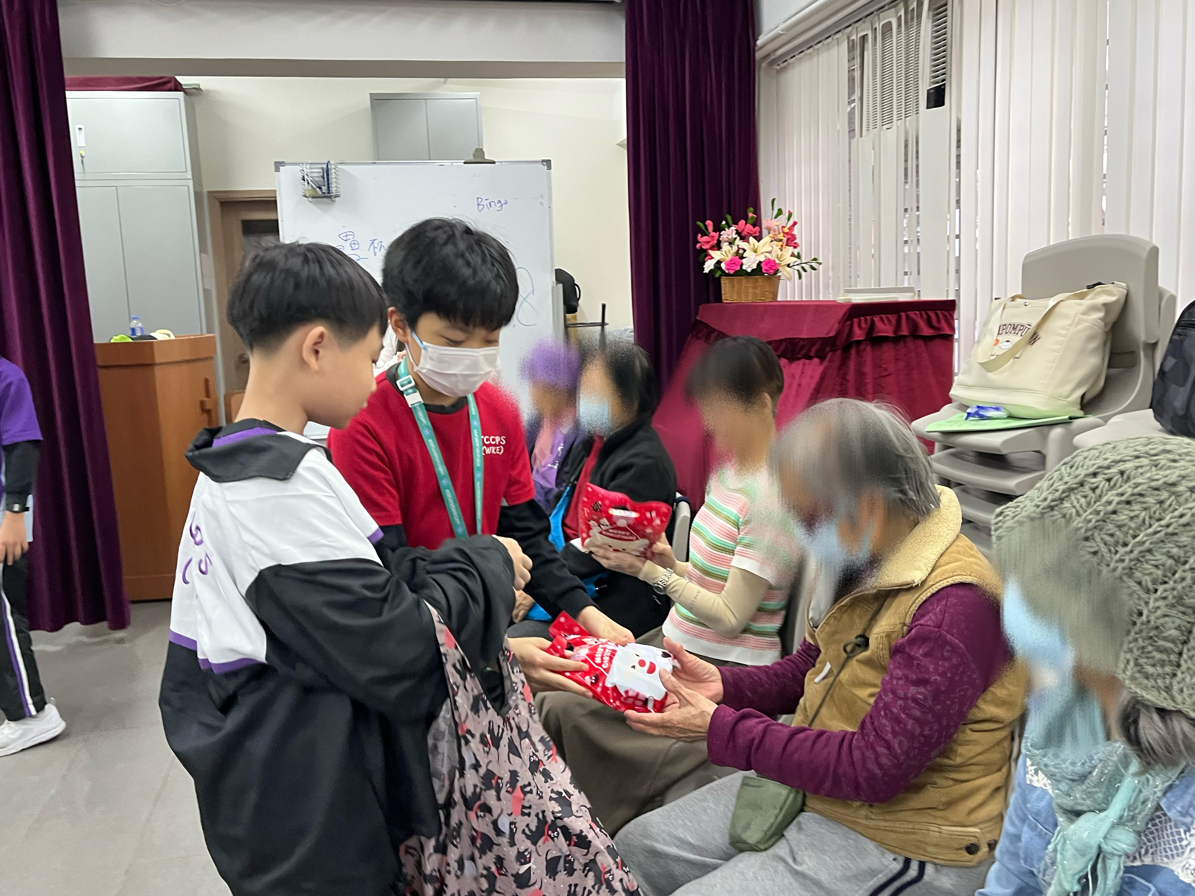 六年級學生前往蝴蝶灣浸信會長者中心與公公婆婆玩遊戲及作出表演,為公公婆婆帶來不少的歡樂;另外,同學在這次的探訪活動中收到公公婆婆親手編織的頸巾,感覺份外溫暖。