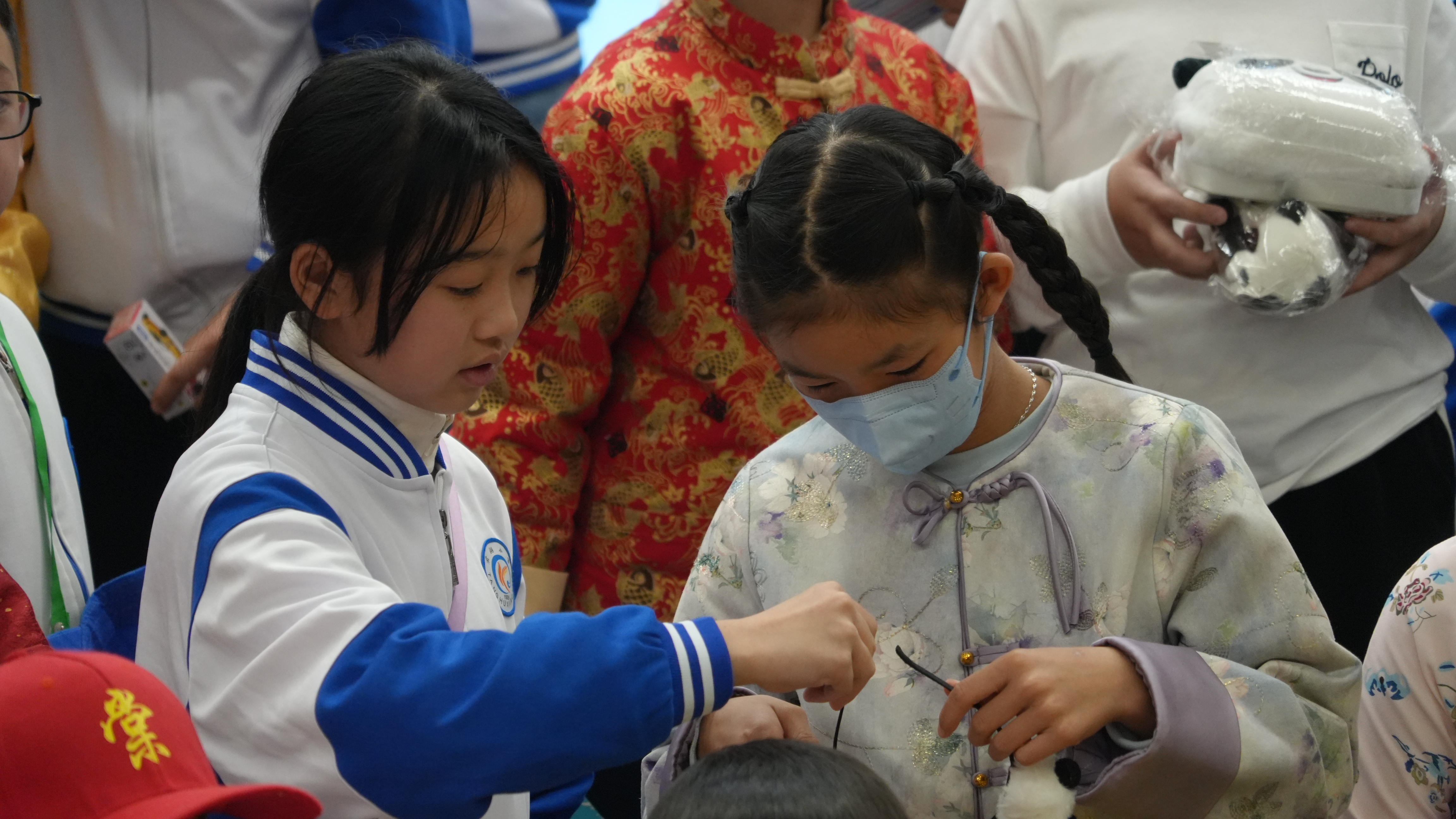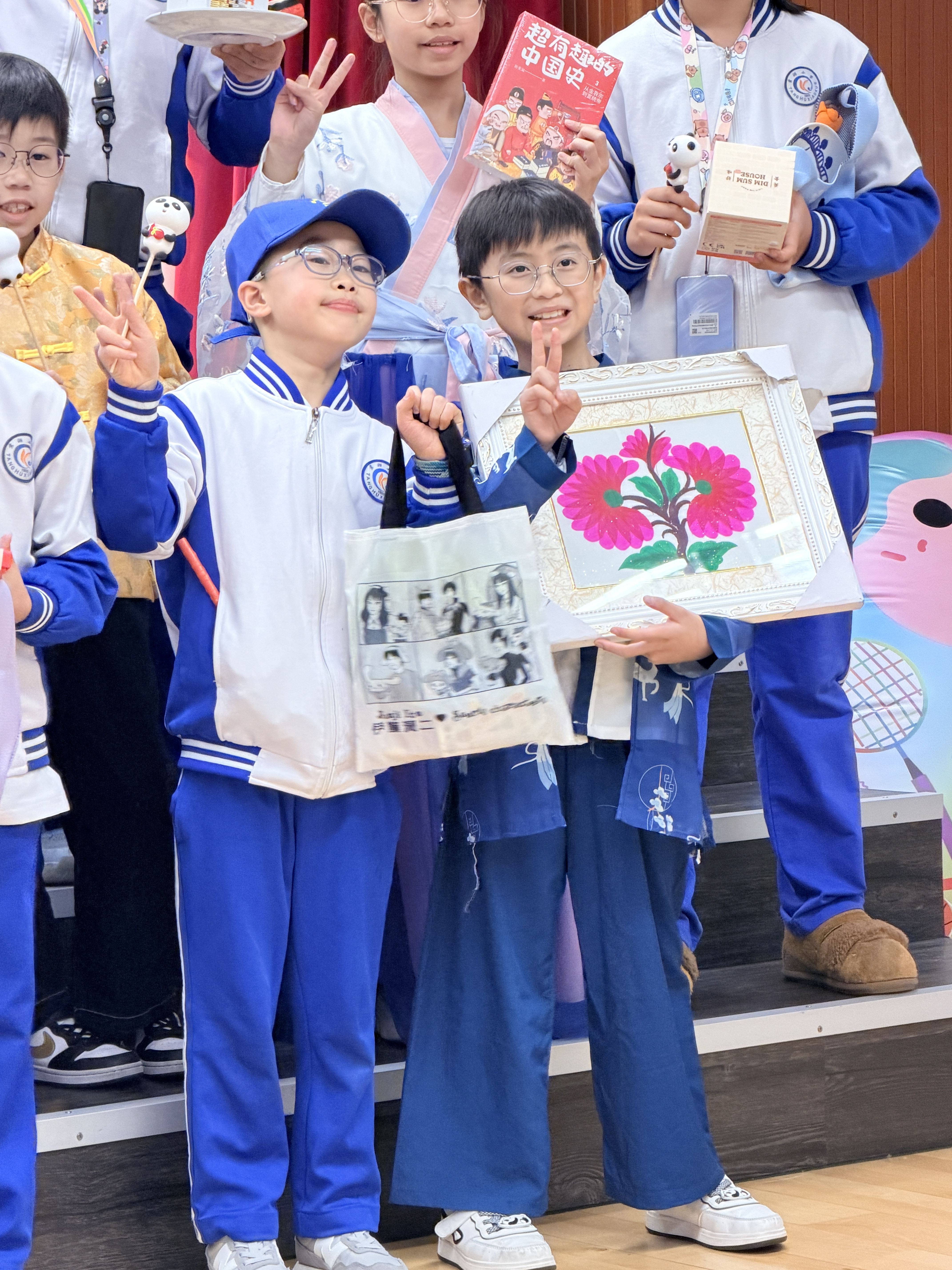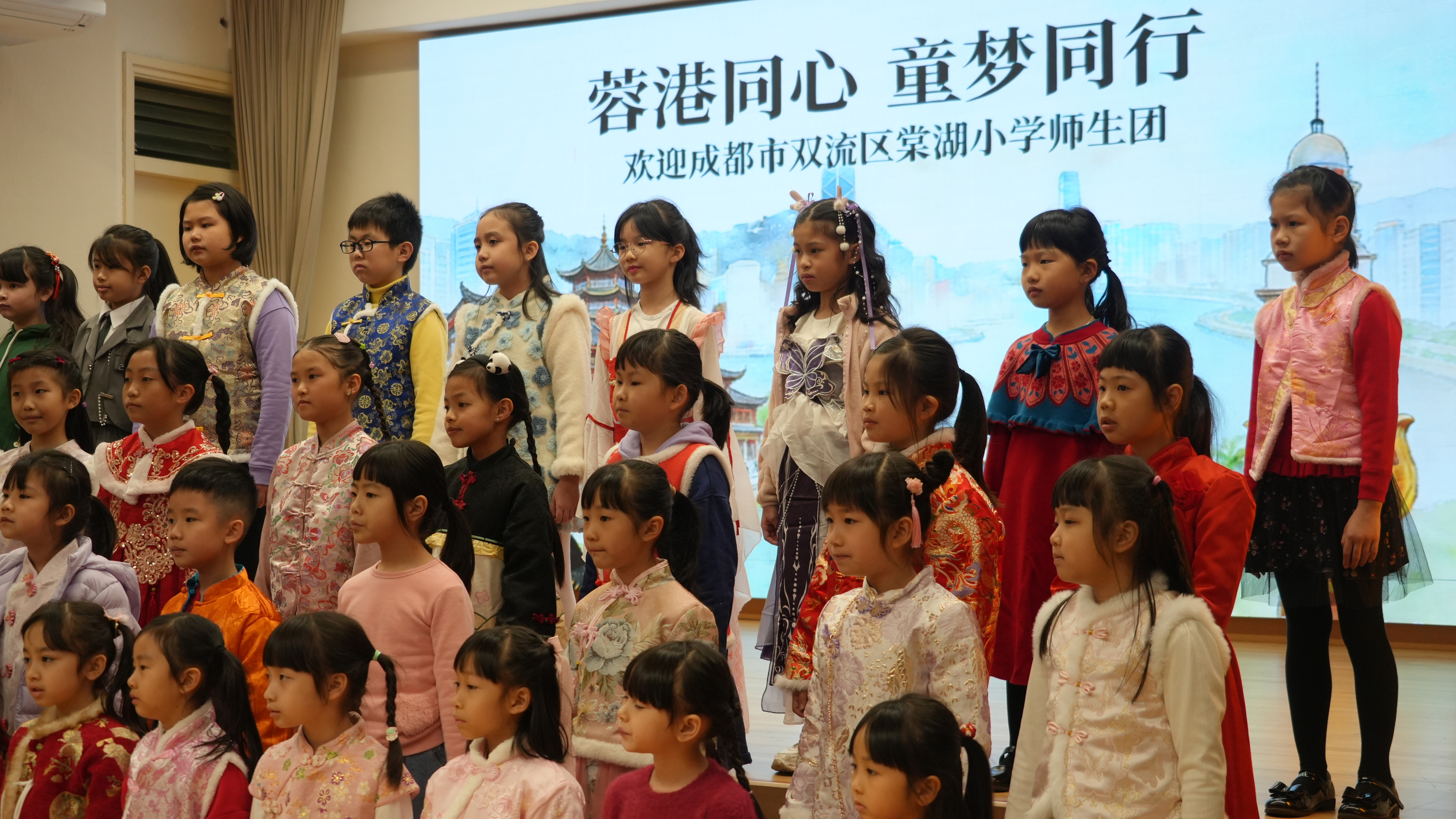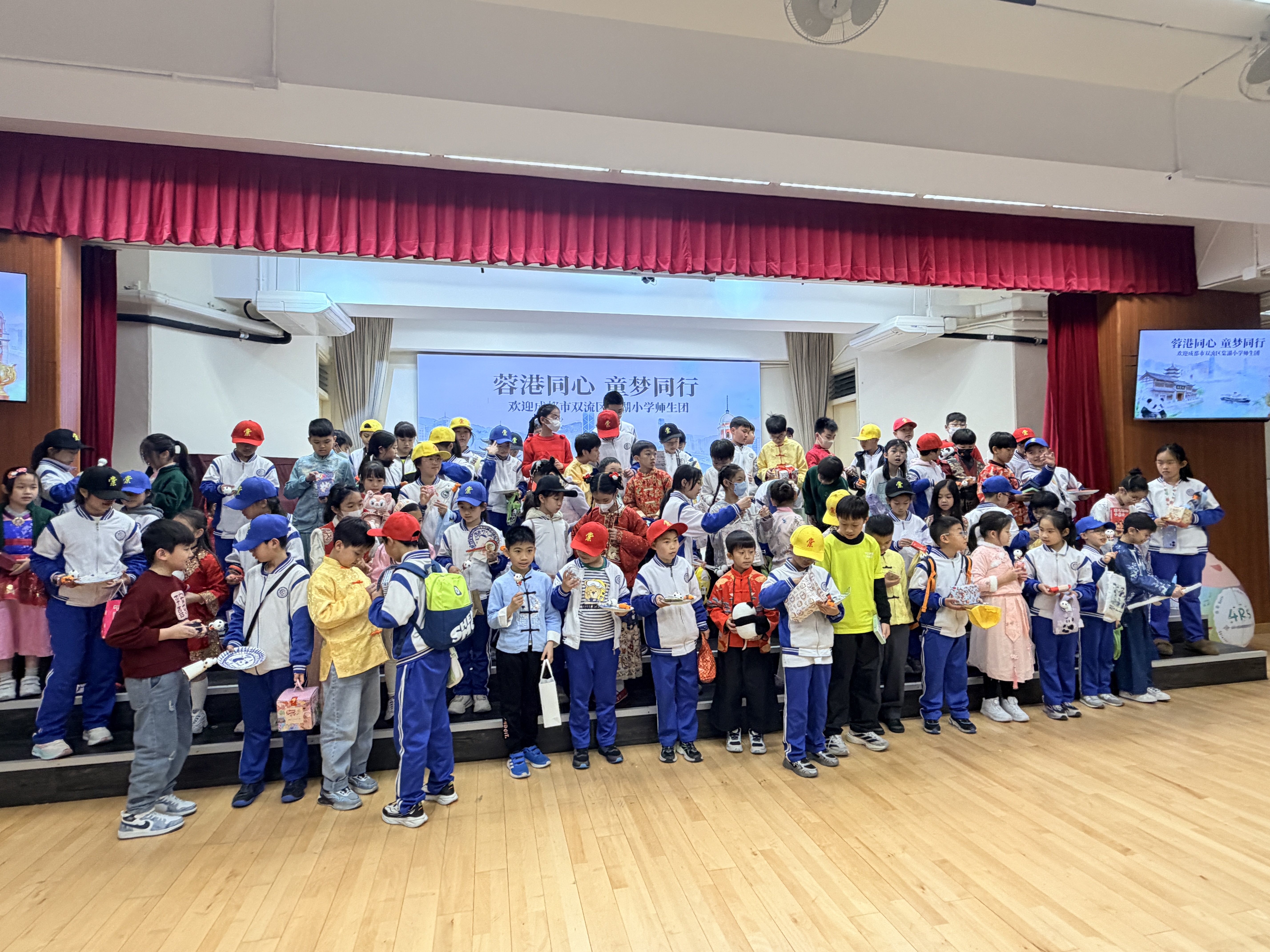 成都巿雙流區棠湖小學師生團自前年STEAM WEEK活動後,於本學年2月3日再度蒞臨本校作親善探訪,並參與「中華文化日」活動。本校40位學生大使與棠小同學進行配對,化身「小導遊」帶領友校夥伴投入各項文化體驗。活動當日精彩紛呈,歡迎儀式既有合唱團與中國鼓表演,更邀得香港武術運動員莫宛螢小姐親臨獻技,並親自教授同學武術招式。兩校學生隨後一同參與攤位遊戲及中華手工藝工作坊,在歡笑中領略傳統文化精髓。臨別前,同學們互換禮物留念,象徵兩地姊妹學校情誼永固。
