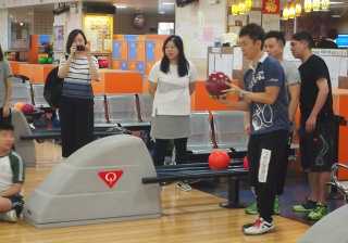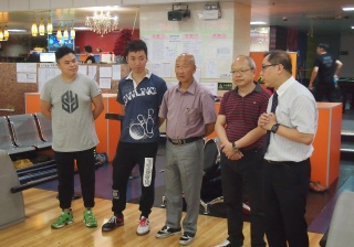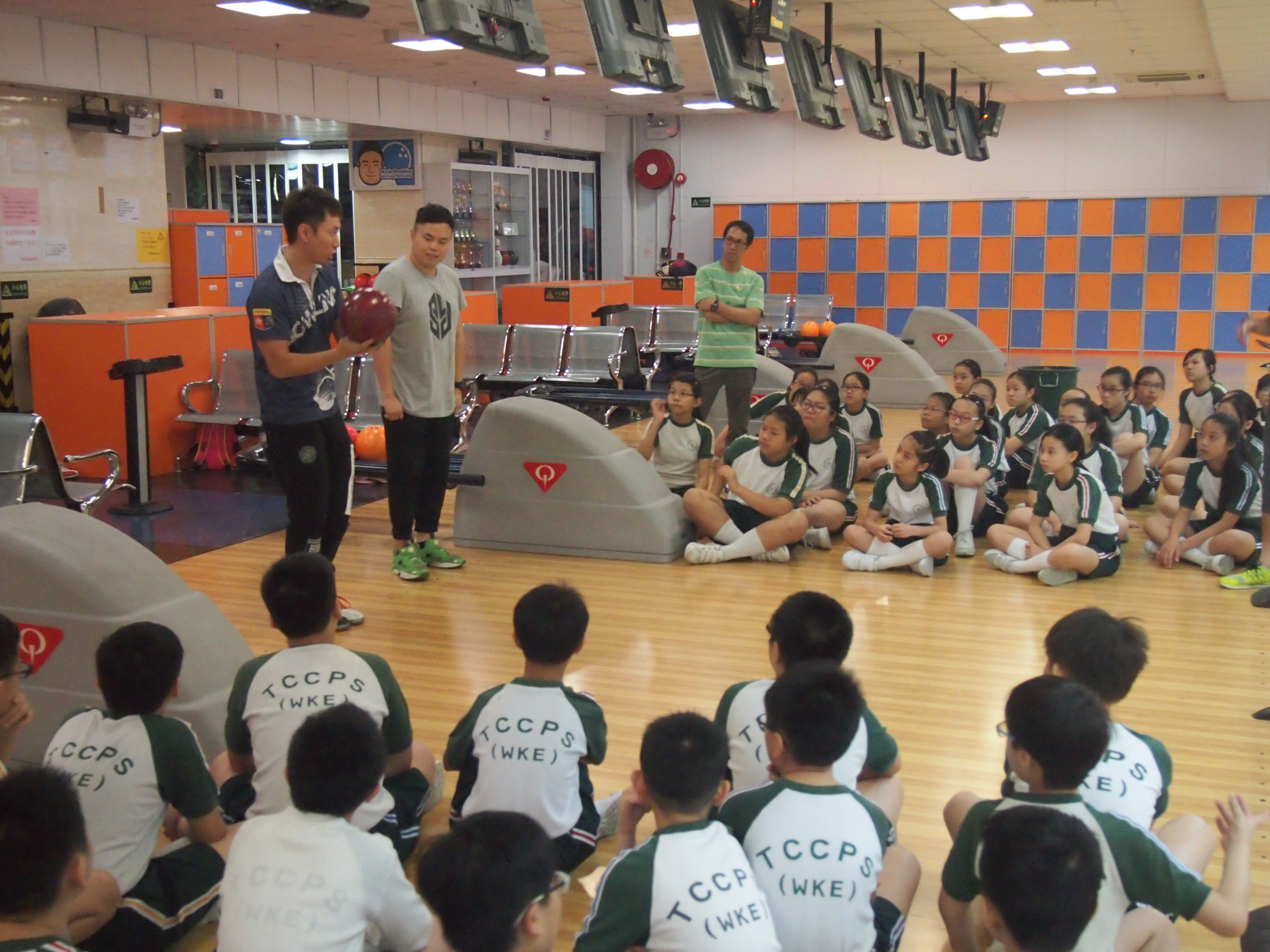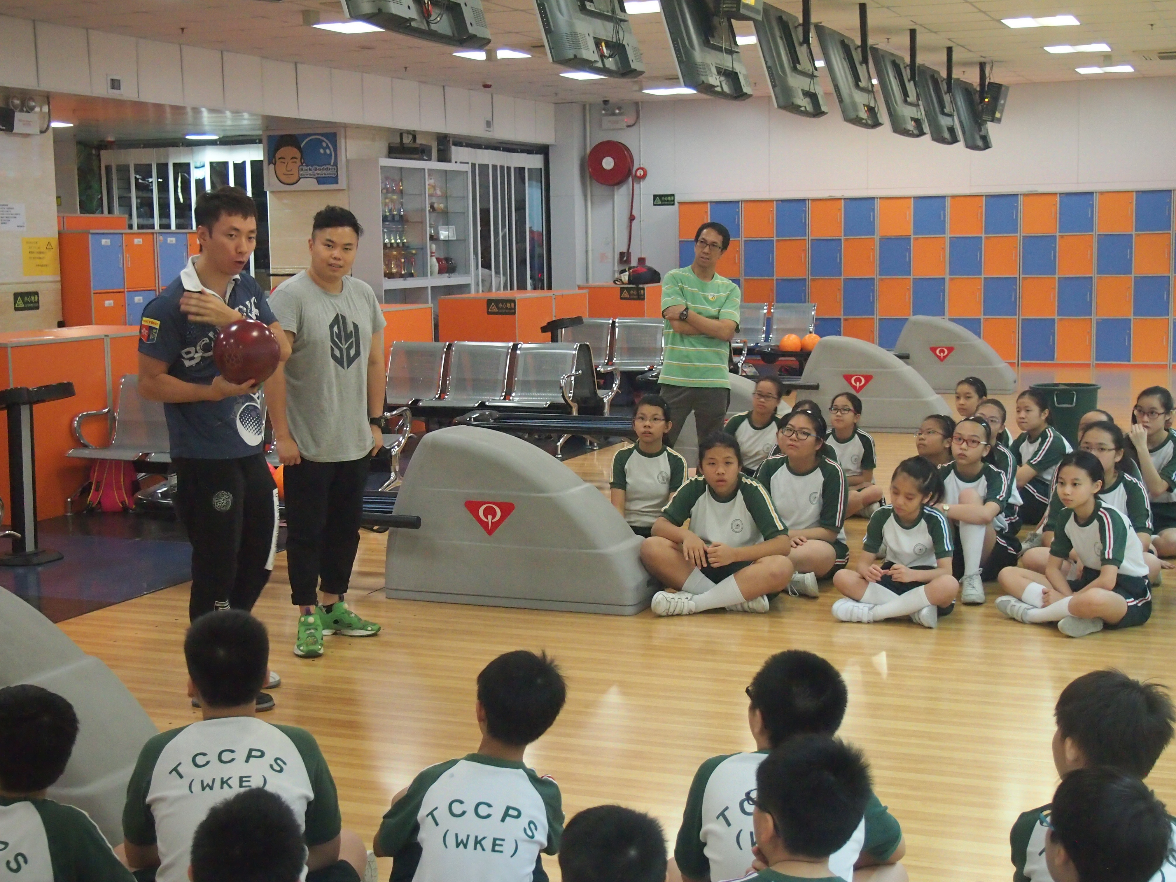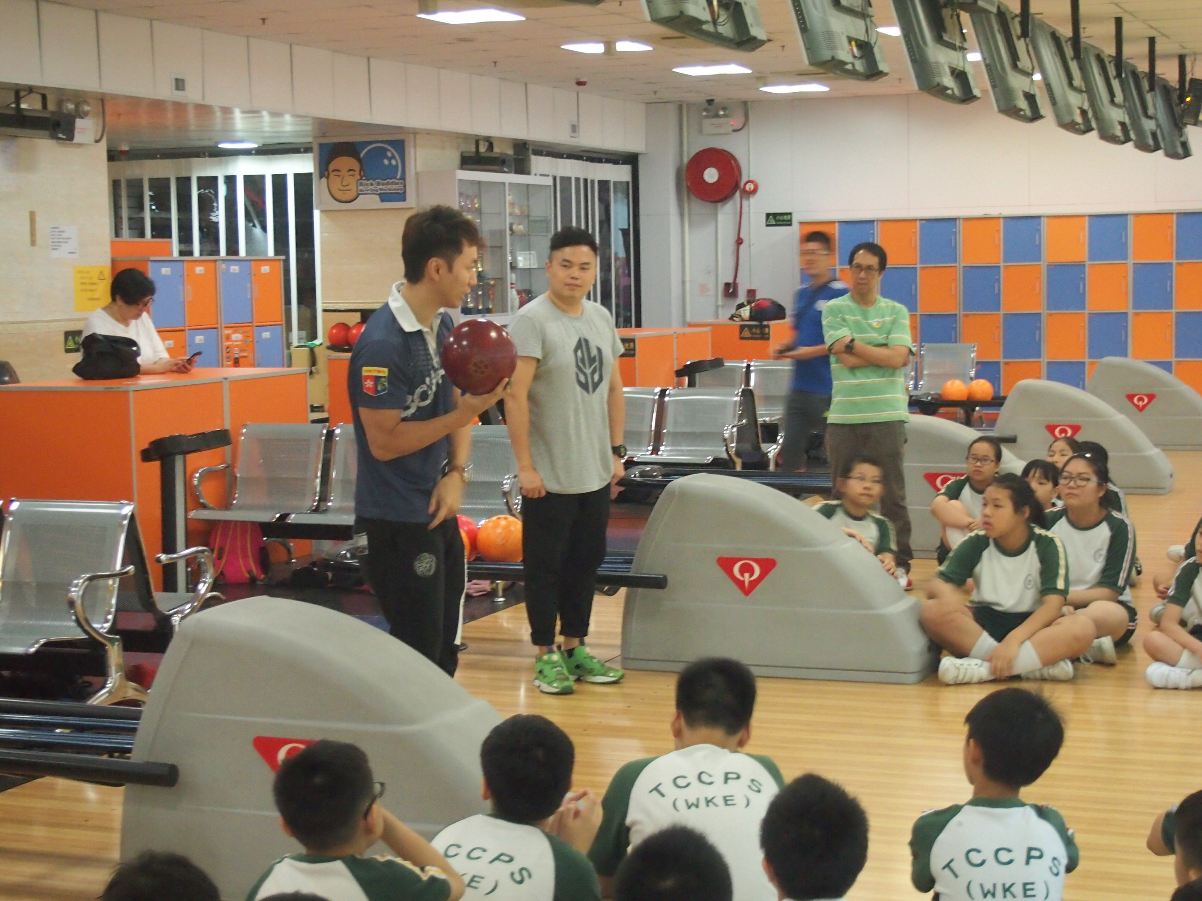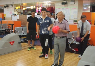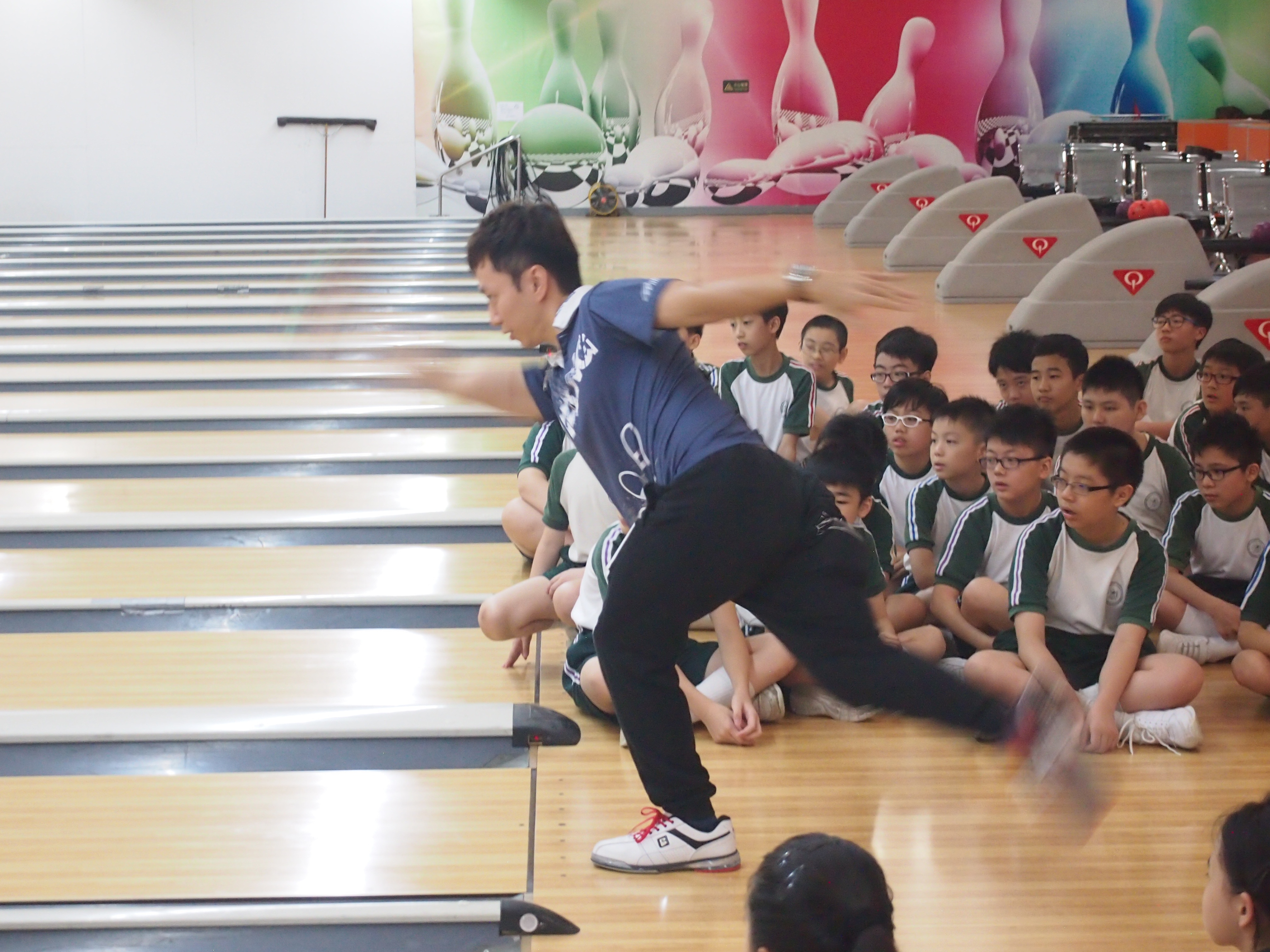 胡兆康先生向學生示範保齡球基本技巧;