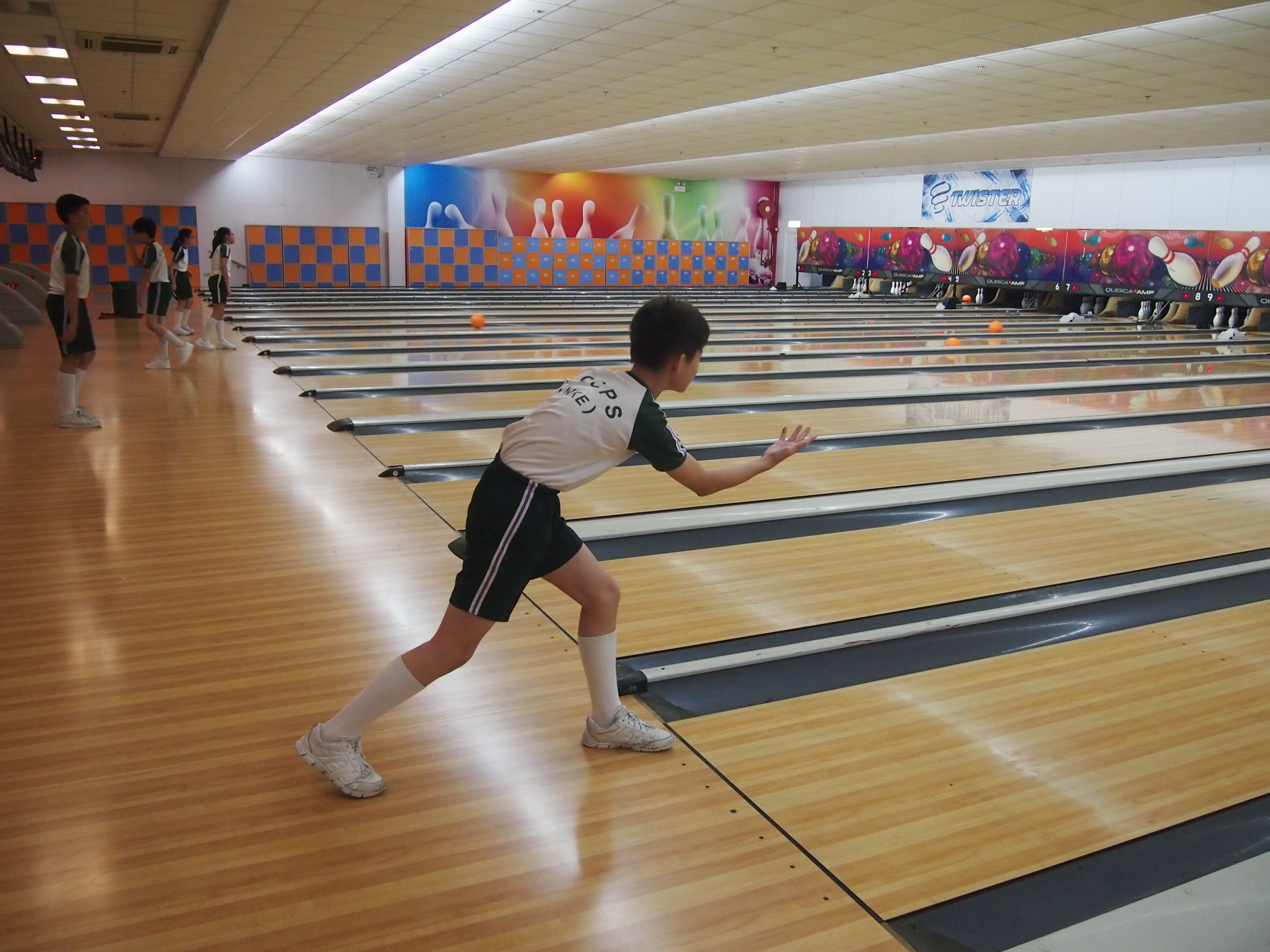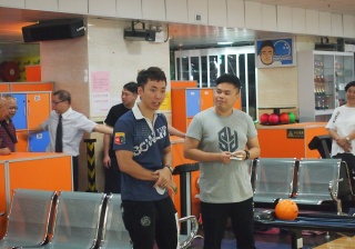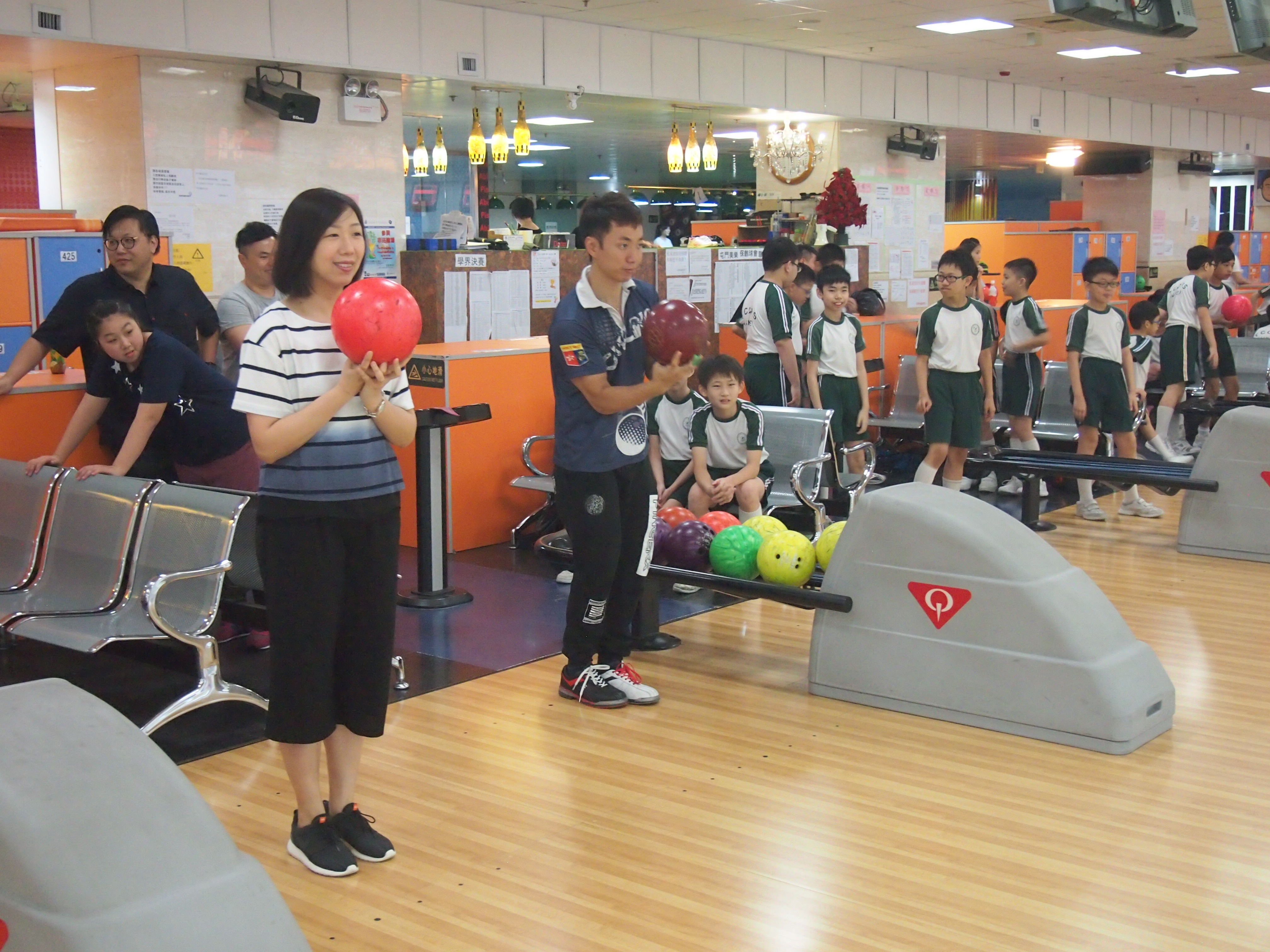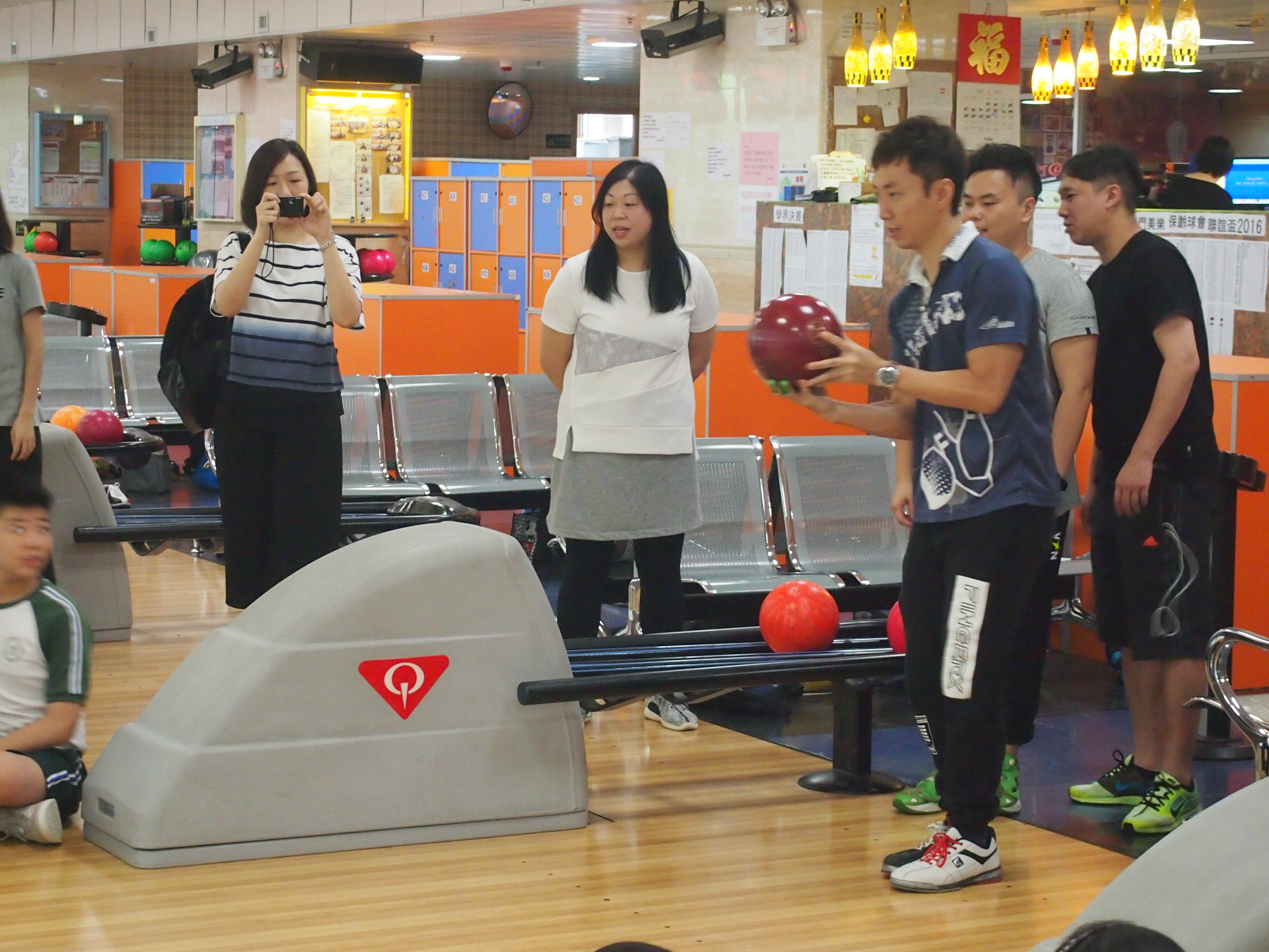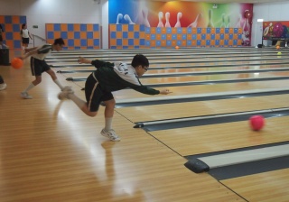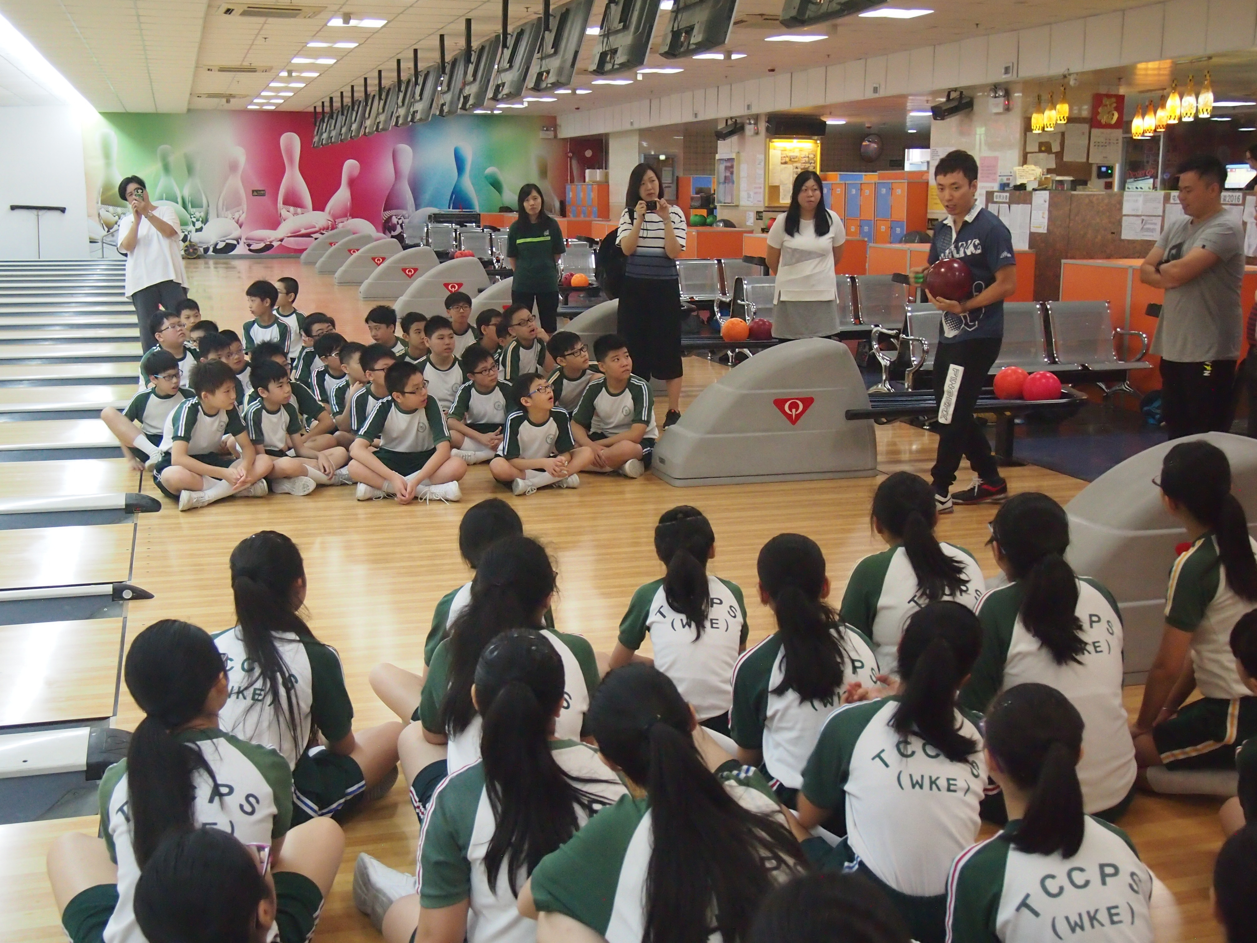 胡兆康先生向學生示範保齡球基本技巧;