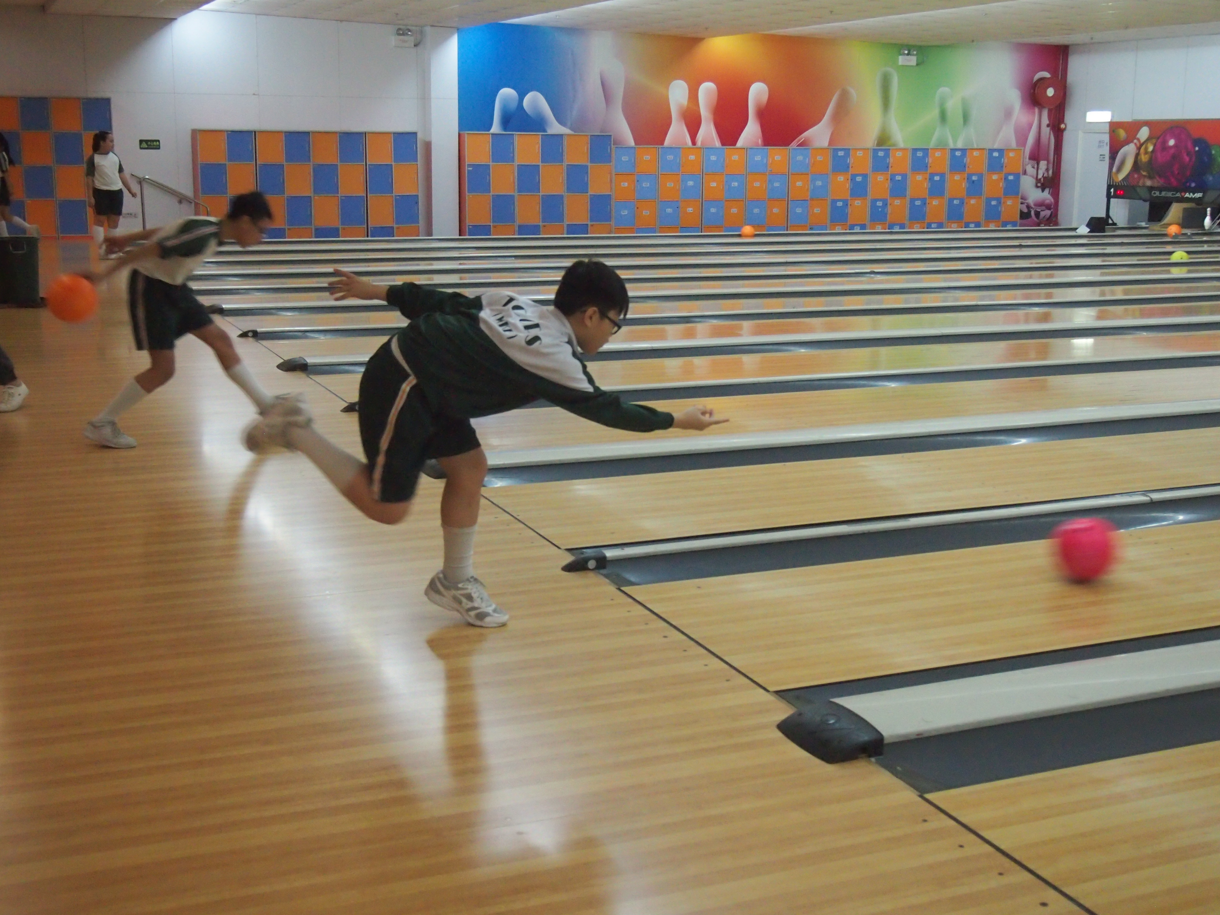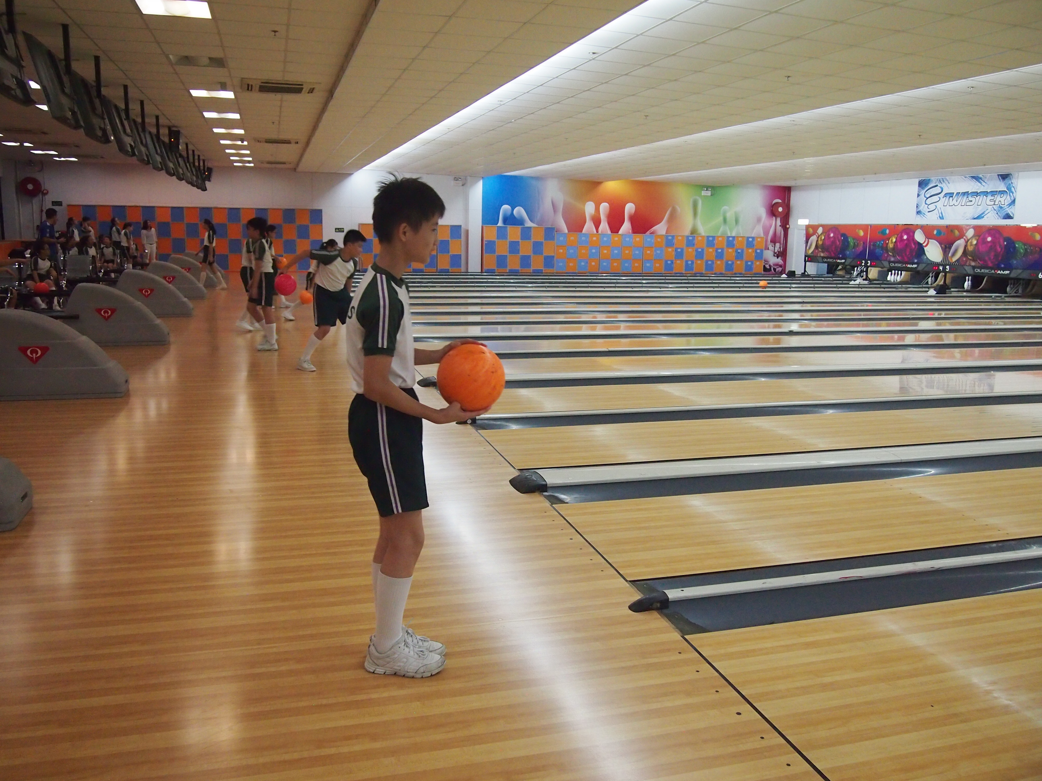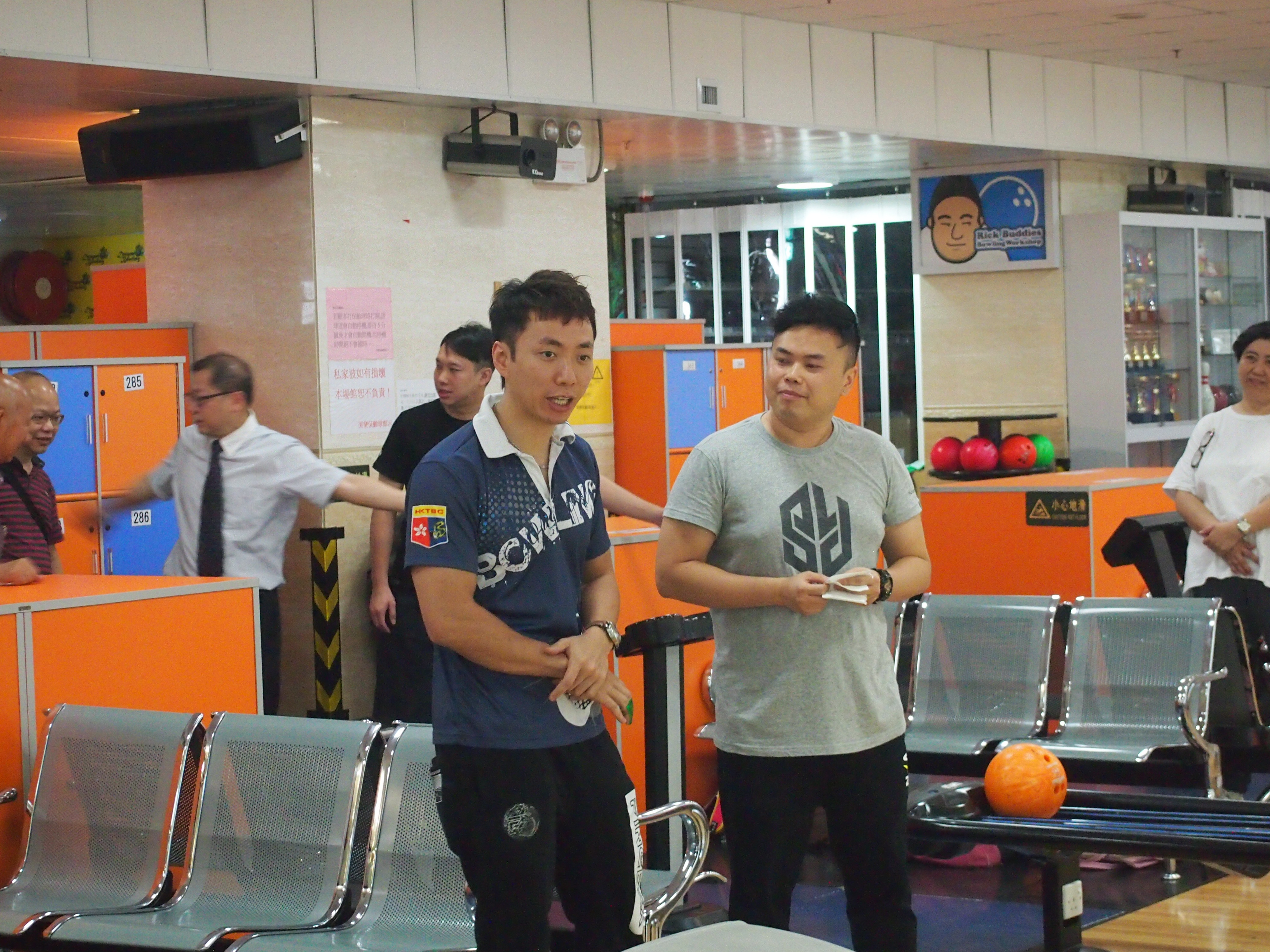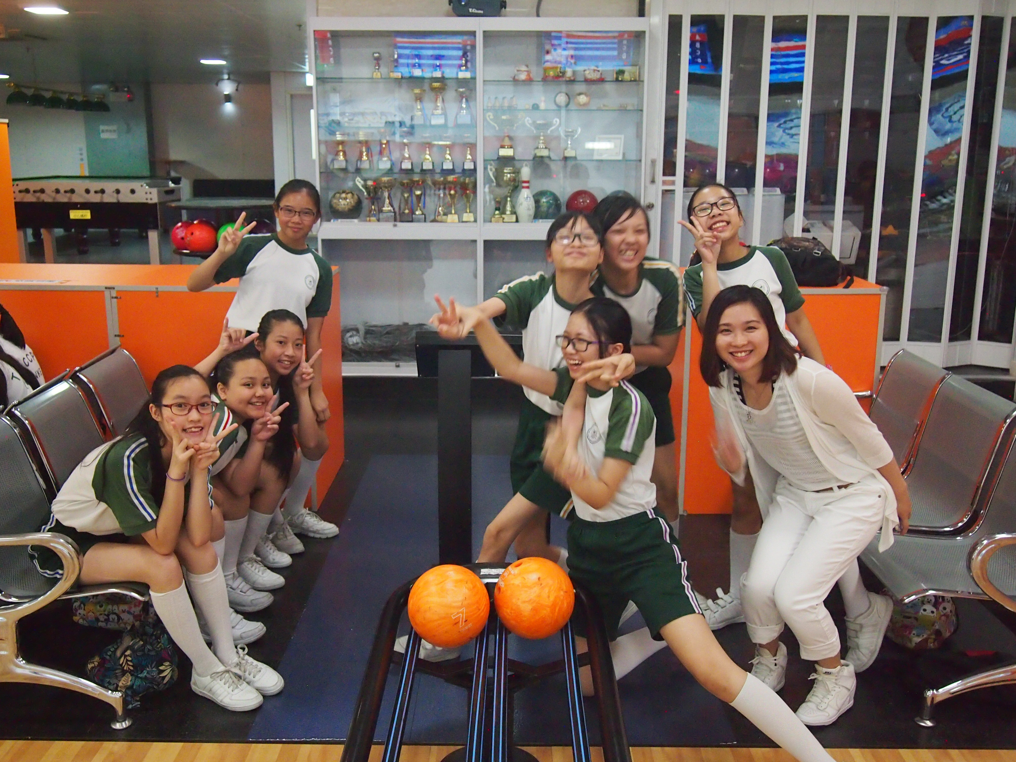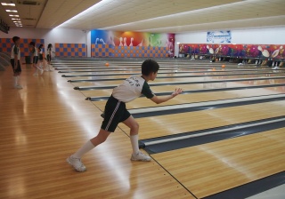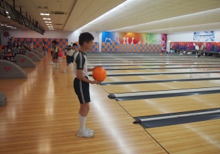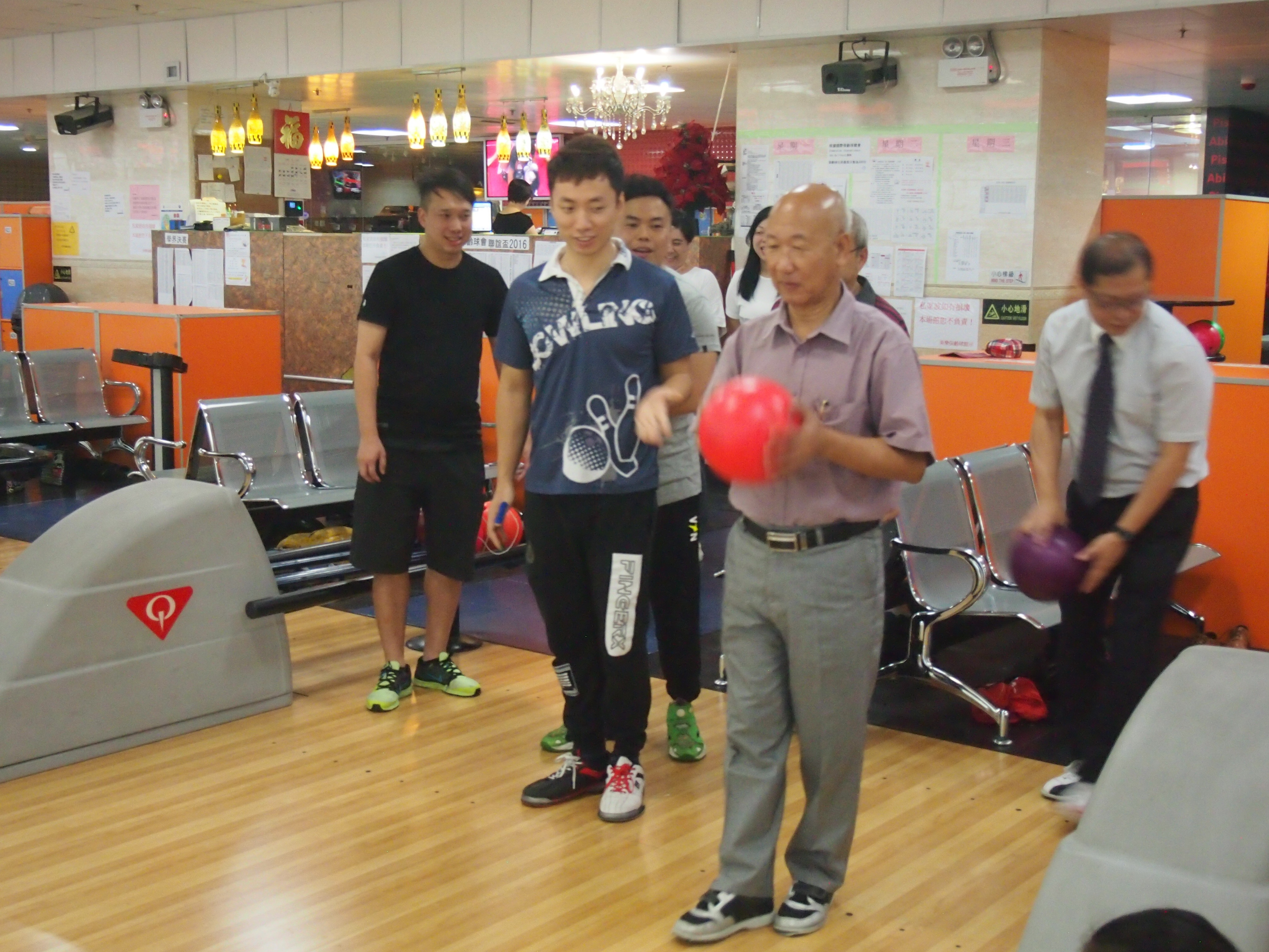 胡兆康先生向學生示範保齡球基本技巧;