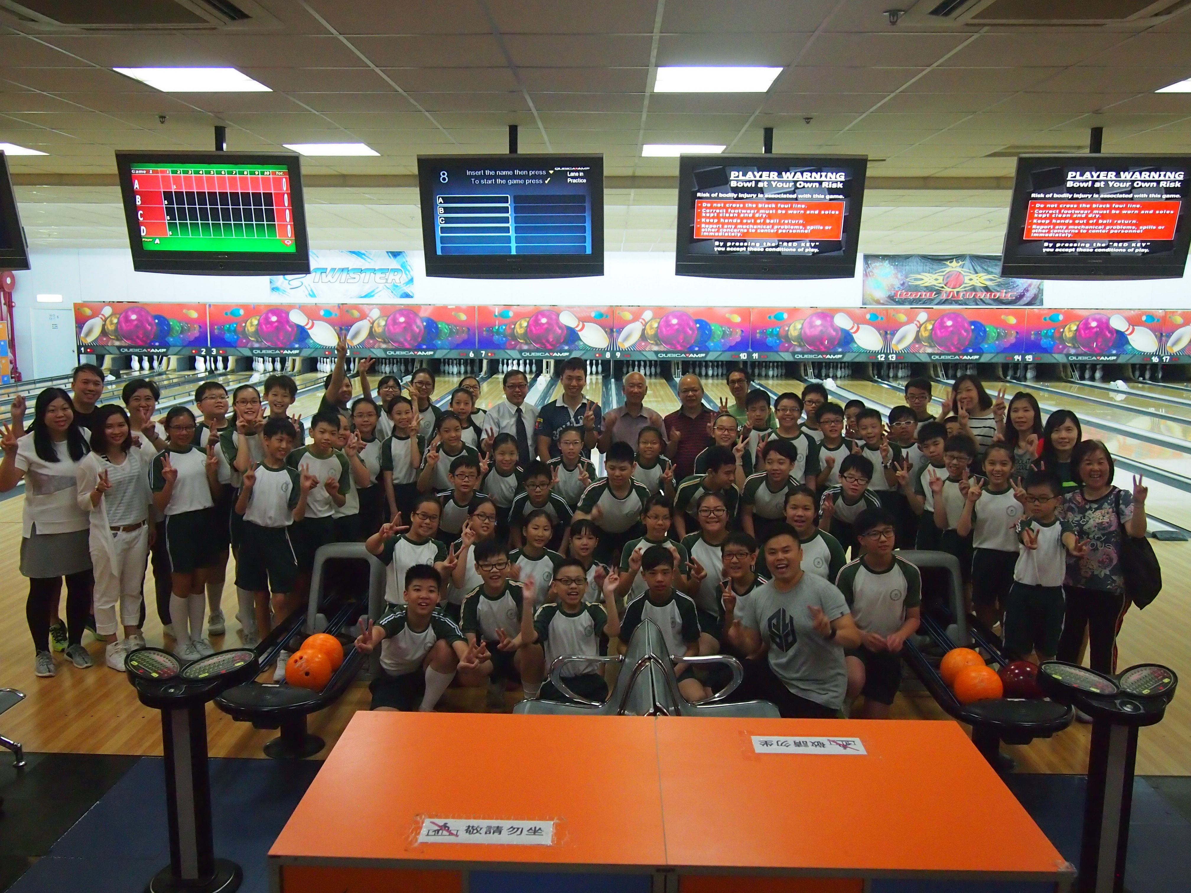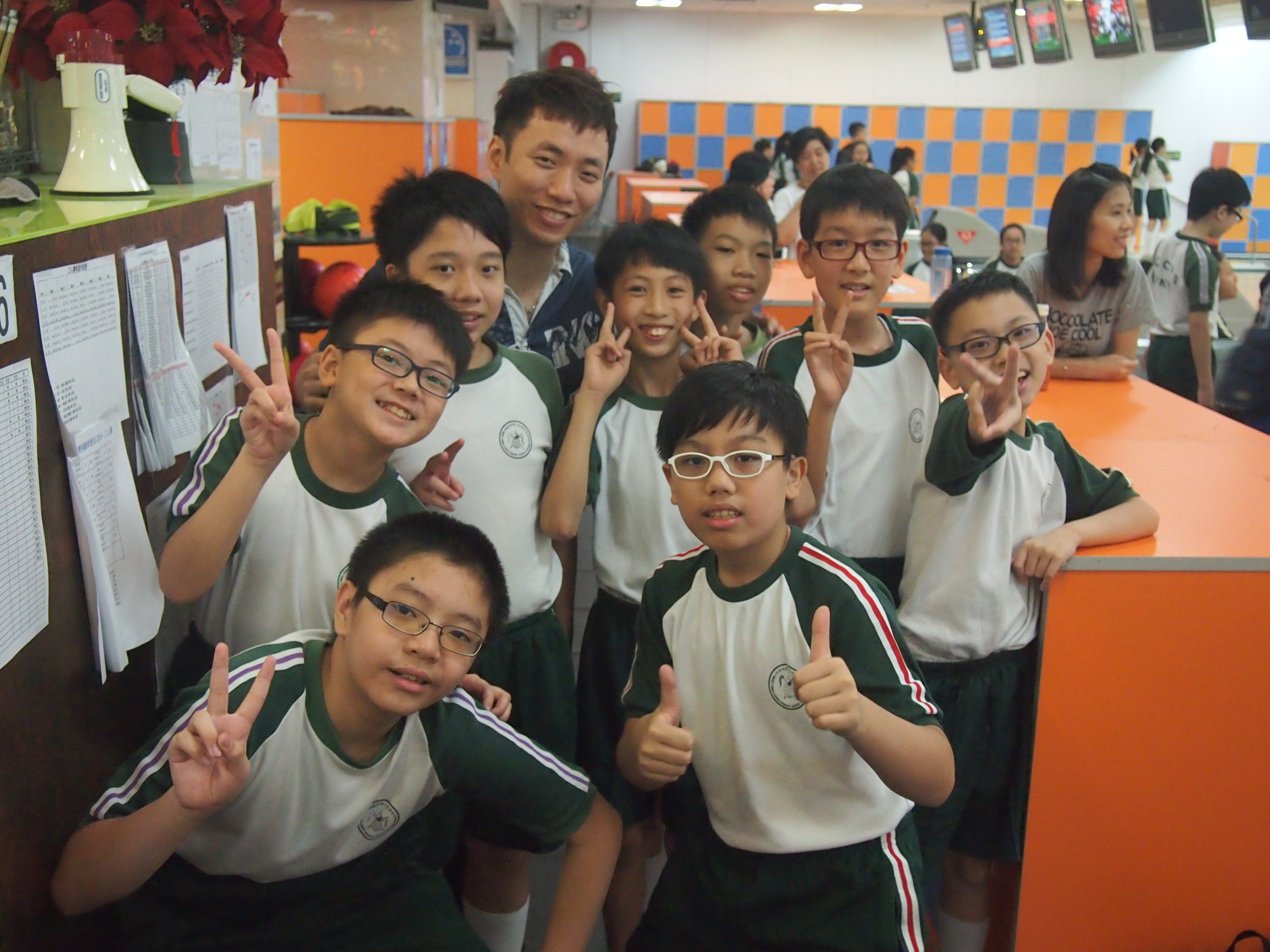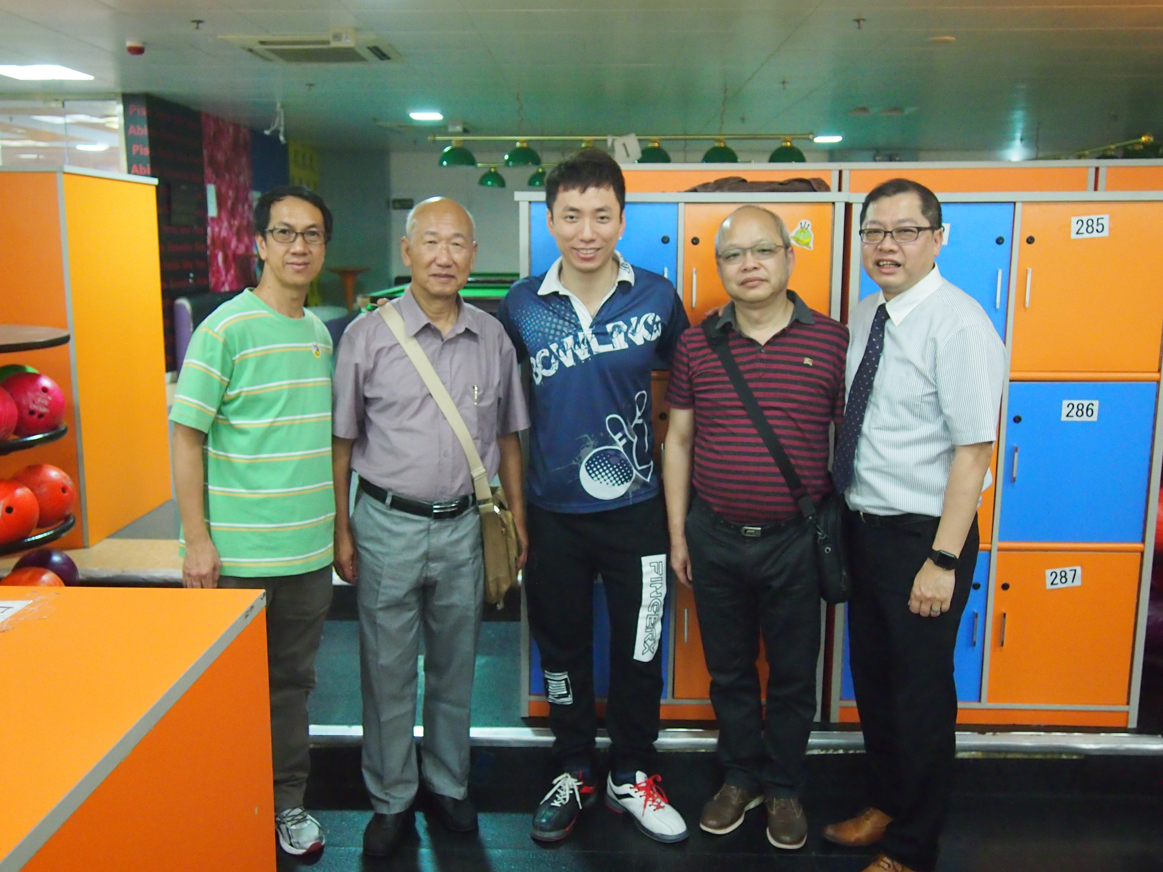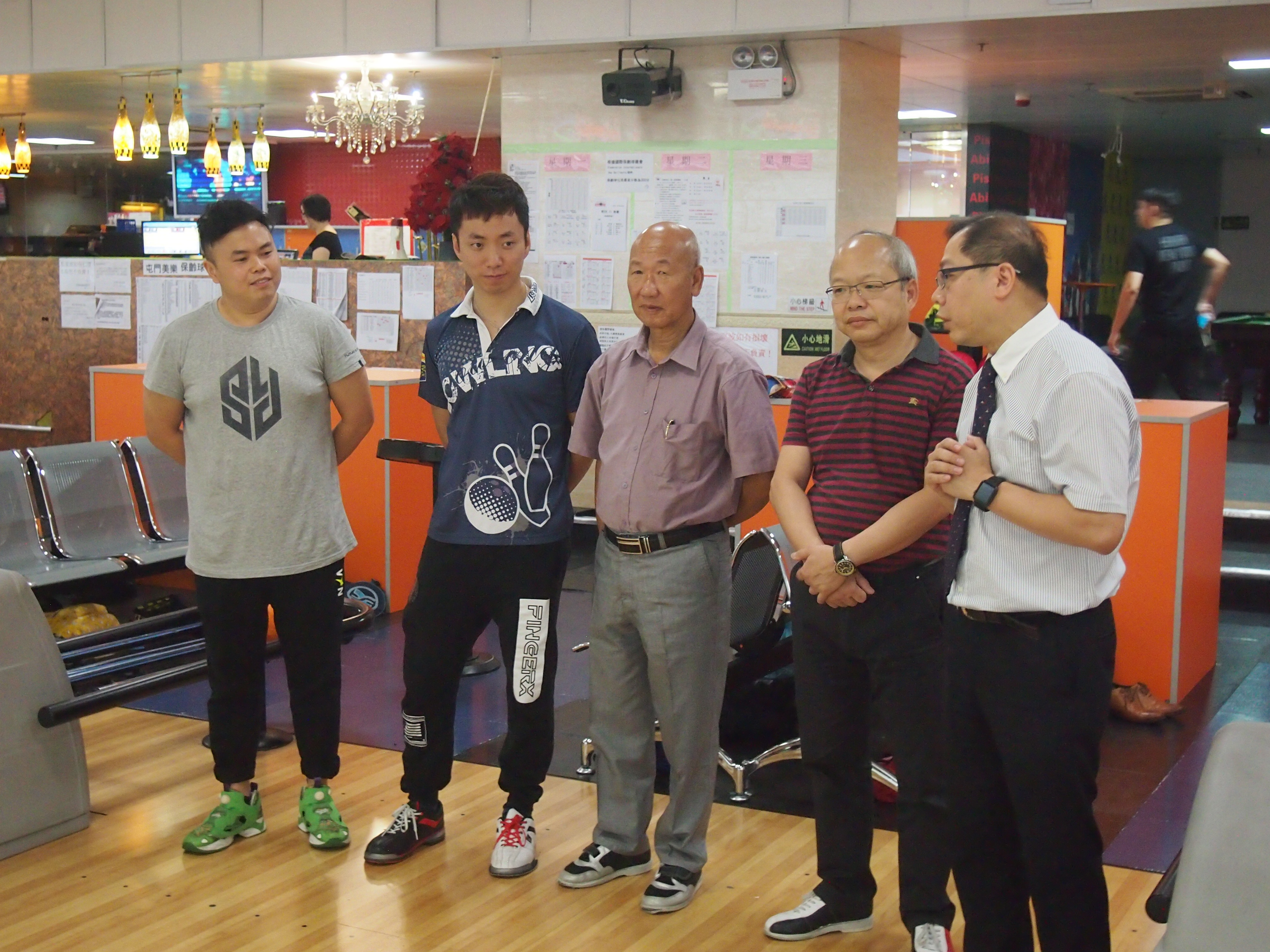 胡兆康先生向學生示範保齡球基本技巧;