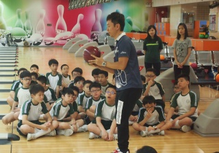 香港首席保齡球運動員胡兆康先生與學生分享運動員感受;