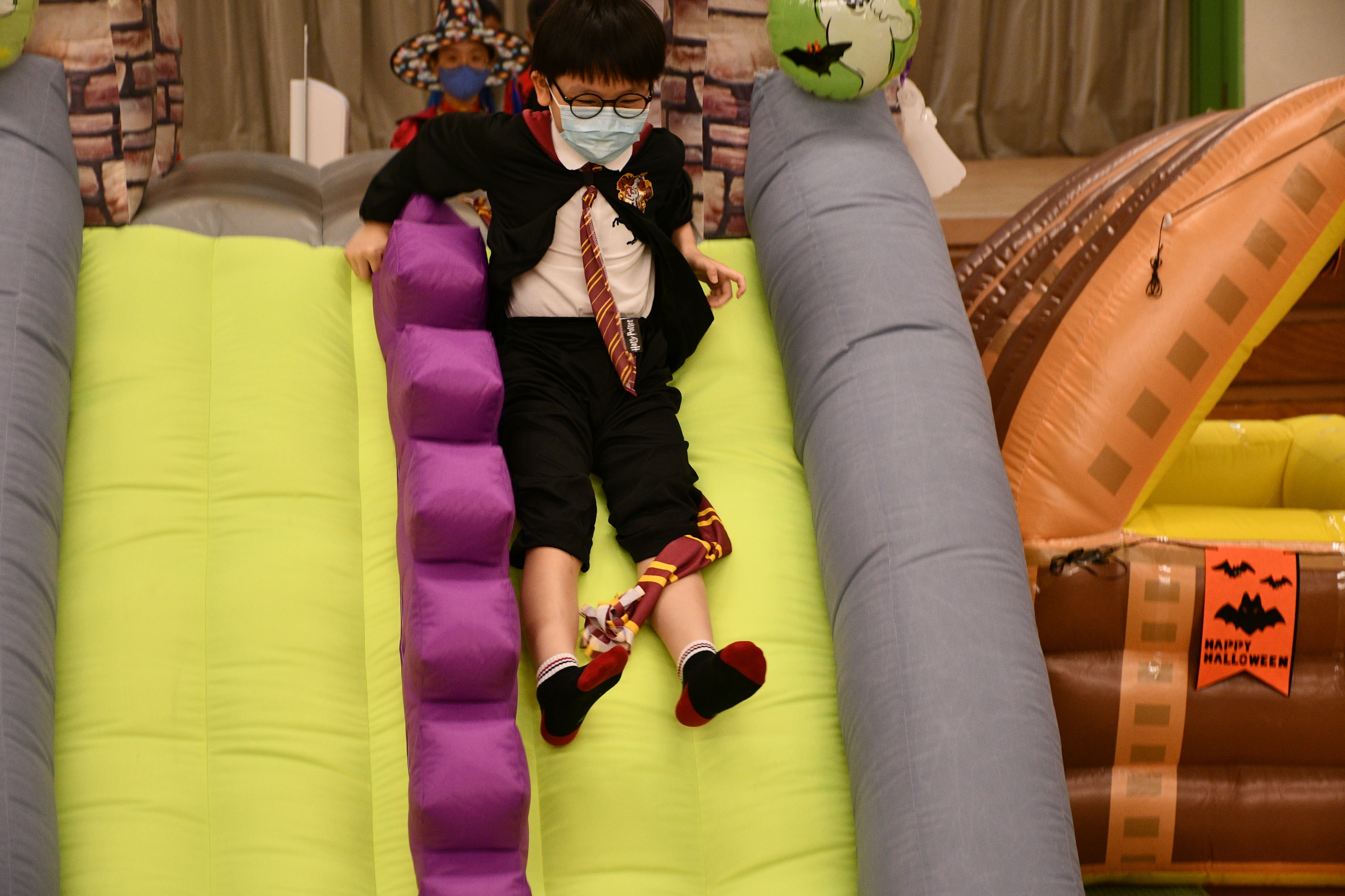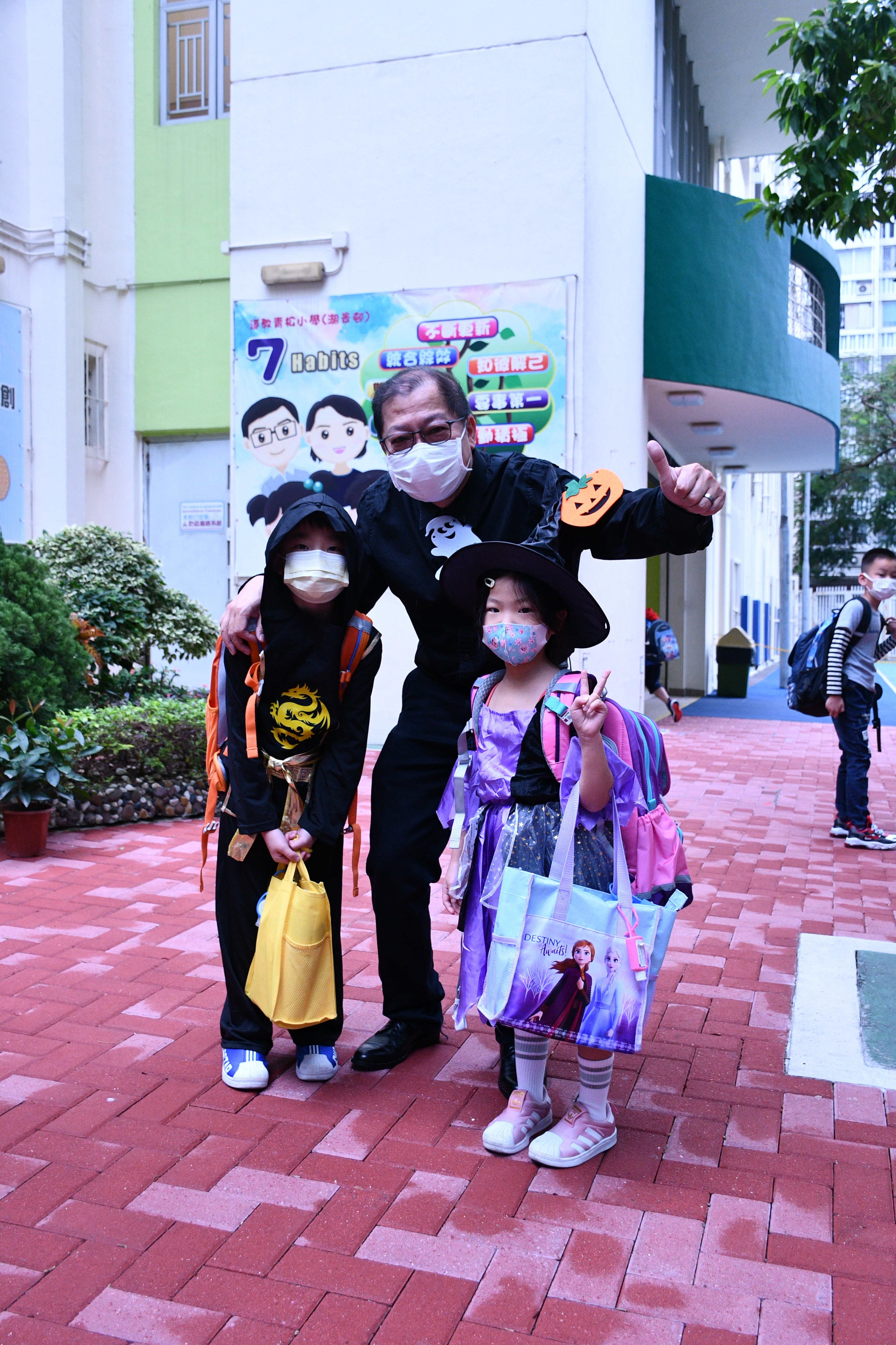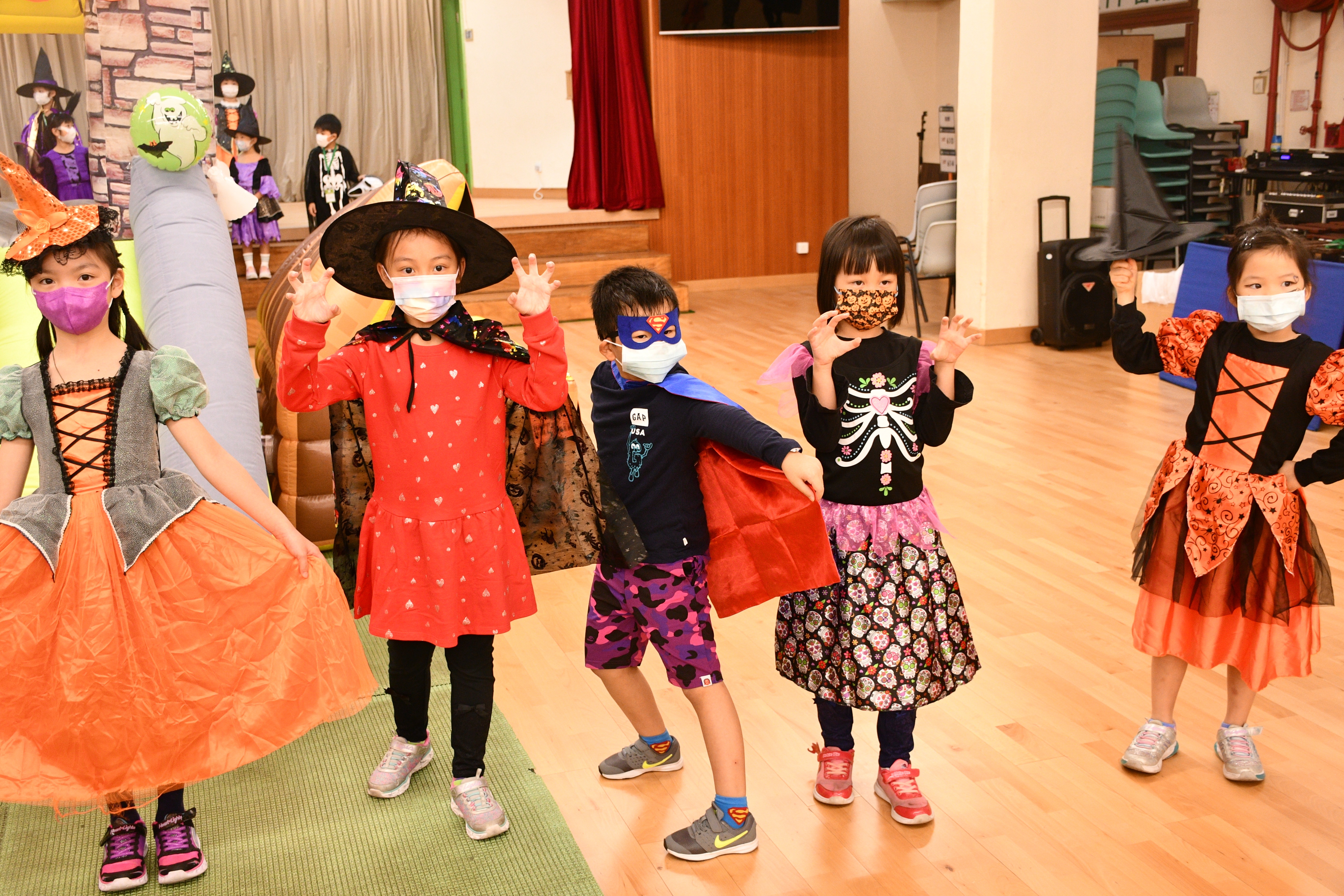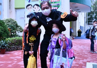 同學們穿著萬聖節服裝回校參與本年度的萬聖節服飾比賽,看看他們扮鬼扮馬的裝扮,十分開心,可説是疫情下的一點歡樂!