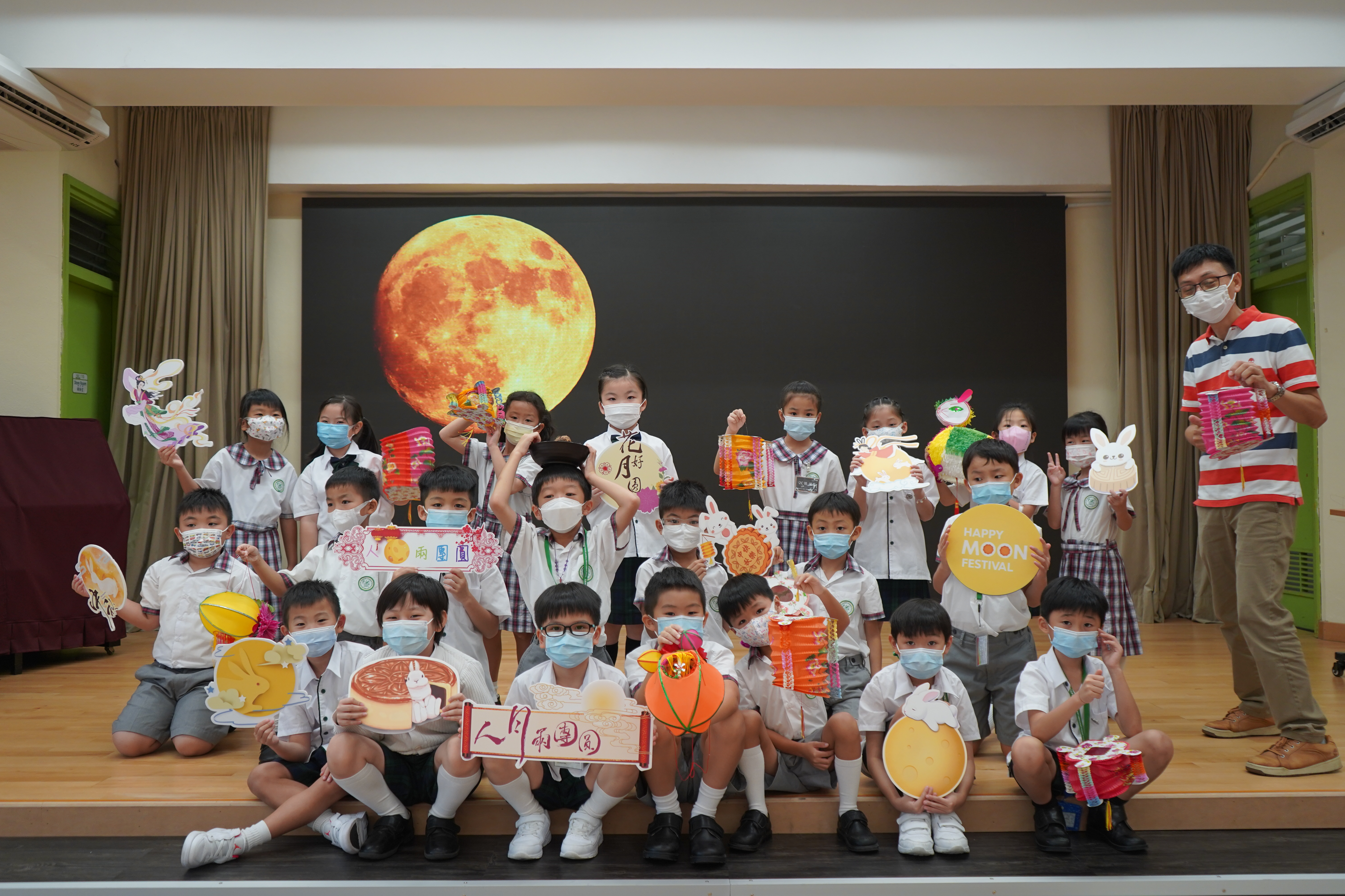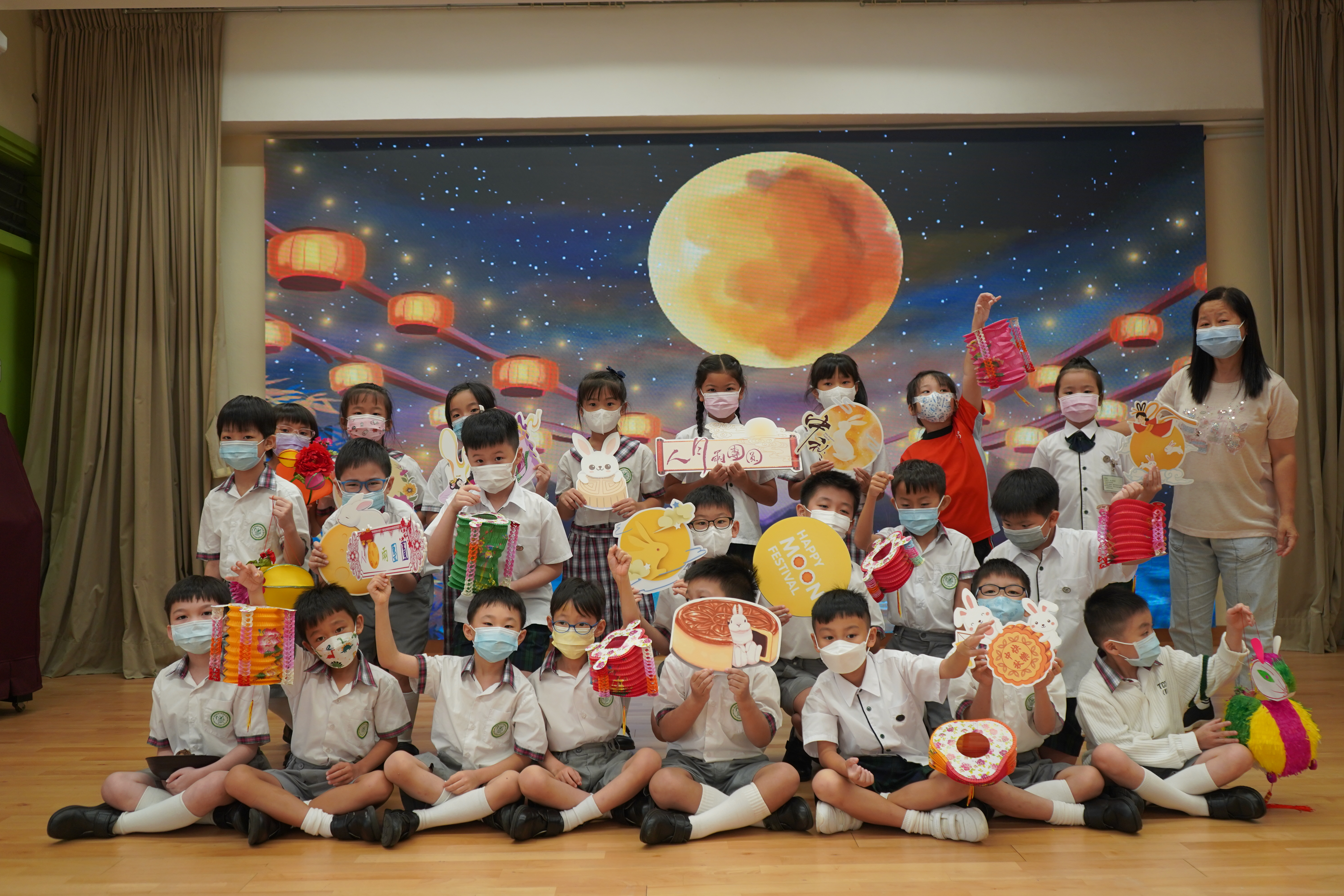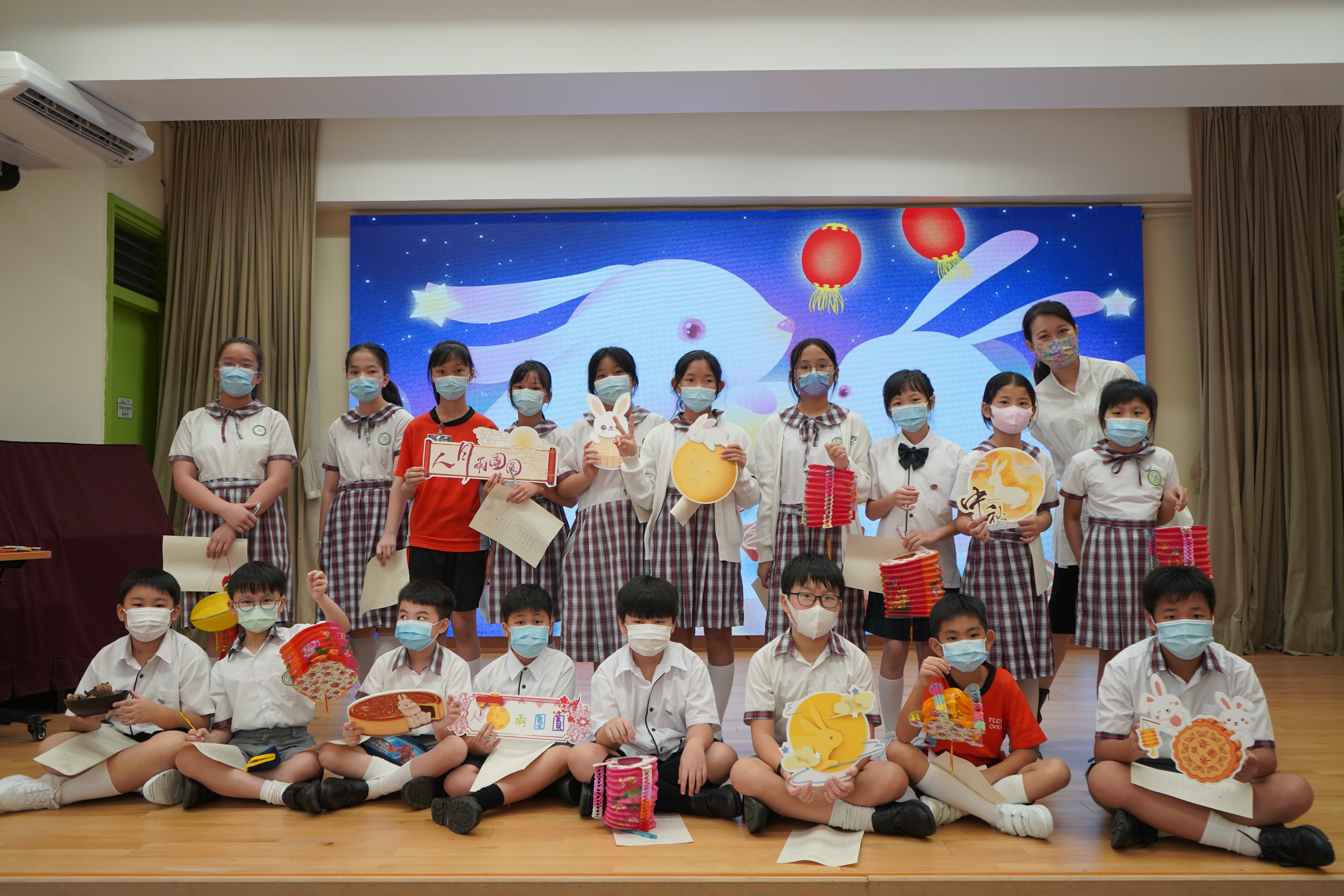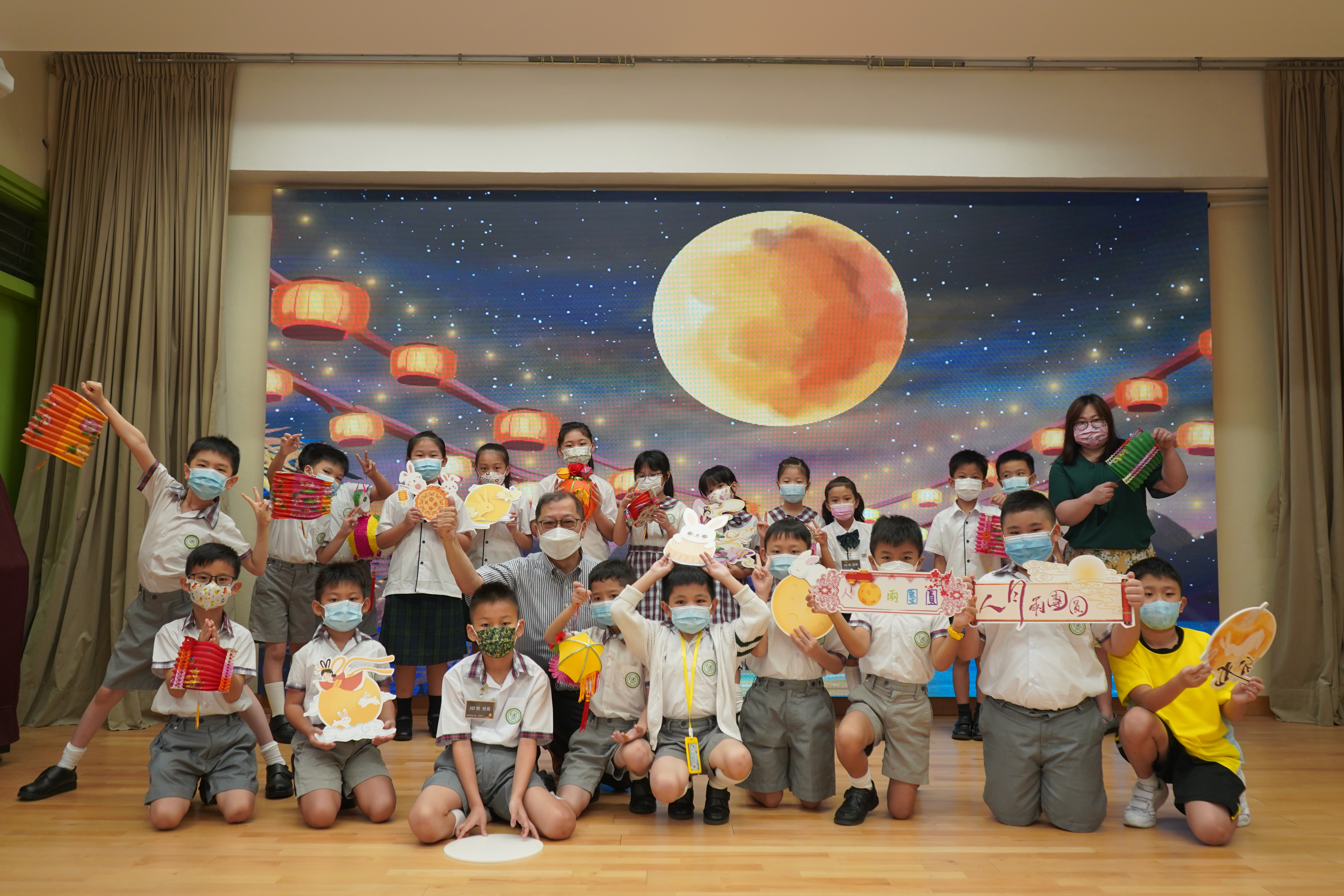 今日農曆八月十五日,是中國傳統節日—中秋節。學校舉辦特備慶祝活動,讓同學們愉快地學習,感受節日的氣氛。同學們可到禮堂欣賞花燈、猜燈謎,及於常識堂上認識「中秋節的由來」,並進行問答比賽。