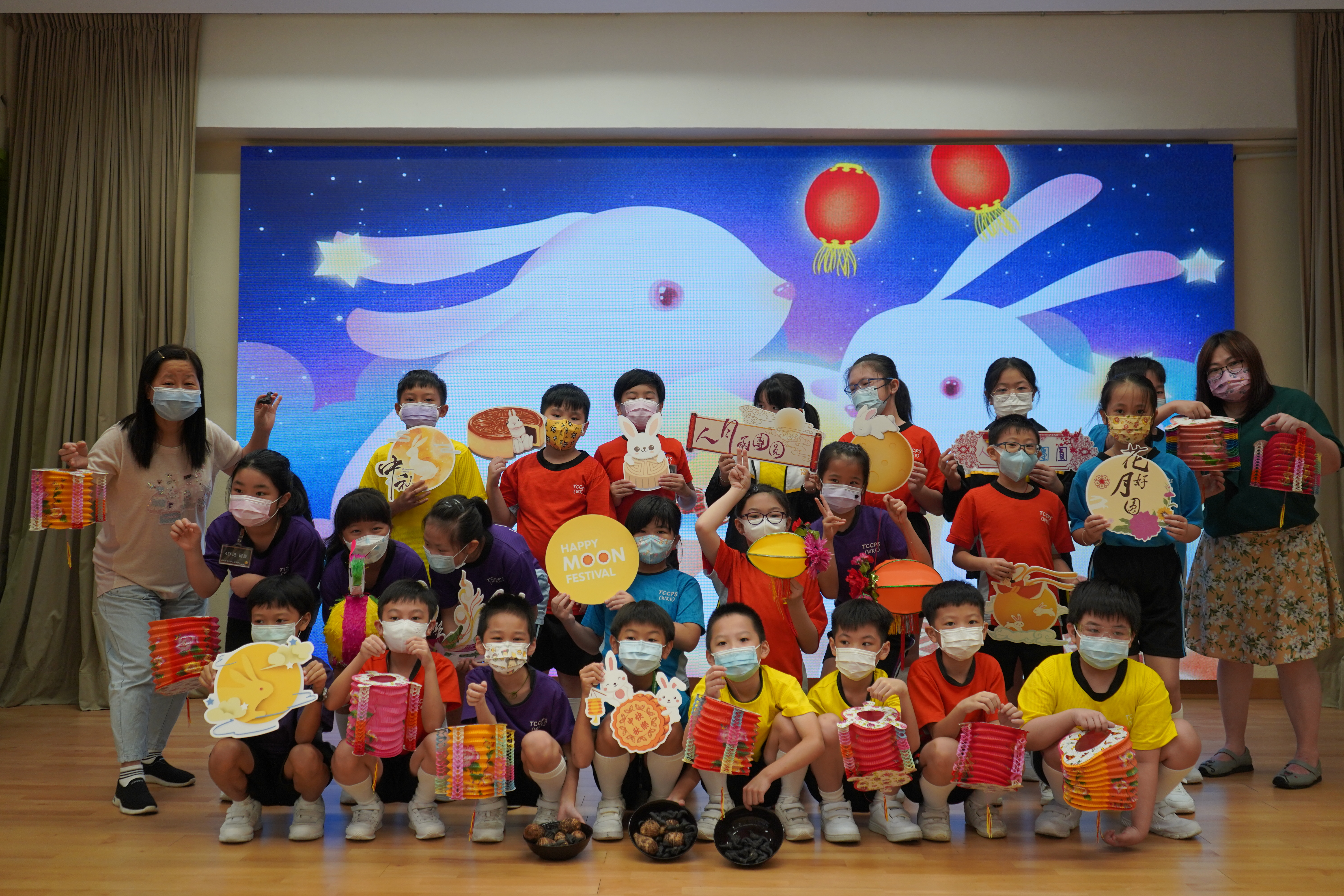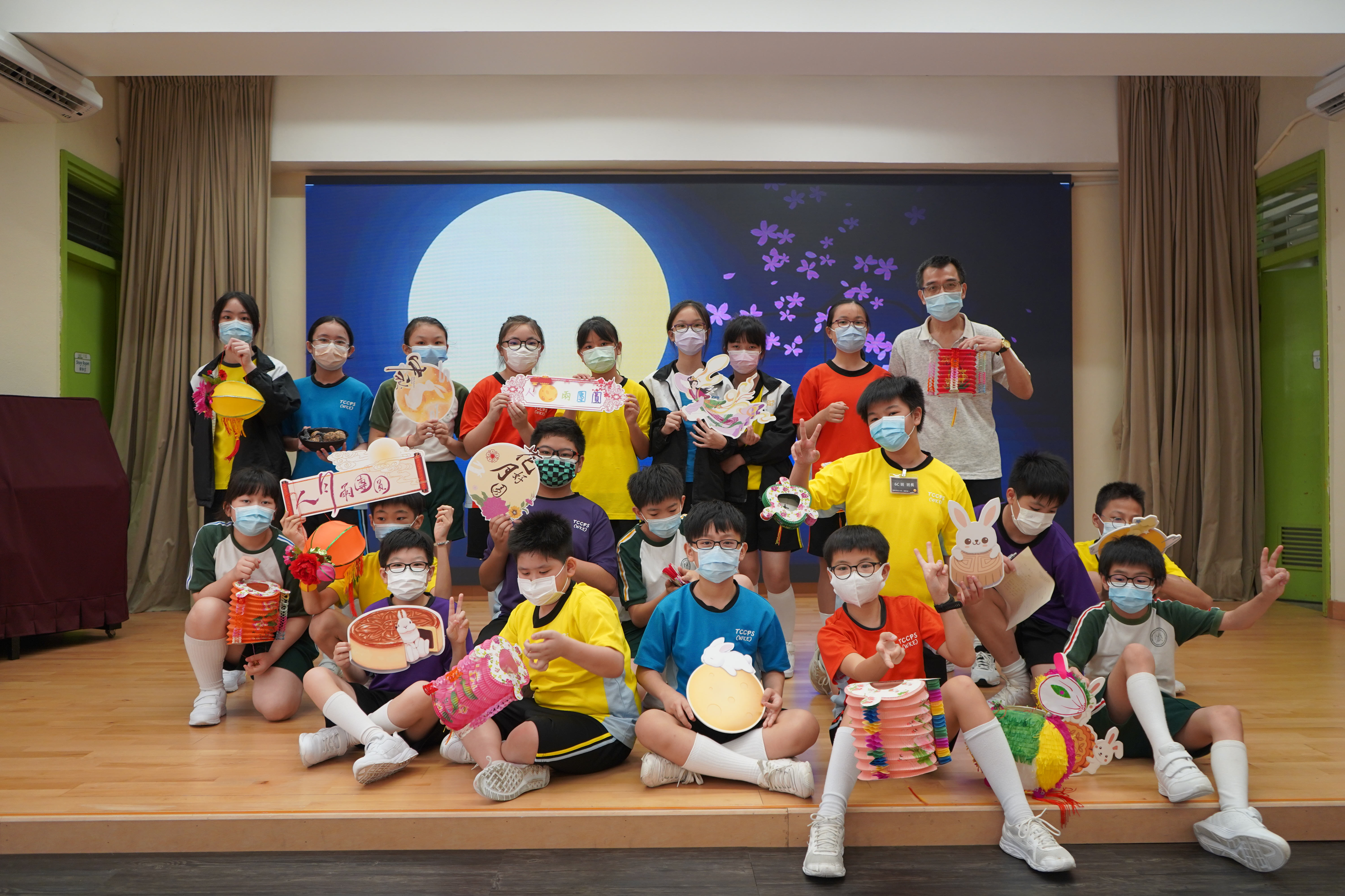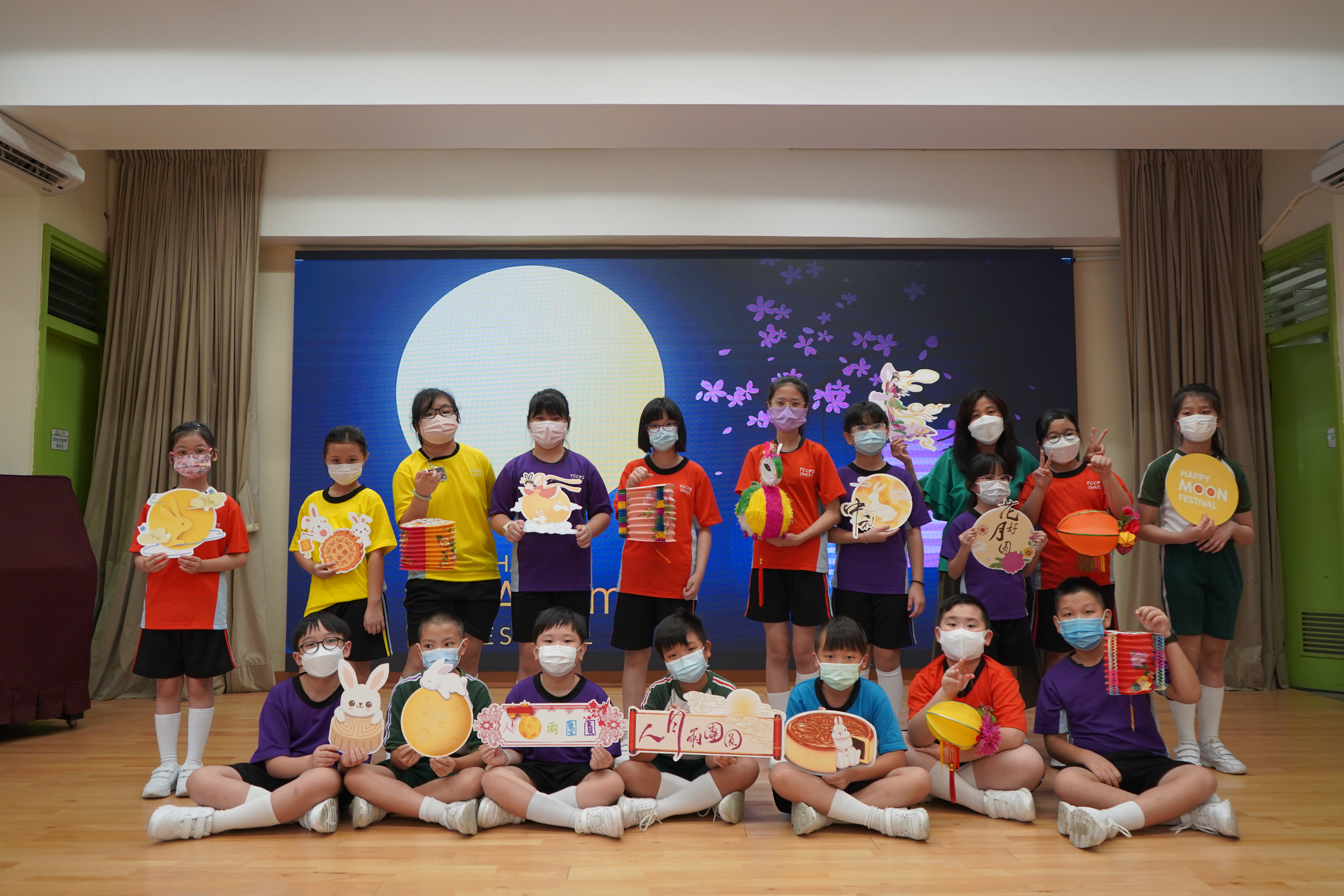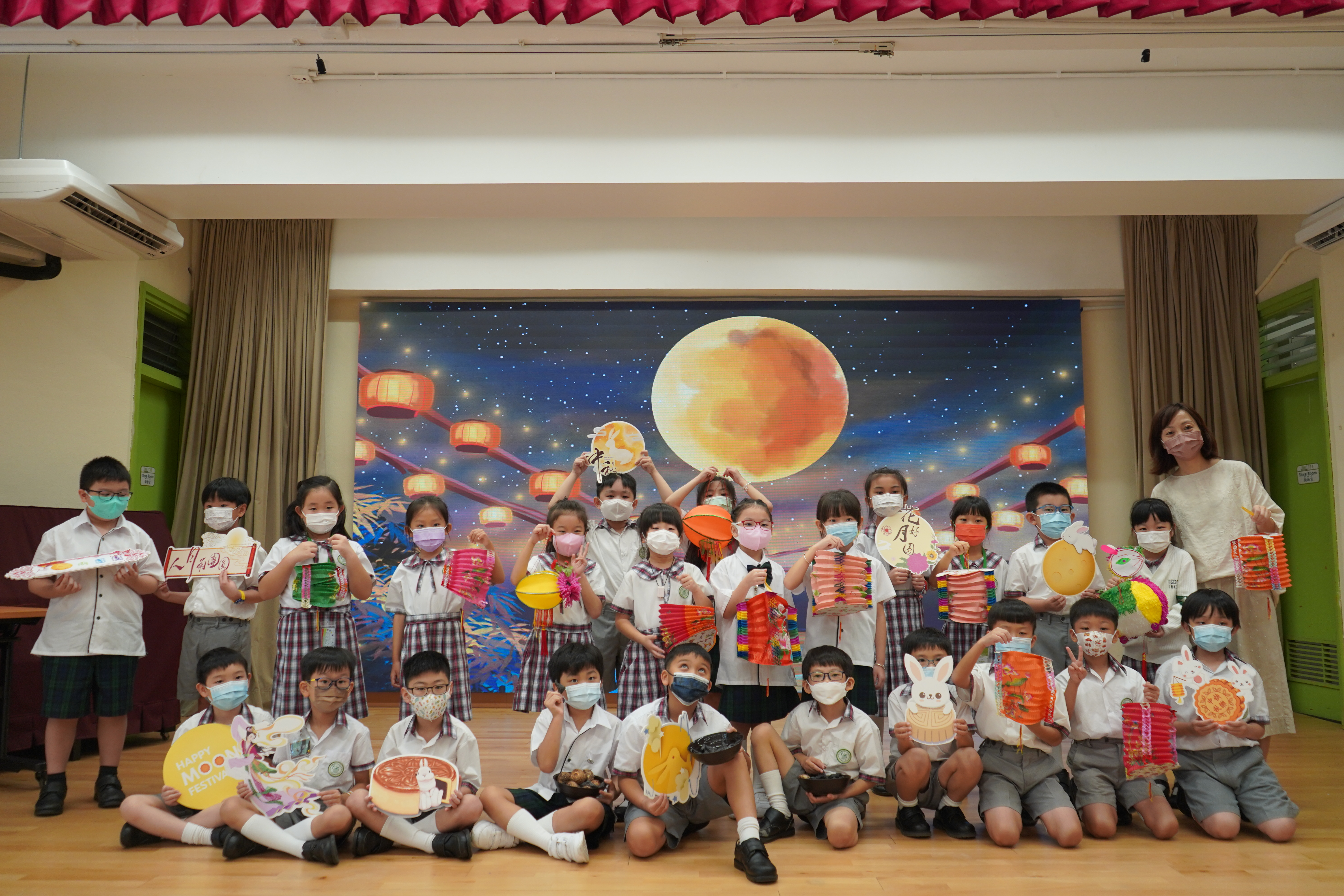 今日農曆八月十五日,是中國傳統節日—中秋節。學校舉辦特備慶祝活動,讓同學們愉快地學習,感受節日的氣氛。同學們可到禮堂欣賞花燈、猜燈謎,及於常識堂上認識「中秋節的由來」,並進行問答比賽。