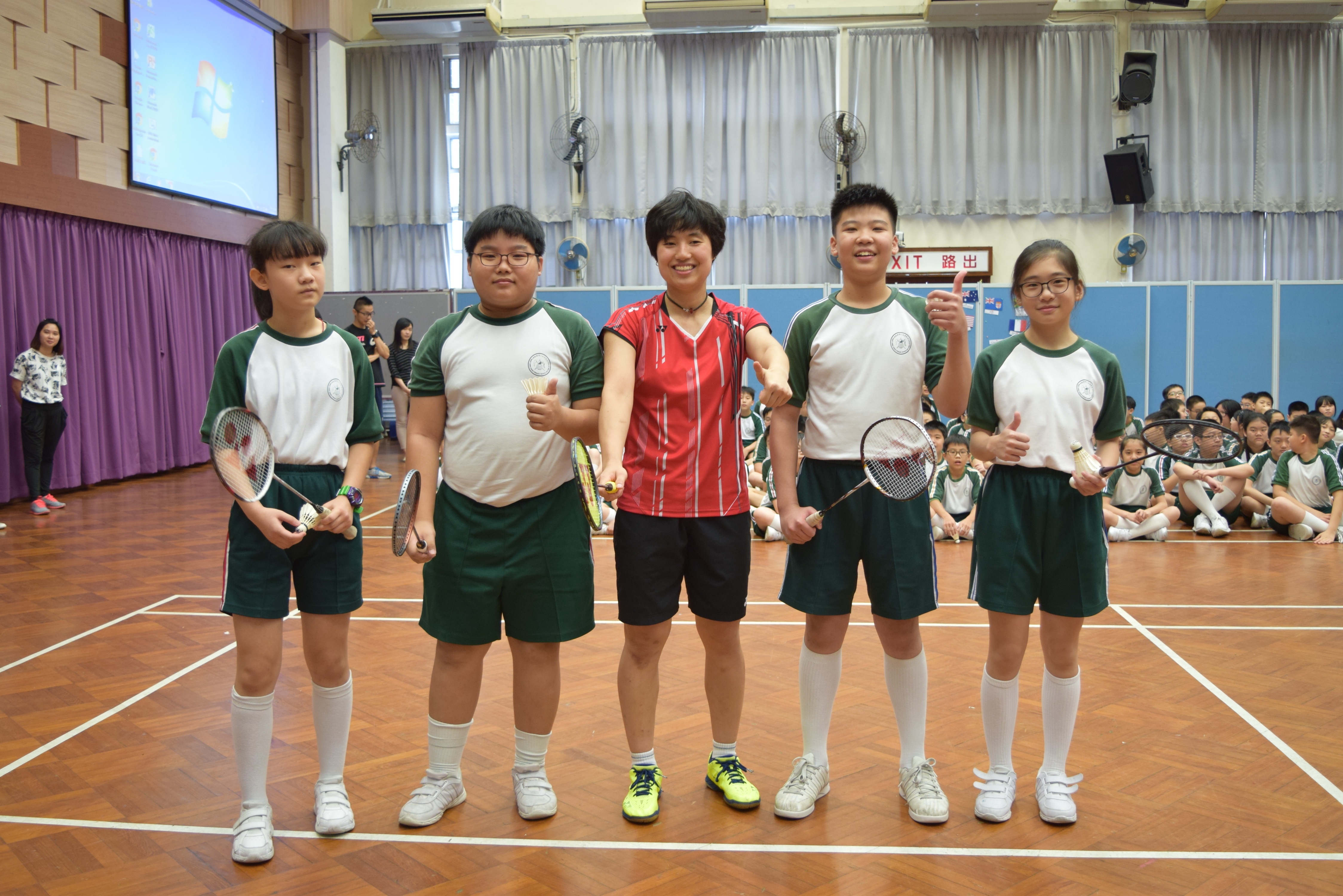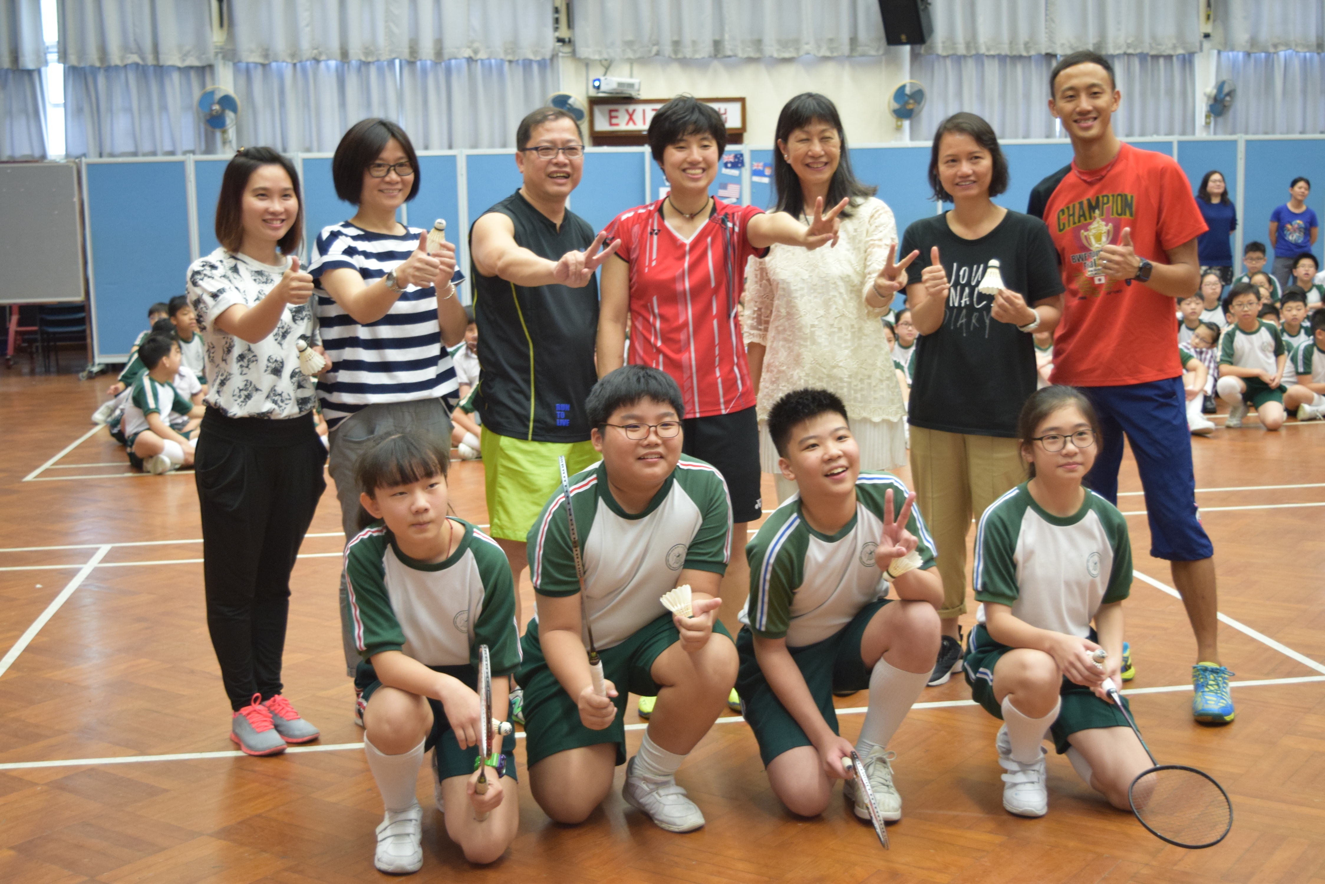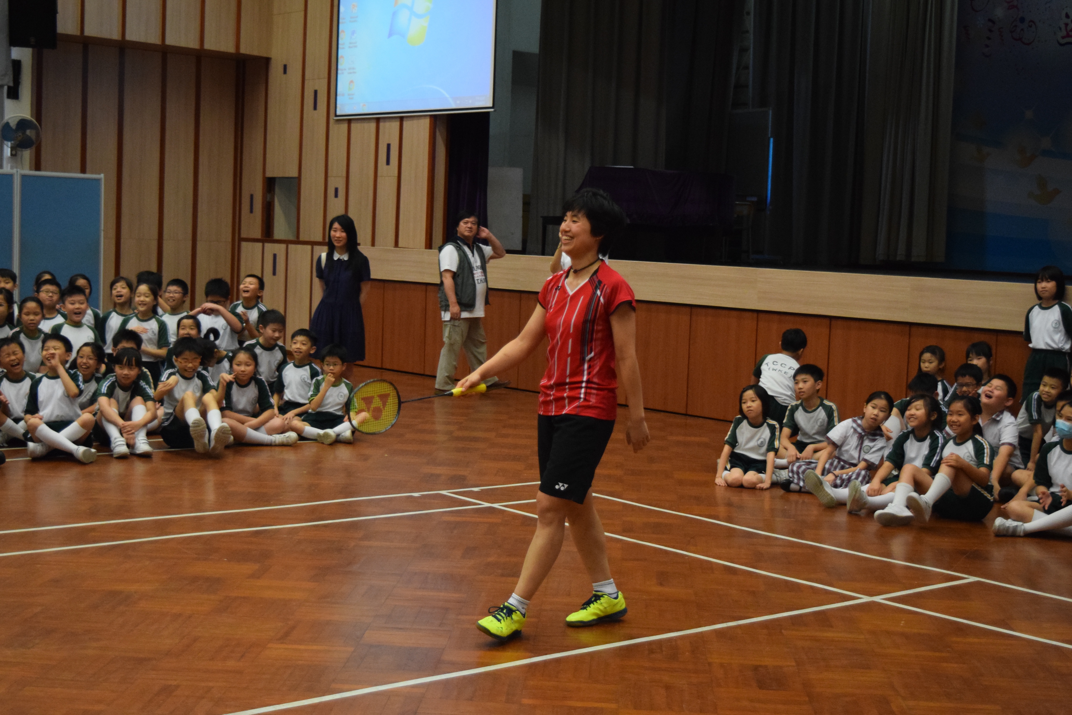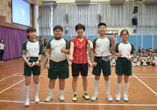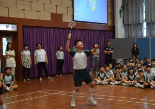 活動內容:1.東亞運羽毛球女單金牌得主葉姵延小姐與學生分享運動員感受; 2.葉姵延小姐與羽毛球教練向學生示範羽毛球基本技巧; 3.邀請本校老師及學生與葉姵延小姐作友誼比賽。