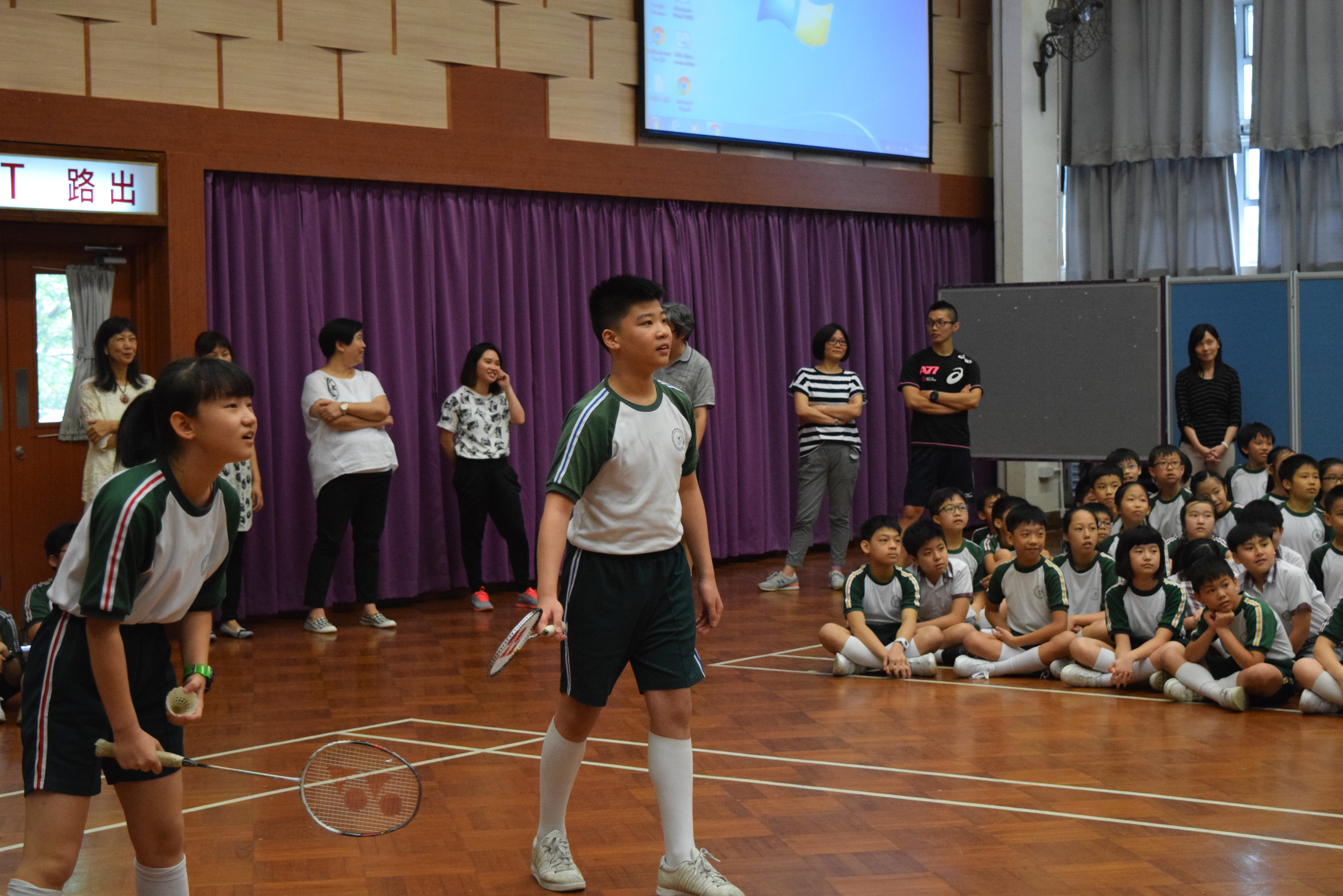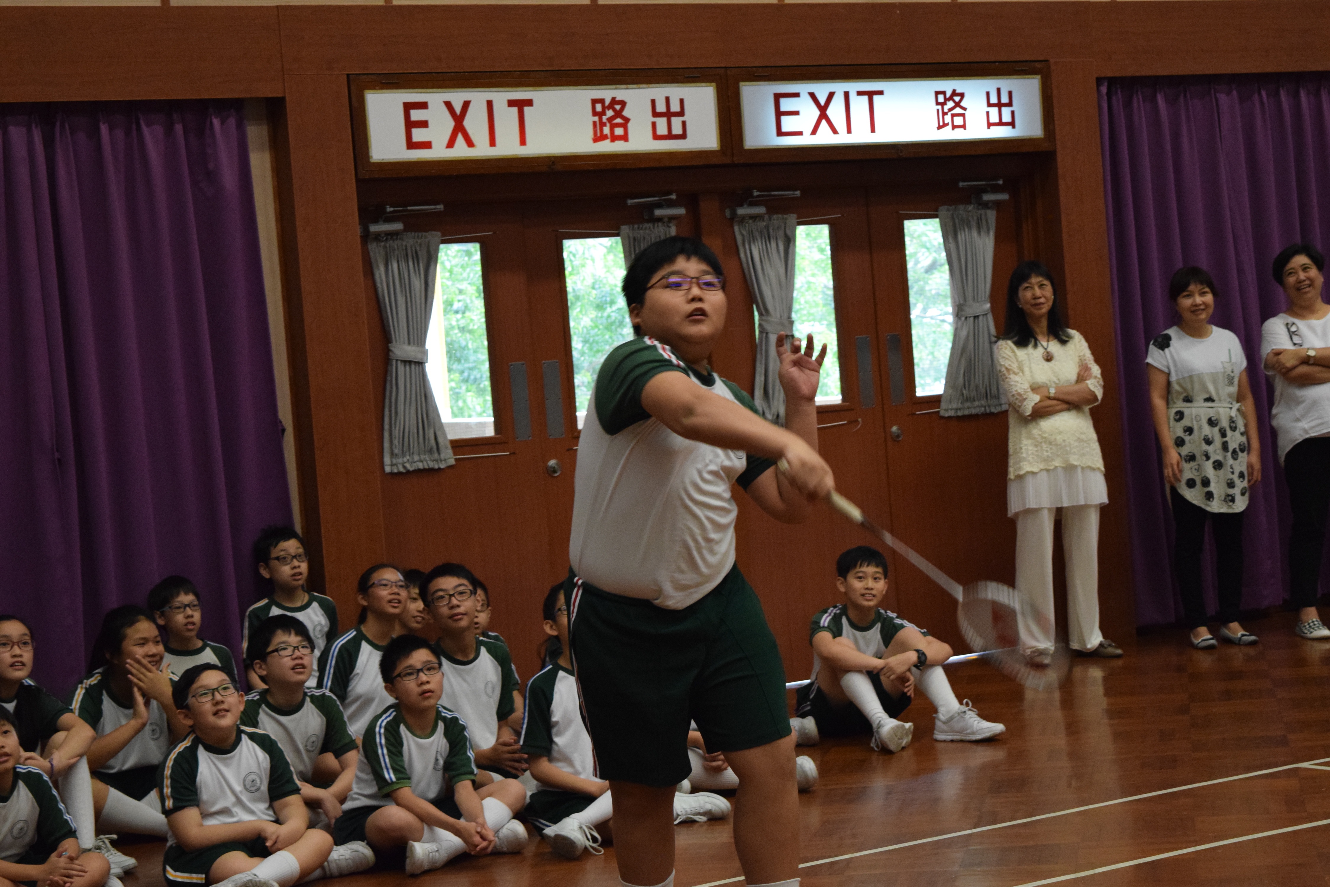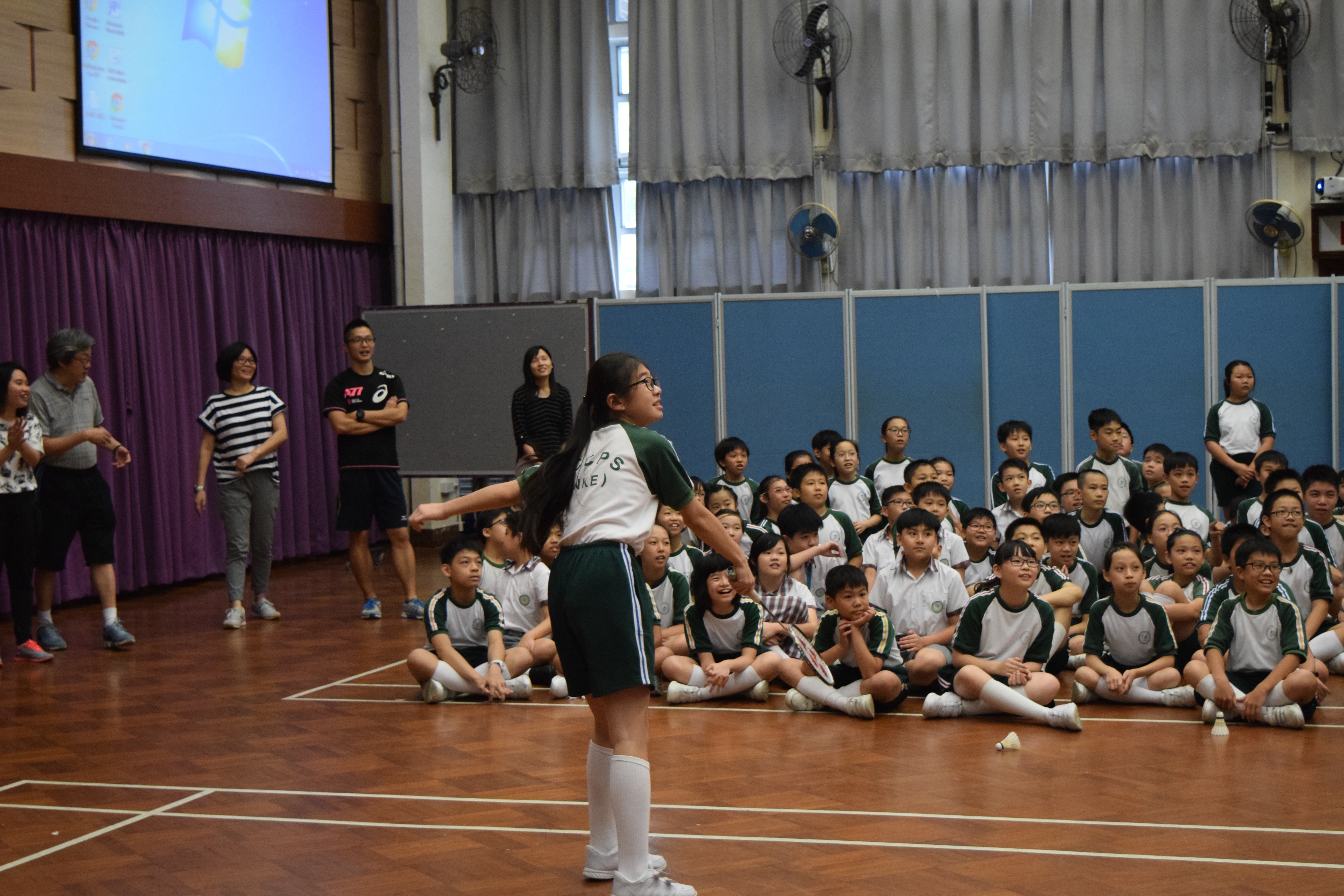 活動內容:1.東亞運羽毛球女單金牌得主葉姵延小姐與學生分享運動員感受; 2.葉姵延小姐與羽毛球教練向學生示範羽毛球基本技巧; 3.邀請本校老師及學生與葉姵延小姐作友誼比賽。