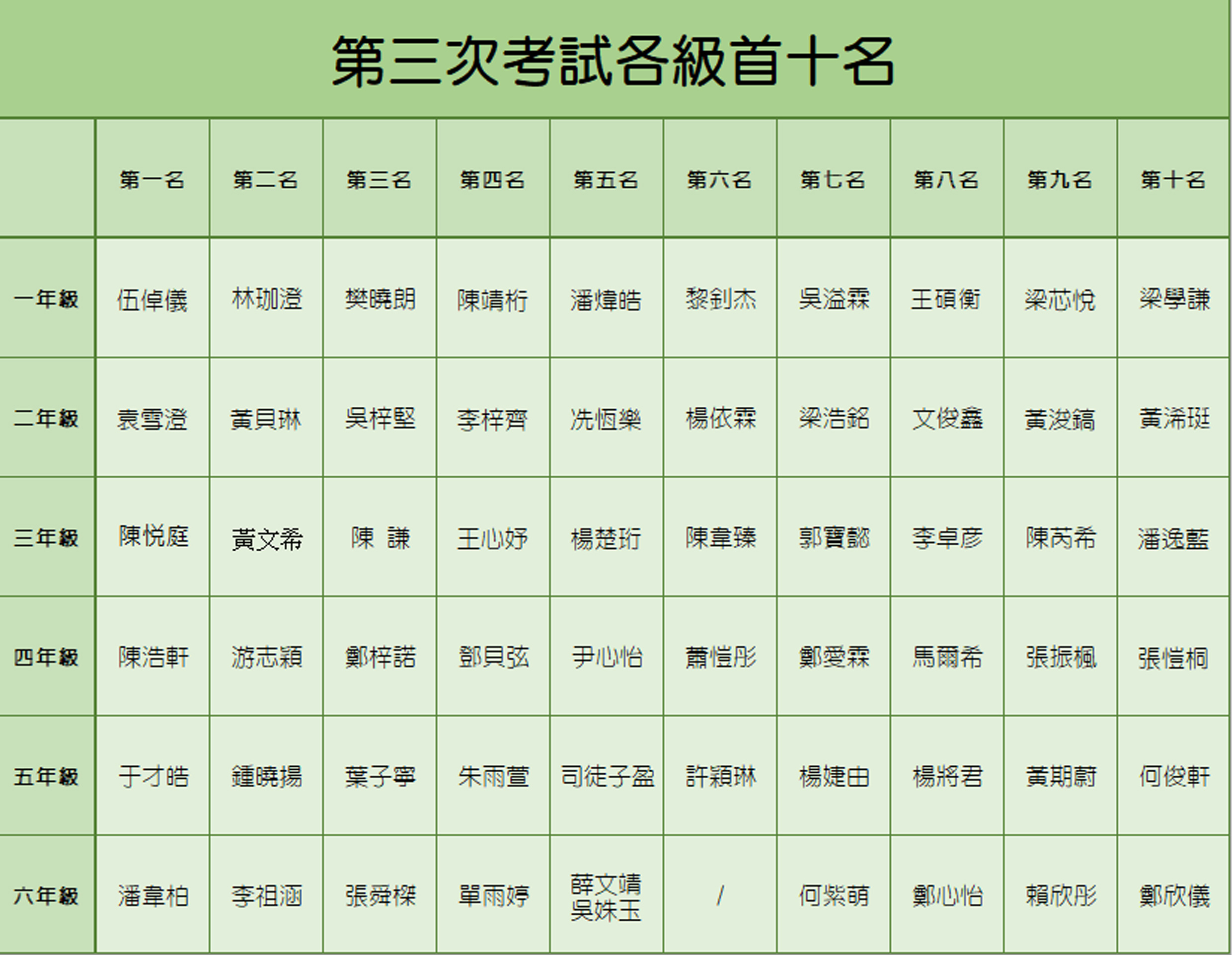 第三次考試成績龍虎榜