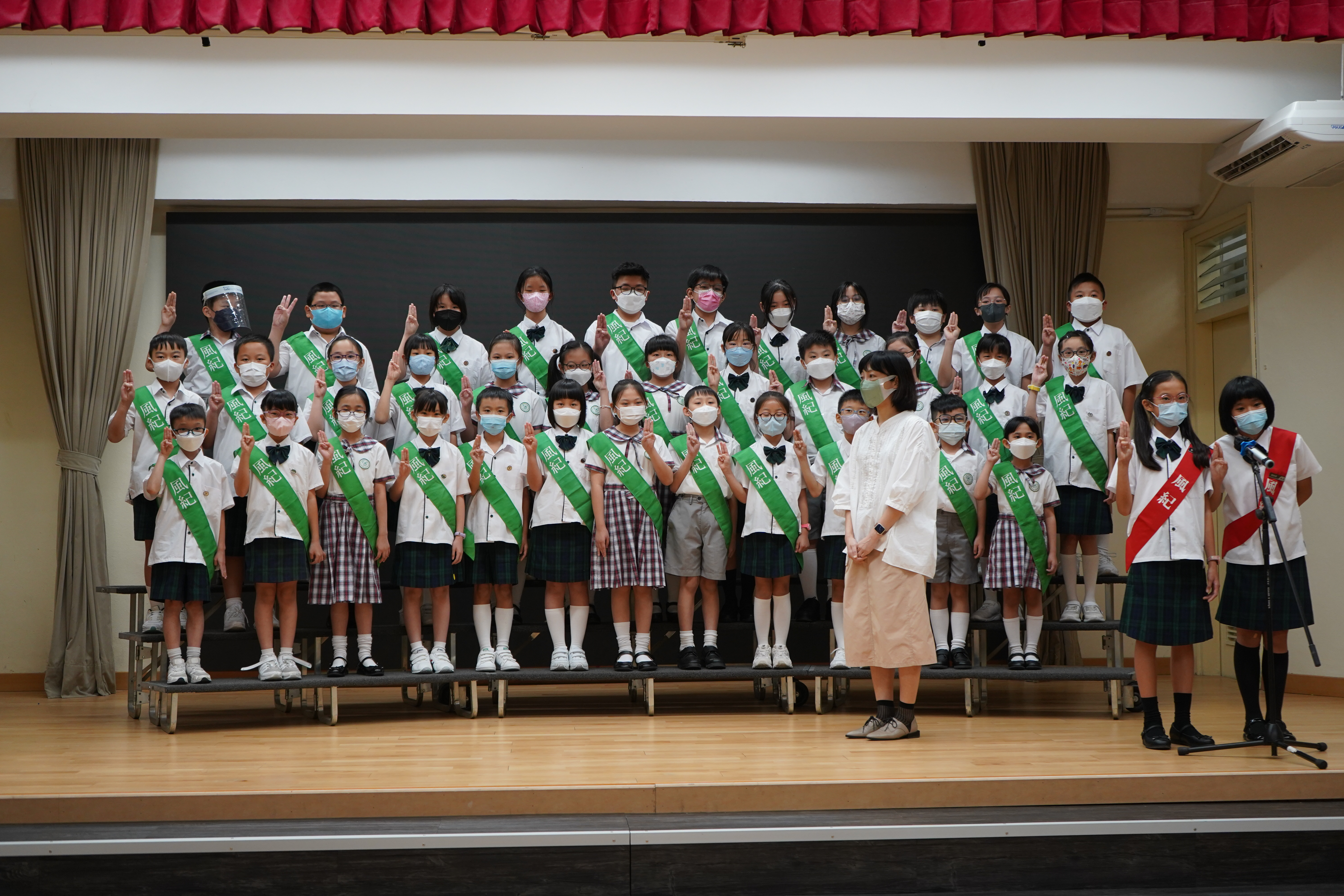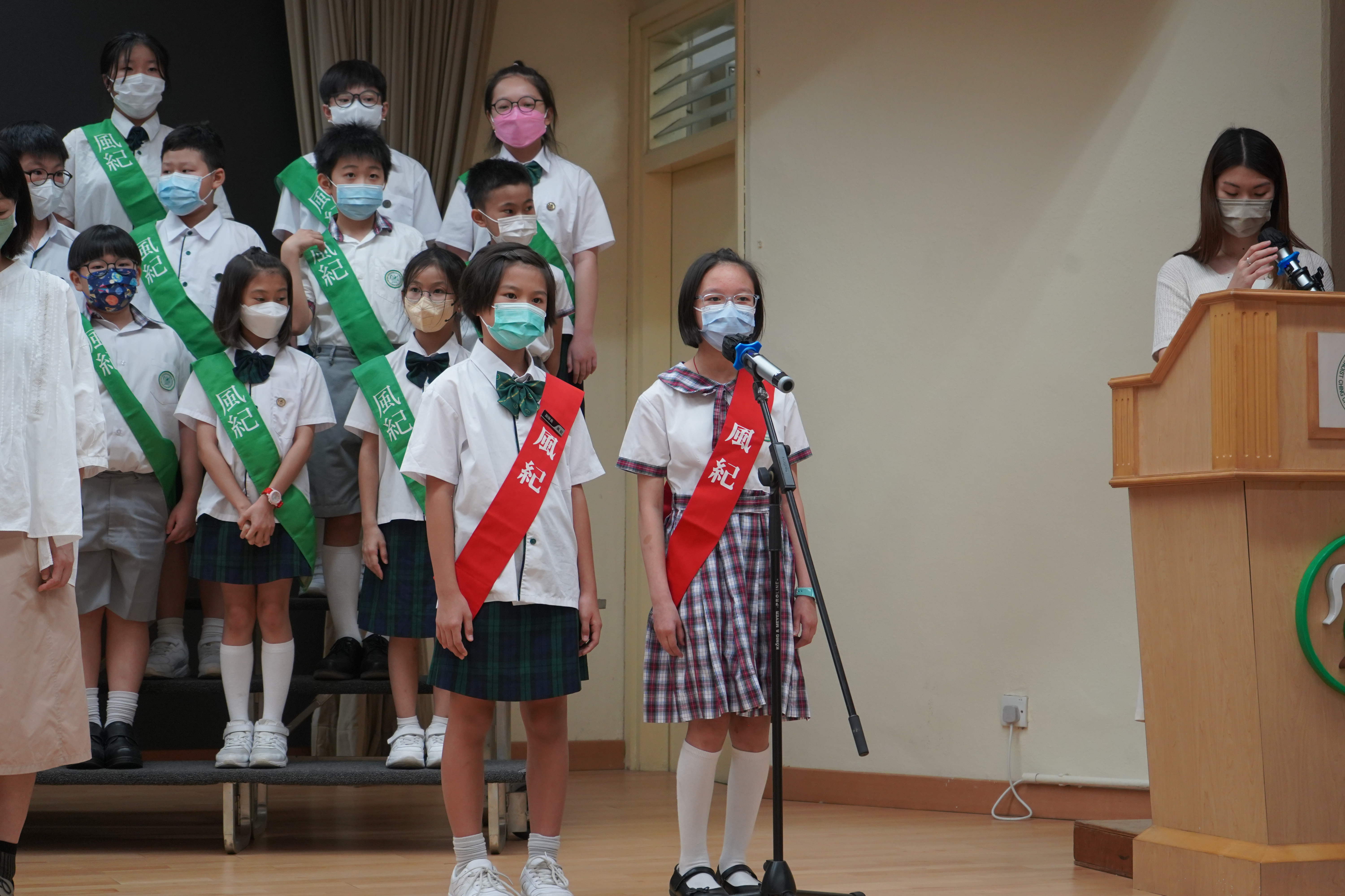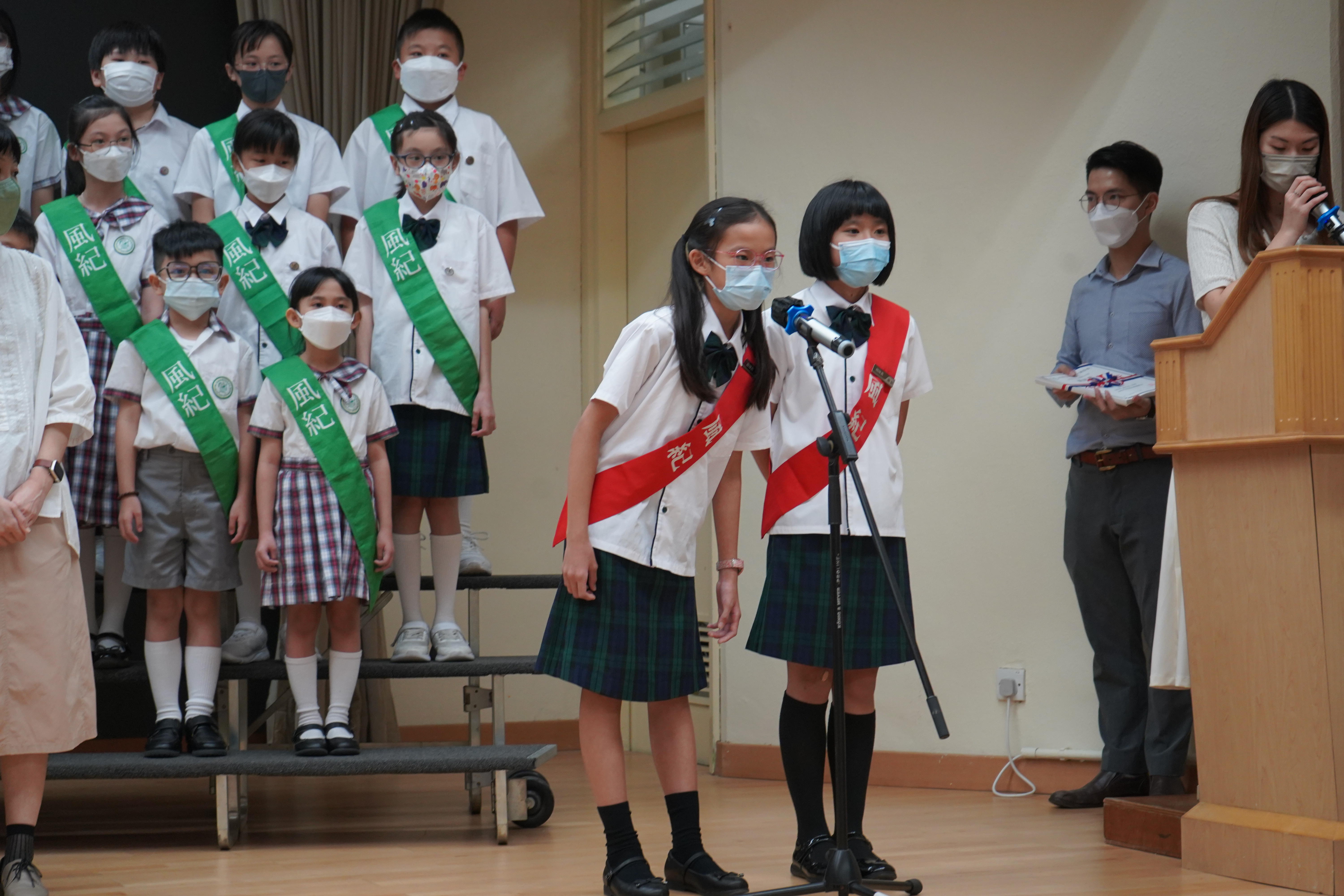 風紀隊員於文副校長的監誓及三位負責老師的見證下進行宣誓,正式成為本年度的風紀隊員,肩負為學校及同學服務的使命。