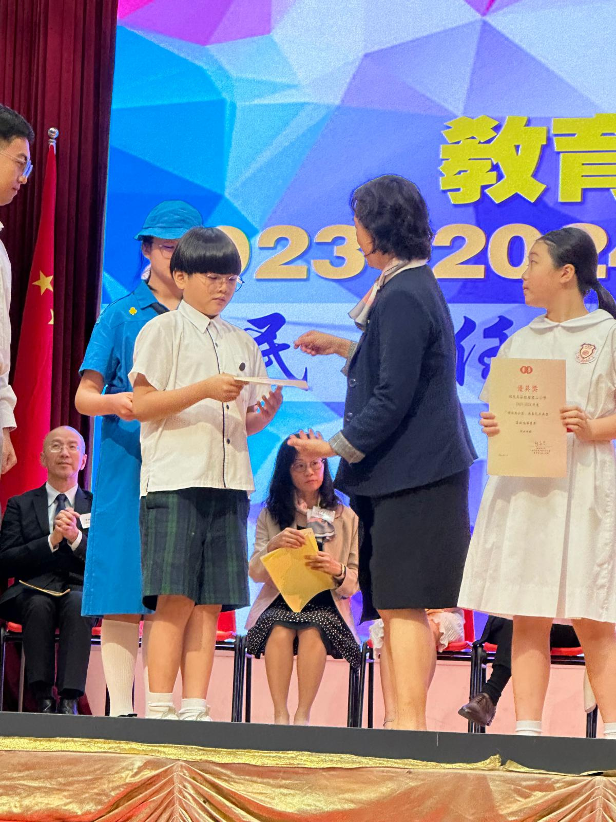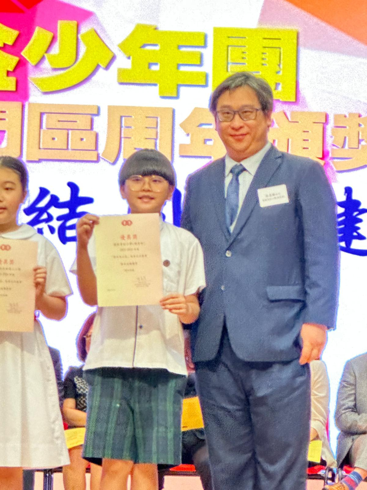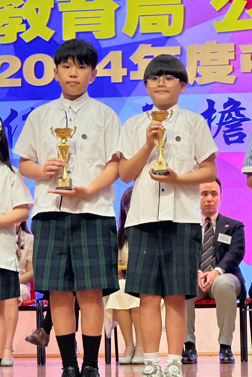 另外,3D班楊毅溱及6B班李翹希分別獲得初小組及高小組的「尊師重道好少年獎」。