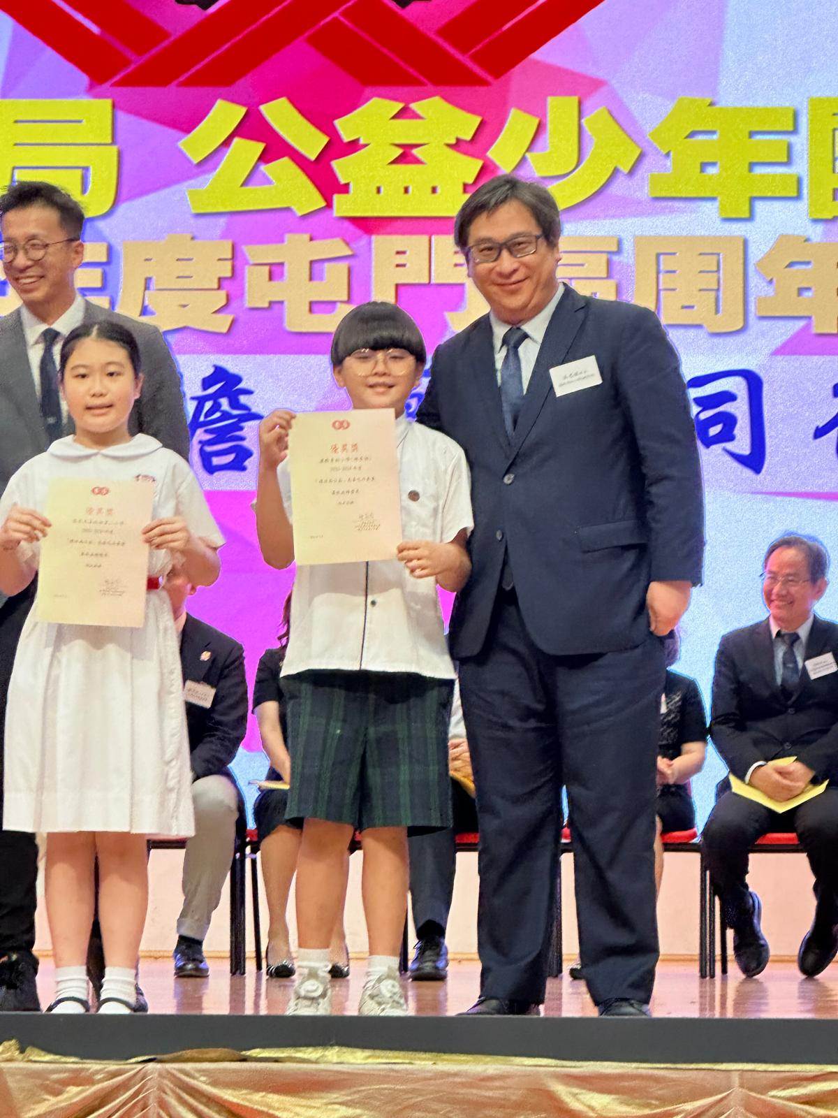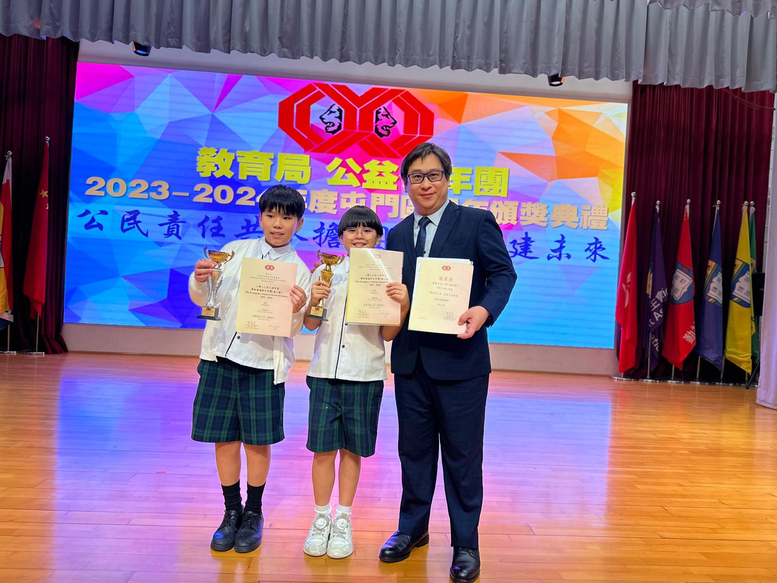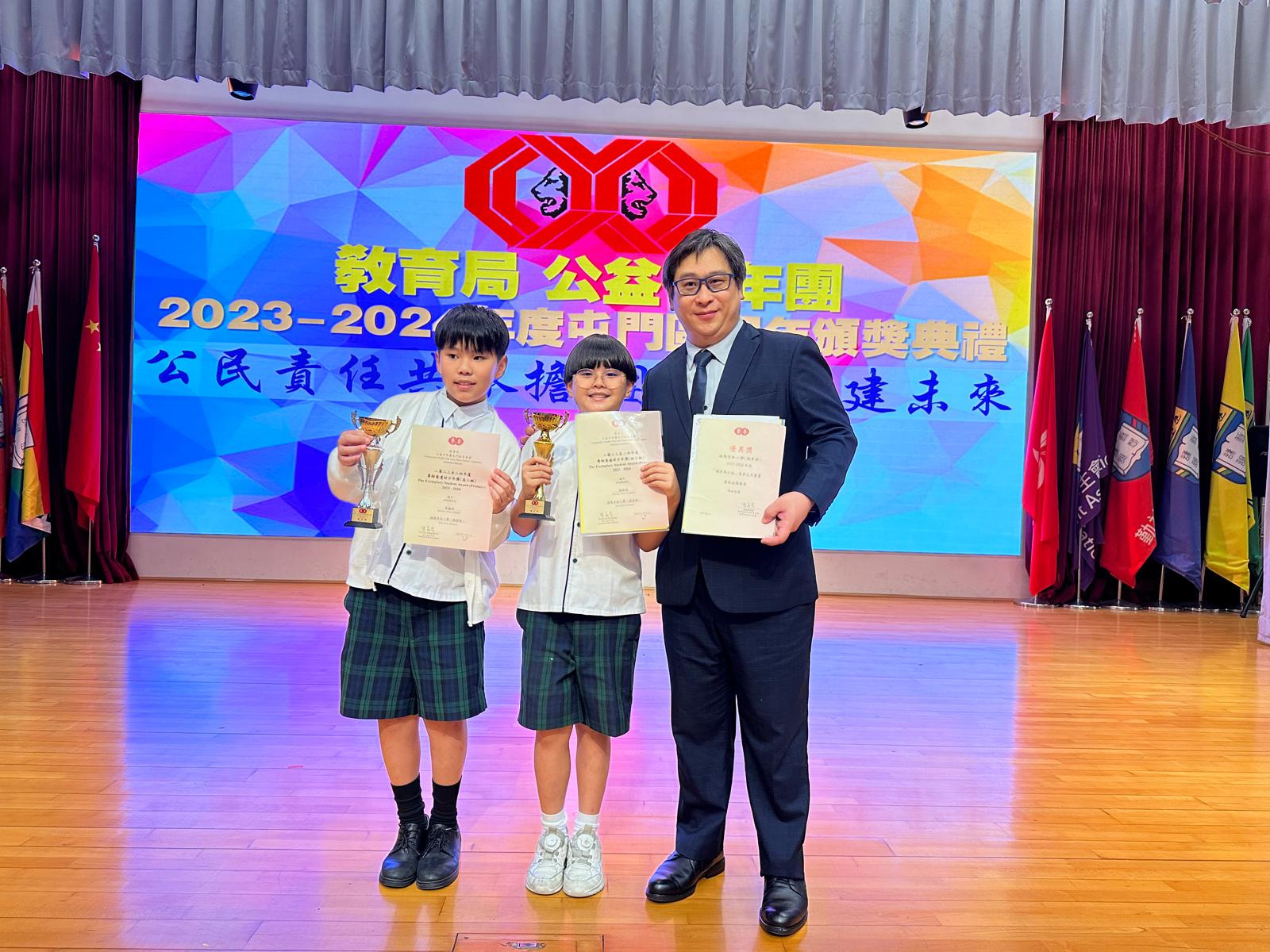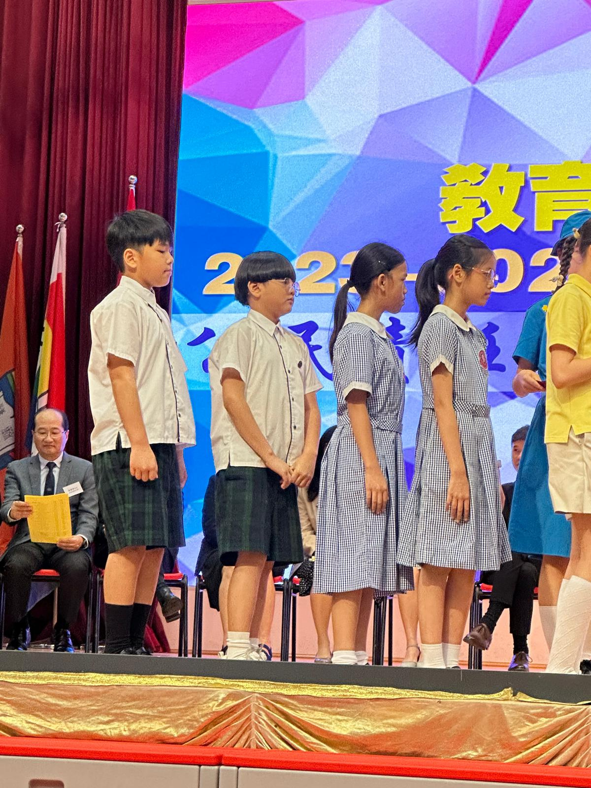 另外,3D班楊毅溱及6B班李翹希分別獲得初小組及高小組的「尊師重道好少年獎」。