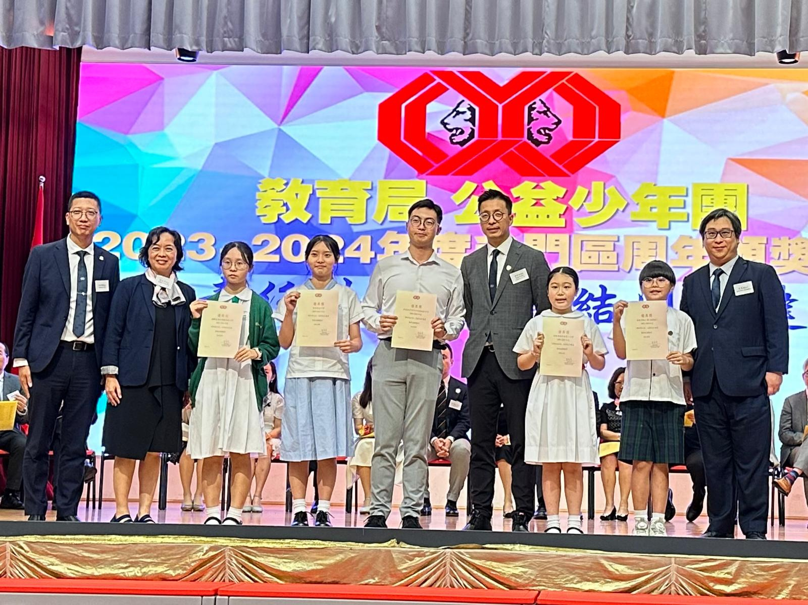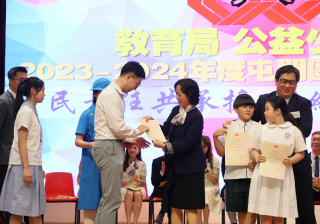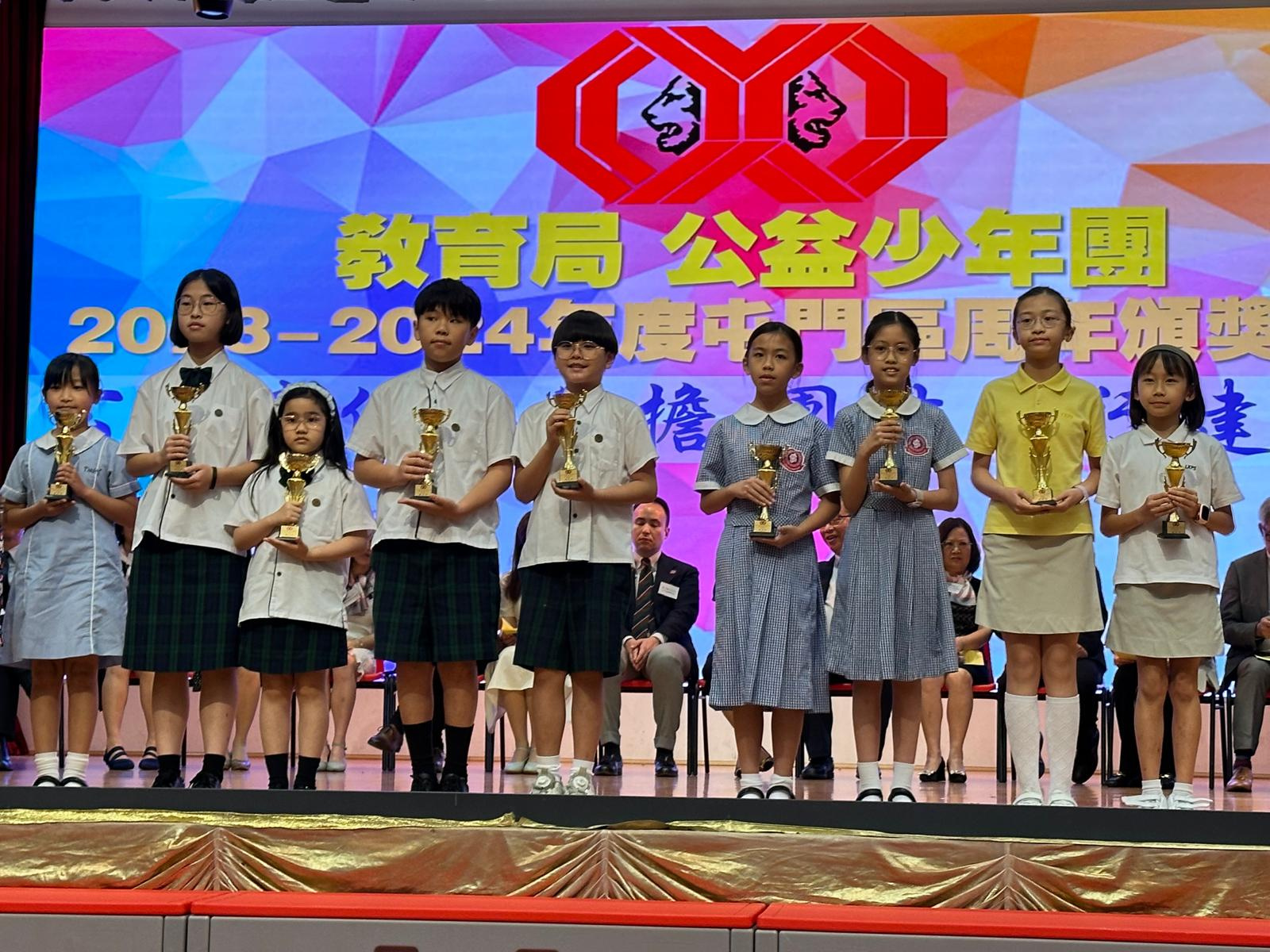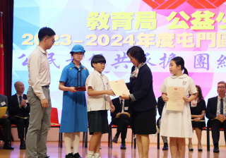 本校於2023-2024年度公益少年團屯門區周年頒獎典禮獲得「環保為公益」慈善花卉義賣籌款獎項的優異獎。