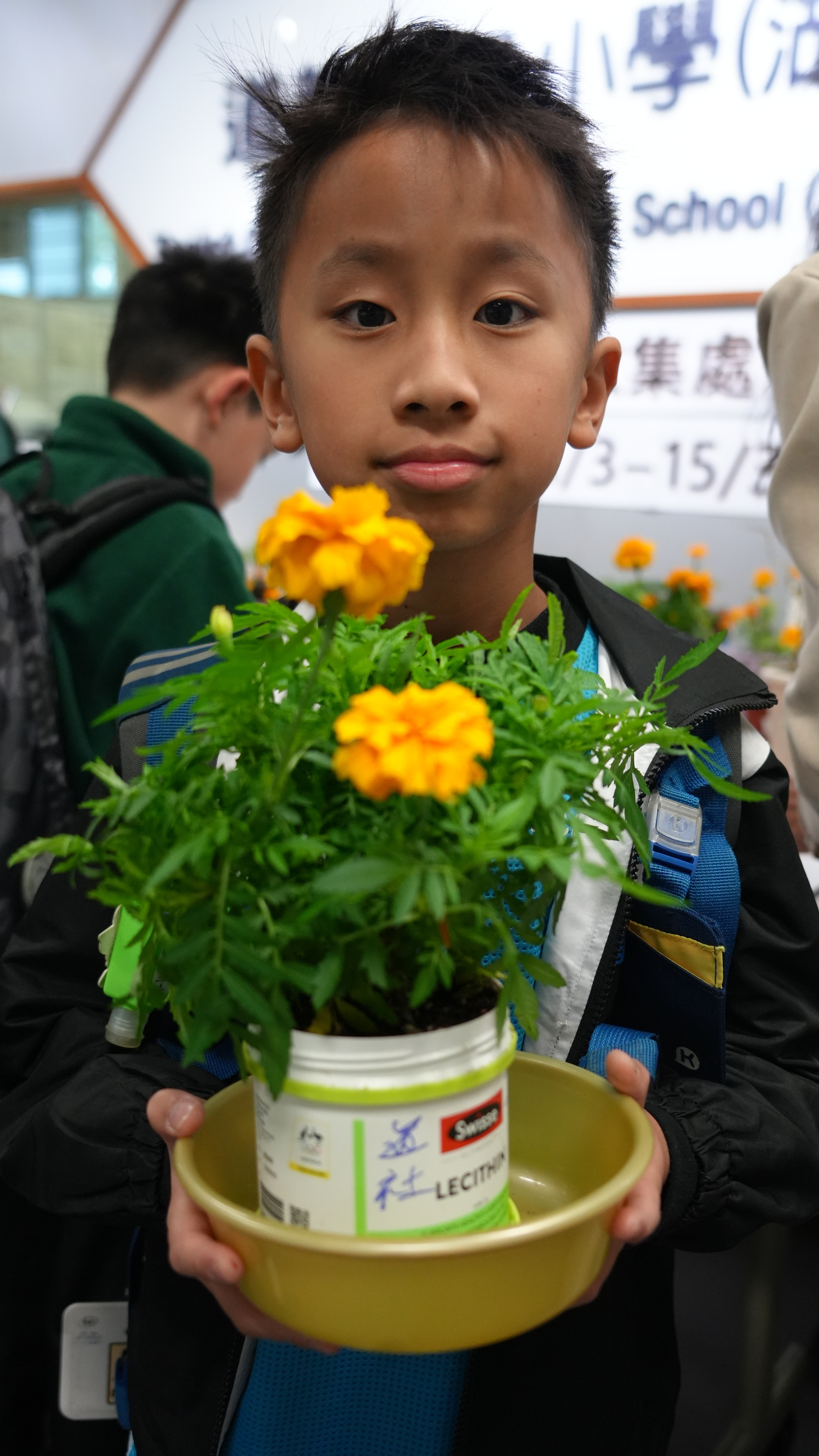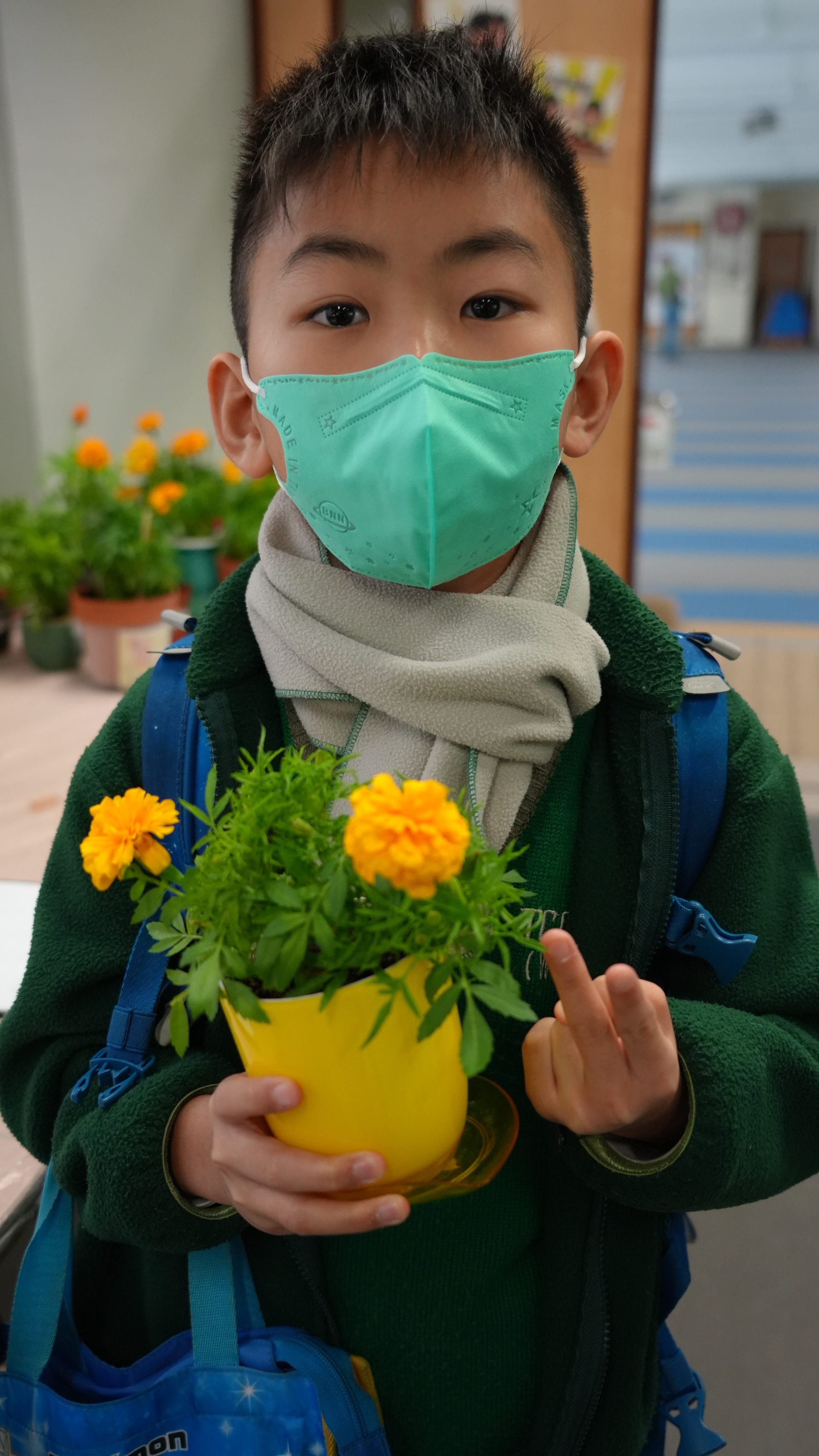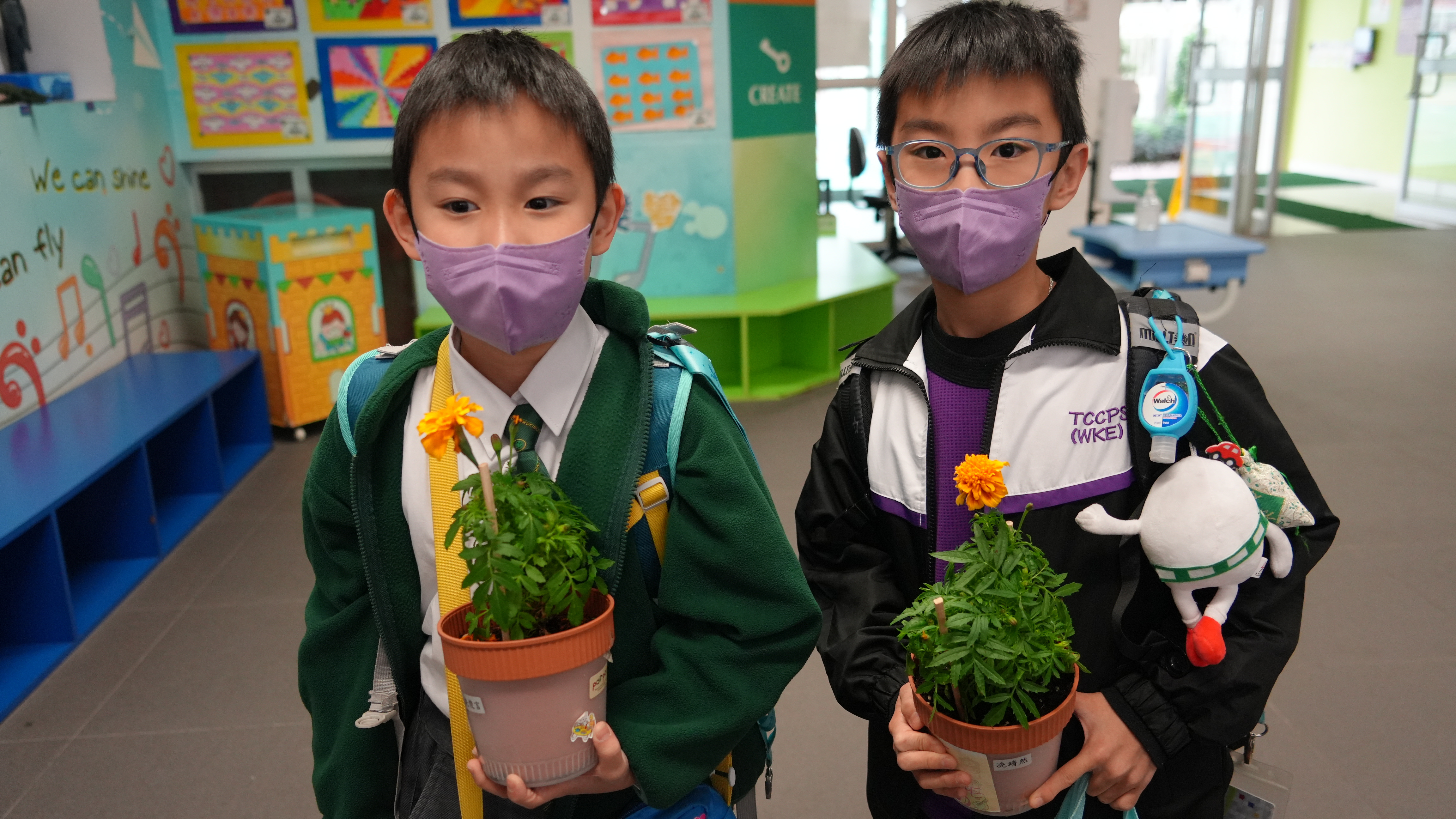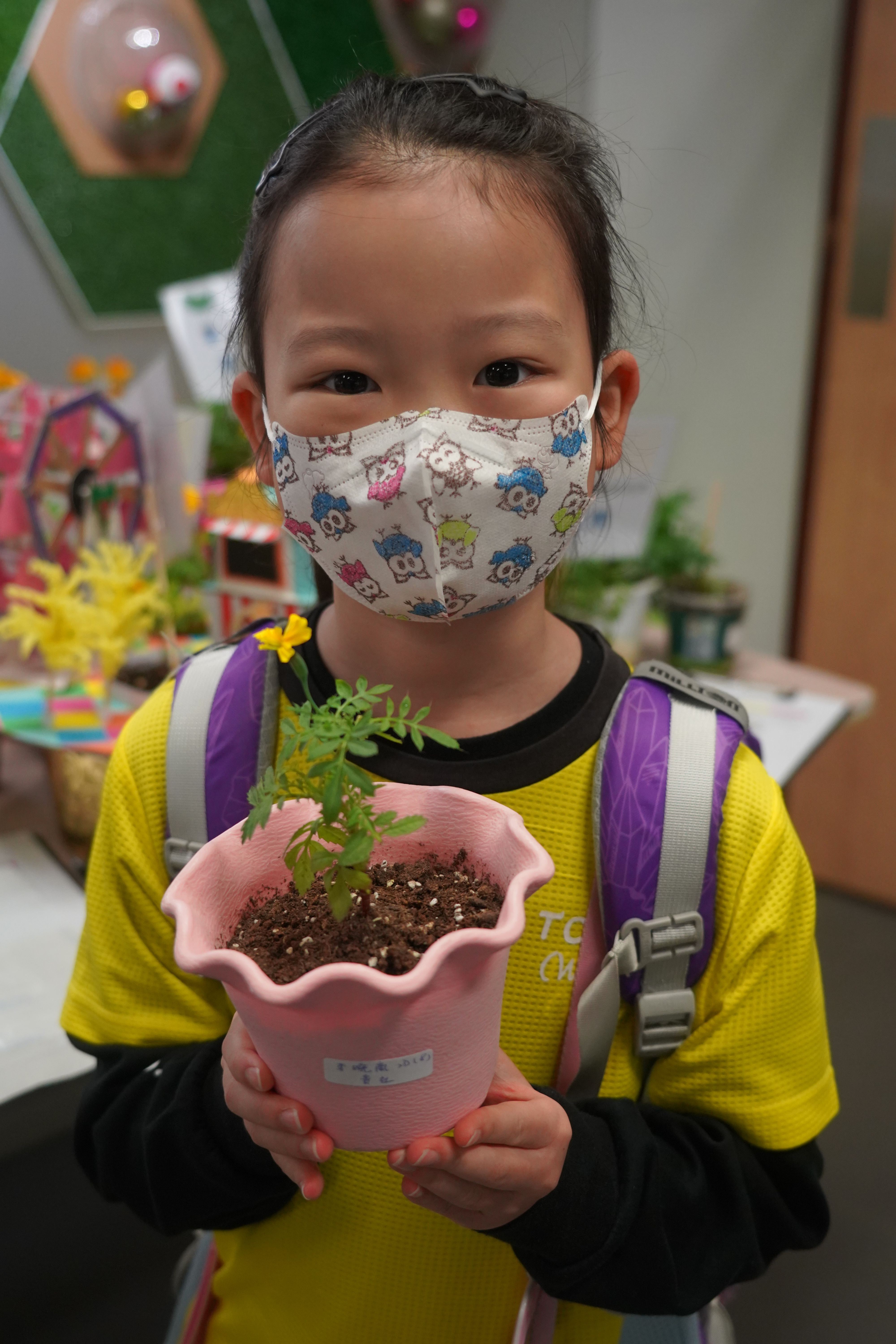 本年度一人一花萬壽菊種植比賽已順利完成,學校一共收到接近200盆盆栽, 交回來的萬壽菊千姿百態,可見同學花了不少心思悉心栽種;另外同學亦發揮創意,利用不同容器設計環保花盆,別具特色。