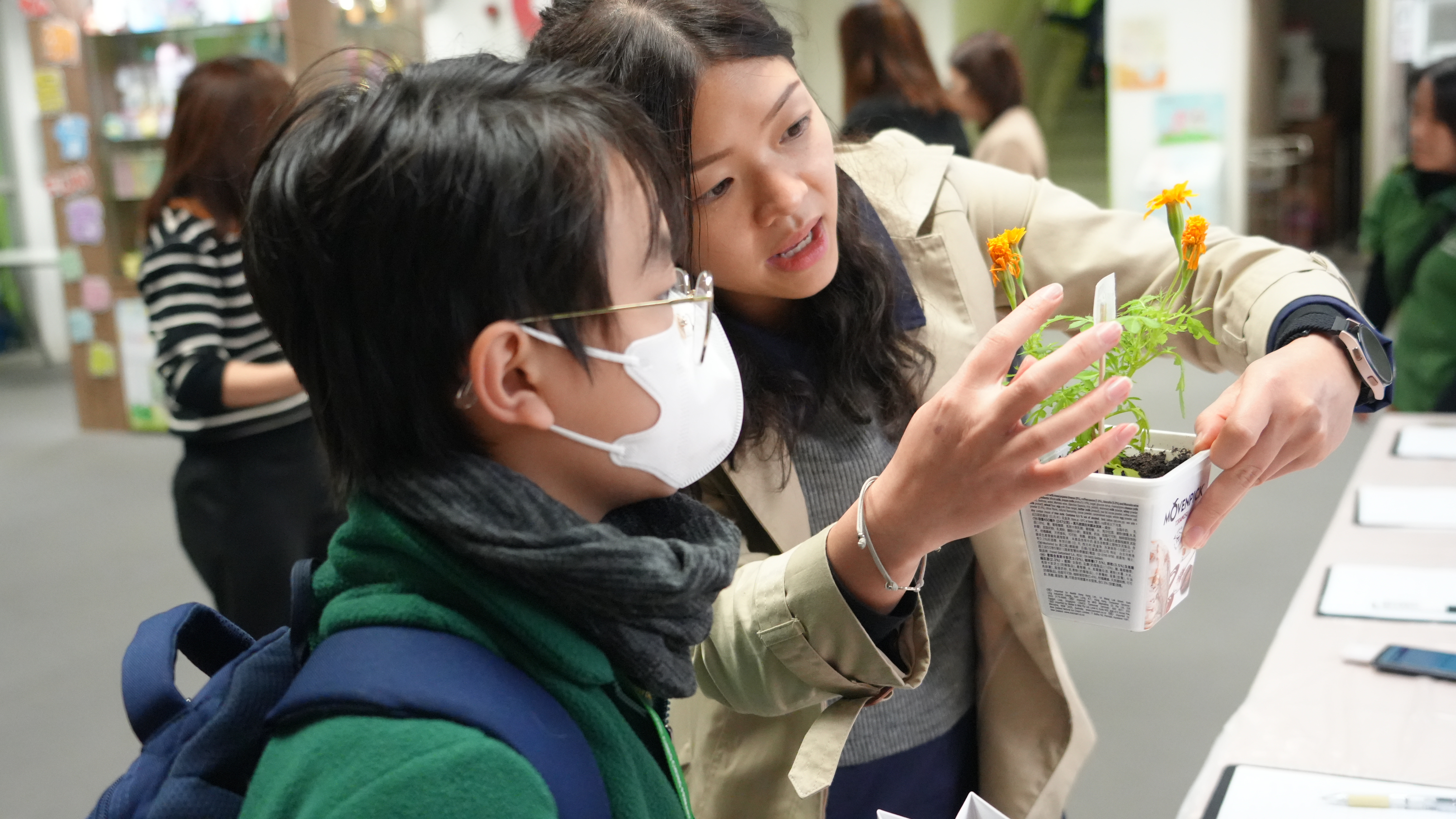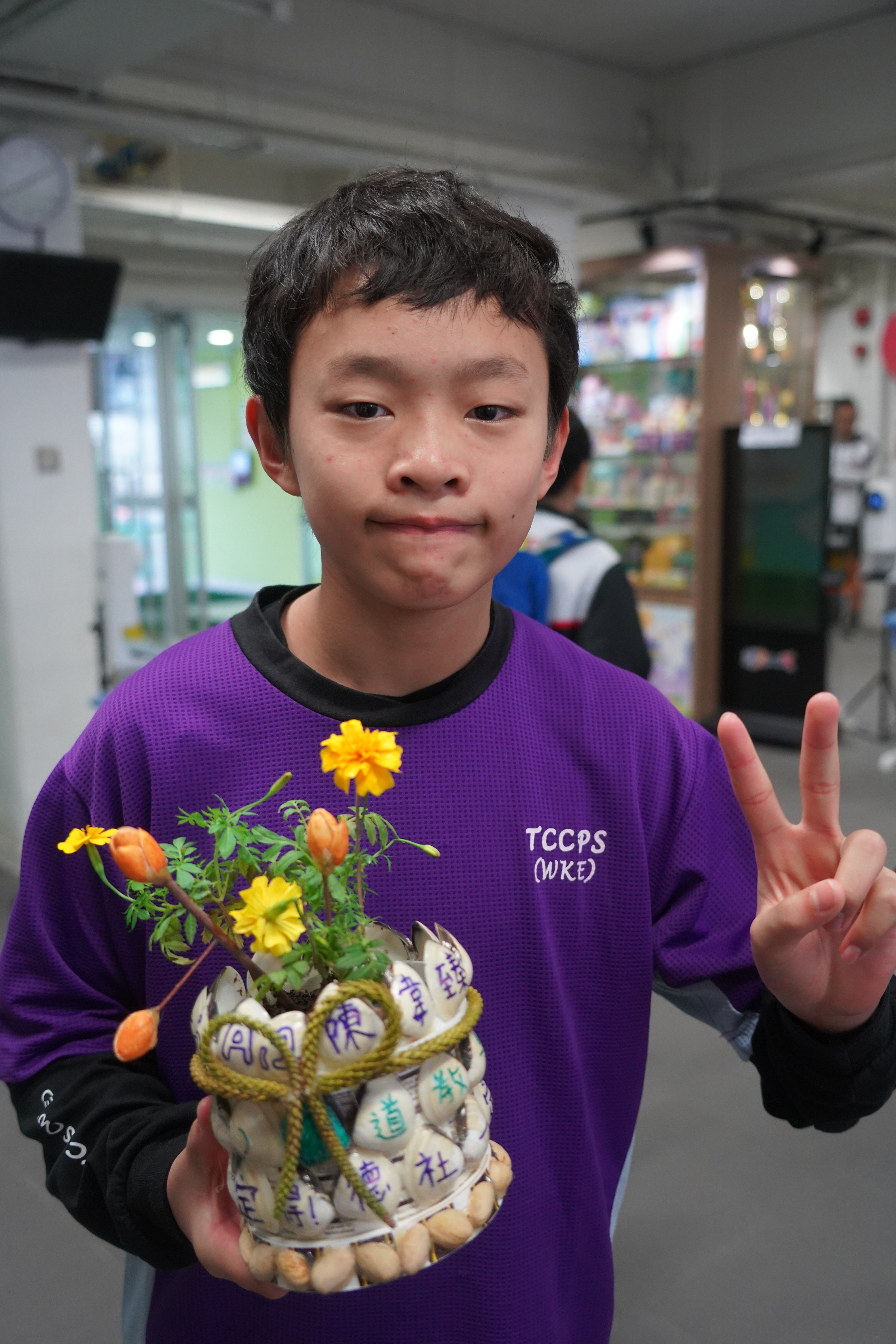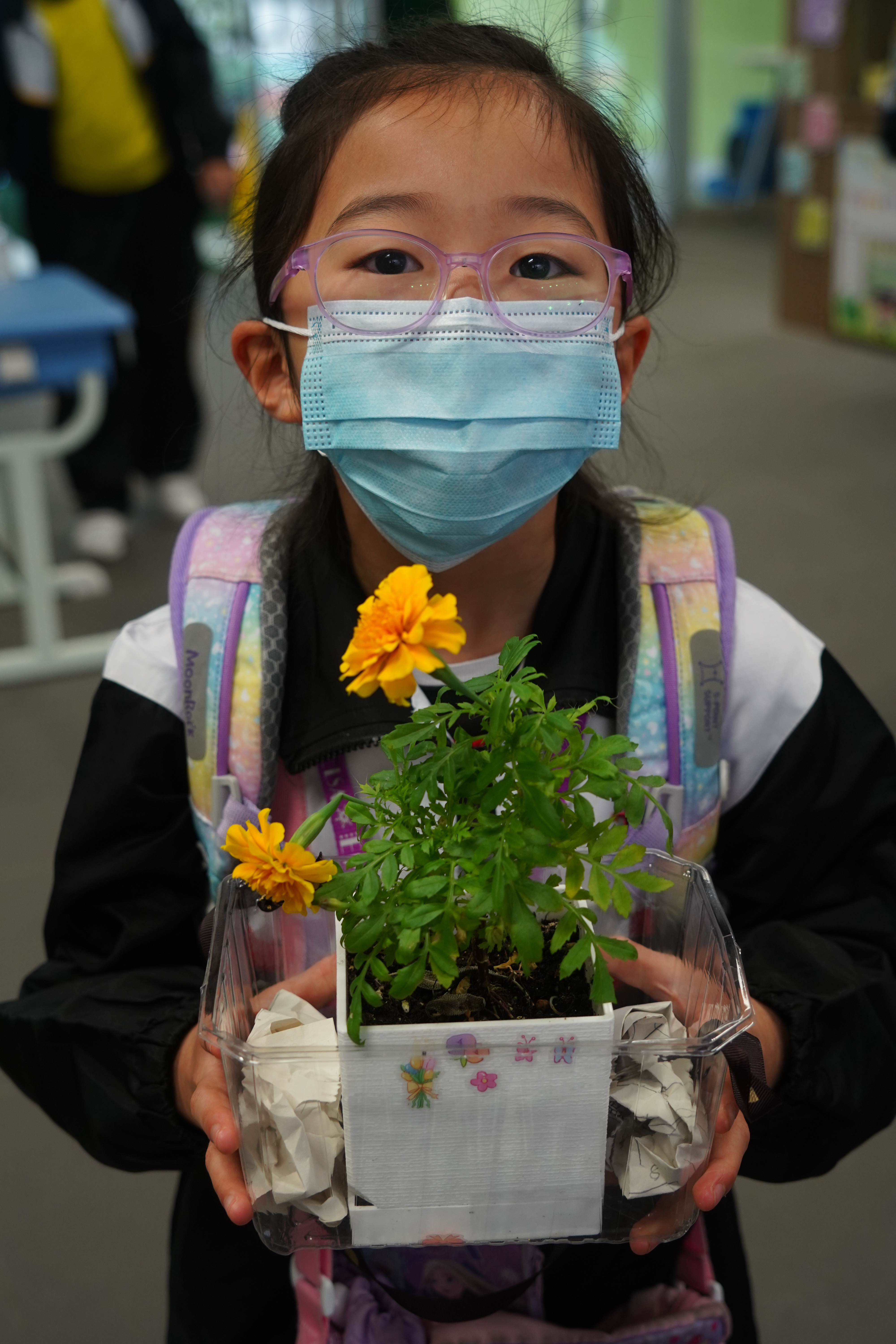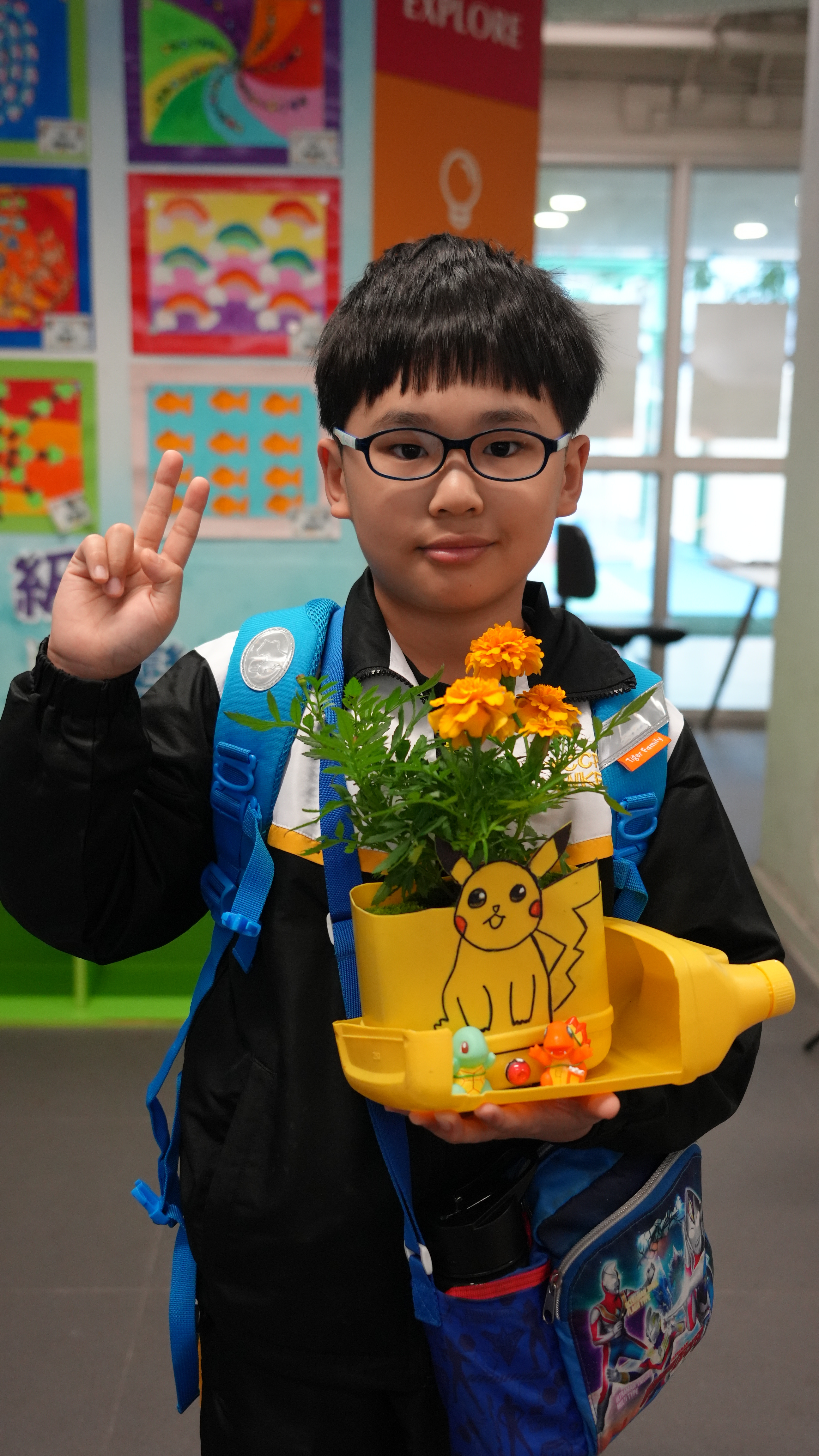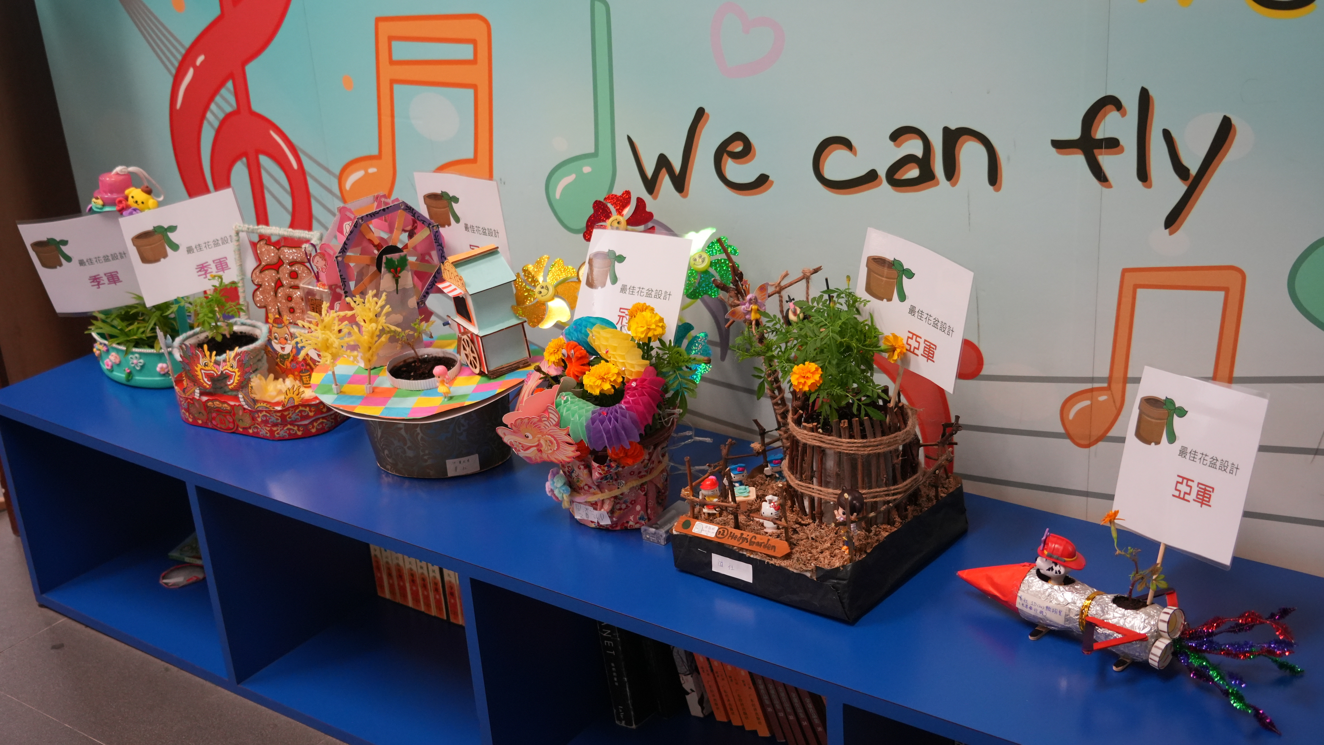 本年度一人一花萬壽菊種植比賽已順利完成,學校一共收到接近200盆盆栽, 交回來的萬壽菊千姿百態,可見同學花了不少心思悉心栽種;另外同學亦發揮創意,利用不同容器設計環保花盆,別具特色。