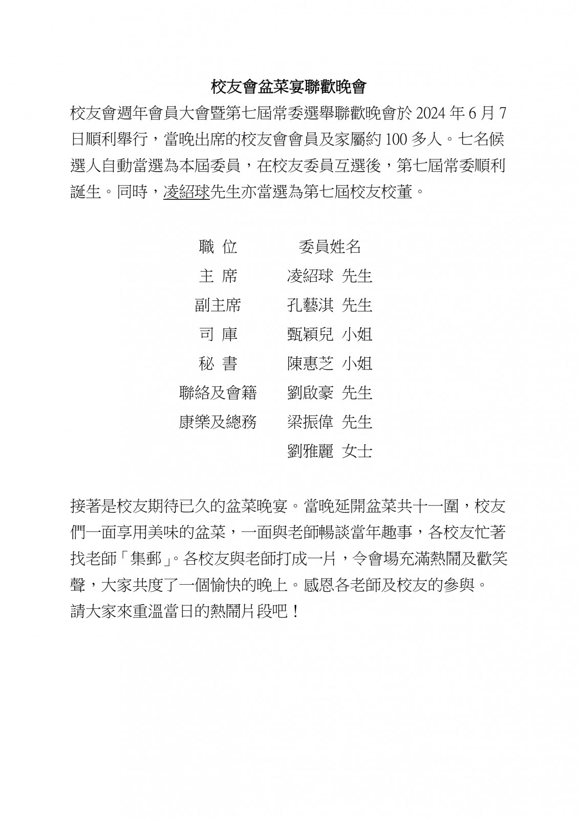 校友會盆菜宴聯歡晚會