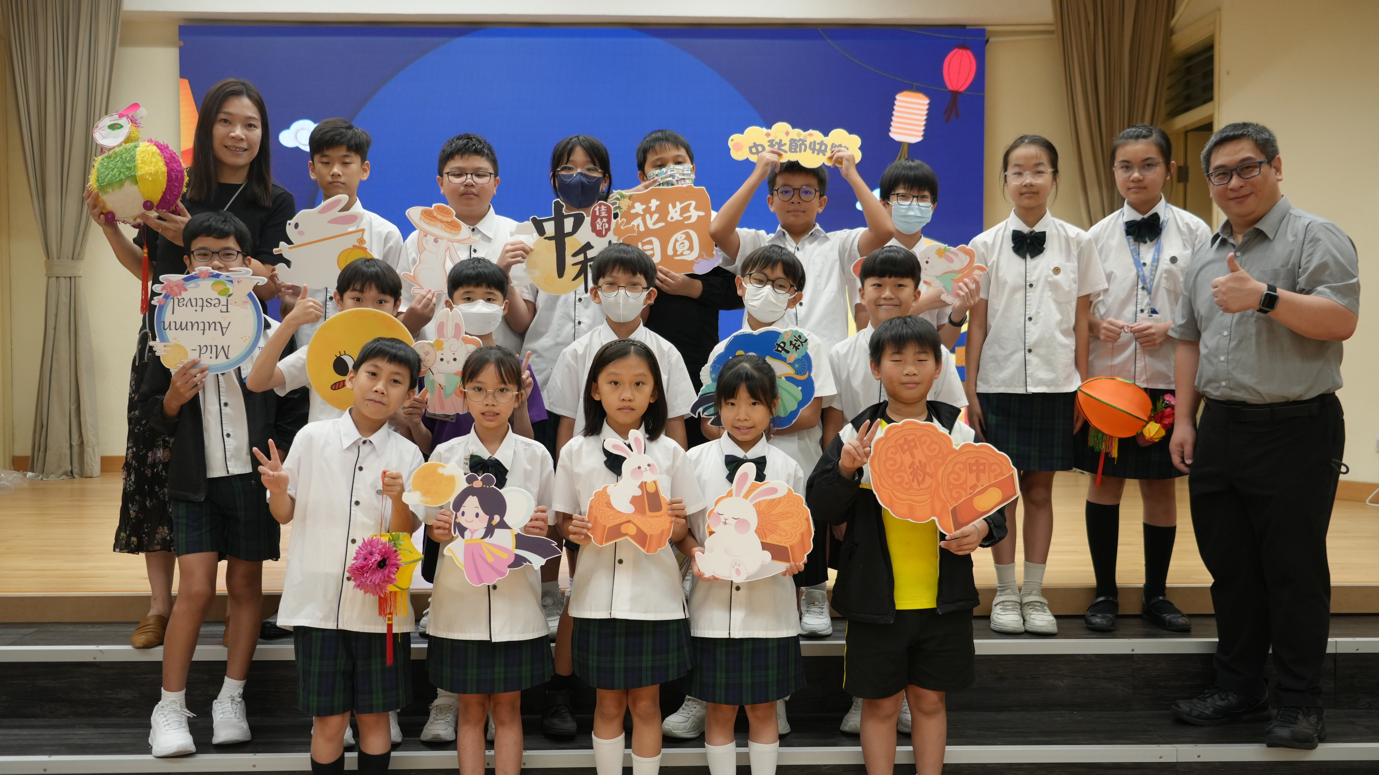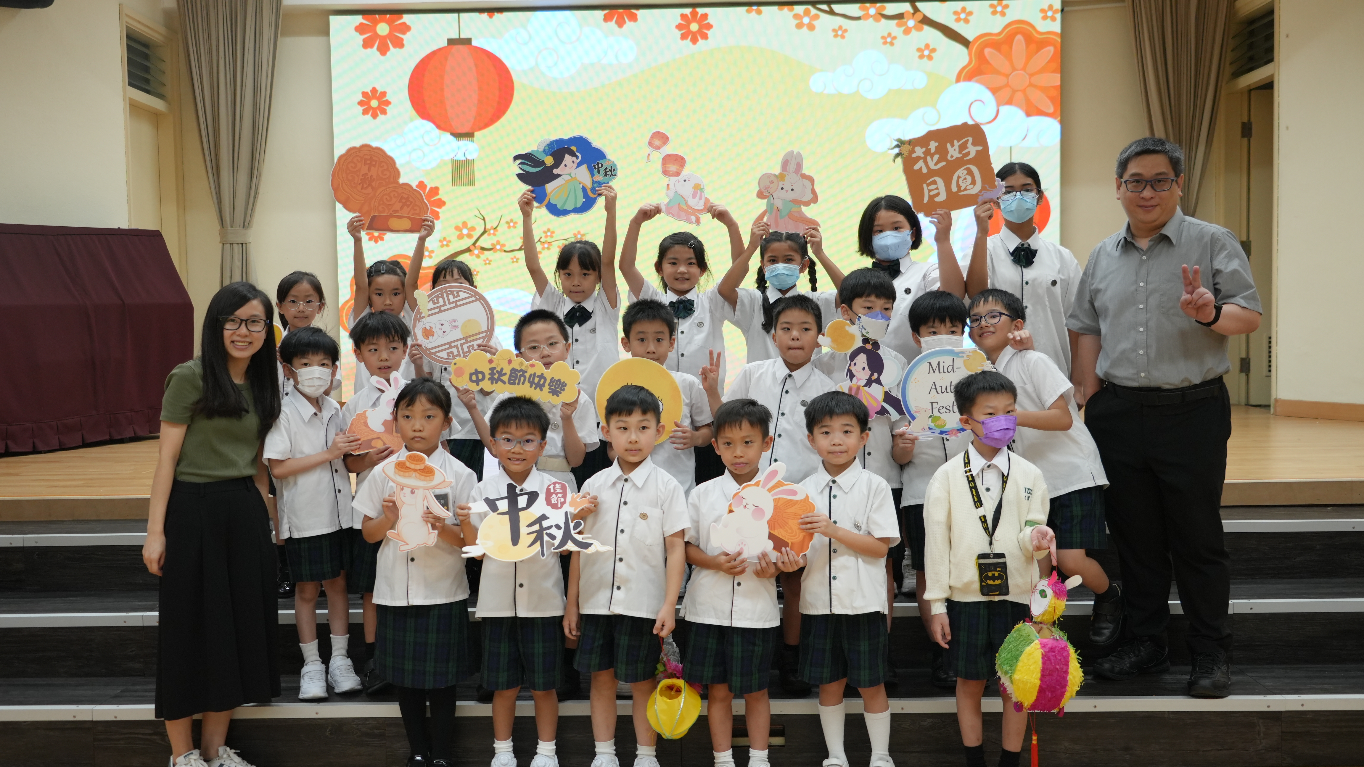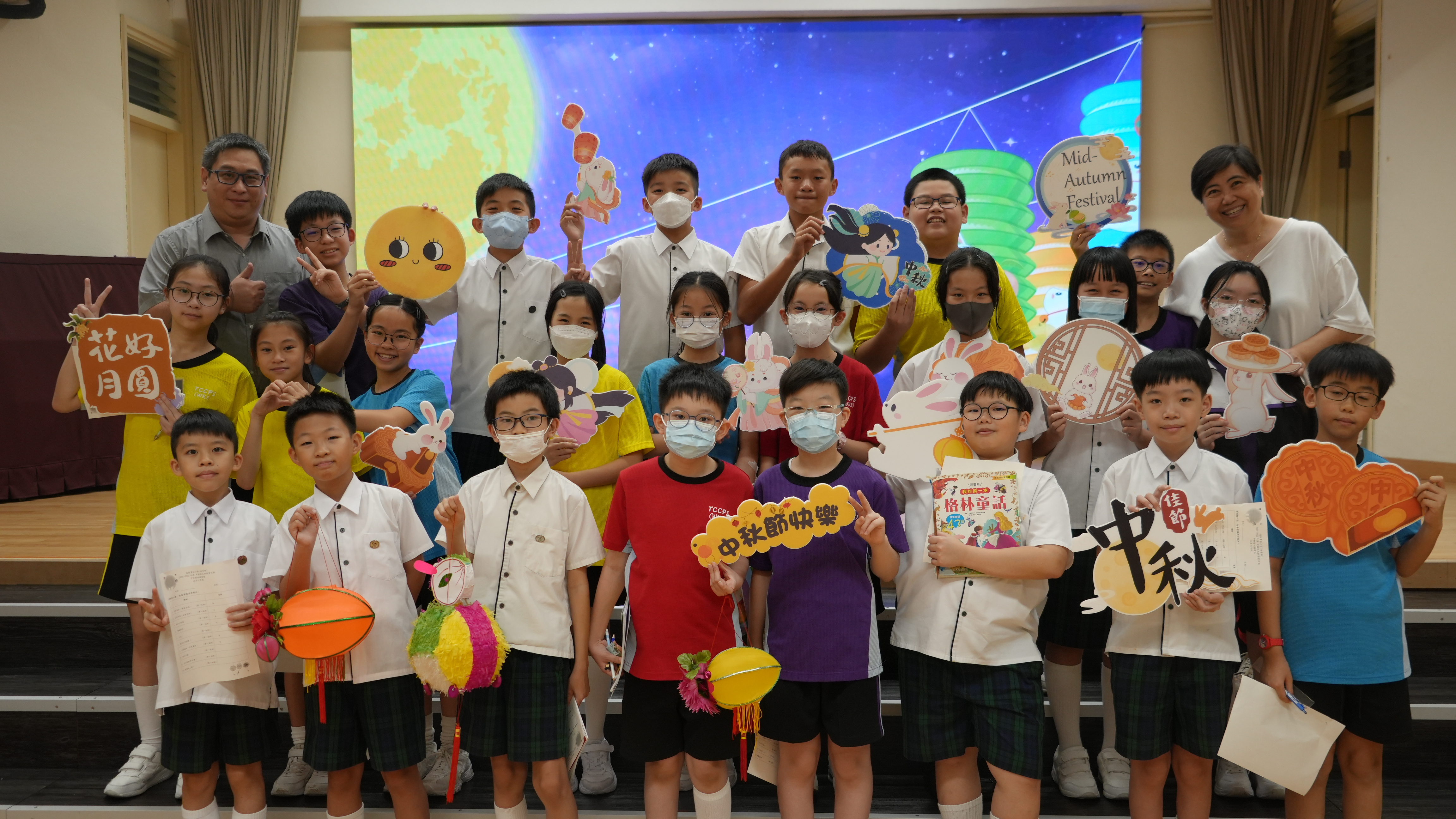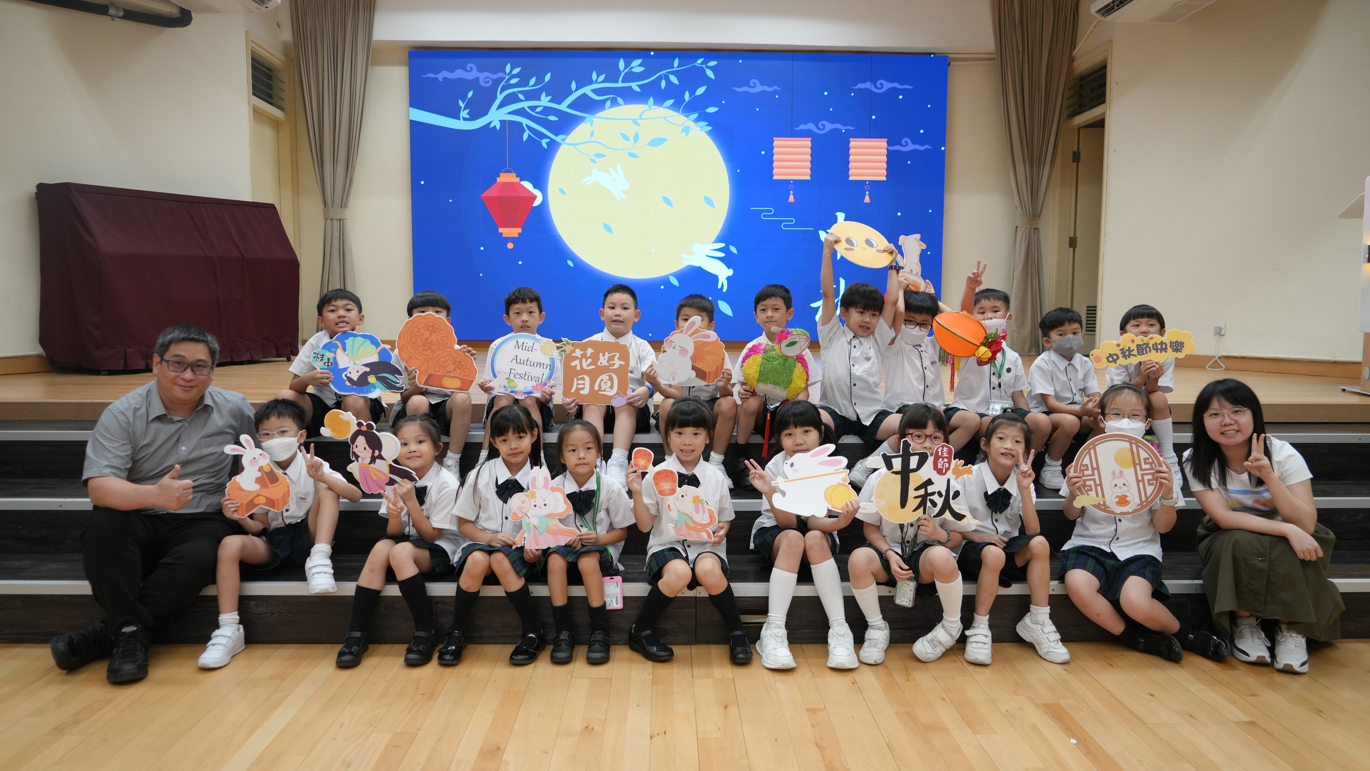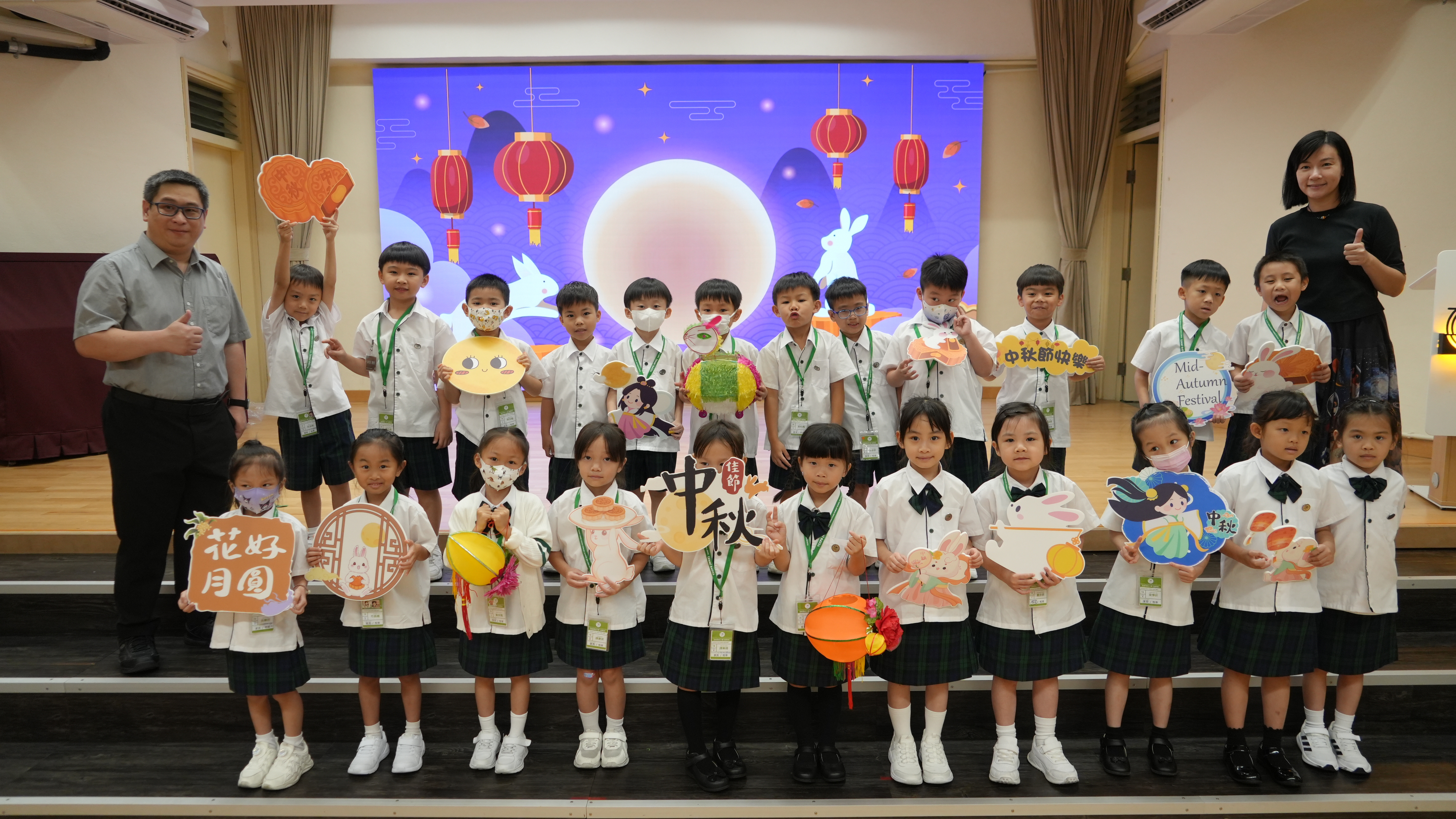 本校於9月17日(二)舉辦「團團圓圓慶中秋」活動,同學們到禮堂進行猜燈謎活動並獲派小燈籠一個,感受濃濃的節日氣氛。