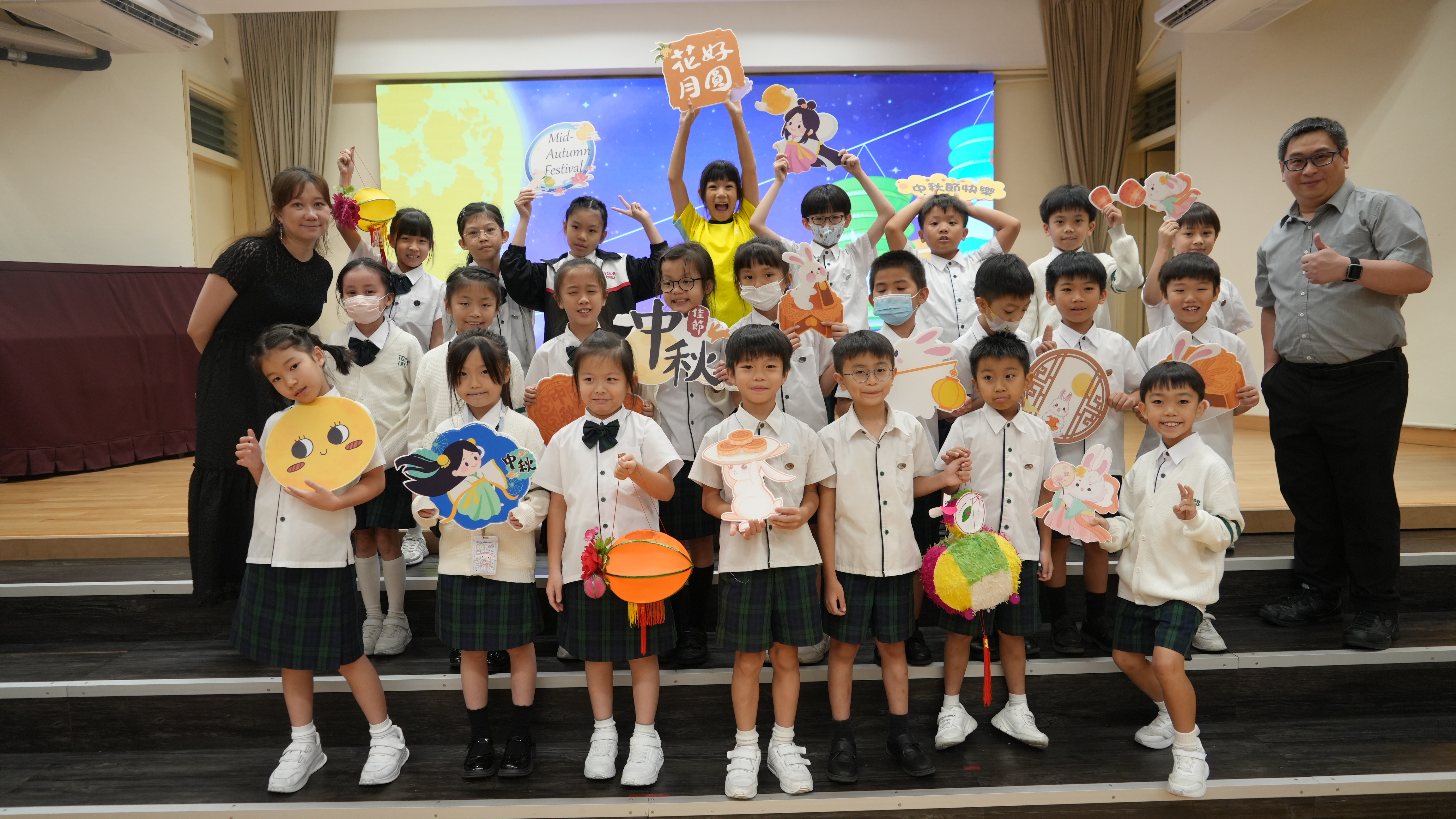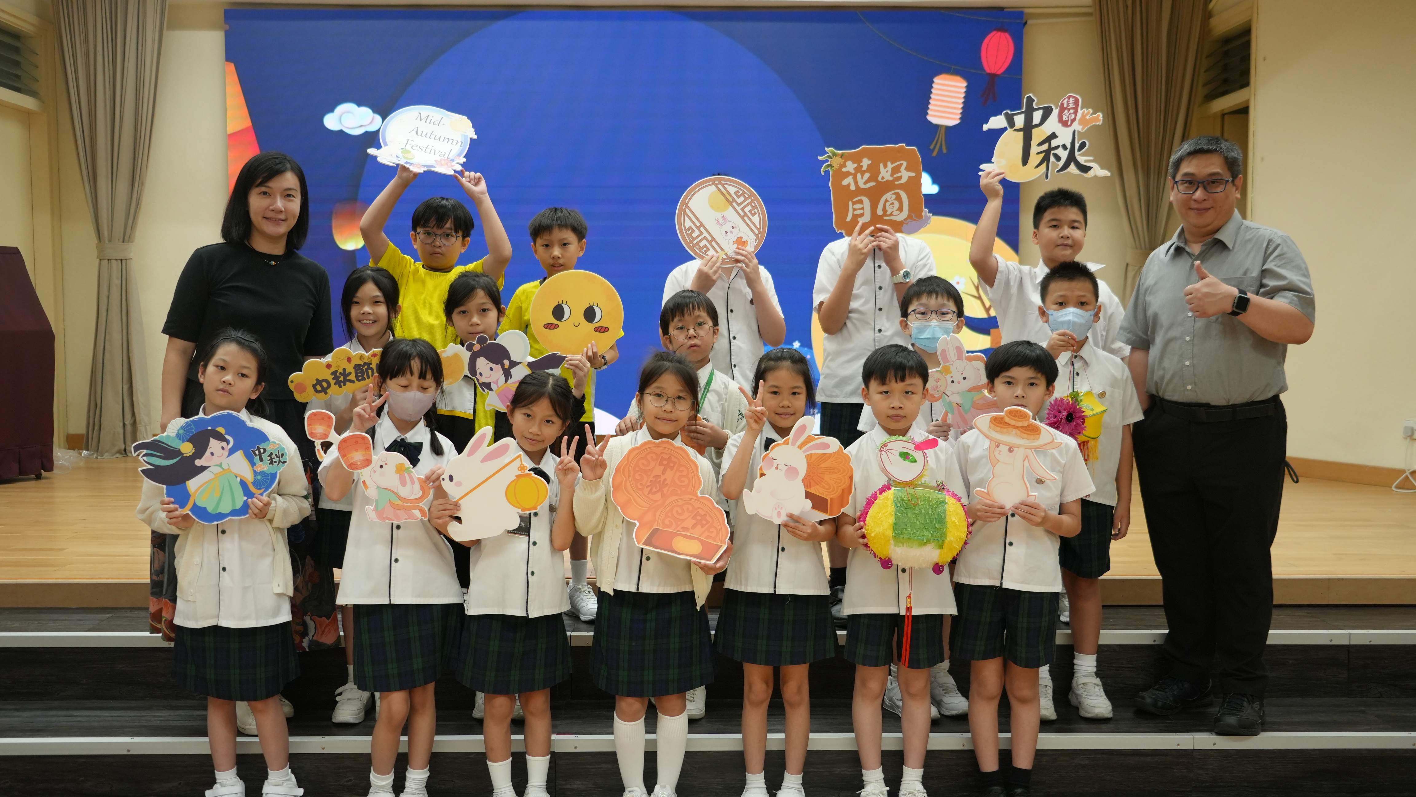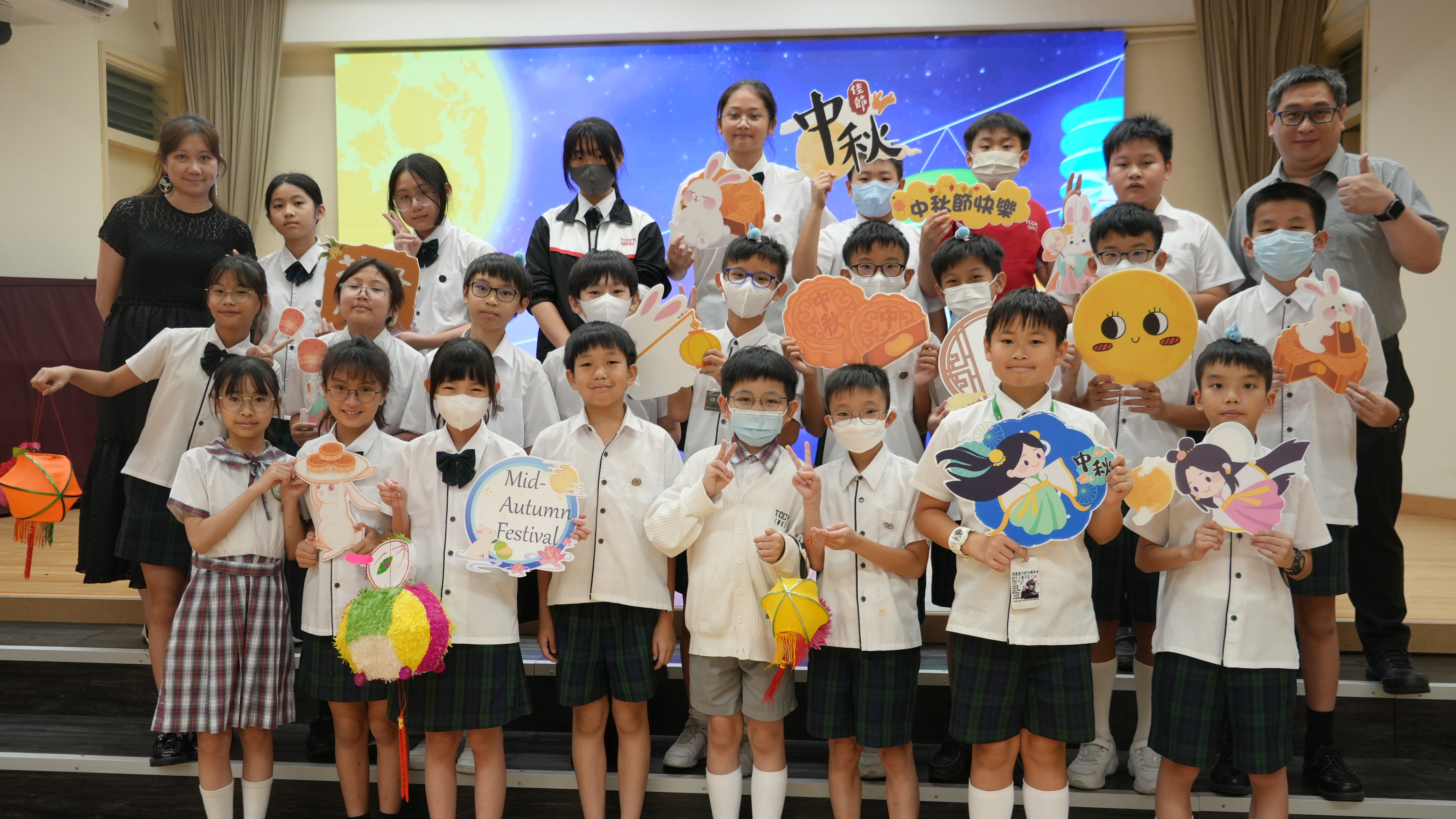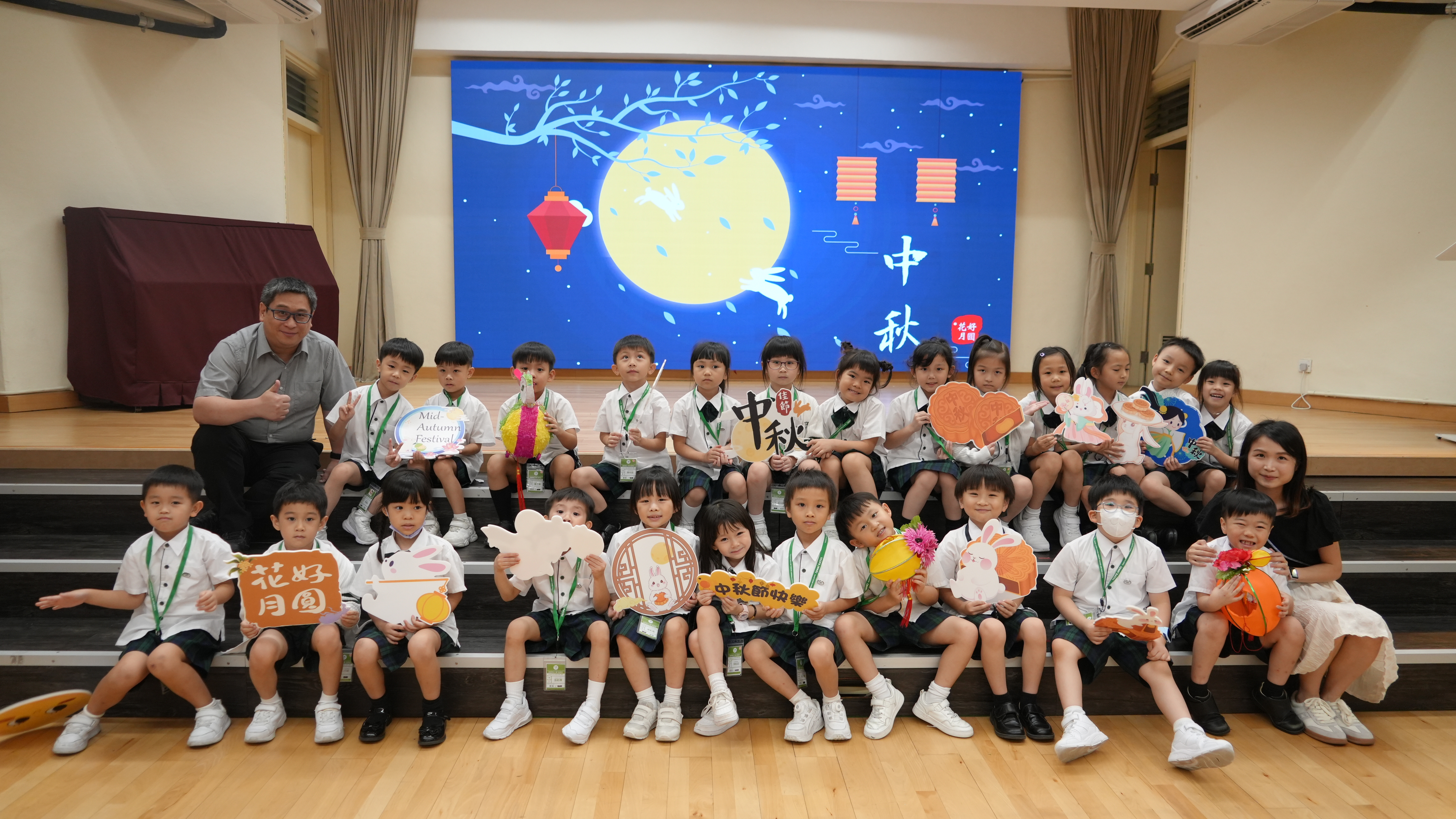 本校於9月17日(二)舉辦「團團圓圓慶中秋」活動,同學們到禮堂進行猜燈謎活動並獲派小燈籠一個,感受濃濃的節日氣氛。