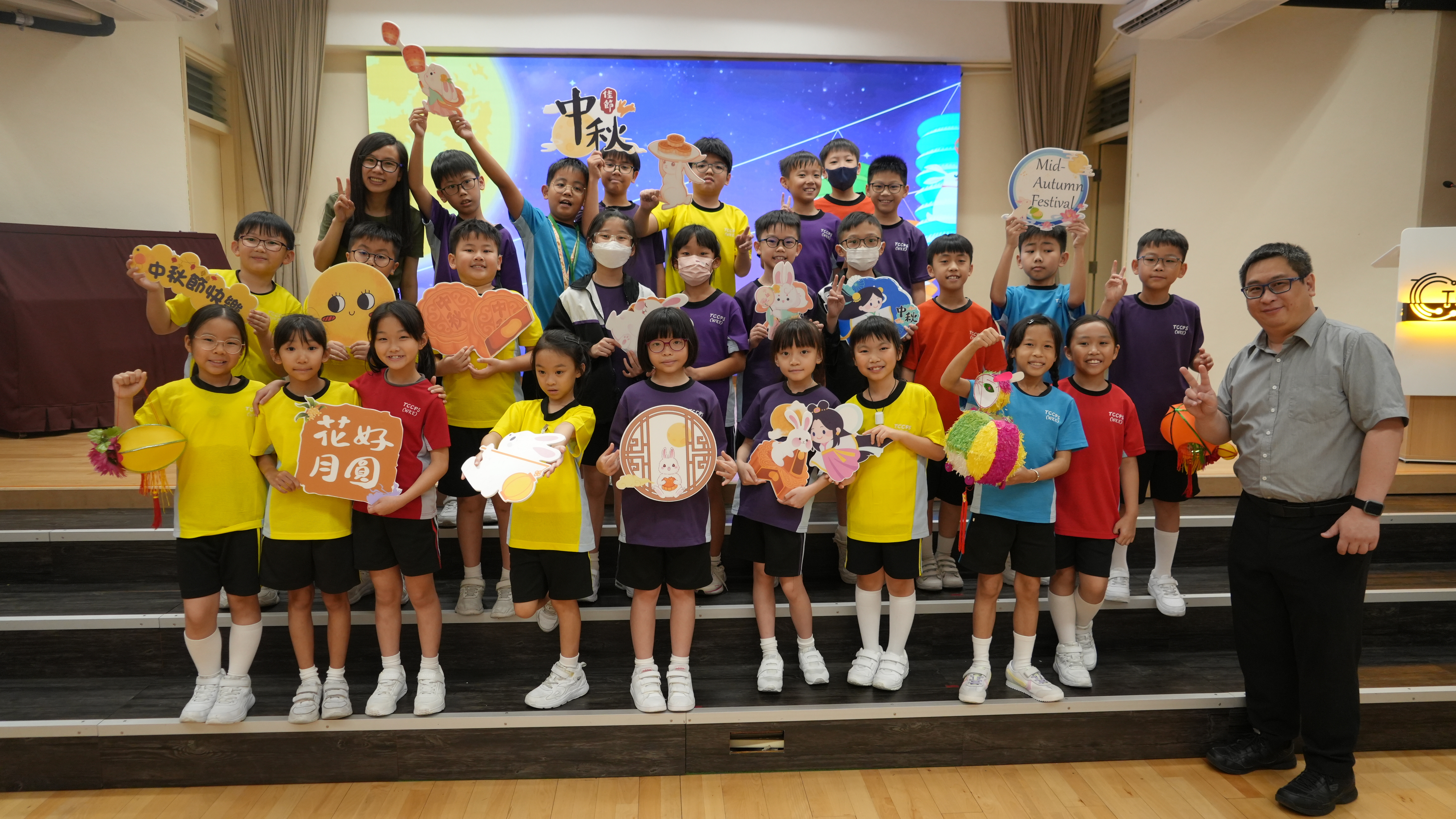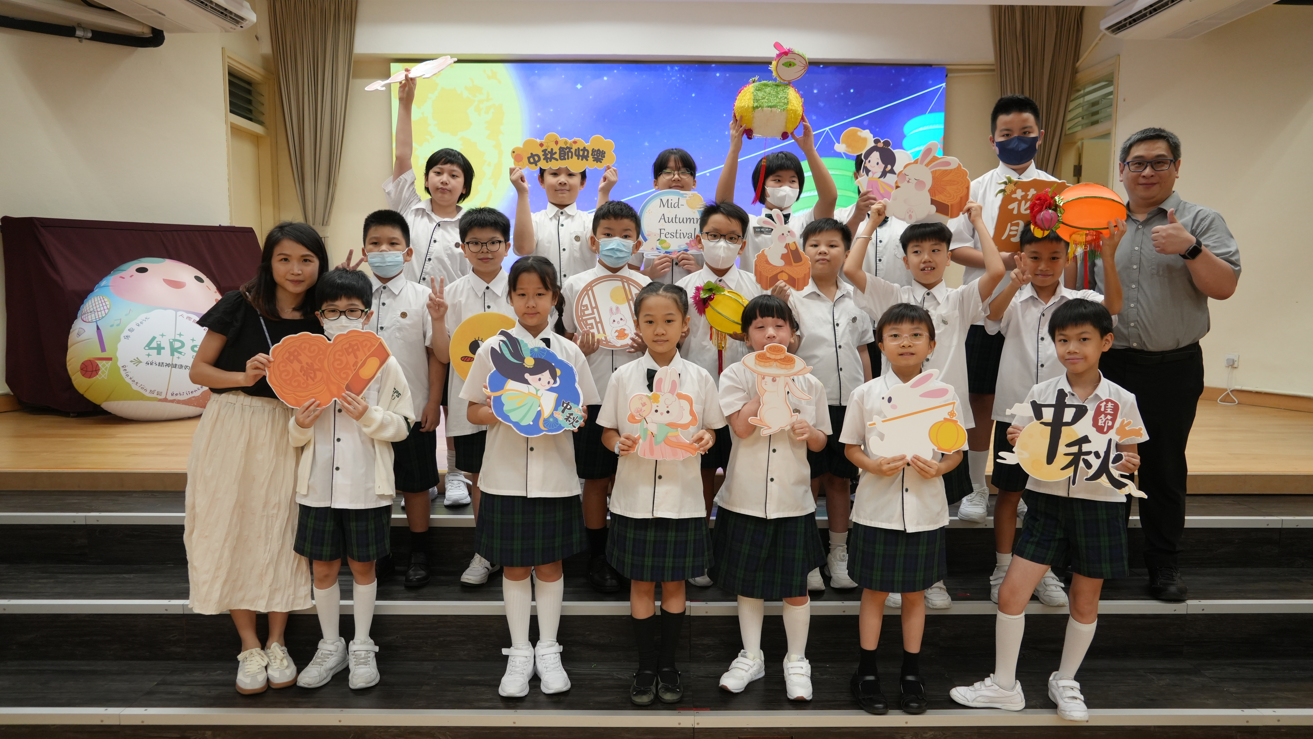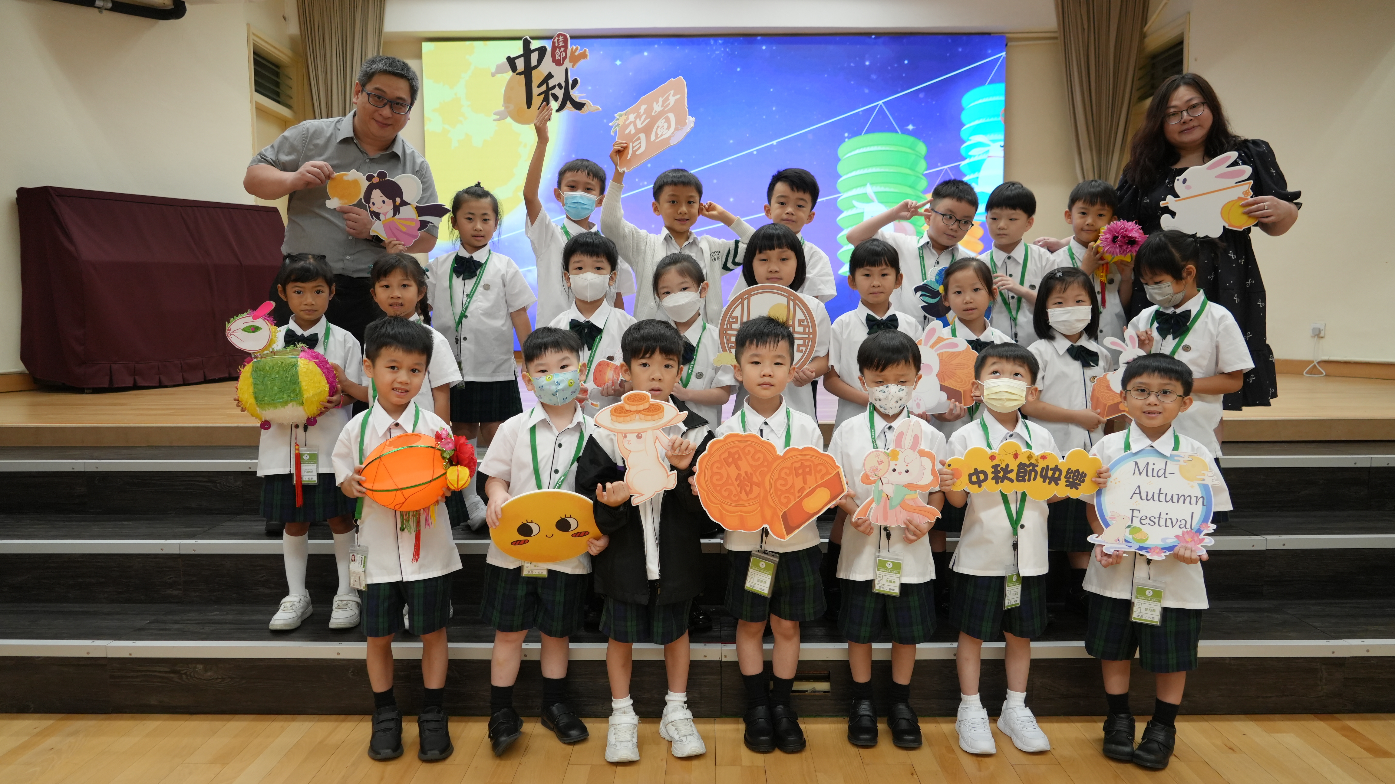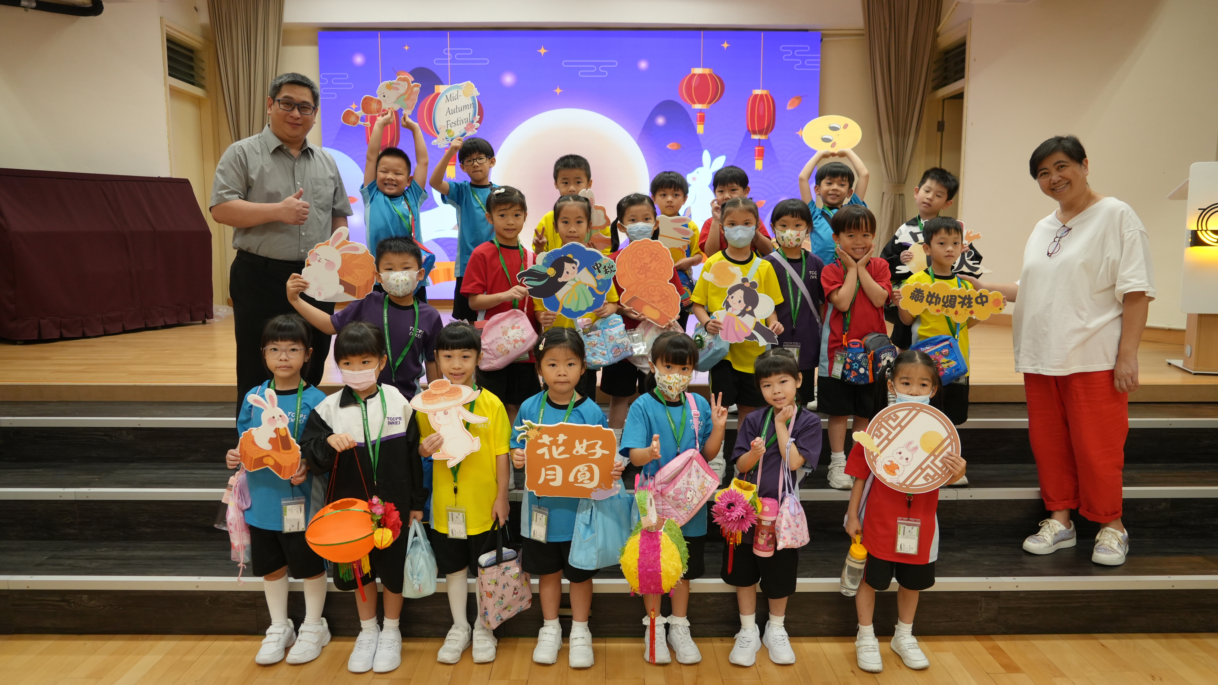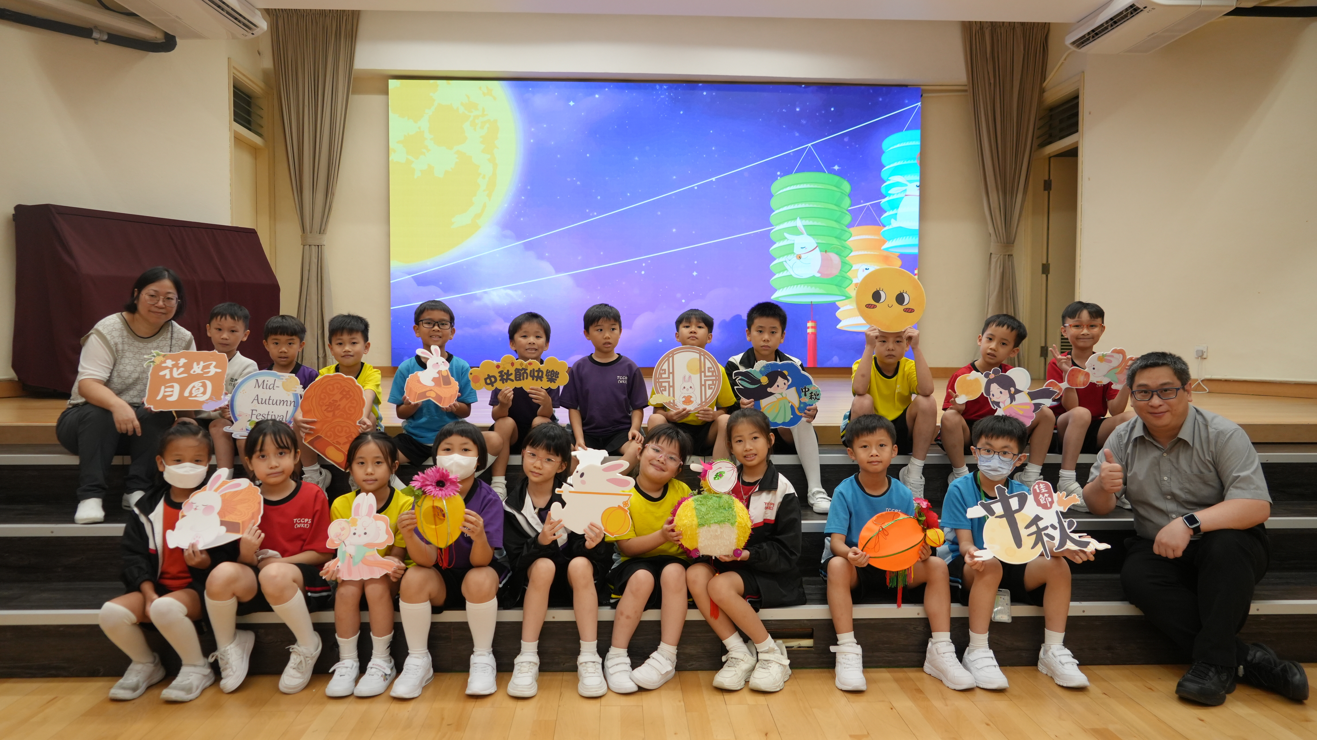 本校於9月17日(二)舉辦「團團圓圓慶中秋」活動,同學們到禮堂進行猜燈謎活動並獲派小燈籠一個,感受濃濃的節日氣氛。