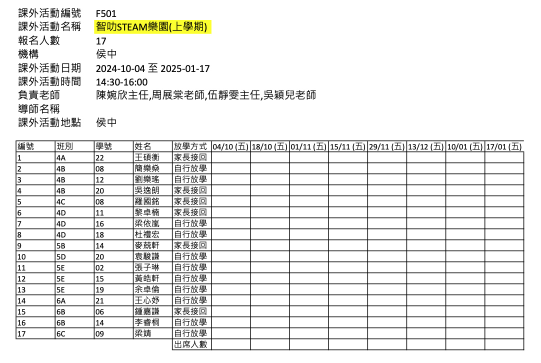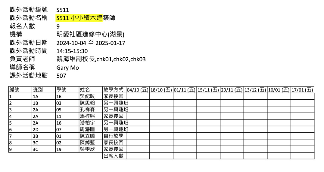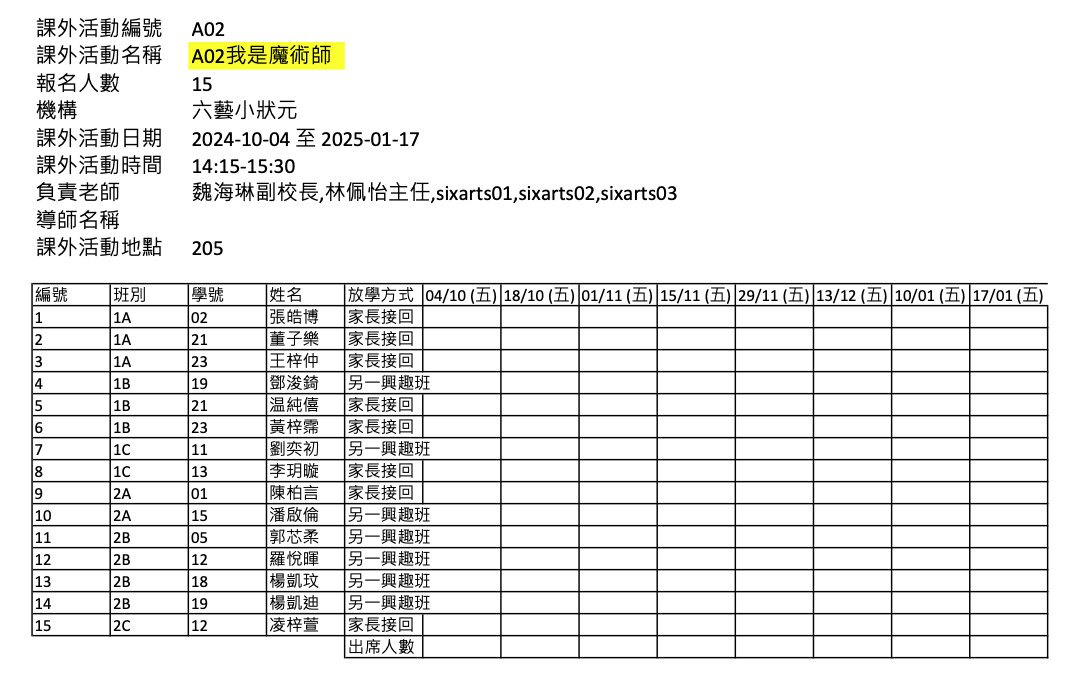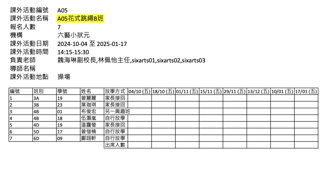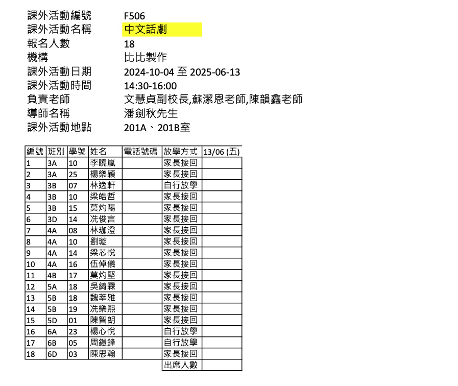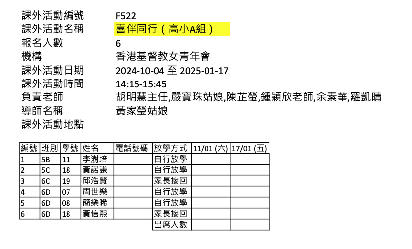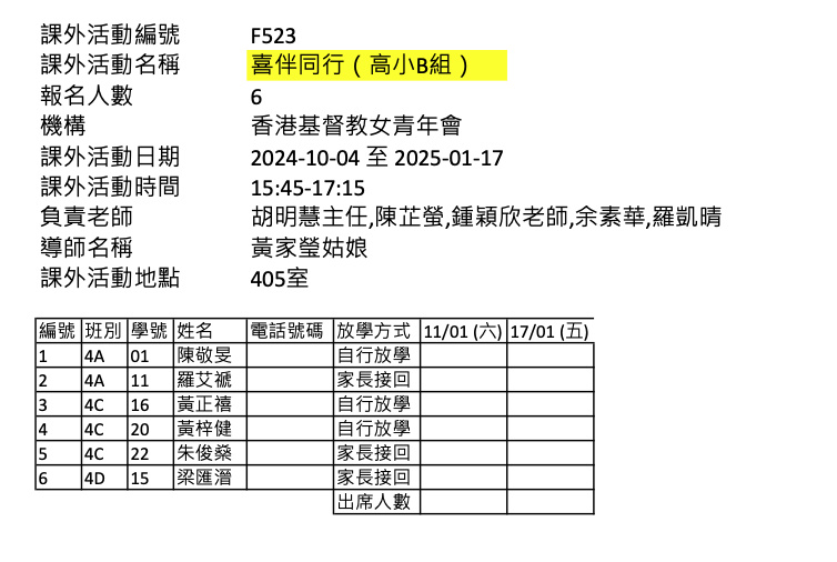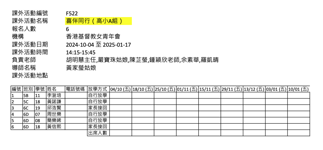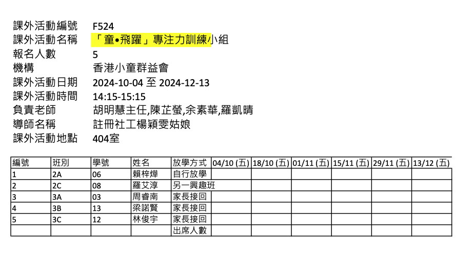 2425上學期周五興趣班