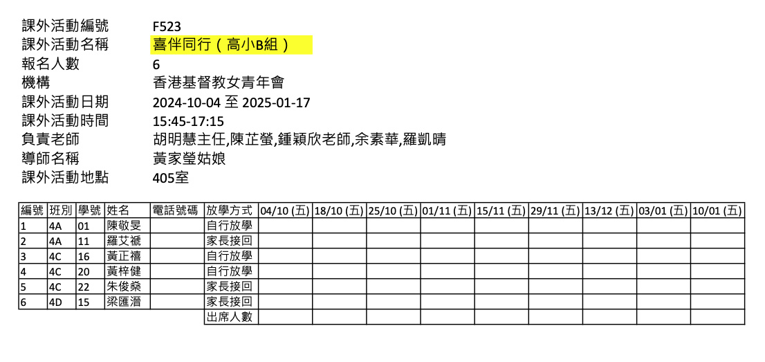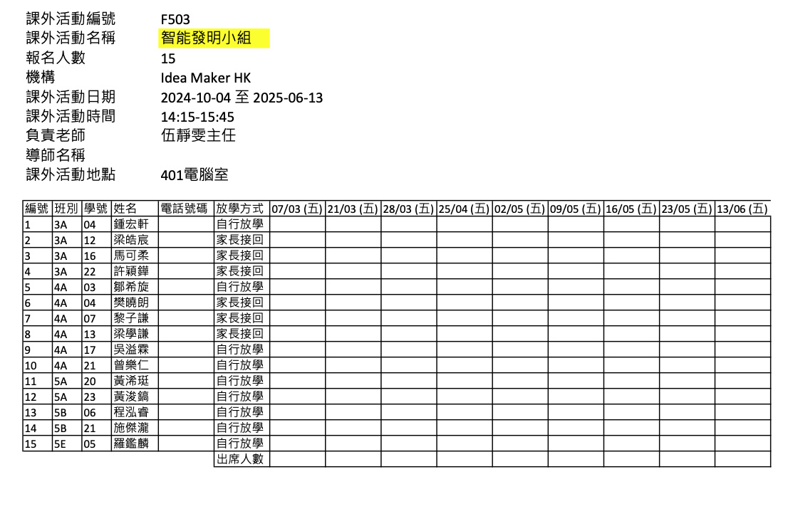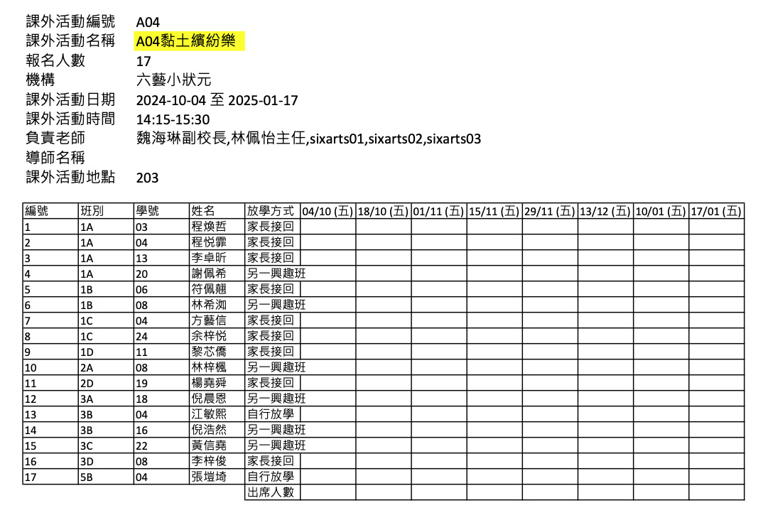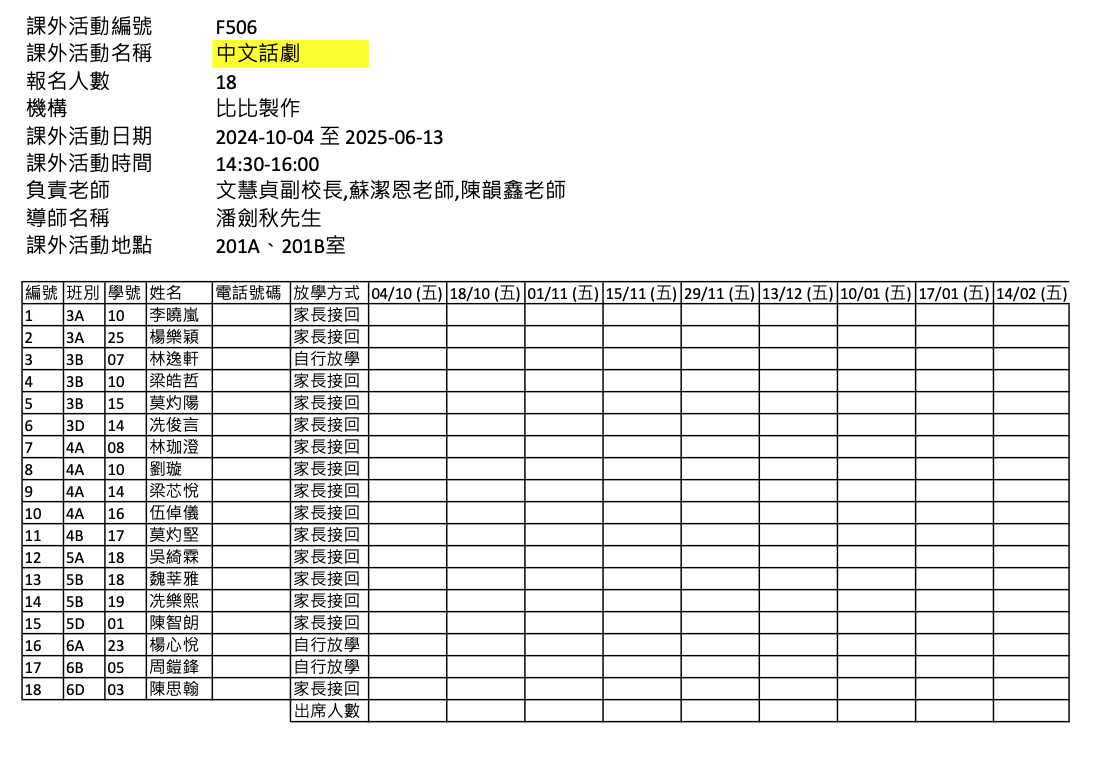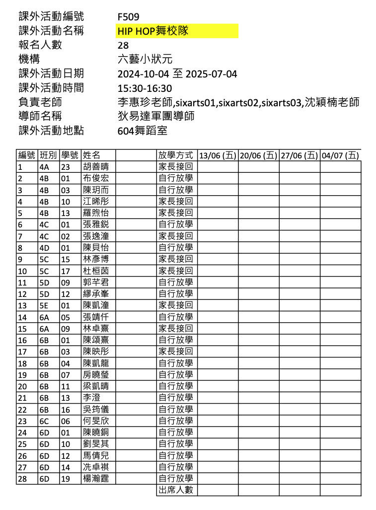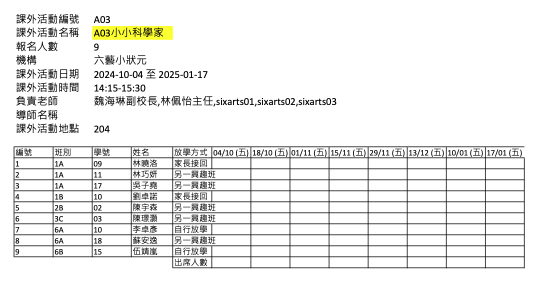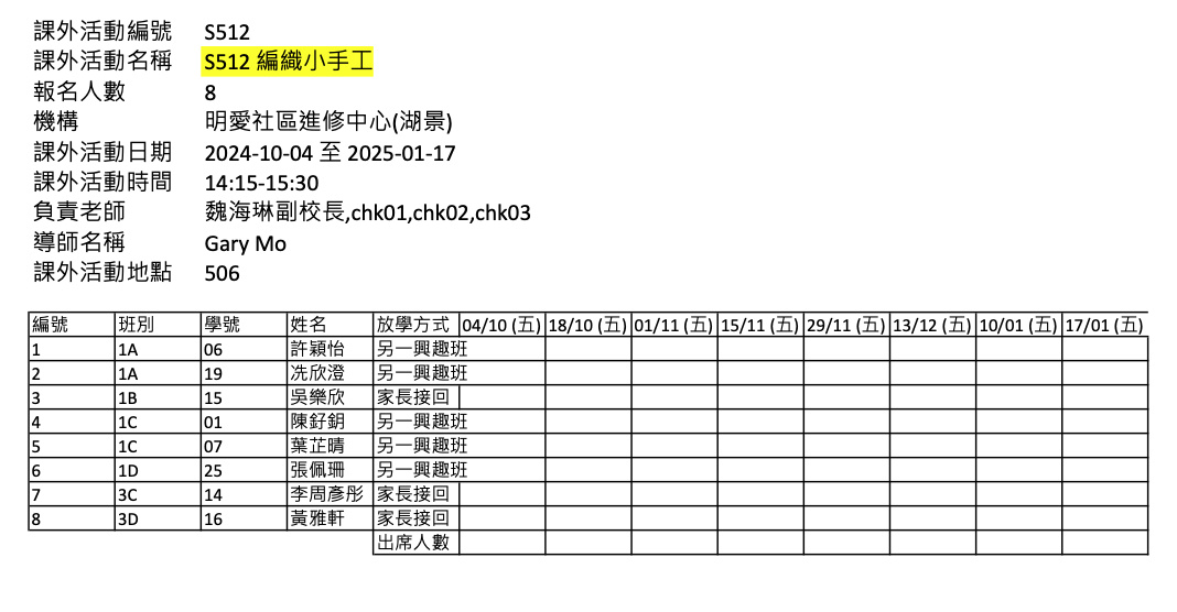 2425上學期周五興趣班