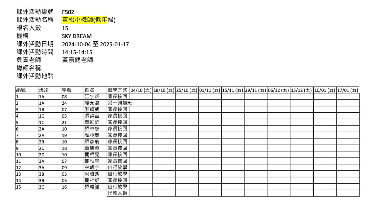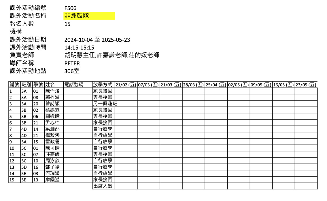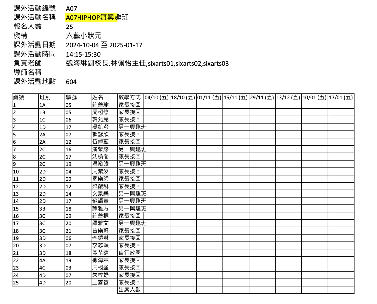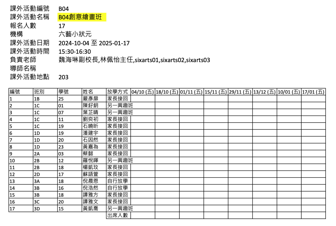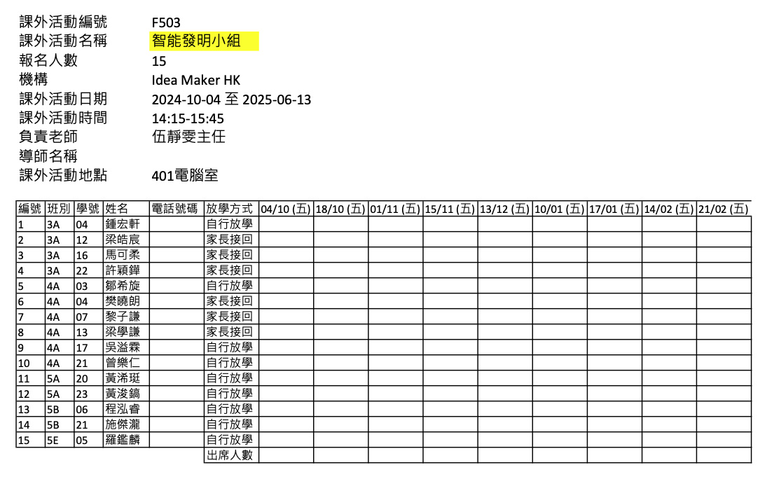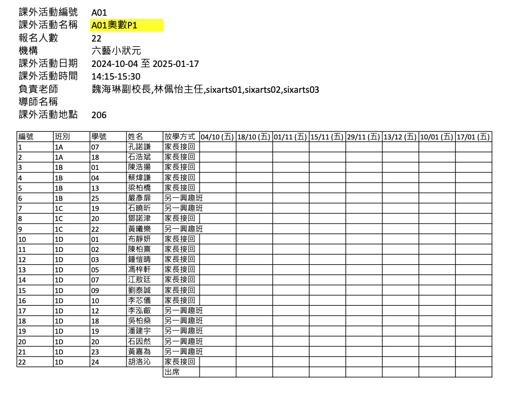 2425上學期周五興趣班