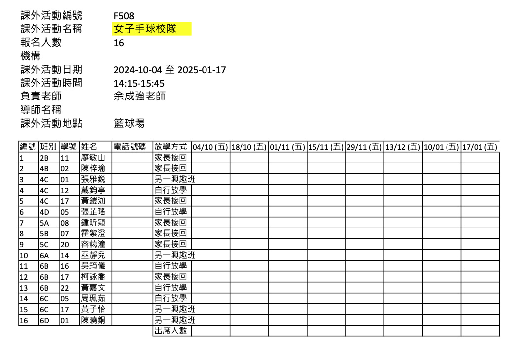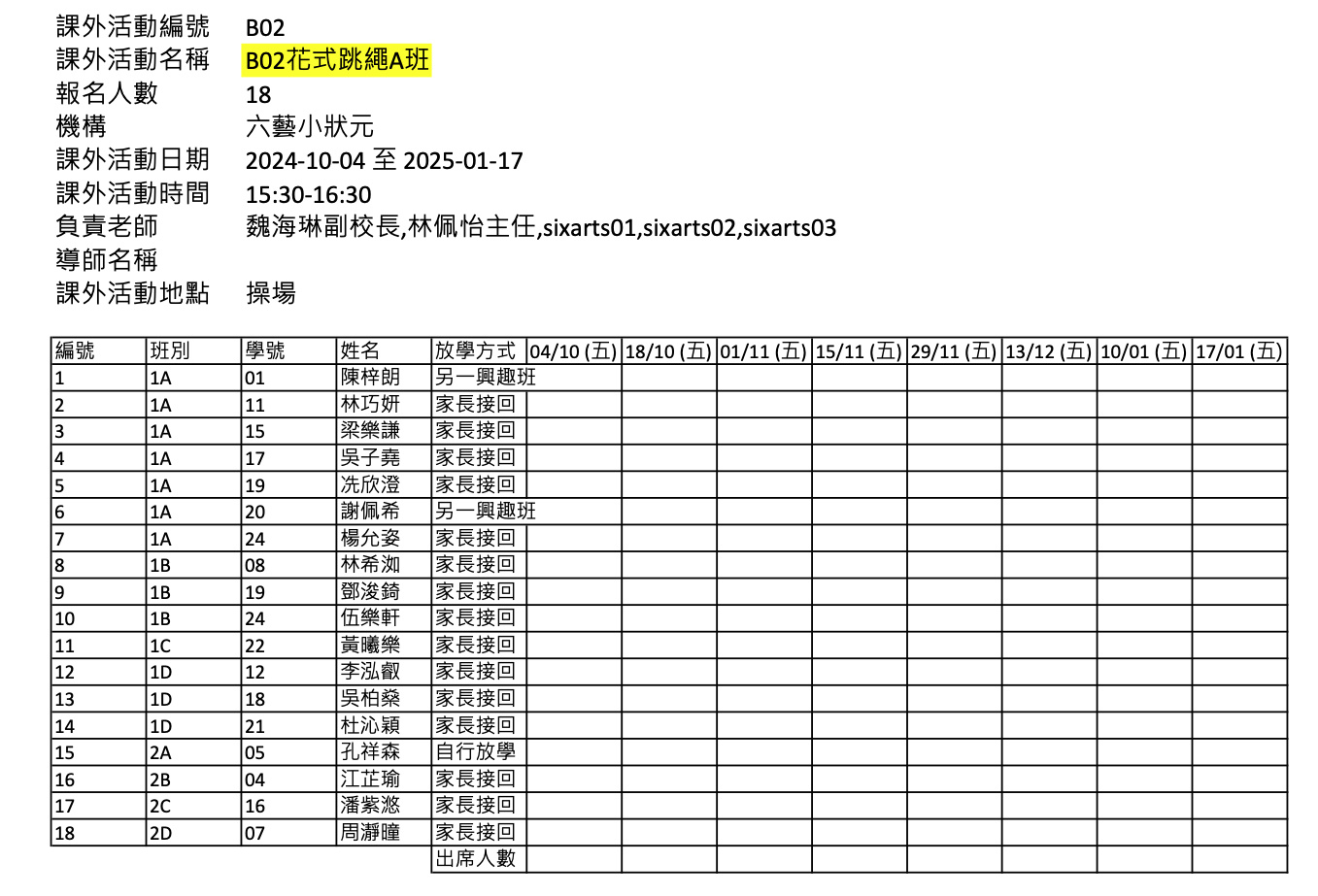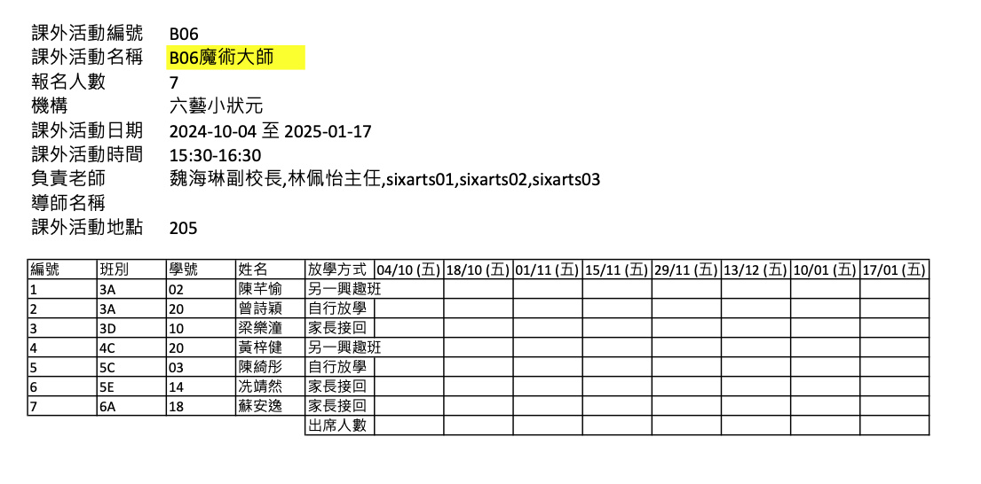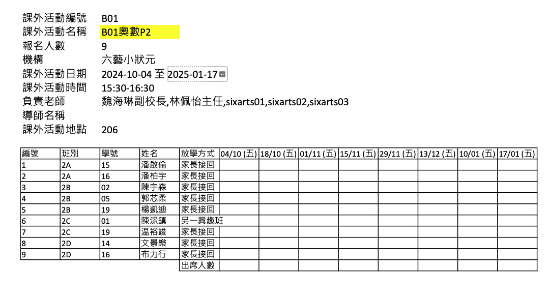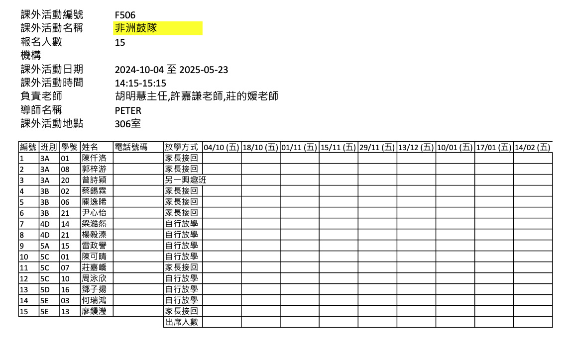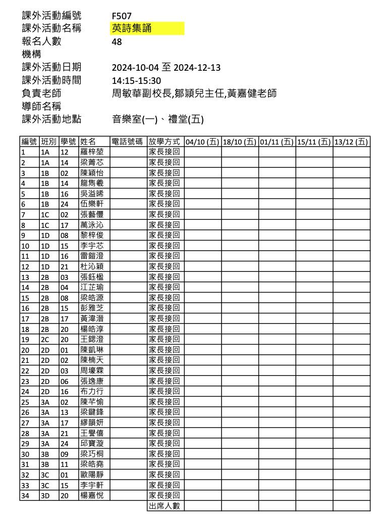 2425上學期周五興趣班