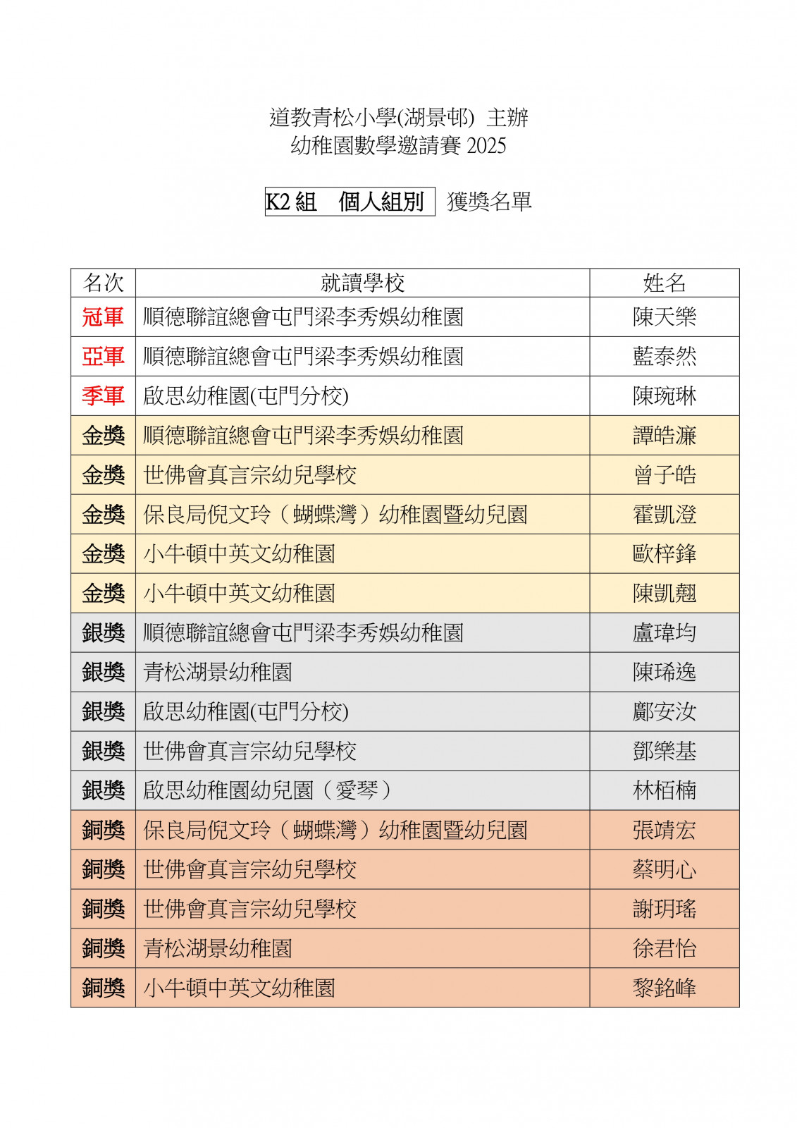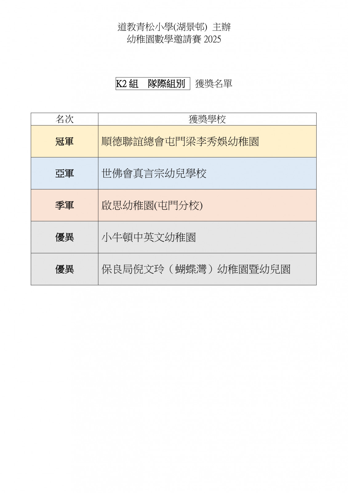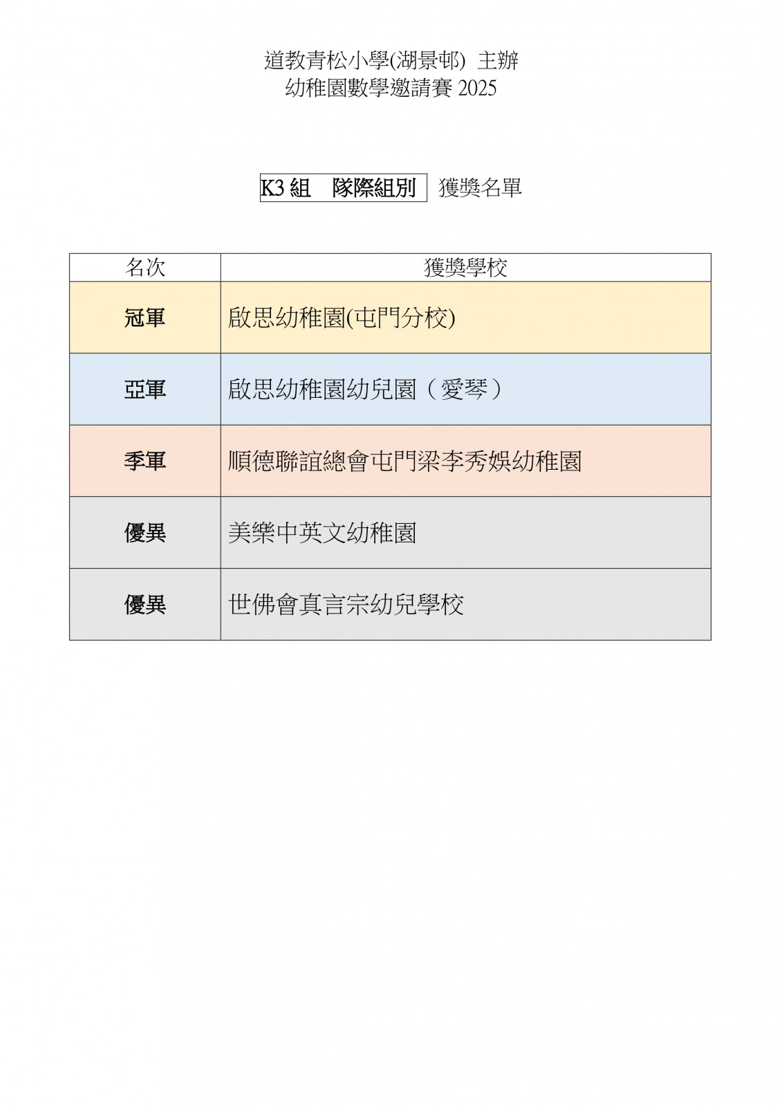 幼稚園數學邀請賽2025_比賽結果