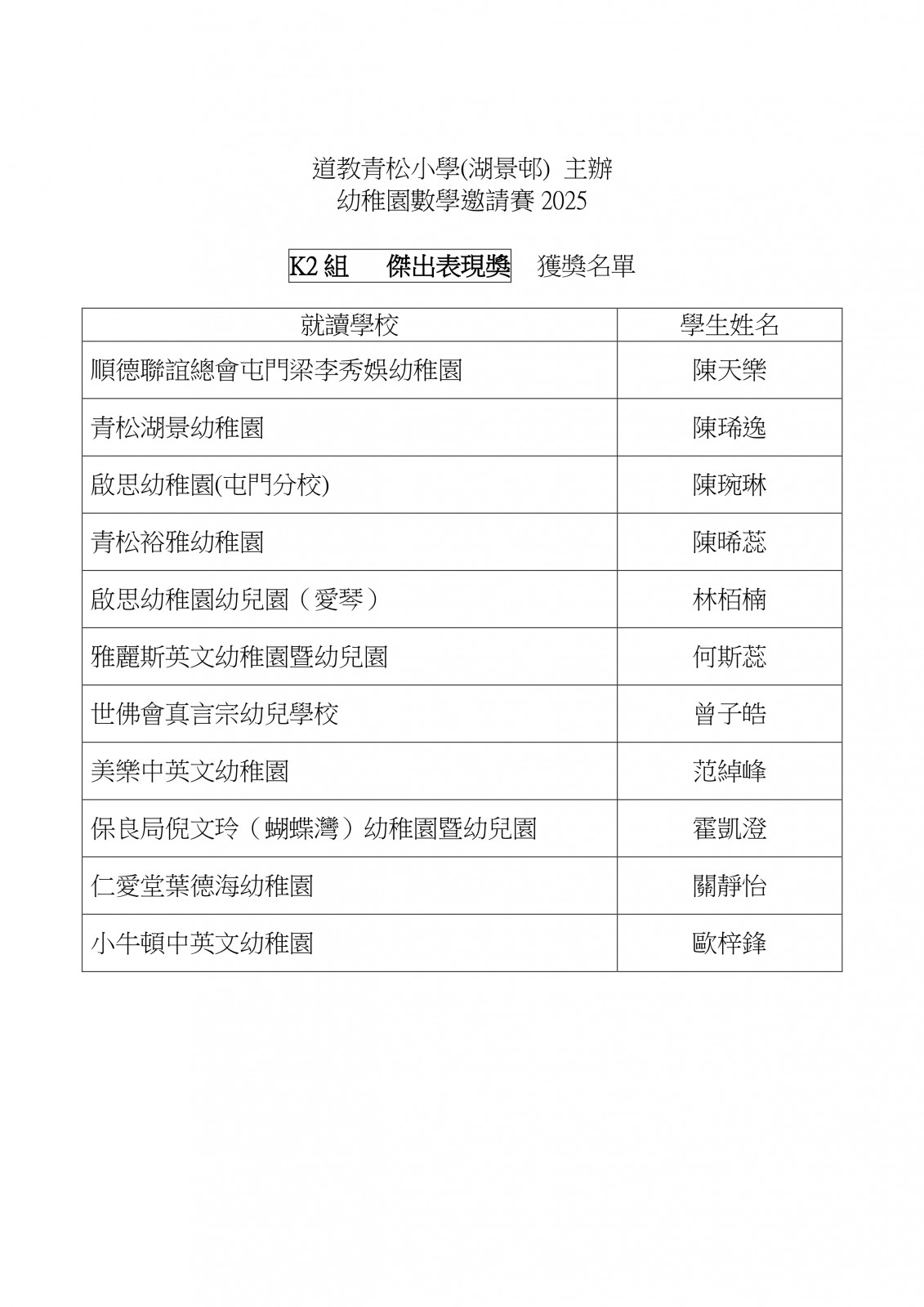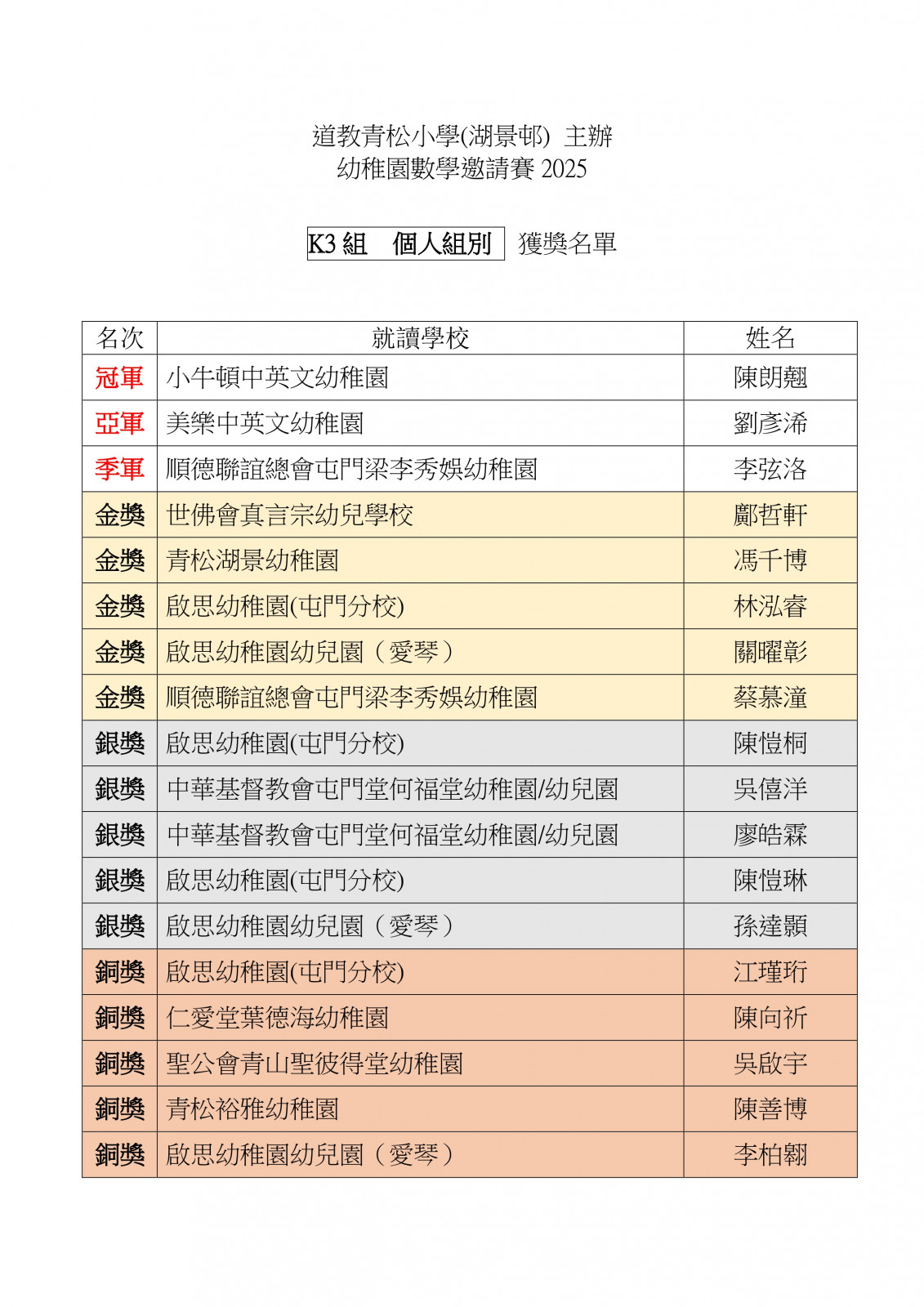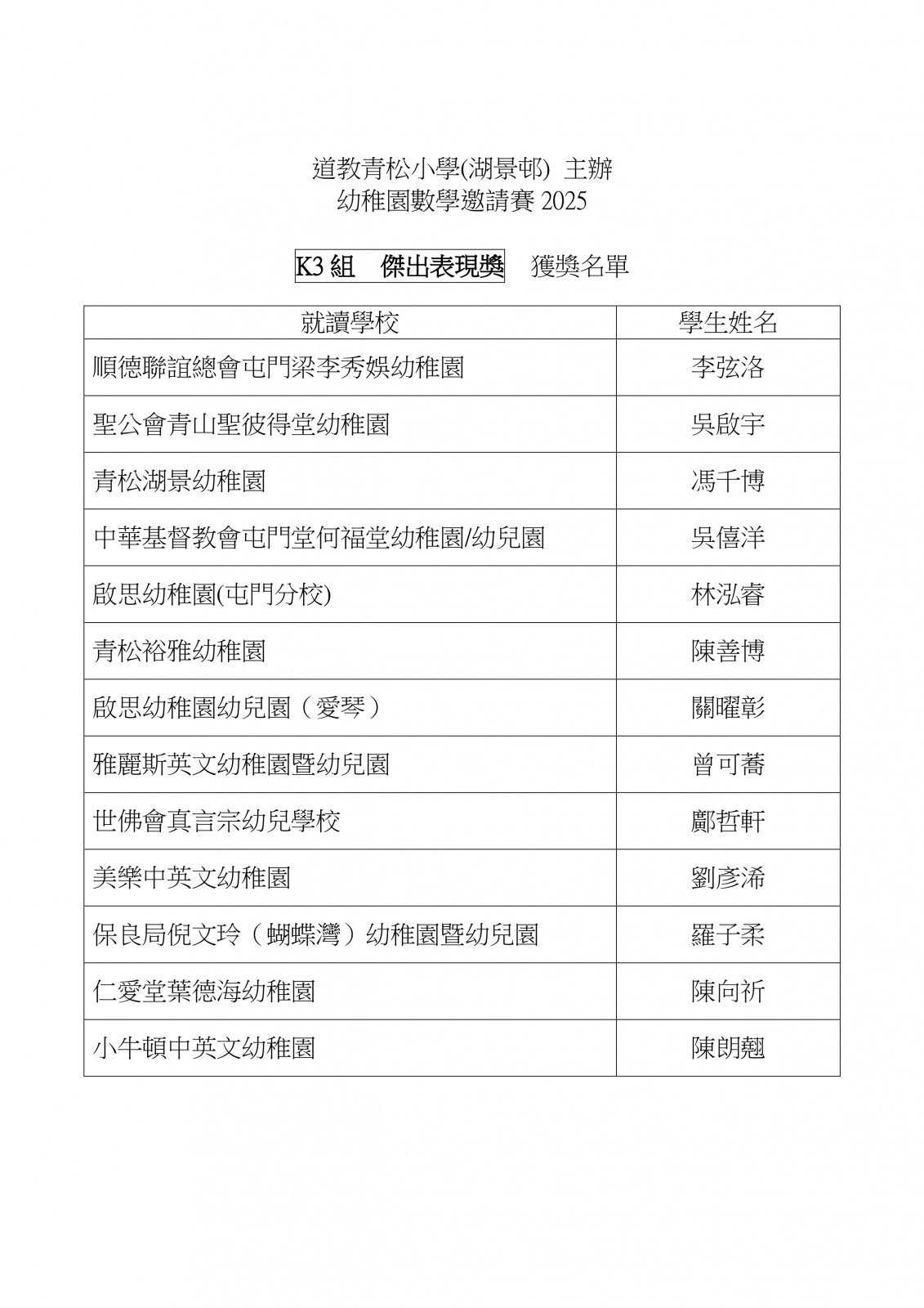 幼稚園數學邀請賽2025_比賽結果