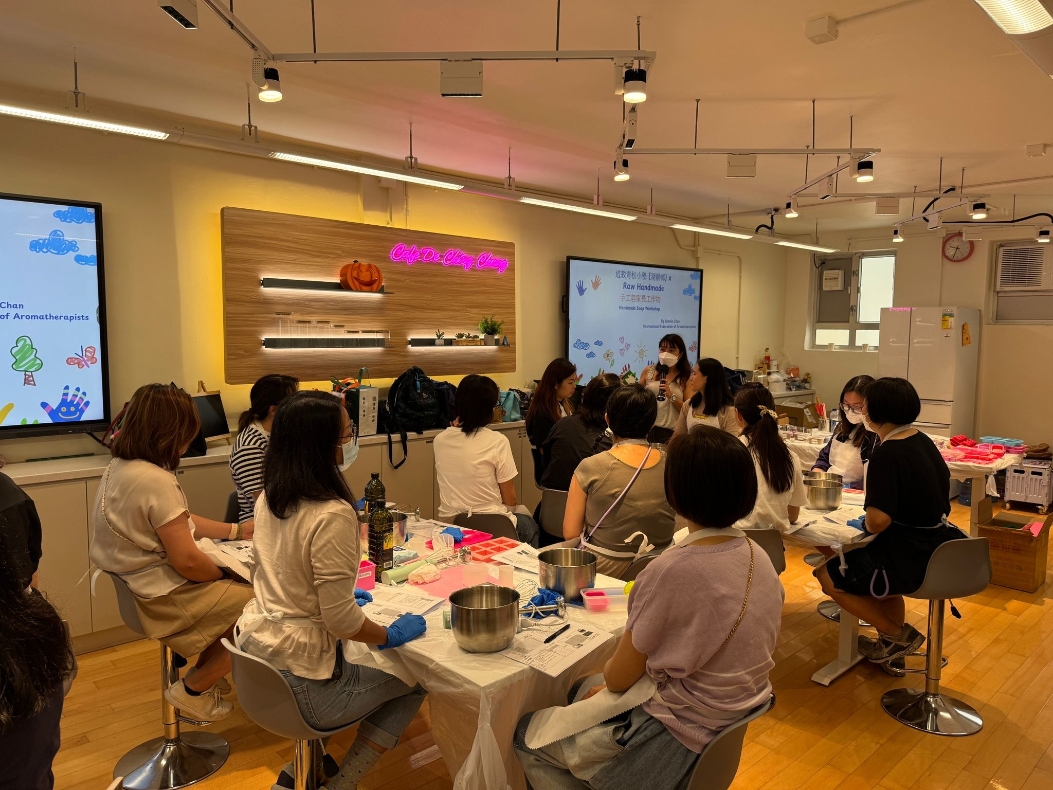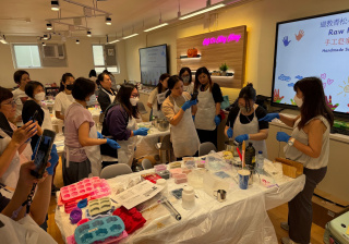 是次工作坊讓家長學習製作外型和質地如雪糕的天然手工皂,這些手工皂不僅美觀,還使用天然成分,對肌膚友好。家長在工作坊內探索不同的香氛和顏色,體驗天然護膚的樂趣,創造獨特的護膚產品。