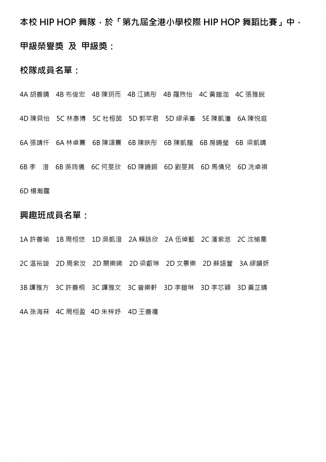 「第九屆全港小學校際HIP HOP舞蹈比賽」