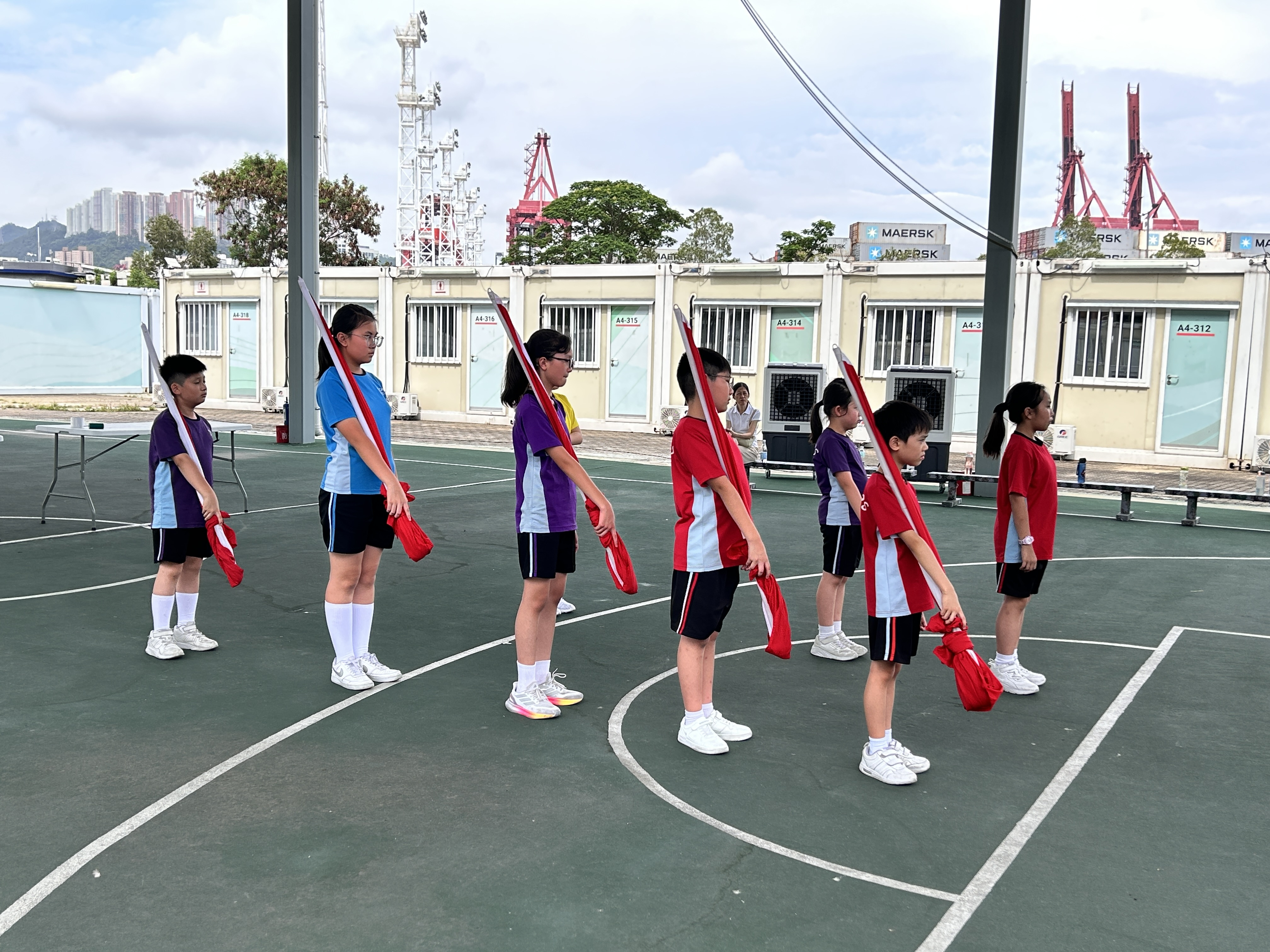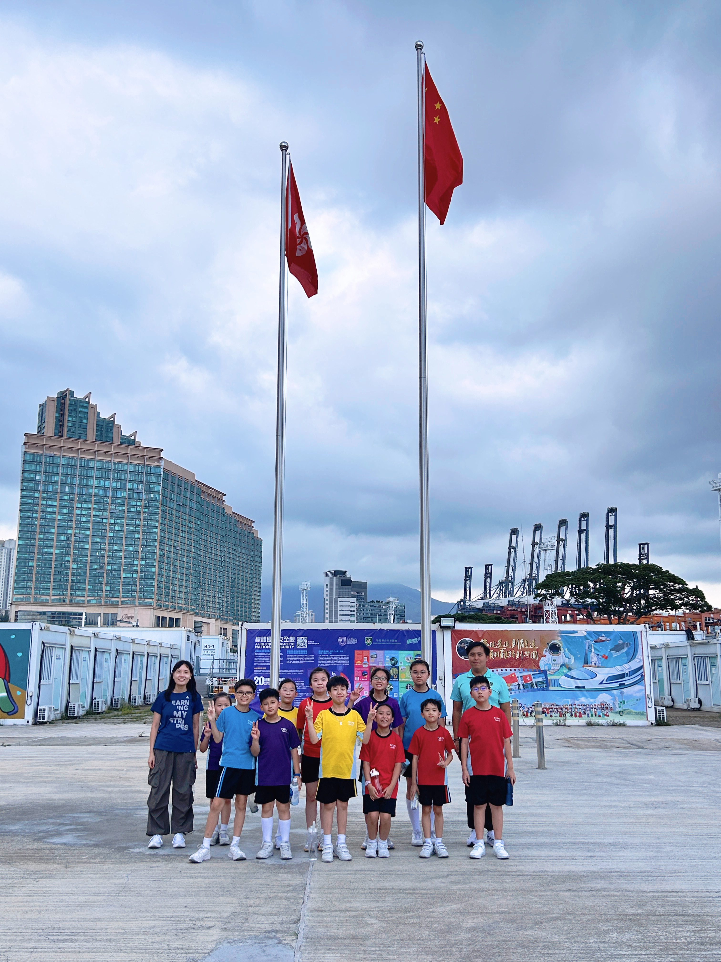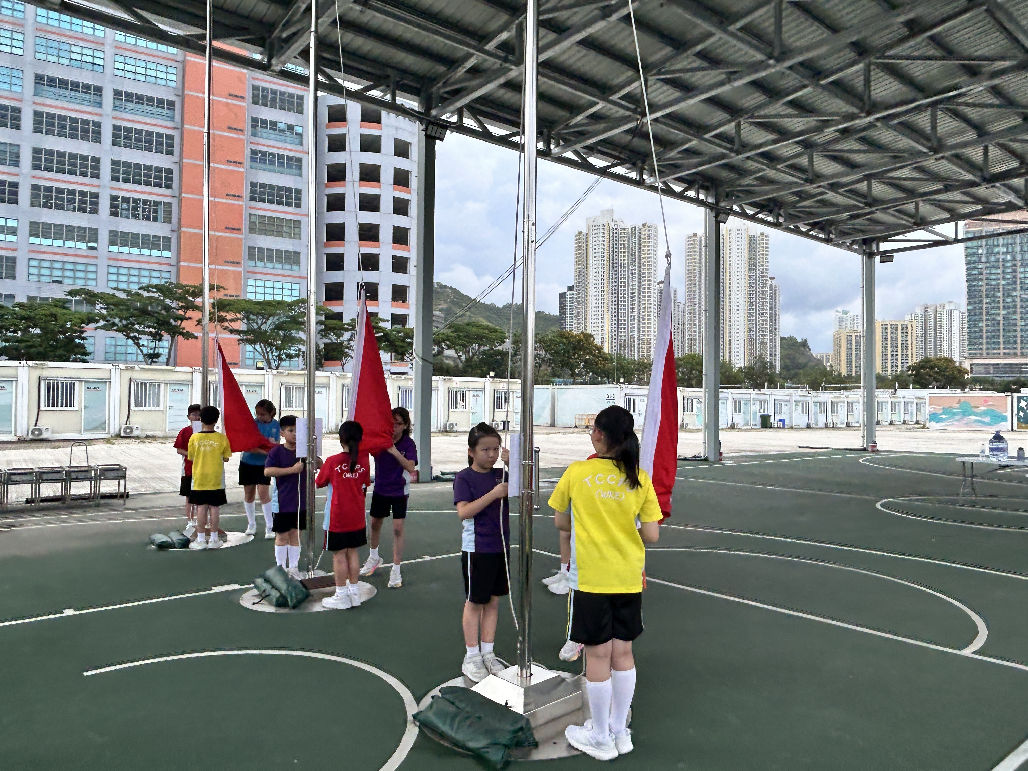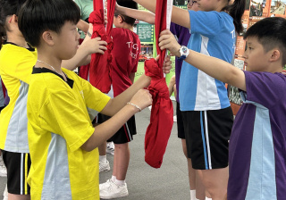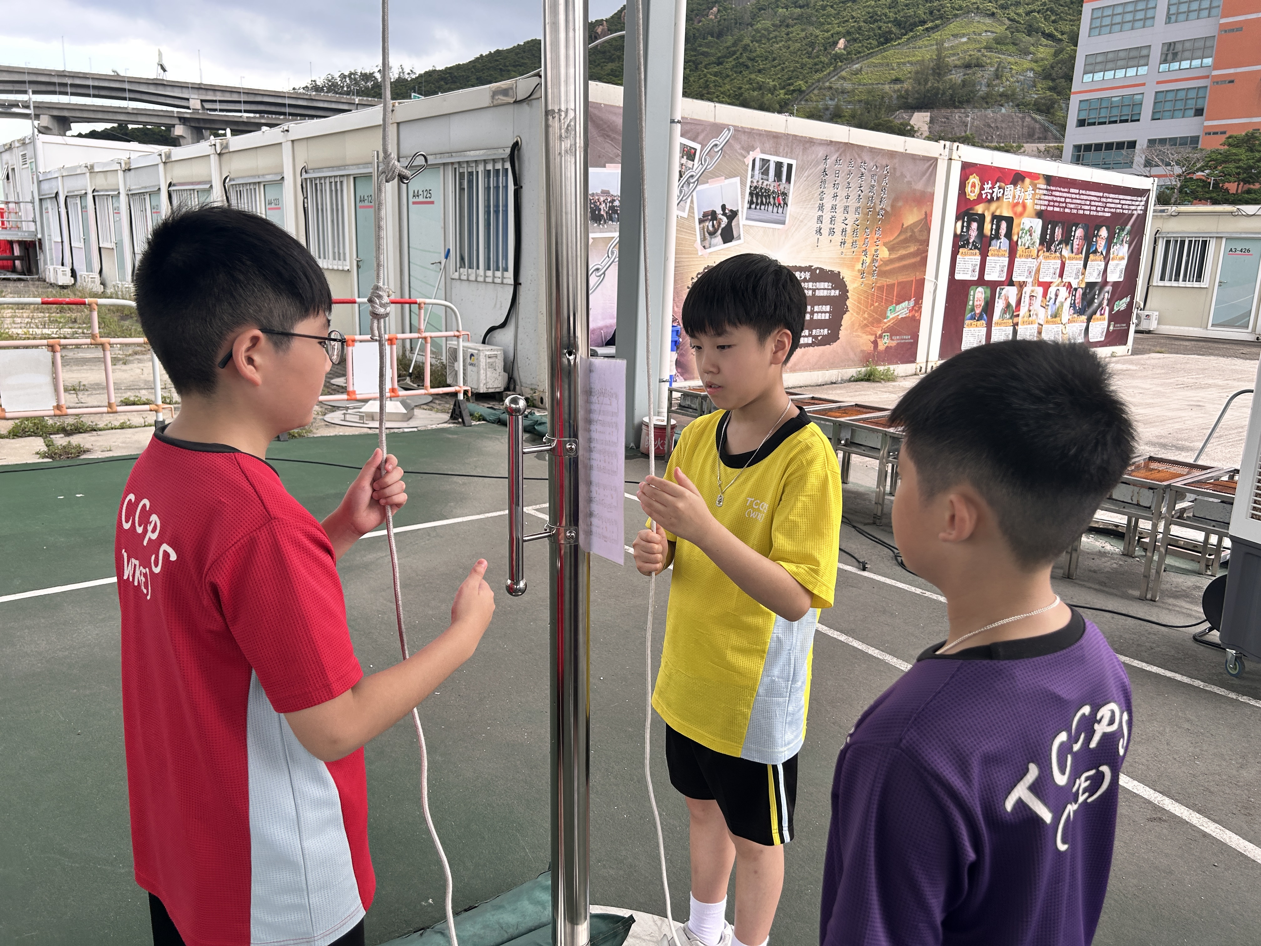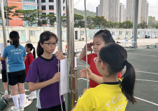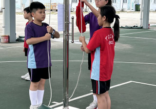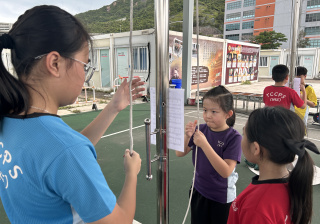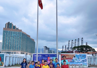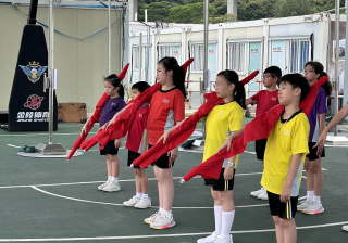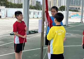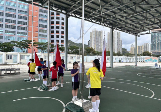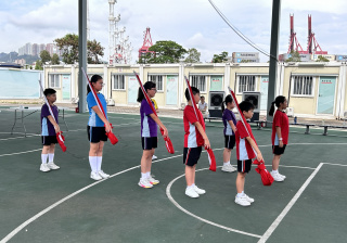 升旗隊隊員於7月15日,參加由香港青少年軍總會舉辨的「青年發展及國民教育基地夏令營」,學習升旗及隊列步操動作。