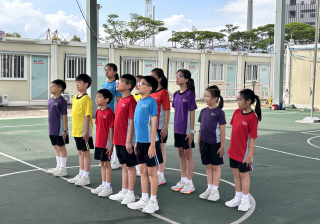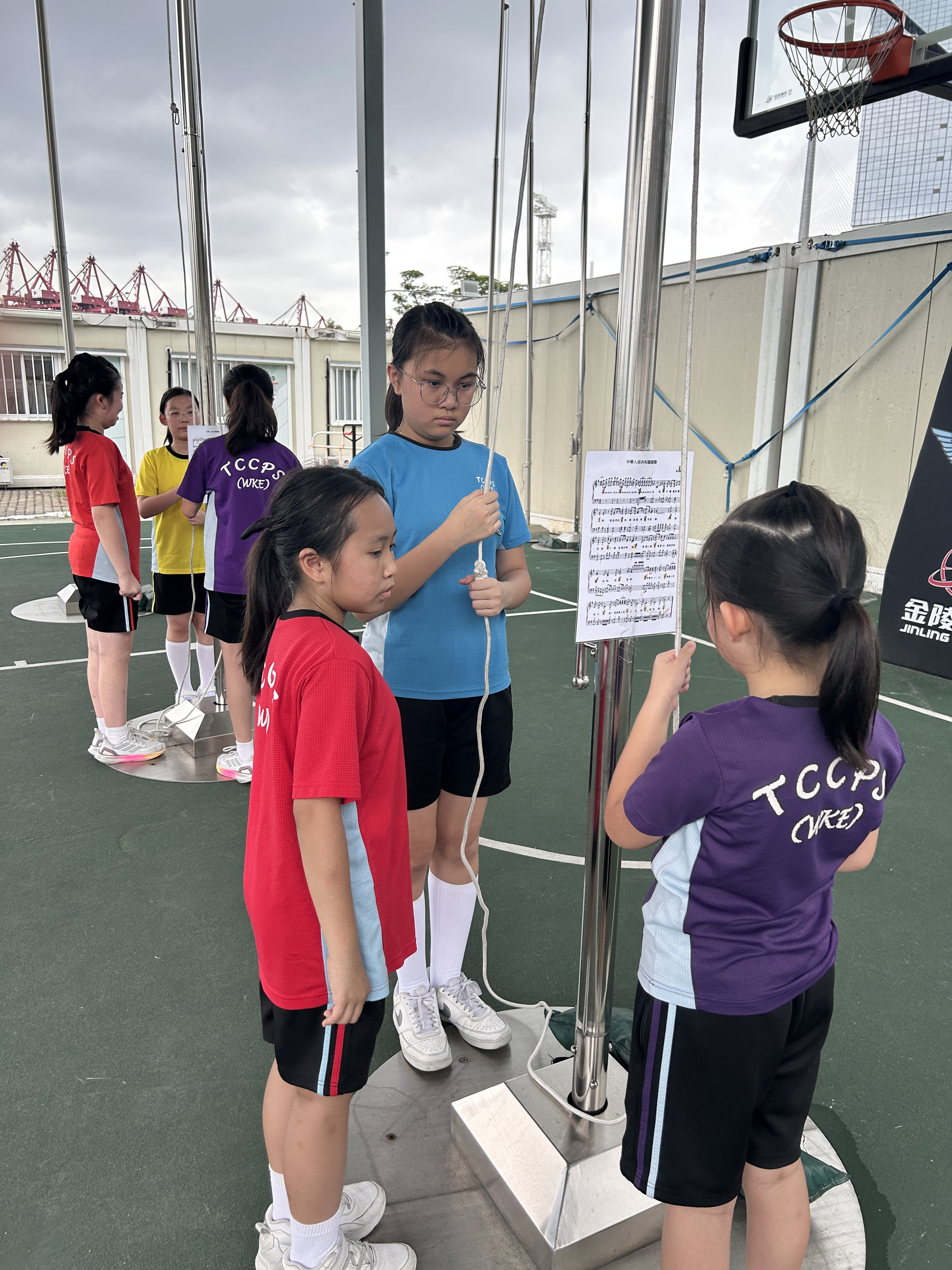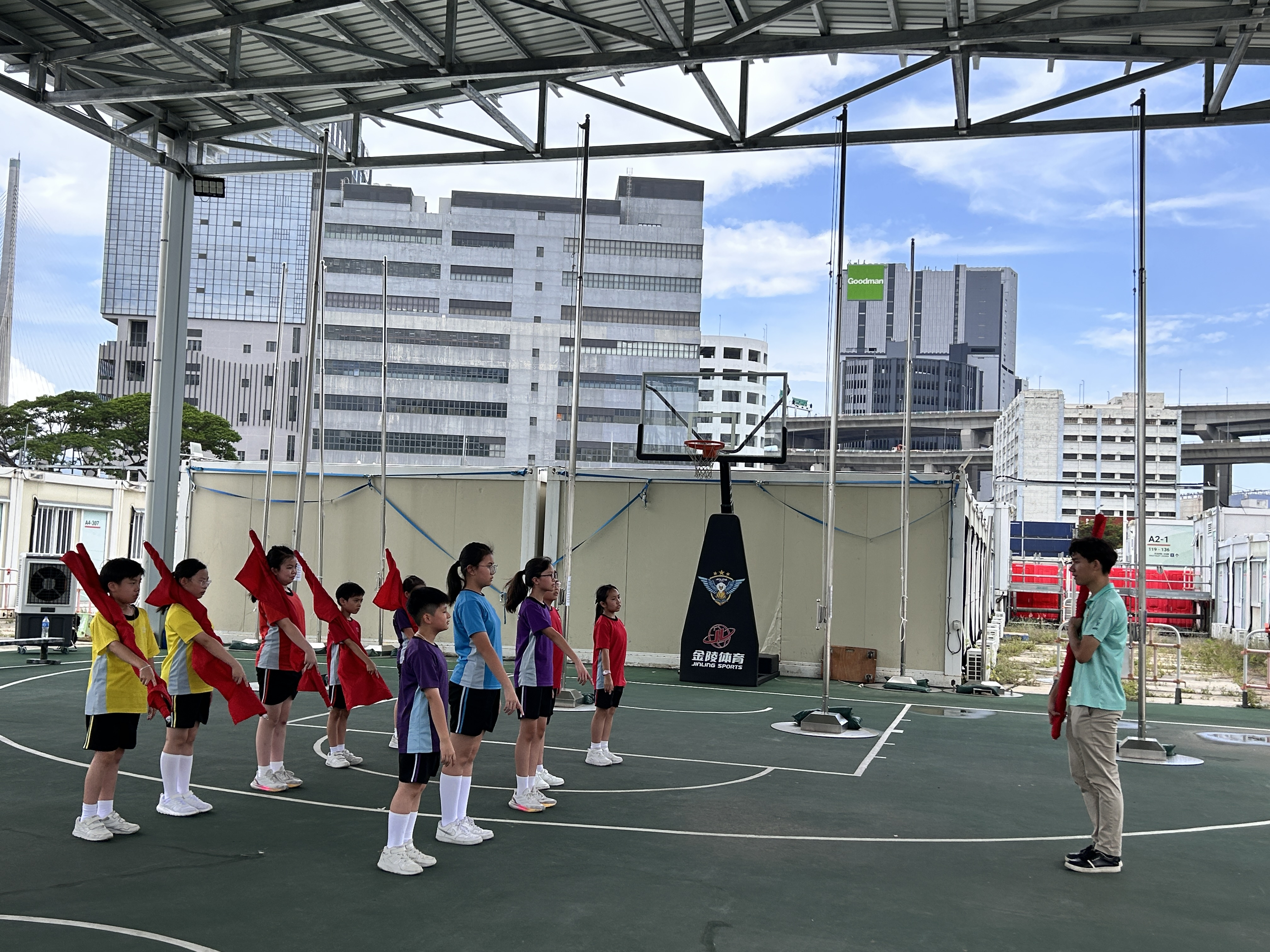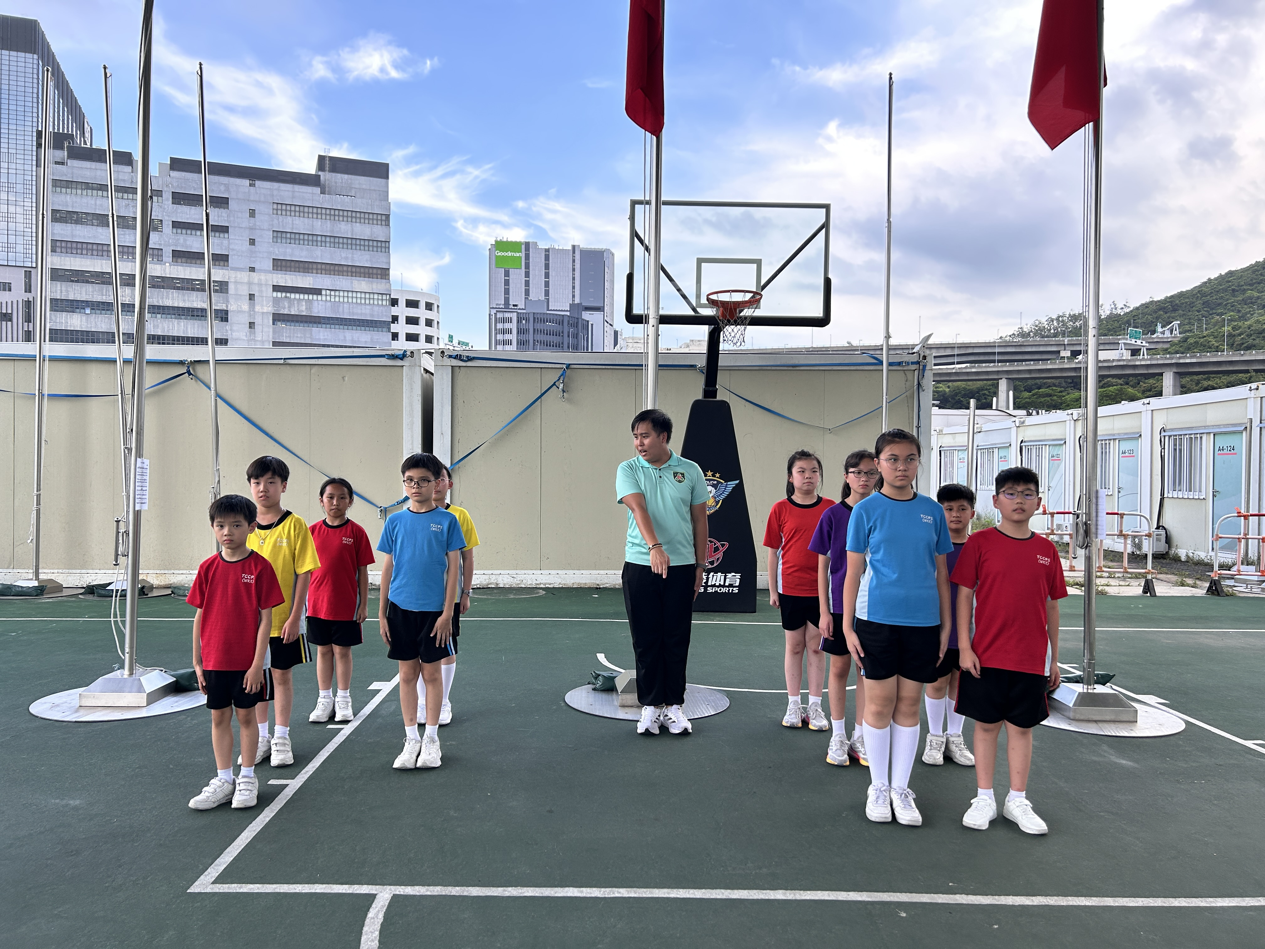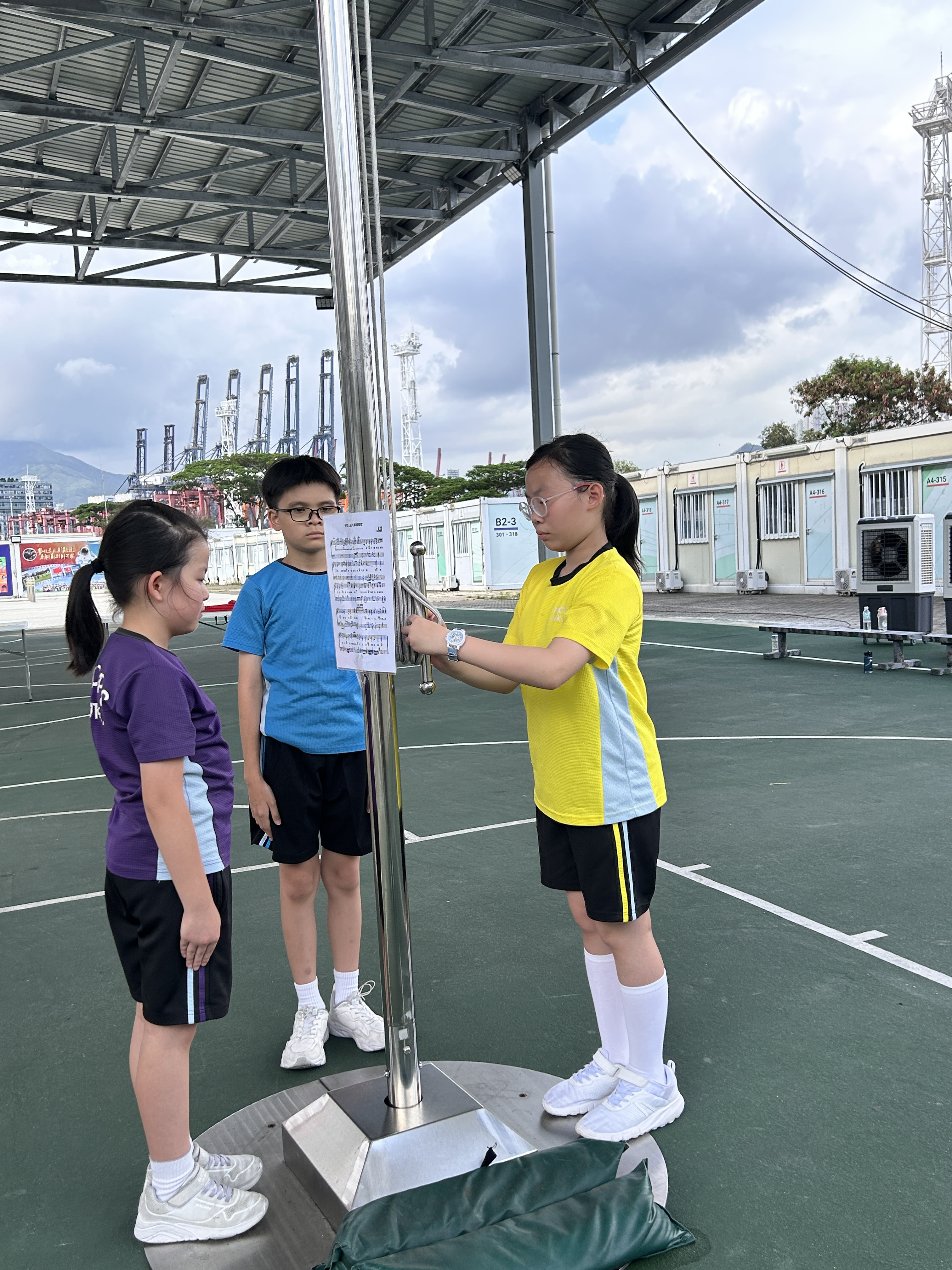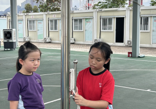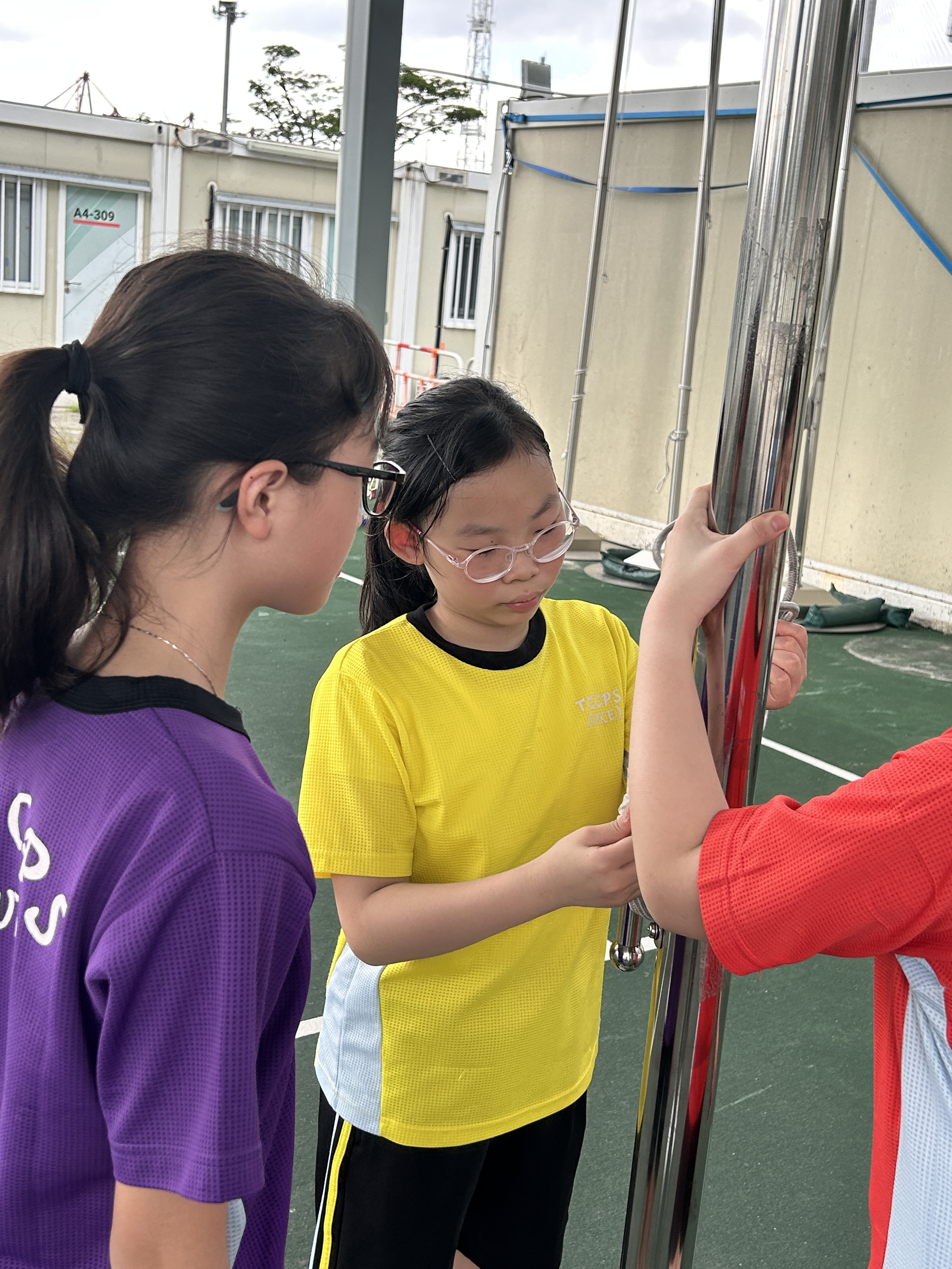 升旗隊隊員於7月15日,參加由香港青少年軍總會舉辨的「青年發展及國民教育基地夏令營」,學習升旗及隊列步操動作。