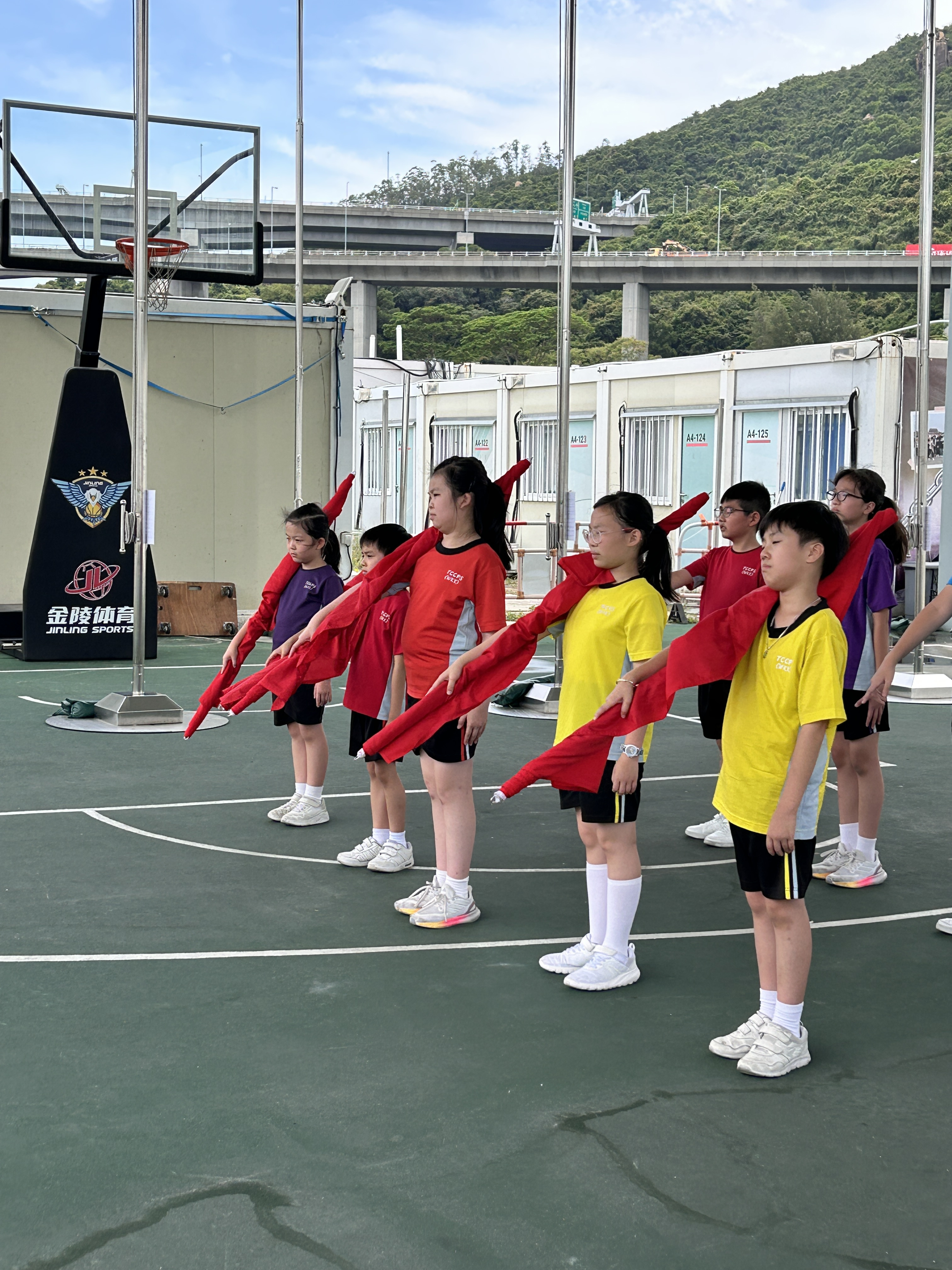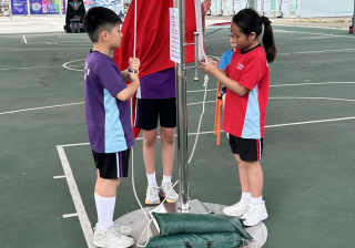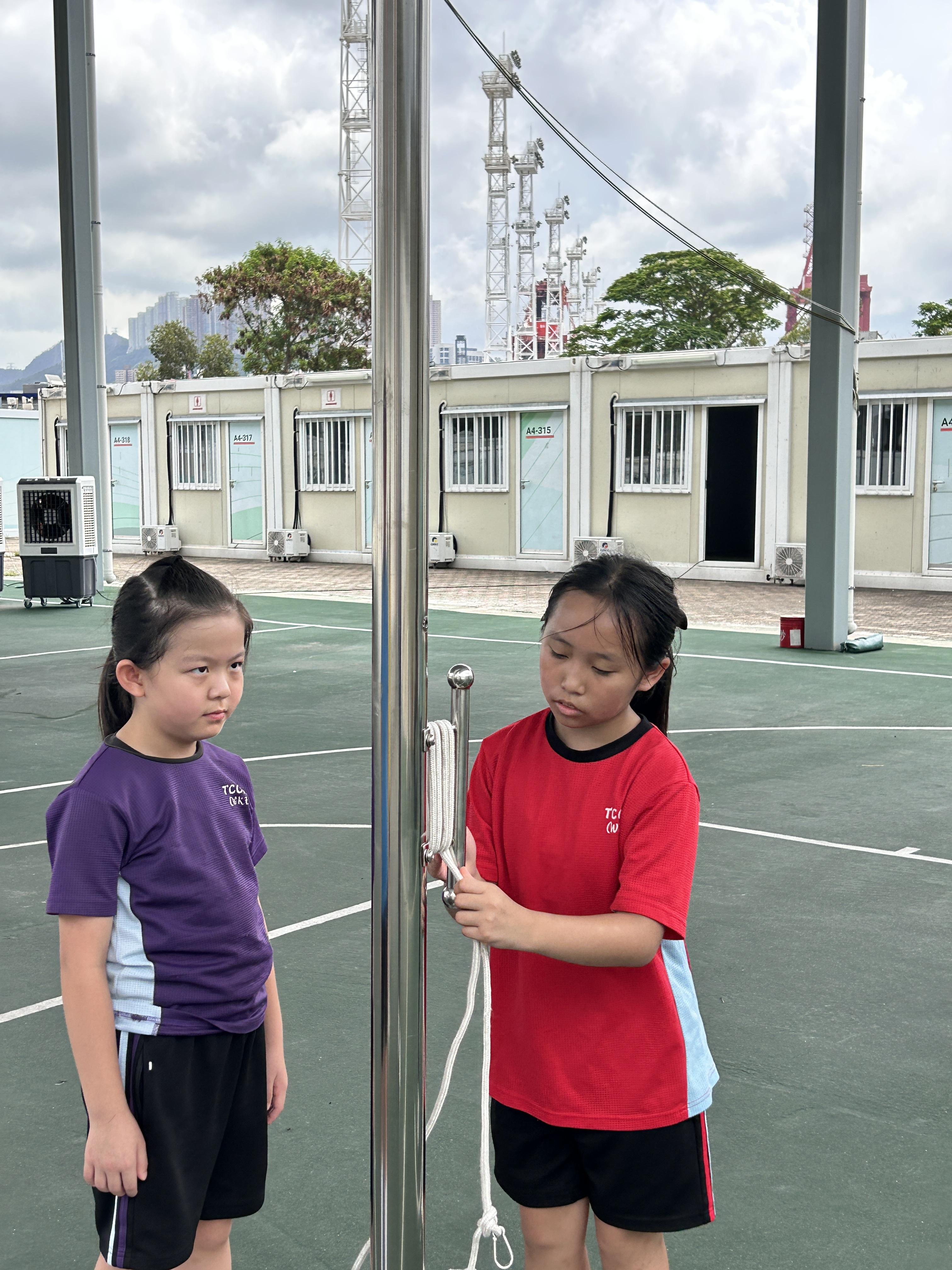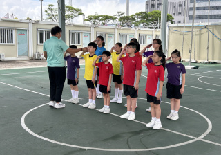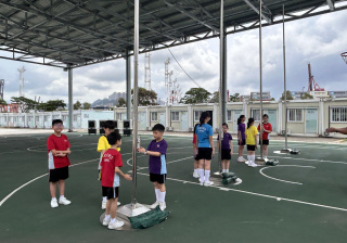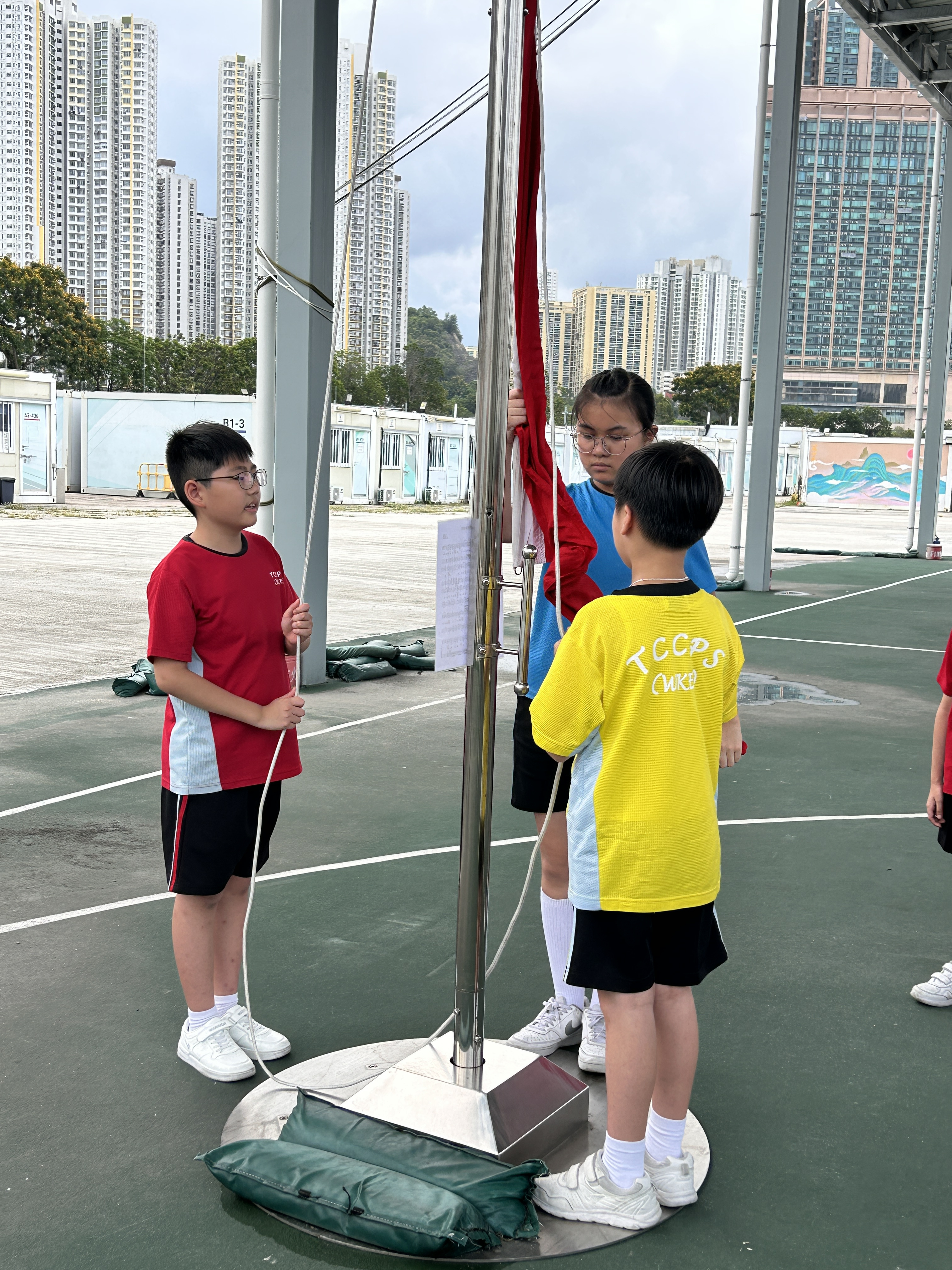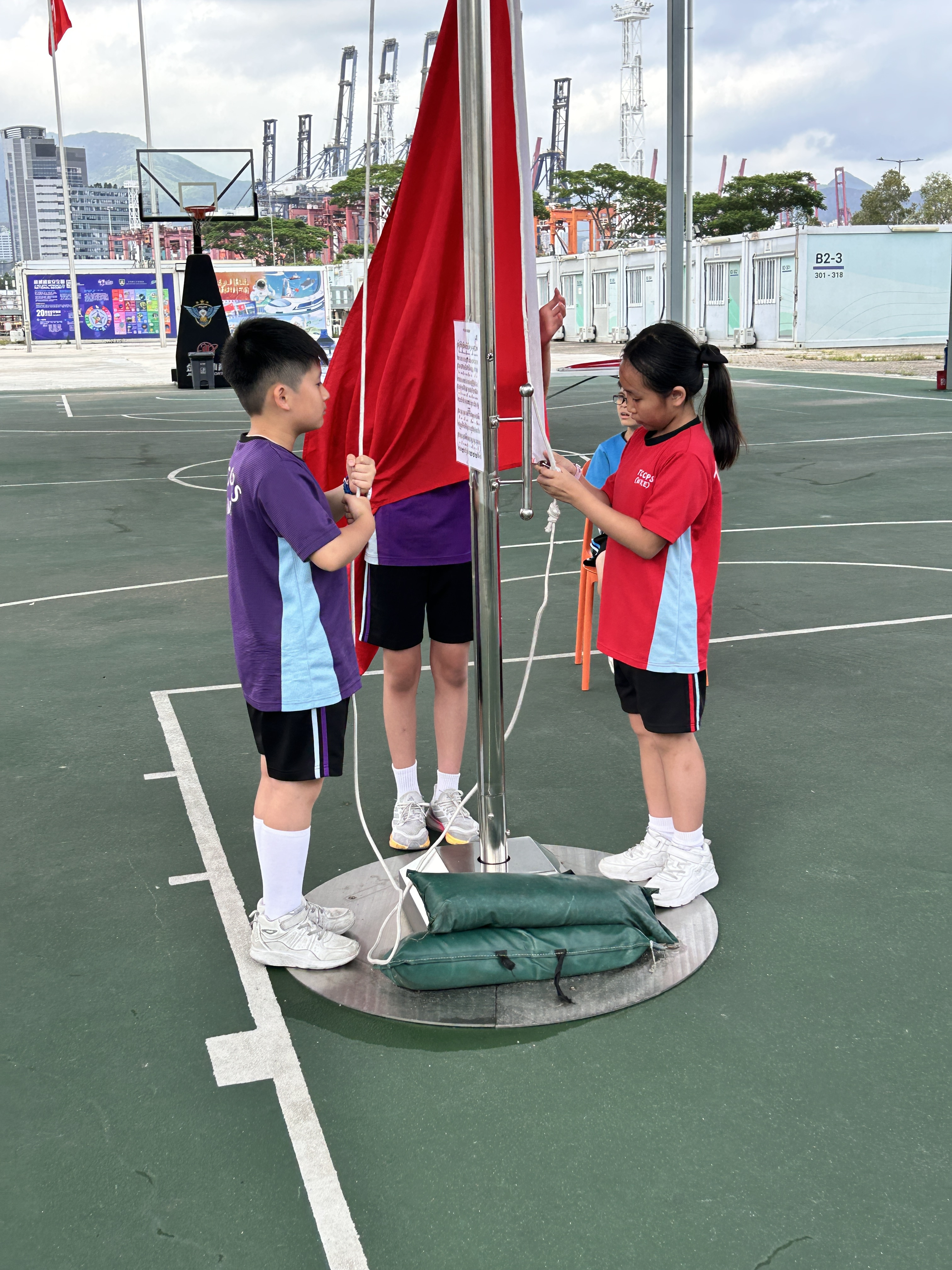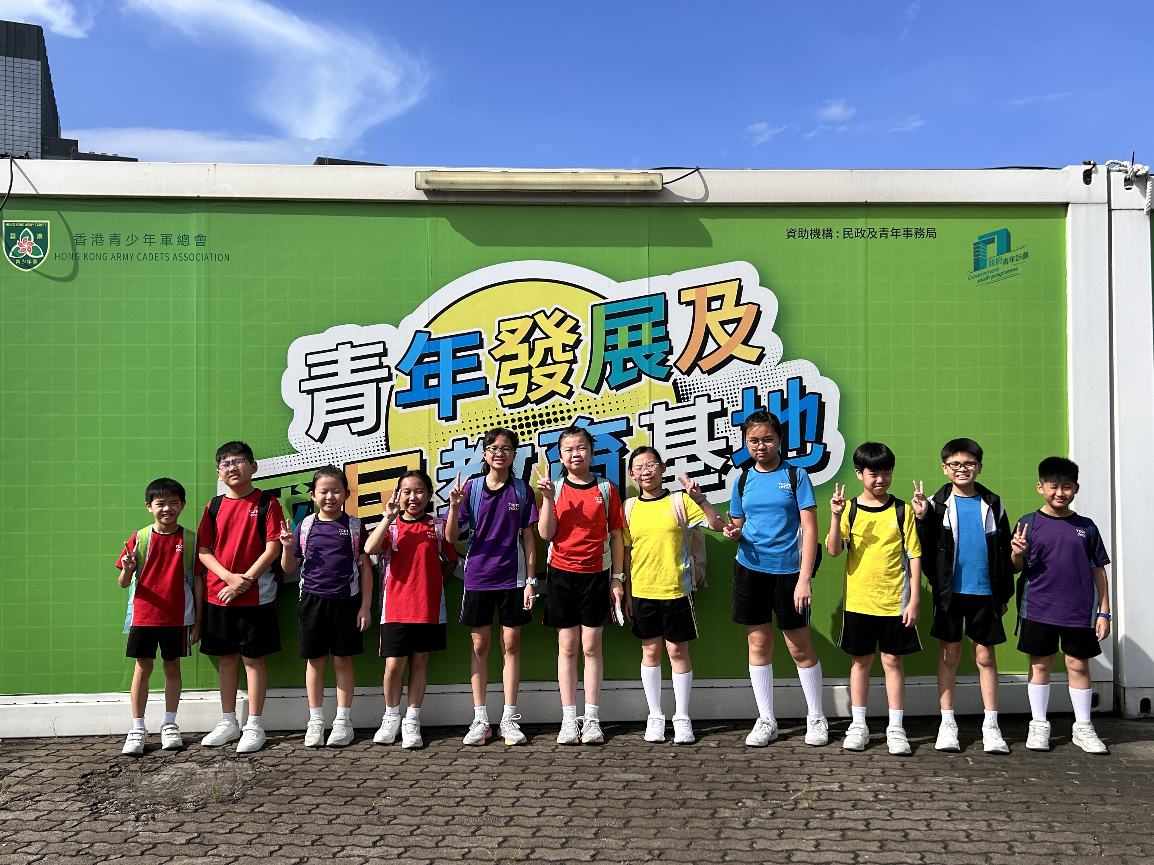 升旗隊隊員於7月15日,參加由香港青少年軍總會舉辨的「青年發展及國民教育基地夏令營」,學習升旗及隊列步操動作。