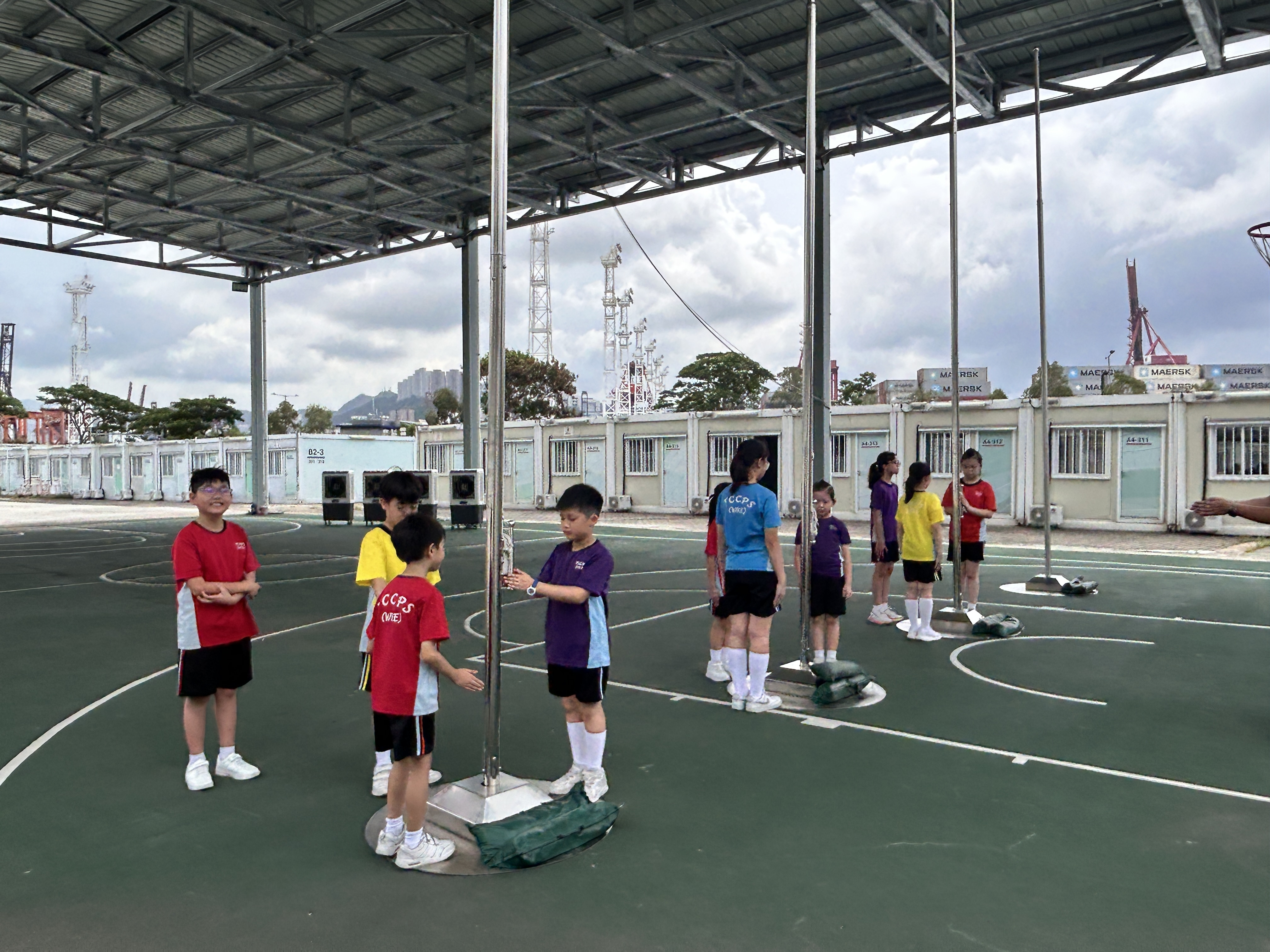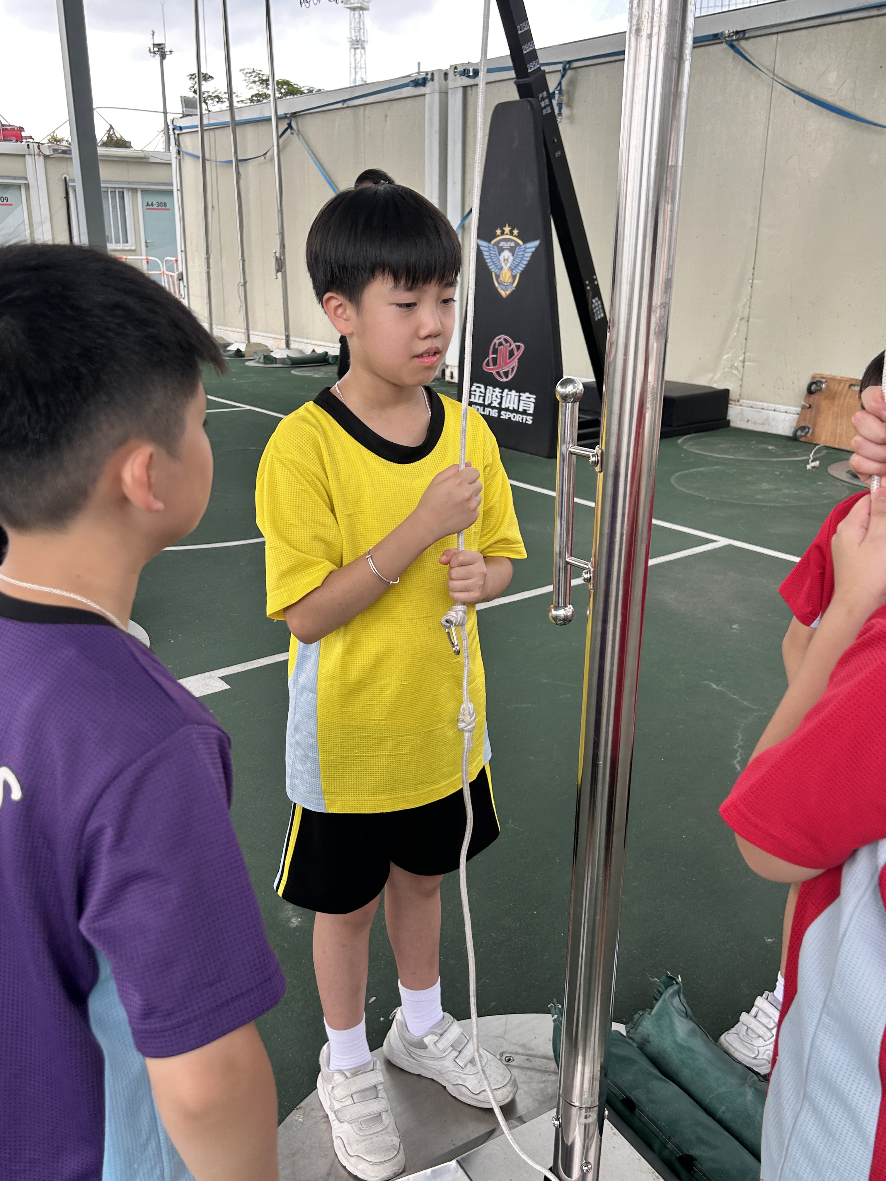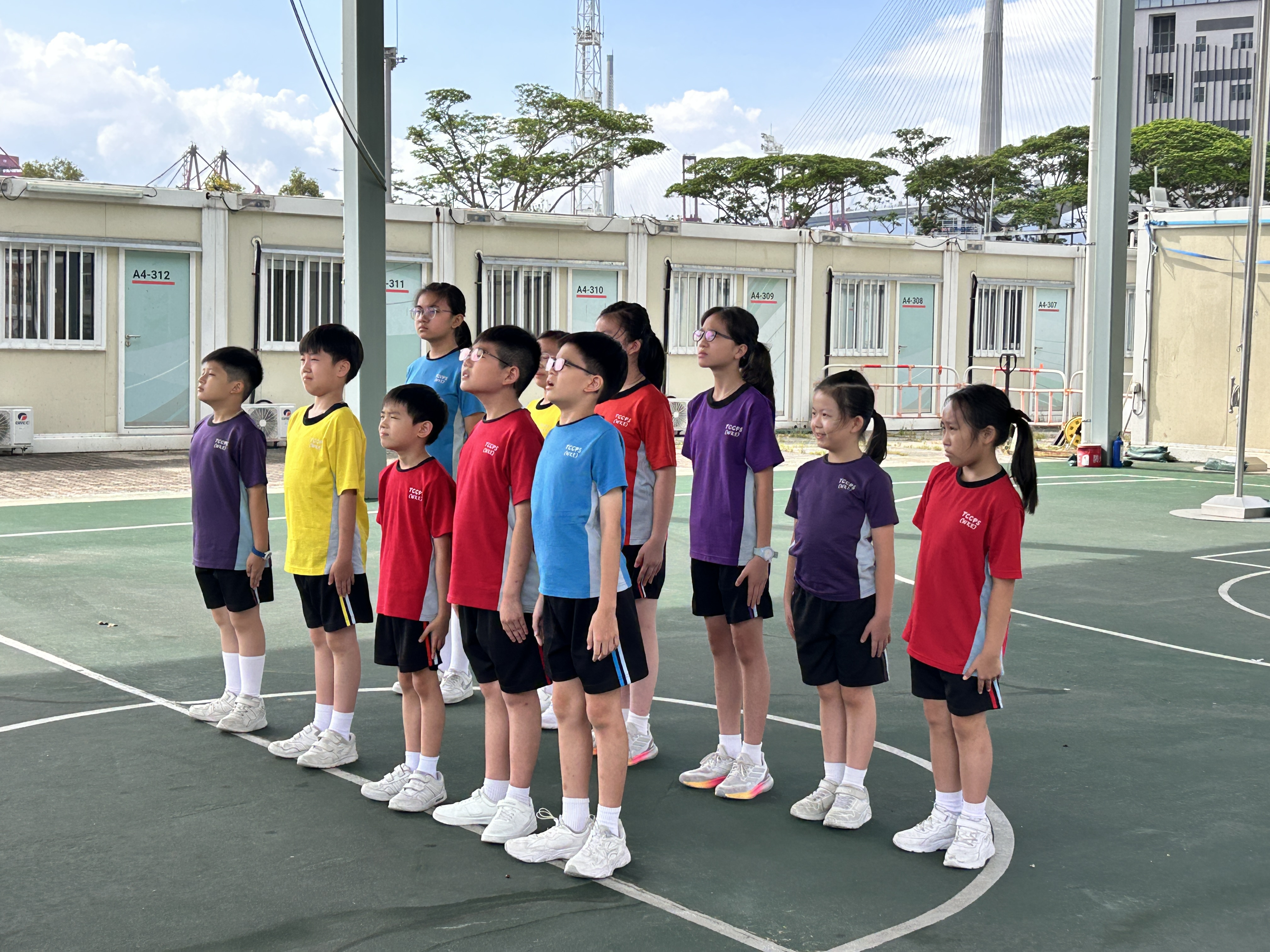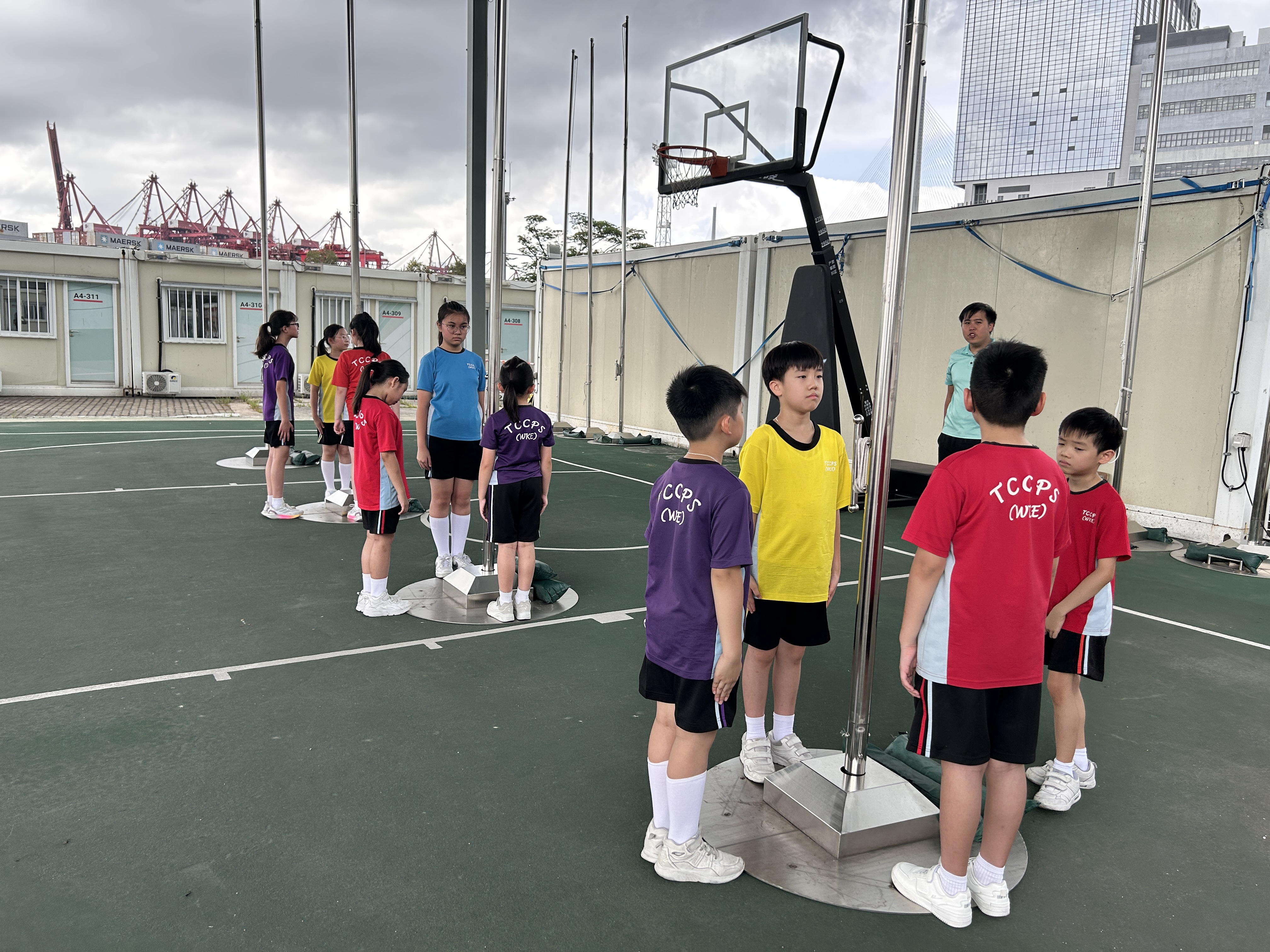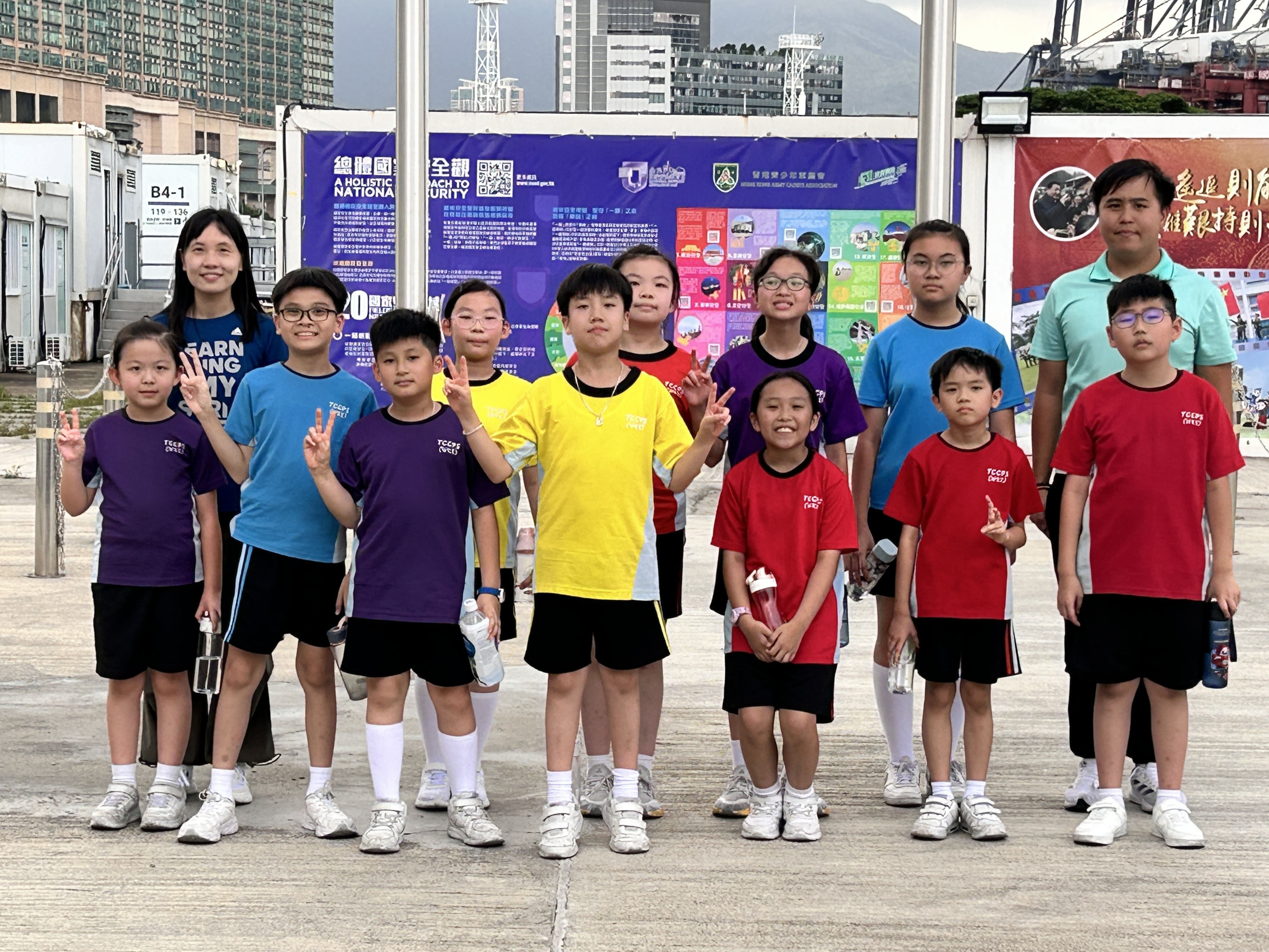 升旗隊隊員於7月15日,參加由香港青少年軍總會舉辨的「青年發展及國民教育基地夏令營」,學習升旗及隊列步操動作。