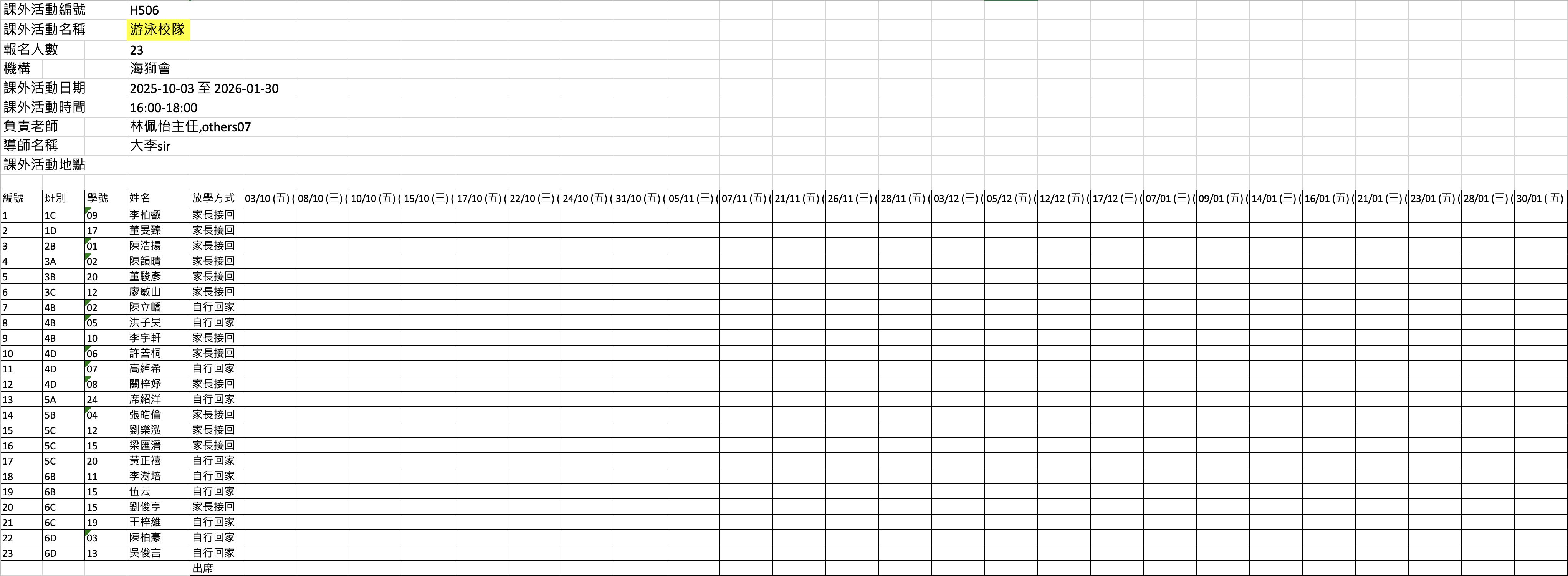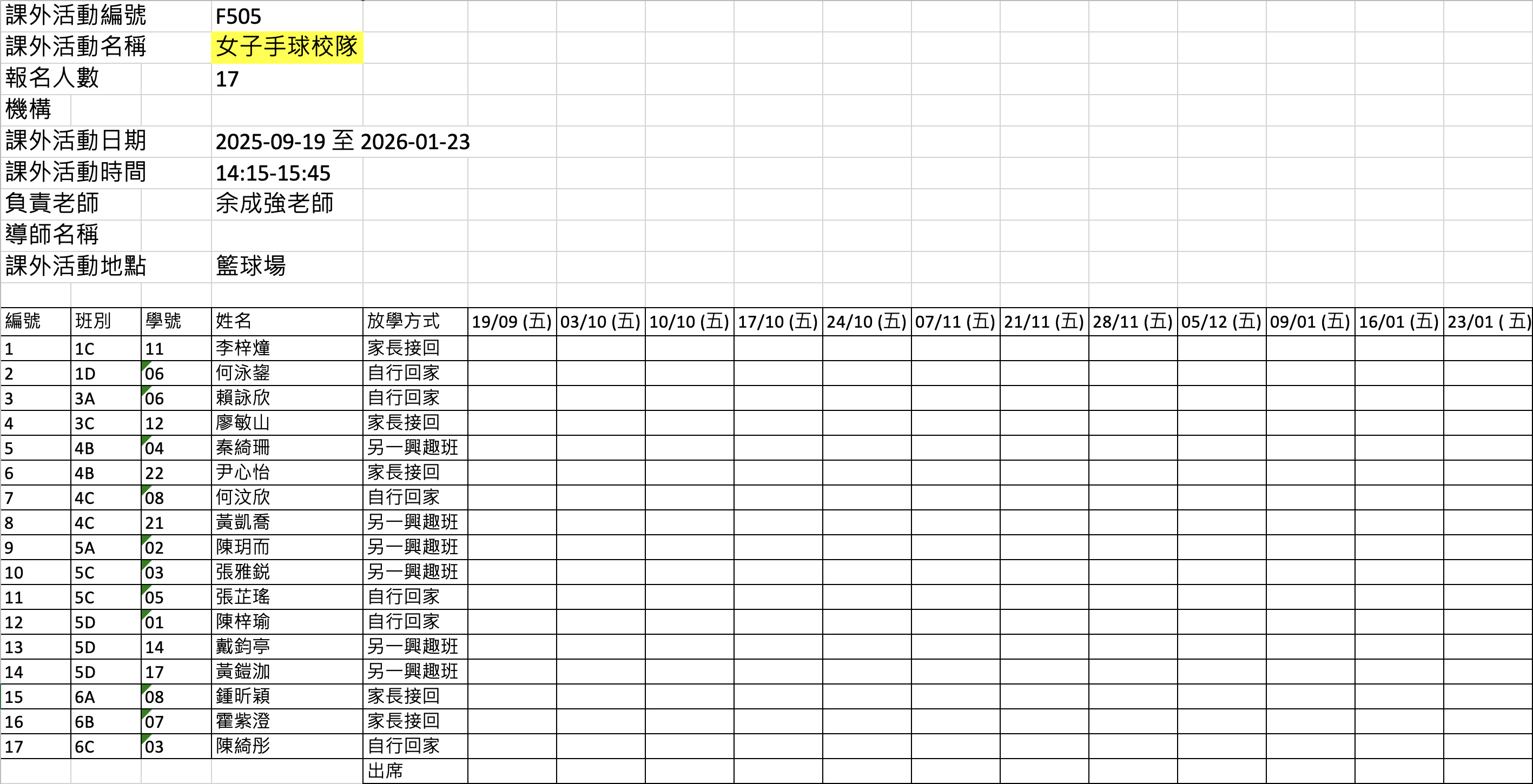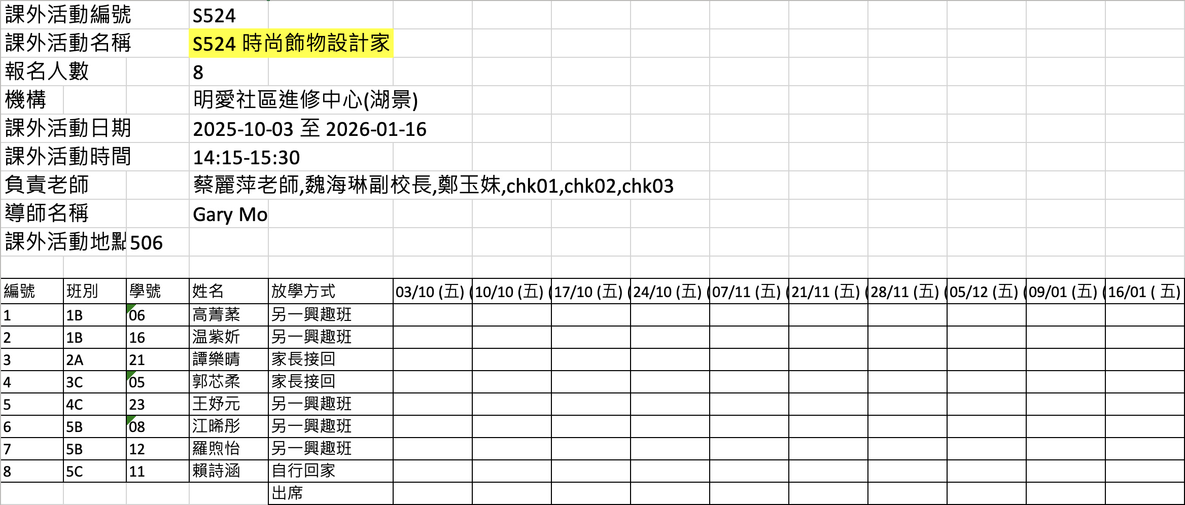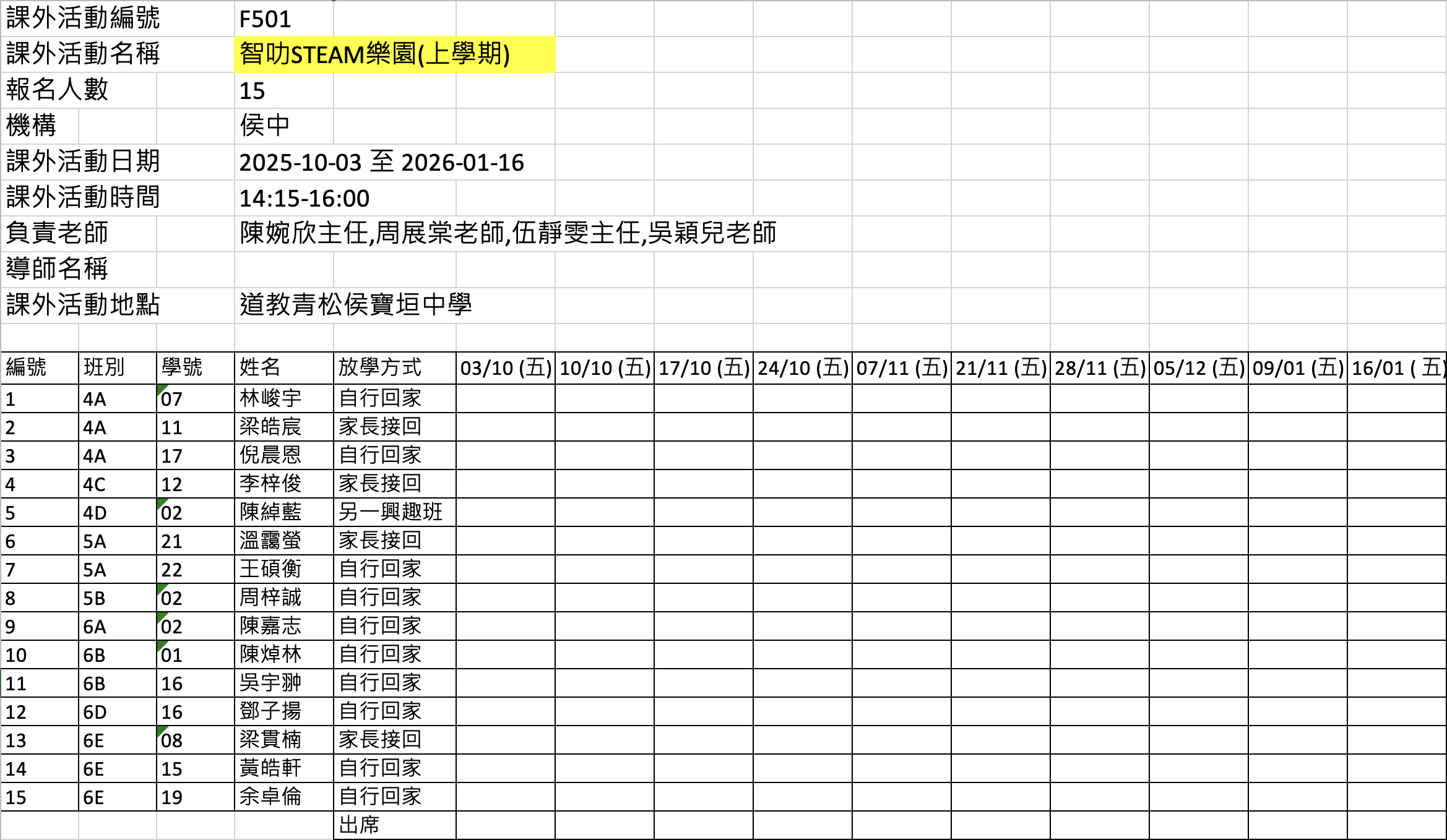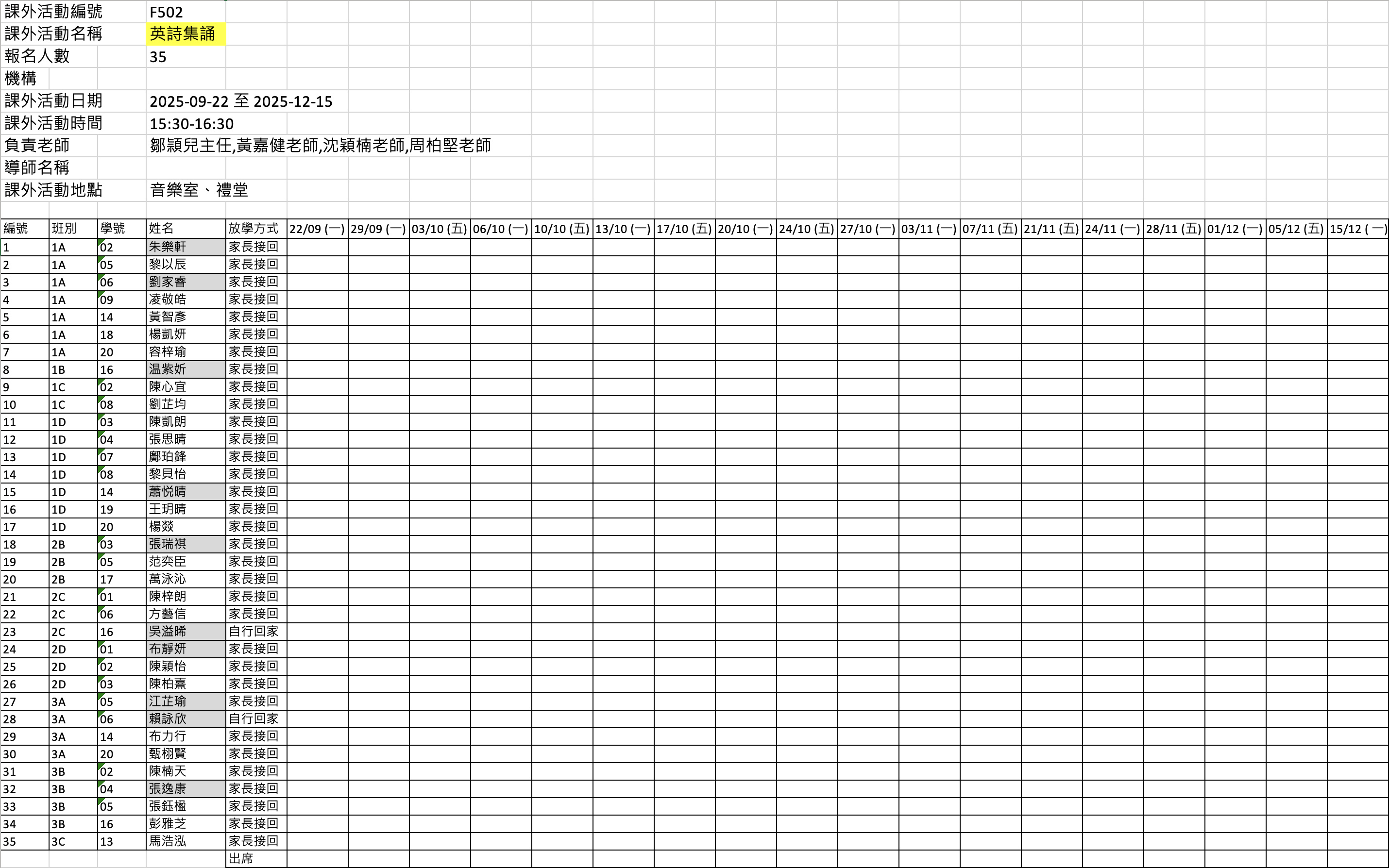 2526上學期周五興趣班名單