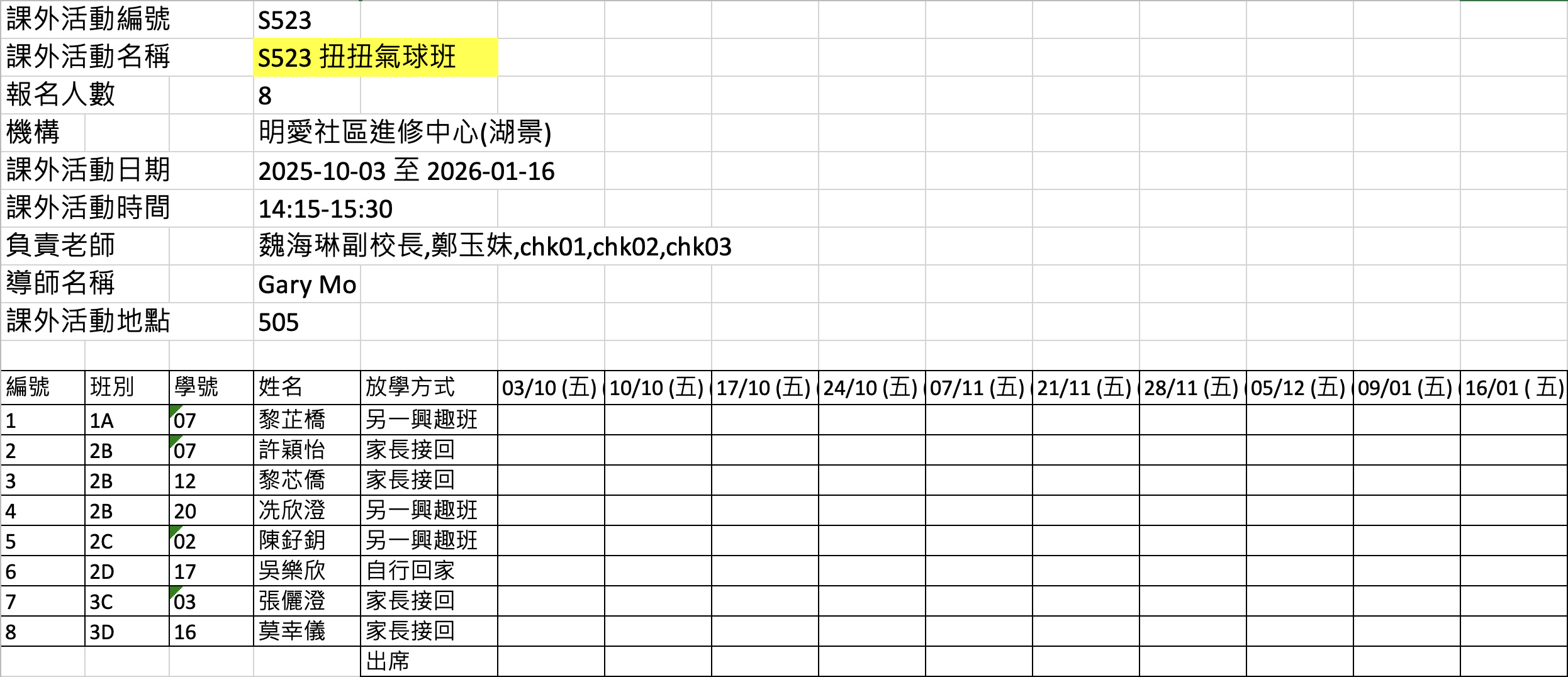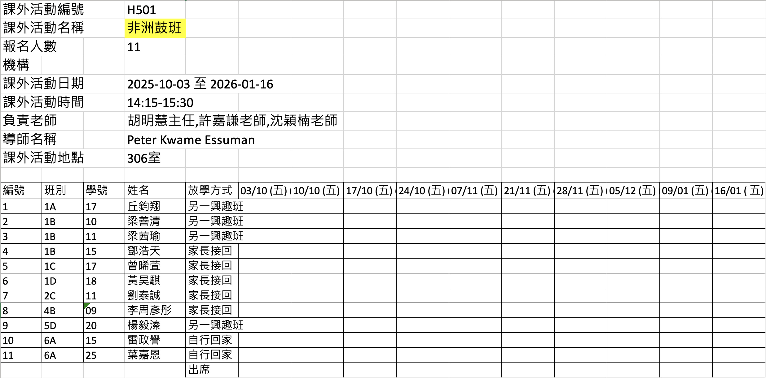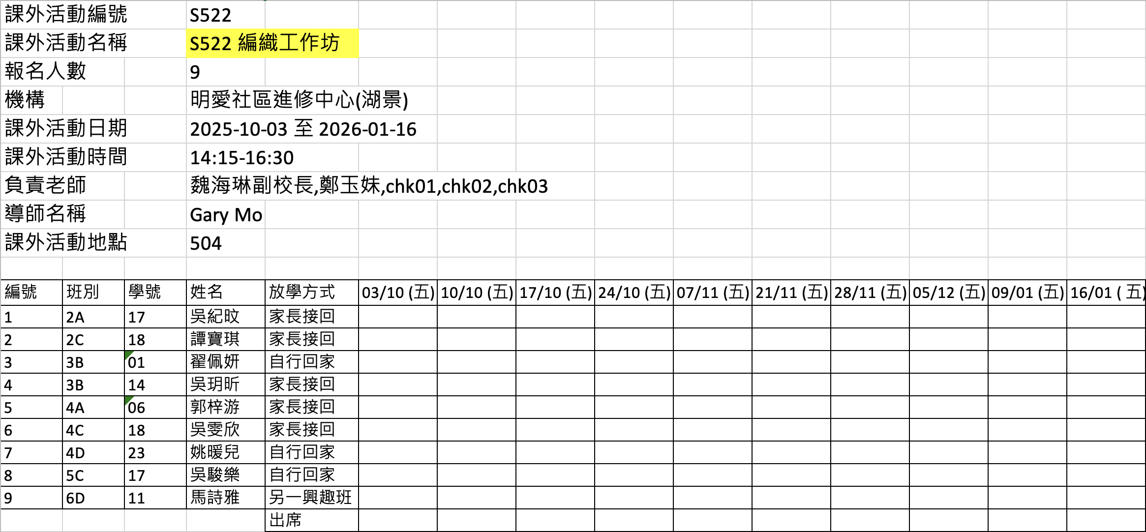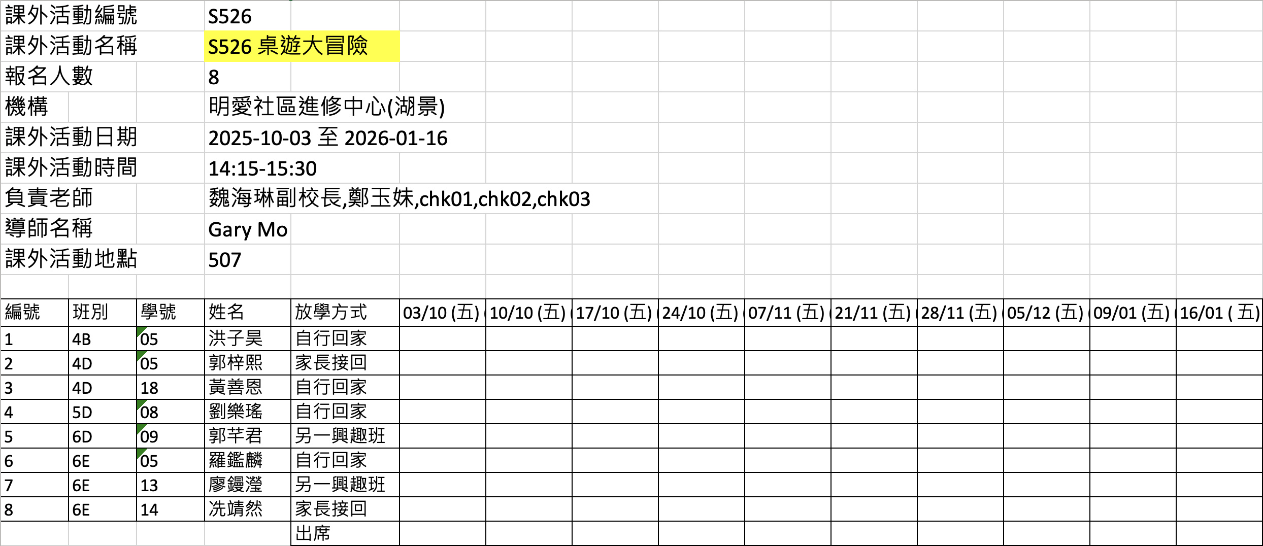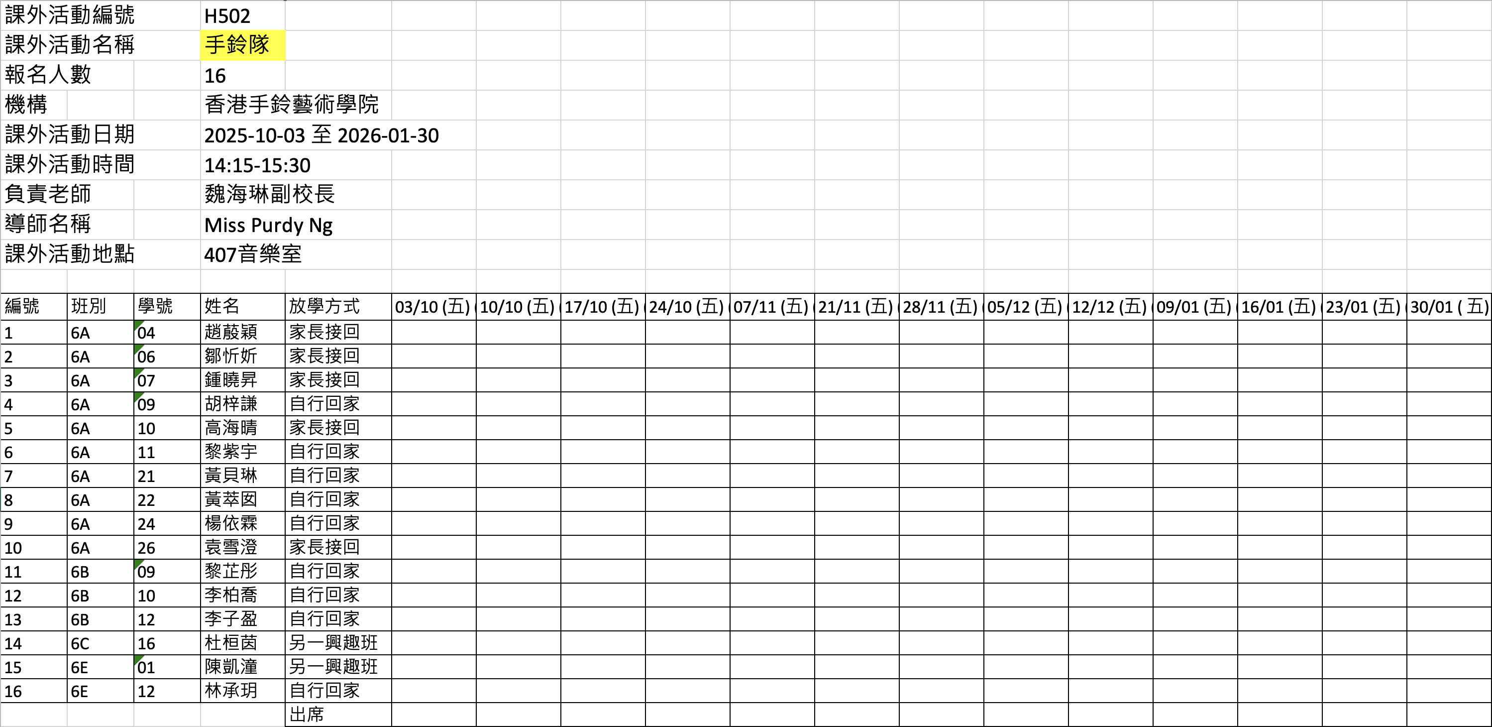 2526上學期周五興趣班名單