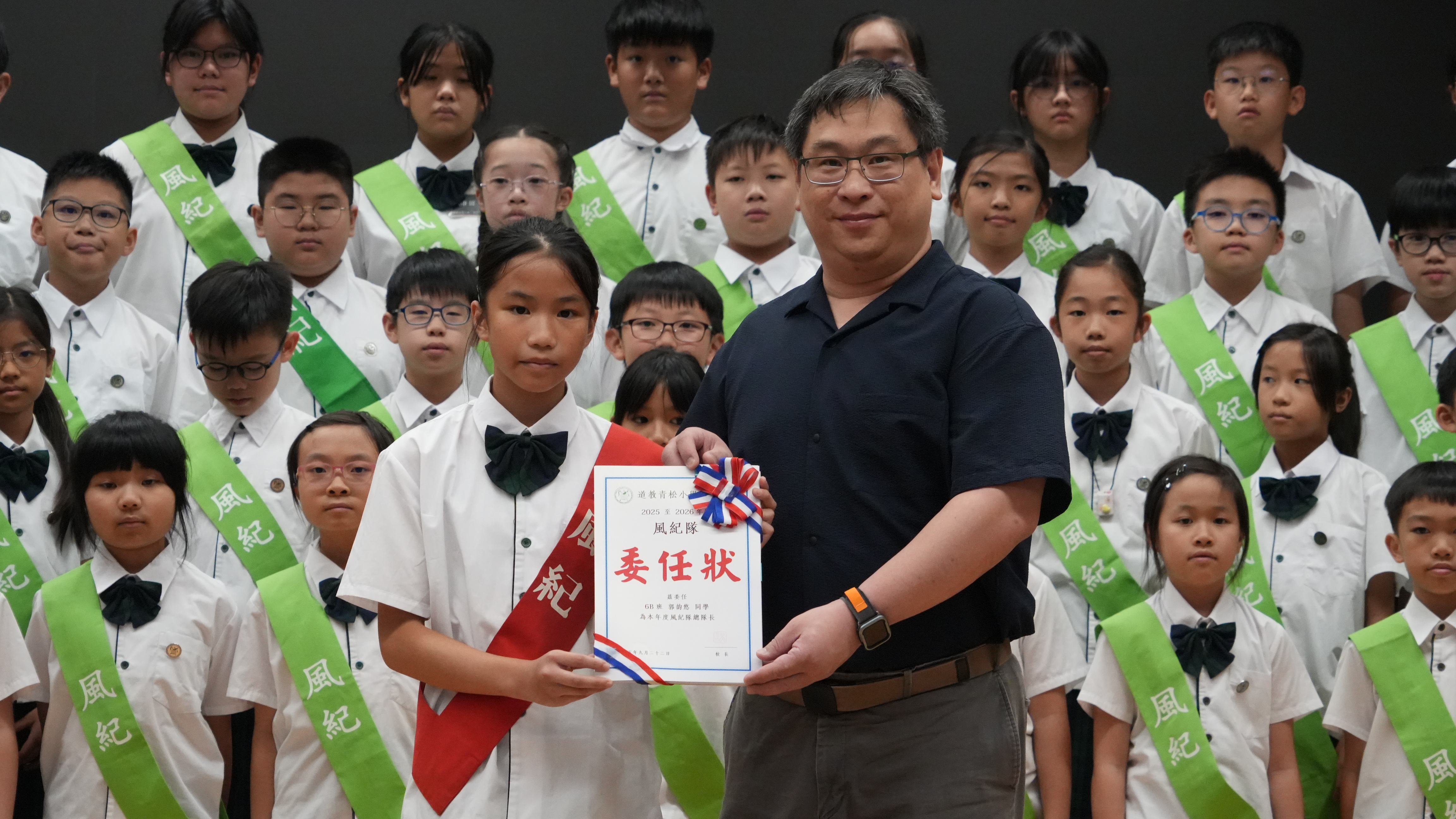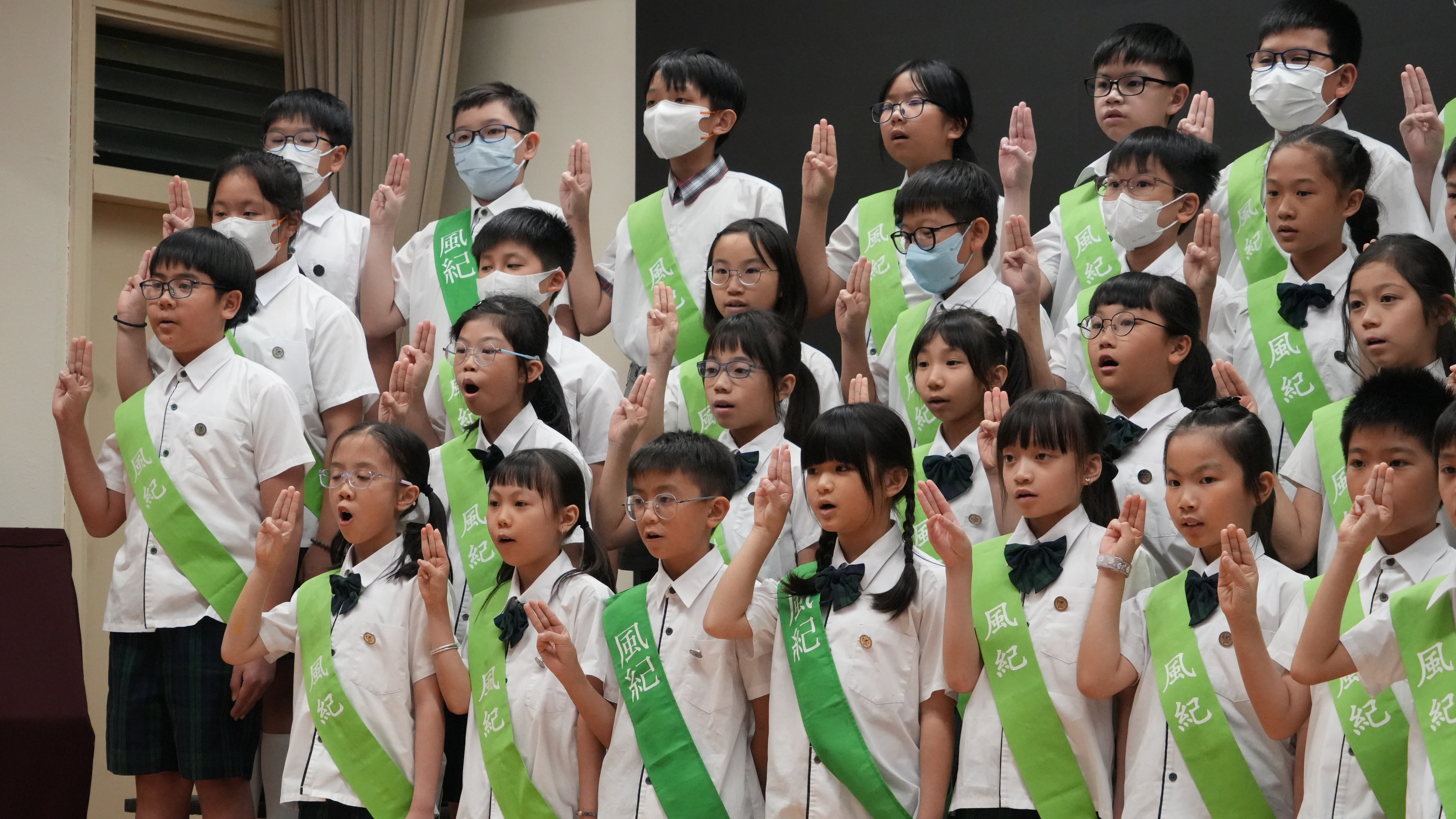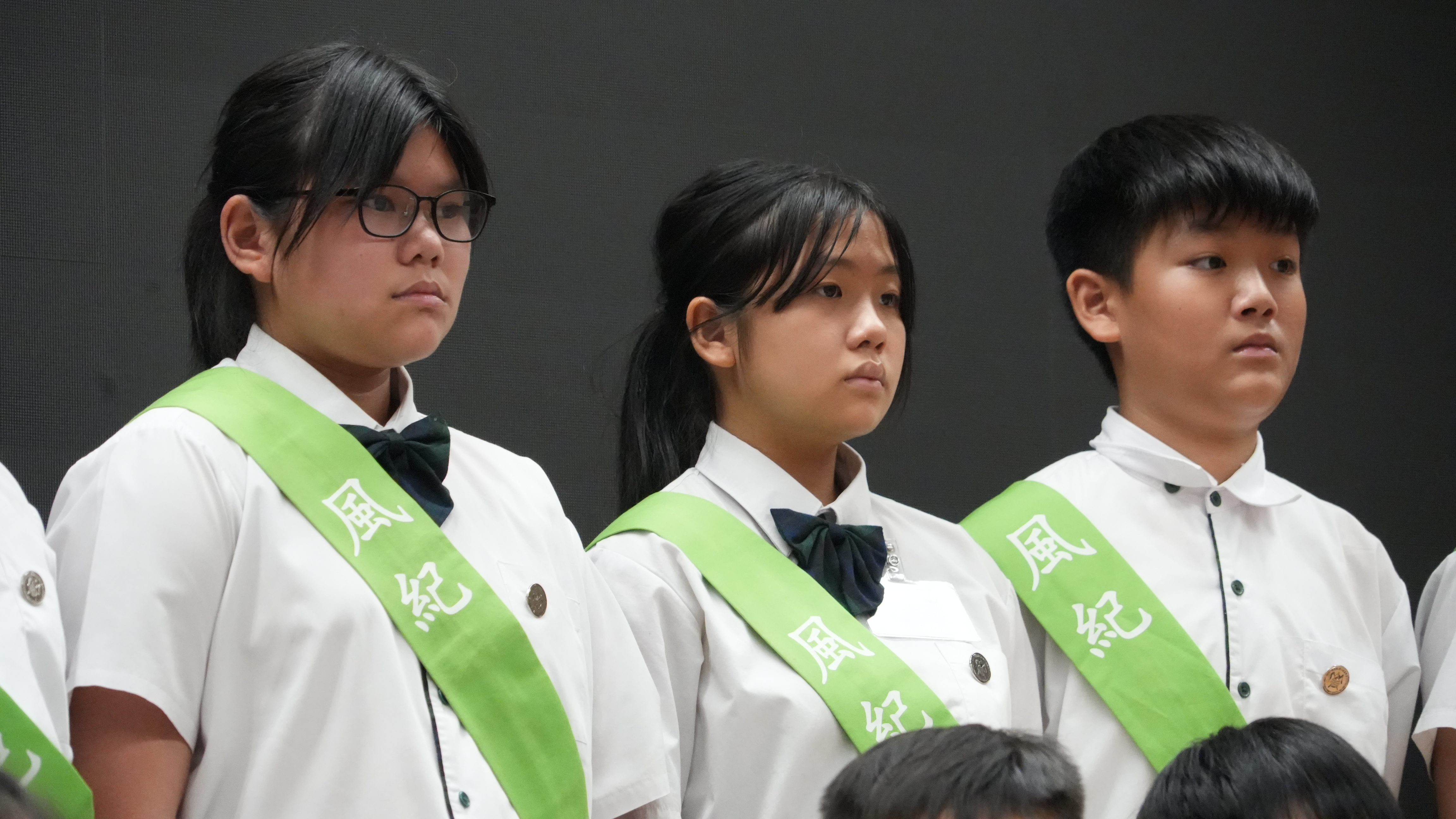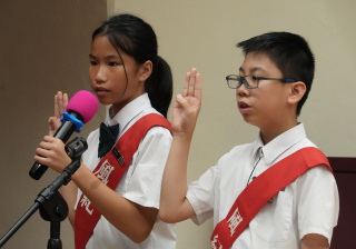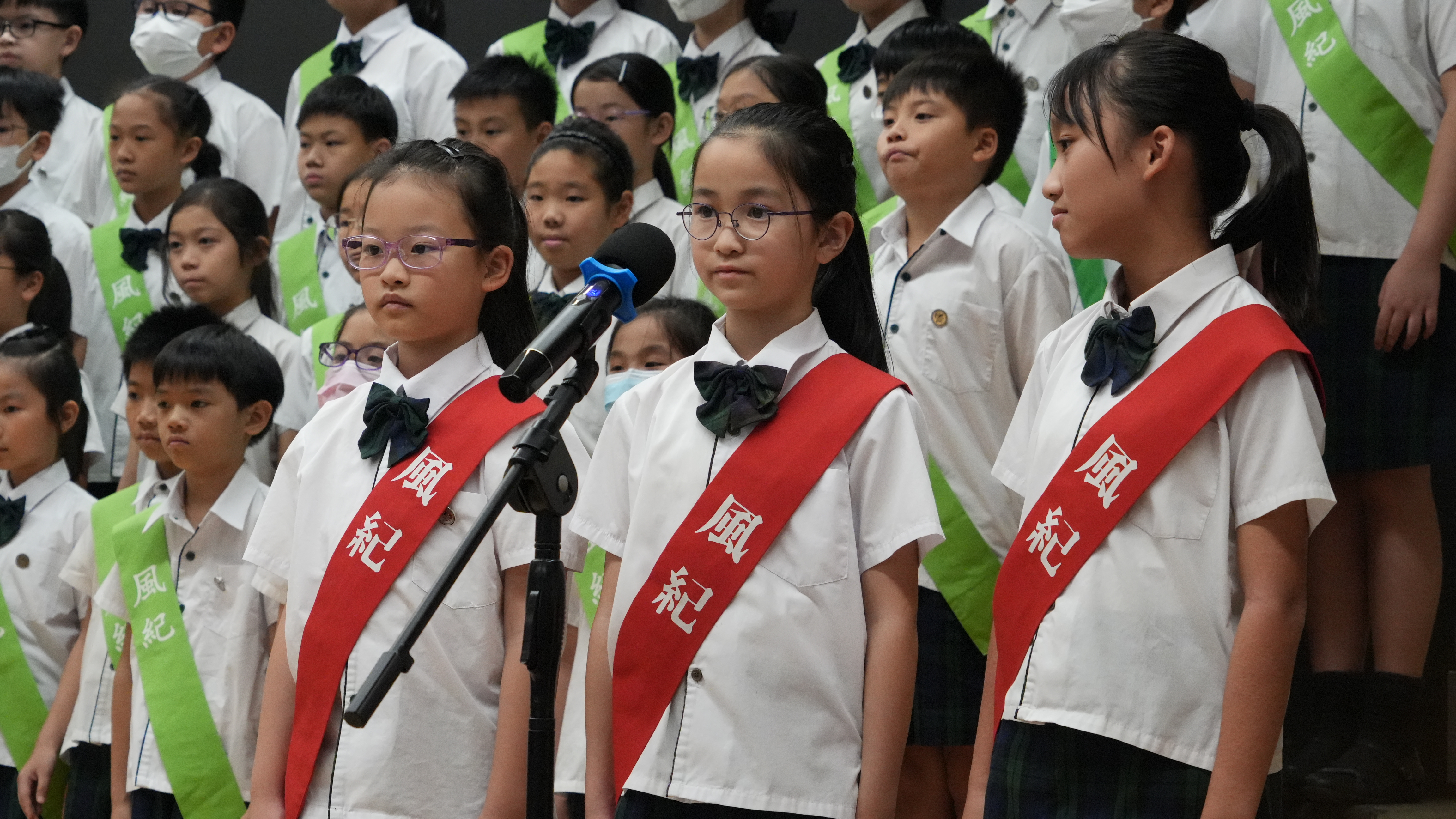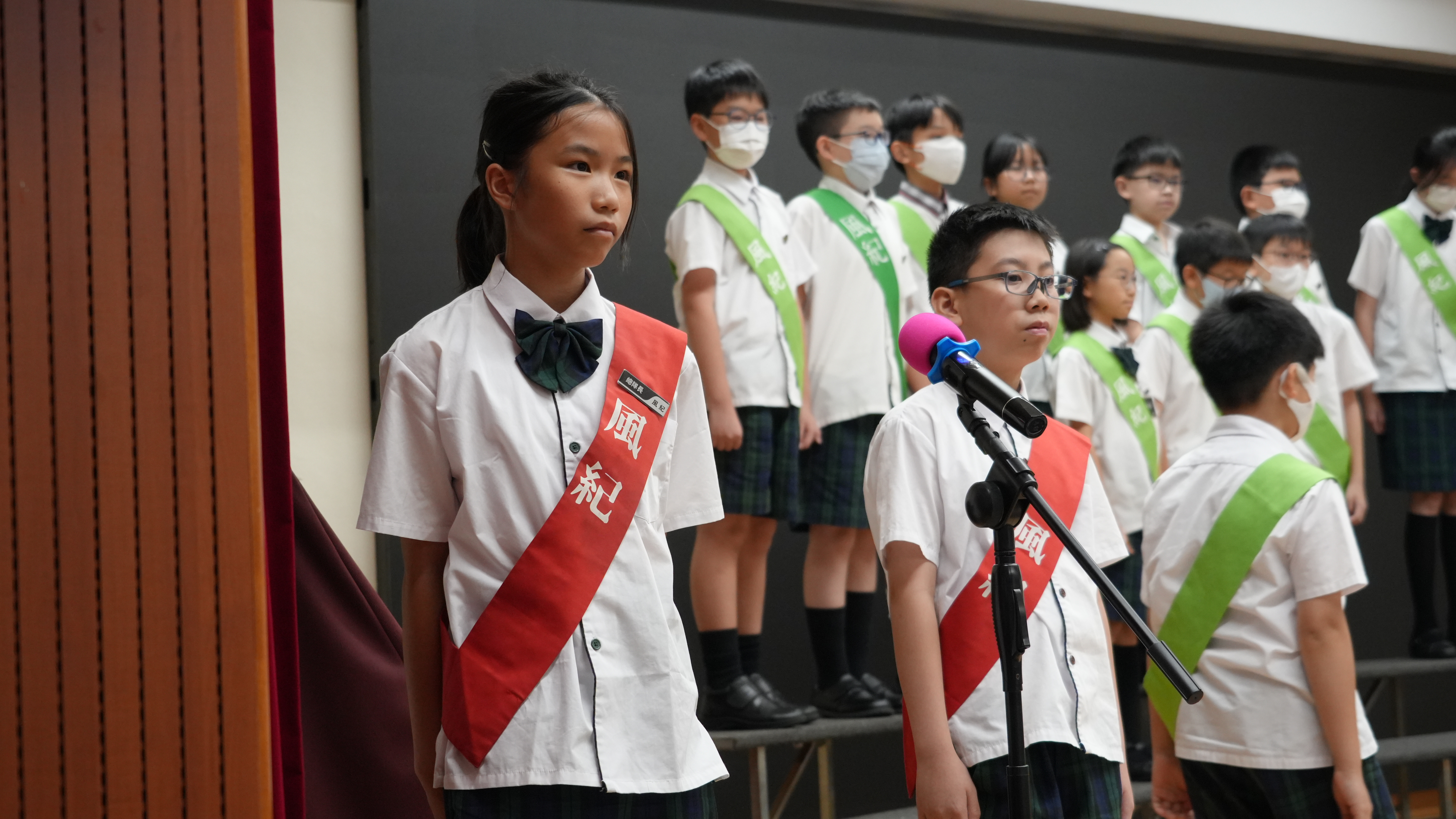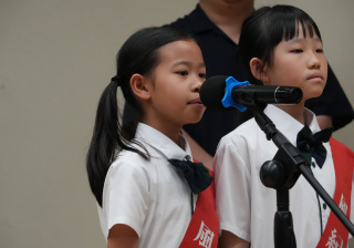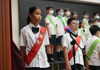 校長的監誓、四位負責老師及全校師生的見證下進行宣誓,正式成為本年度的風紀隊員,肩負為學校及同學服務的使命。