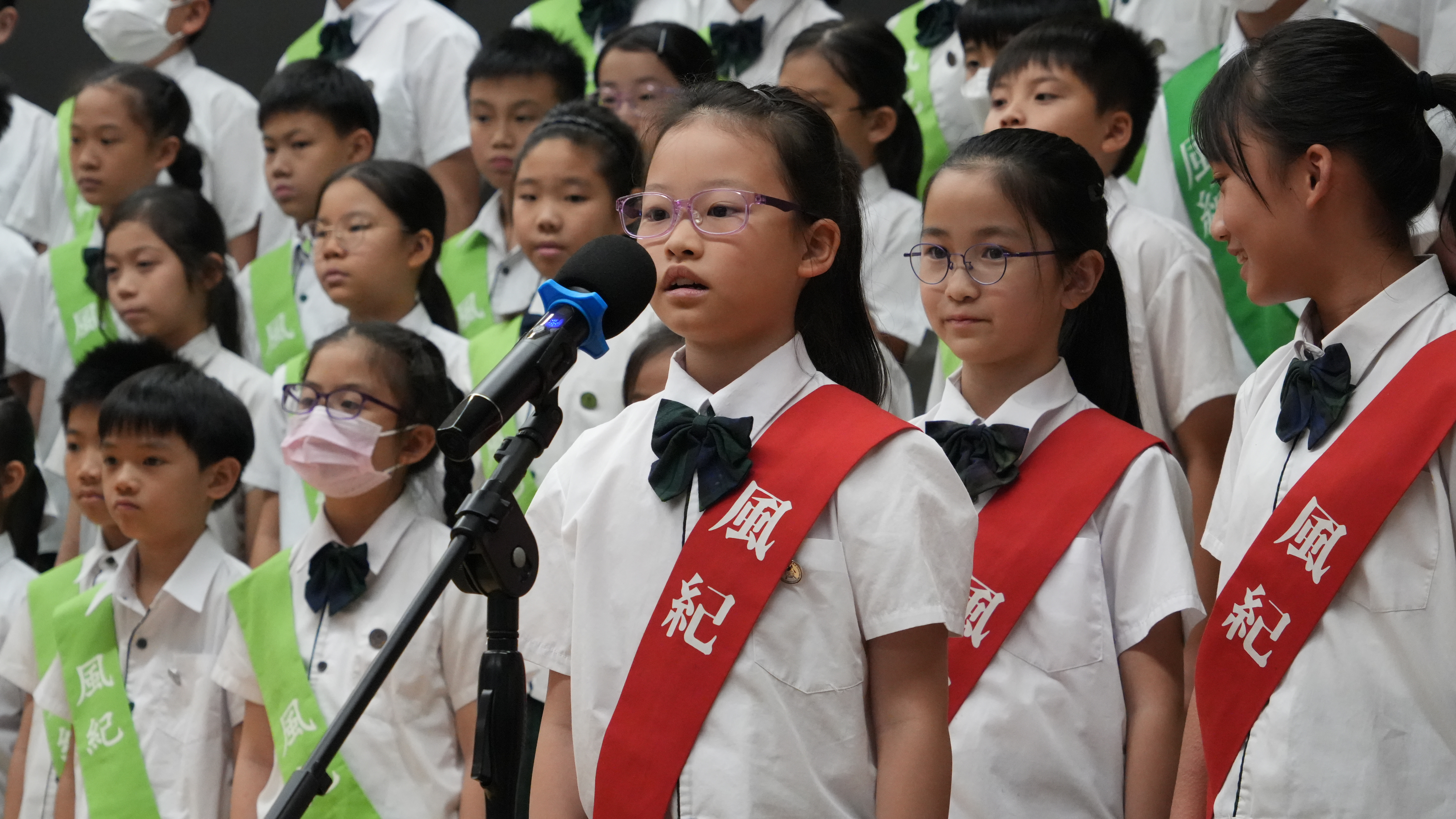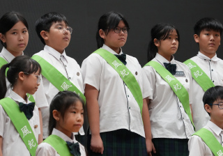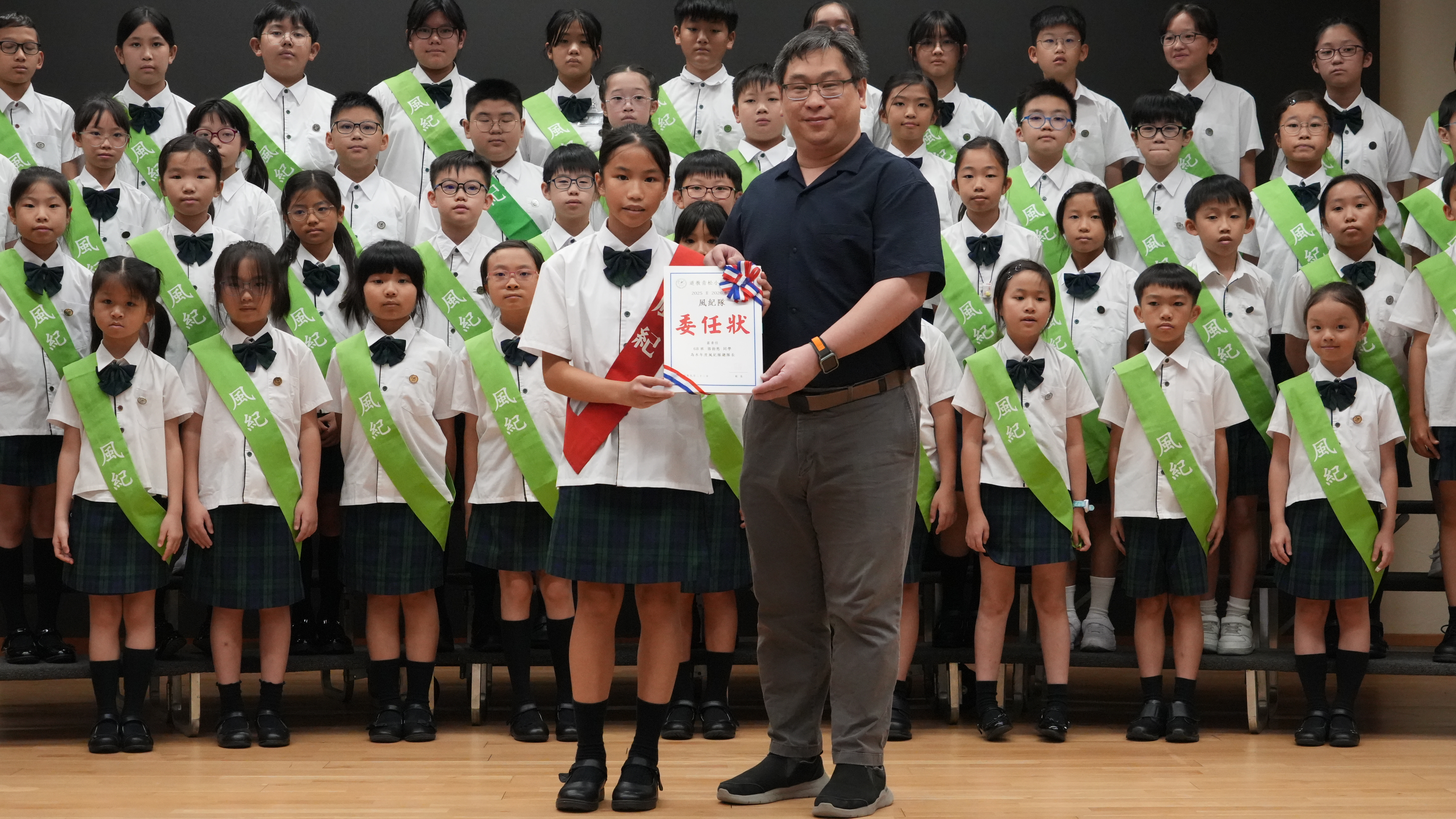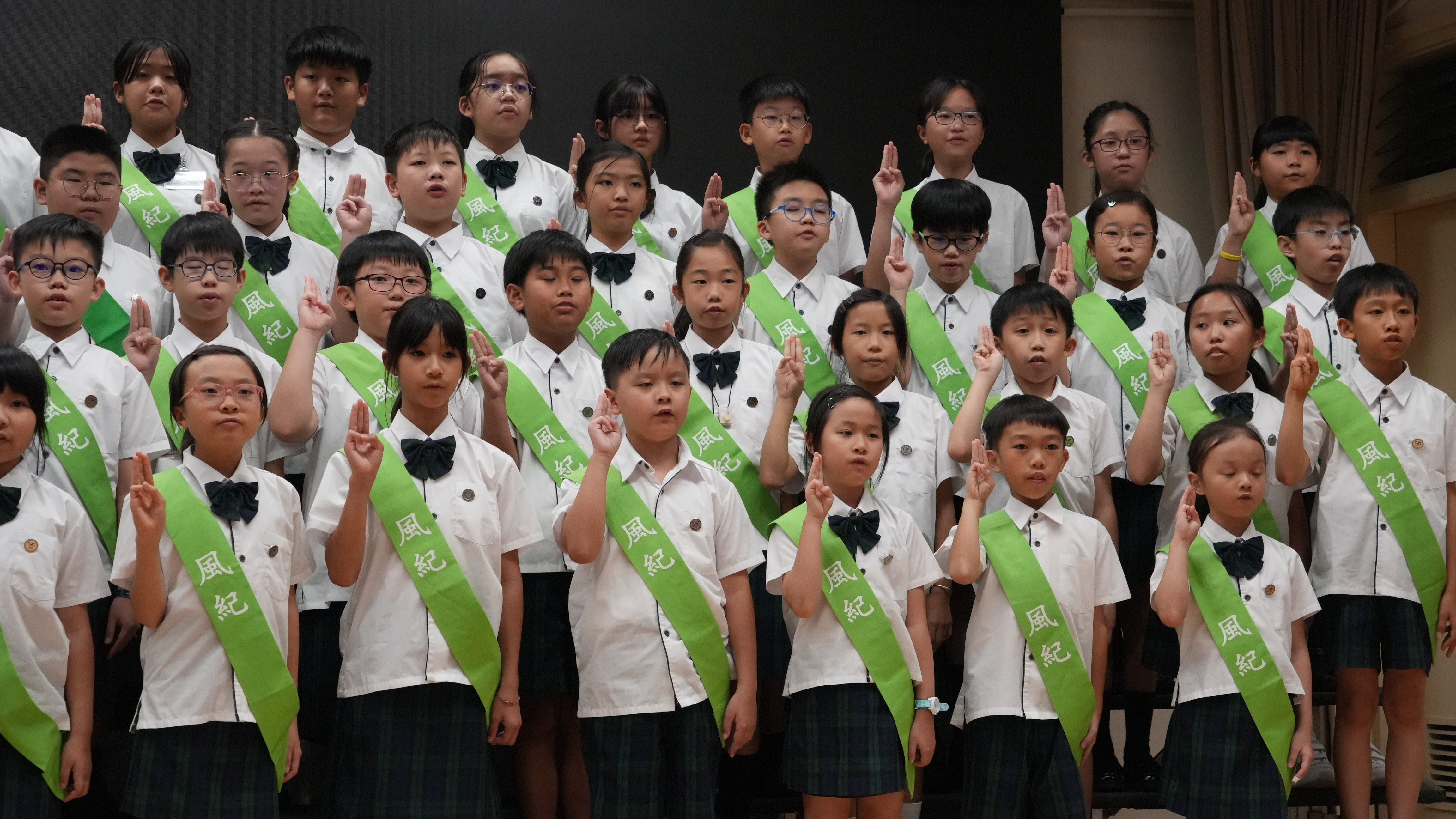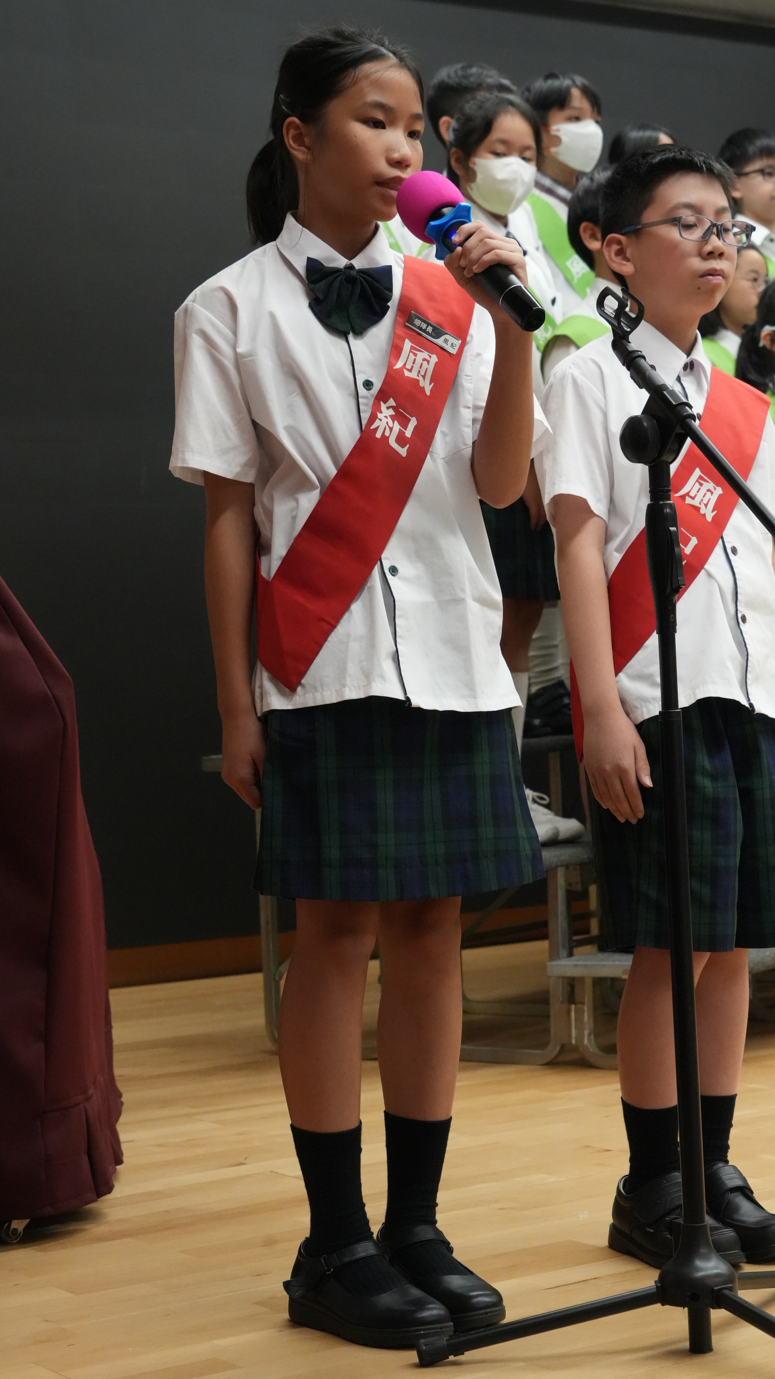 校長的監誓、四位負責老師及全校師生的見證下進行宣誓,正式成為本年度的風紀隊員,肩負為學校及同學服務的使命。