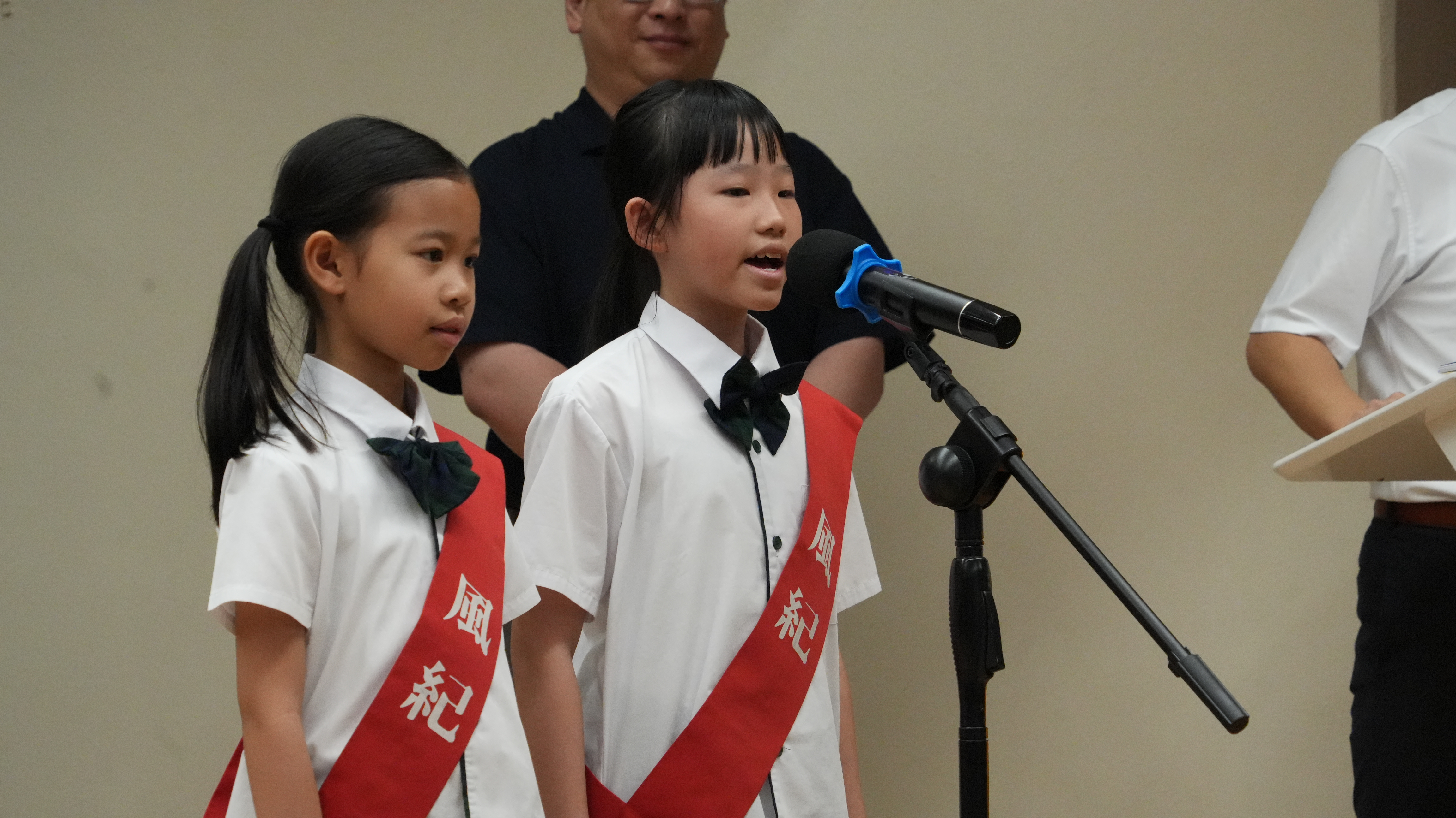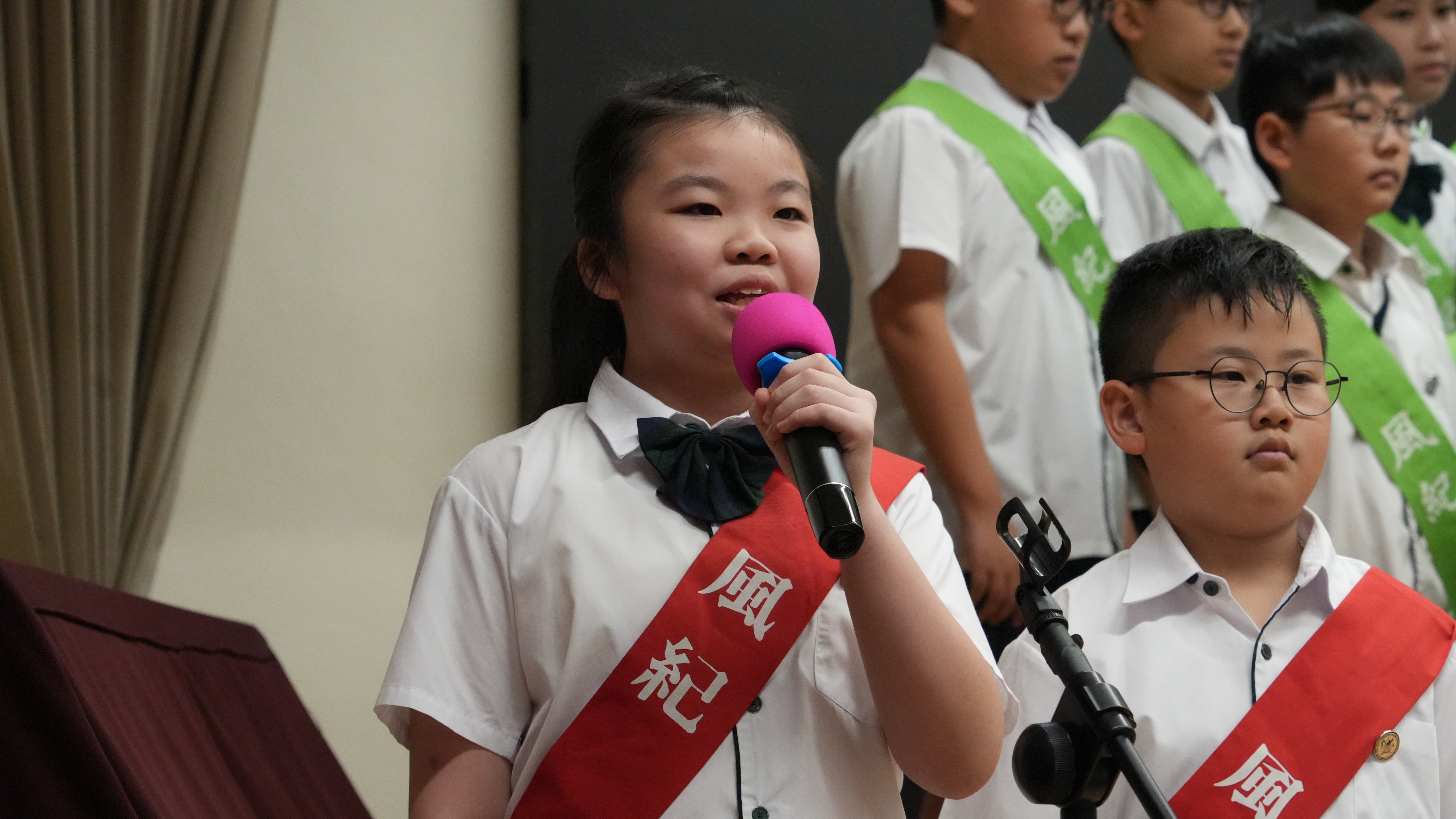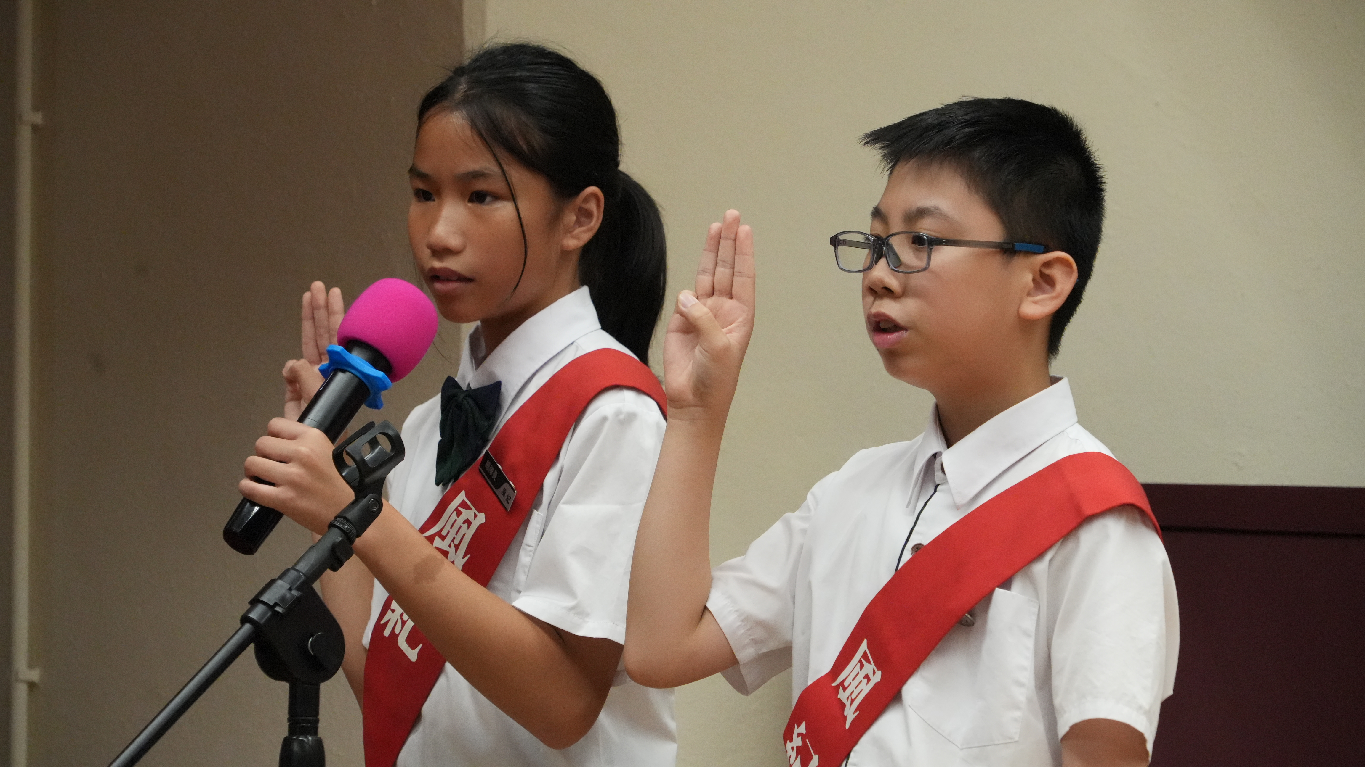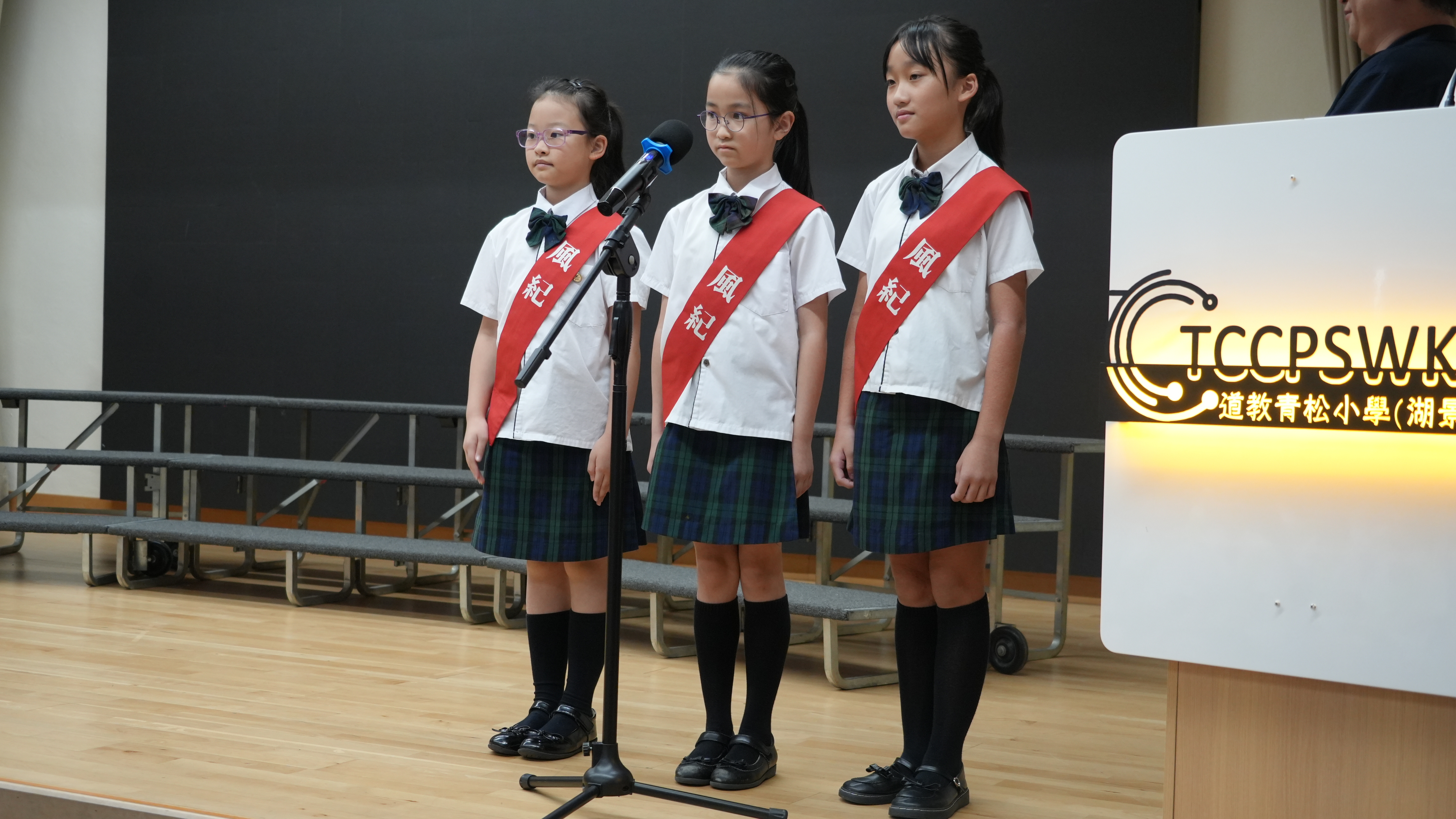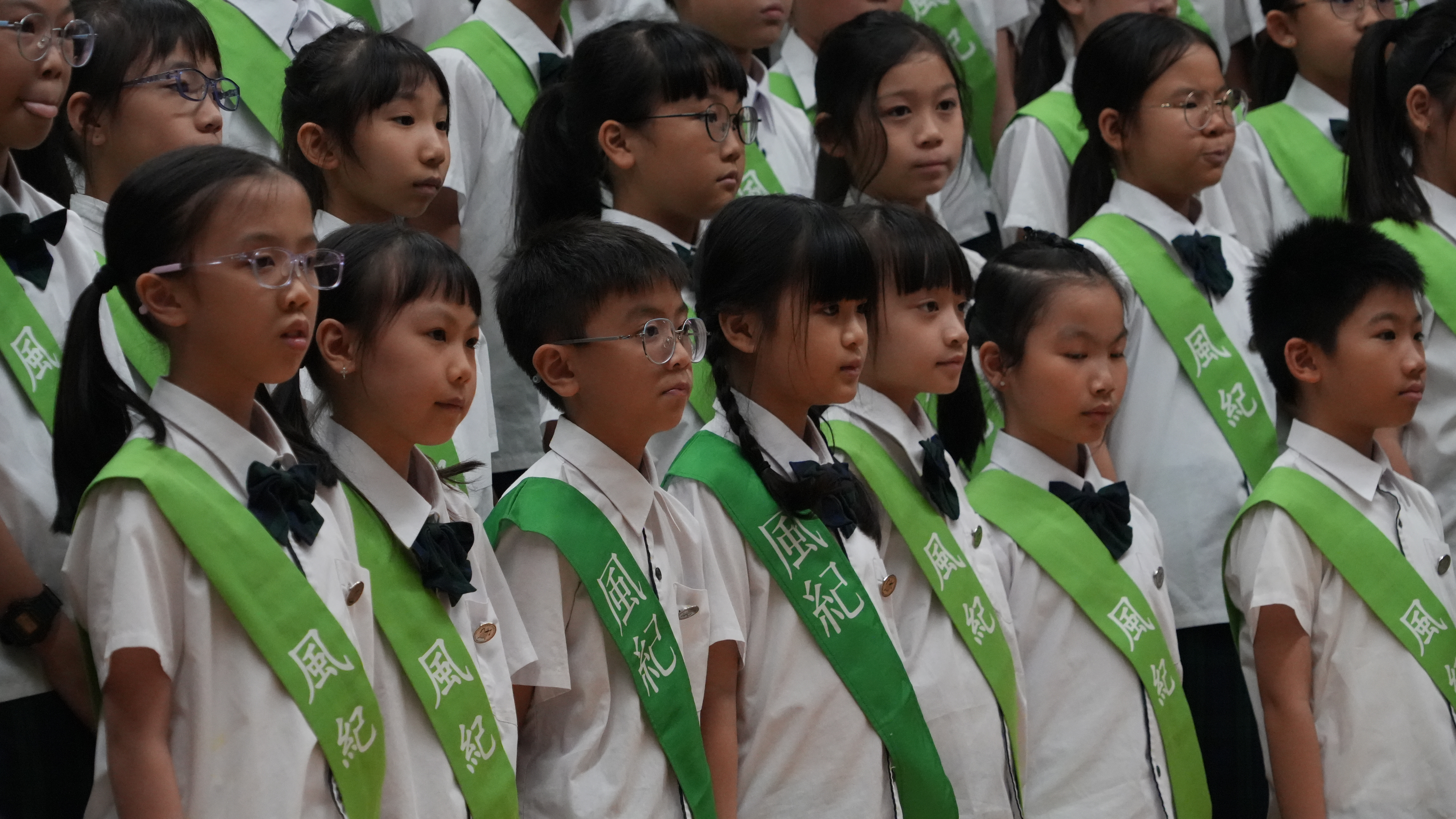 校長的監誓、四位負責老師及全校師生的見證下進行宣誓,正式成為本年度的風紀隊員,肩負為學校及同學服務的使命。