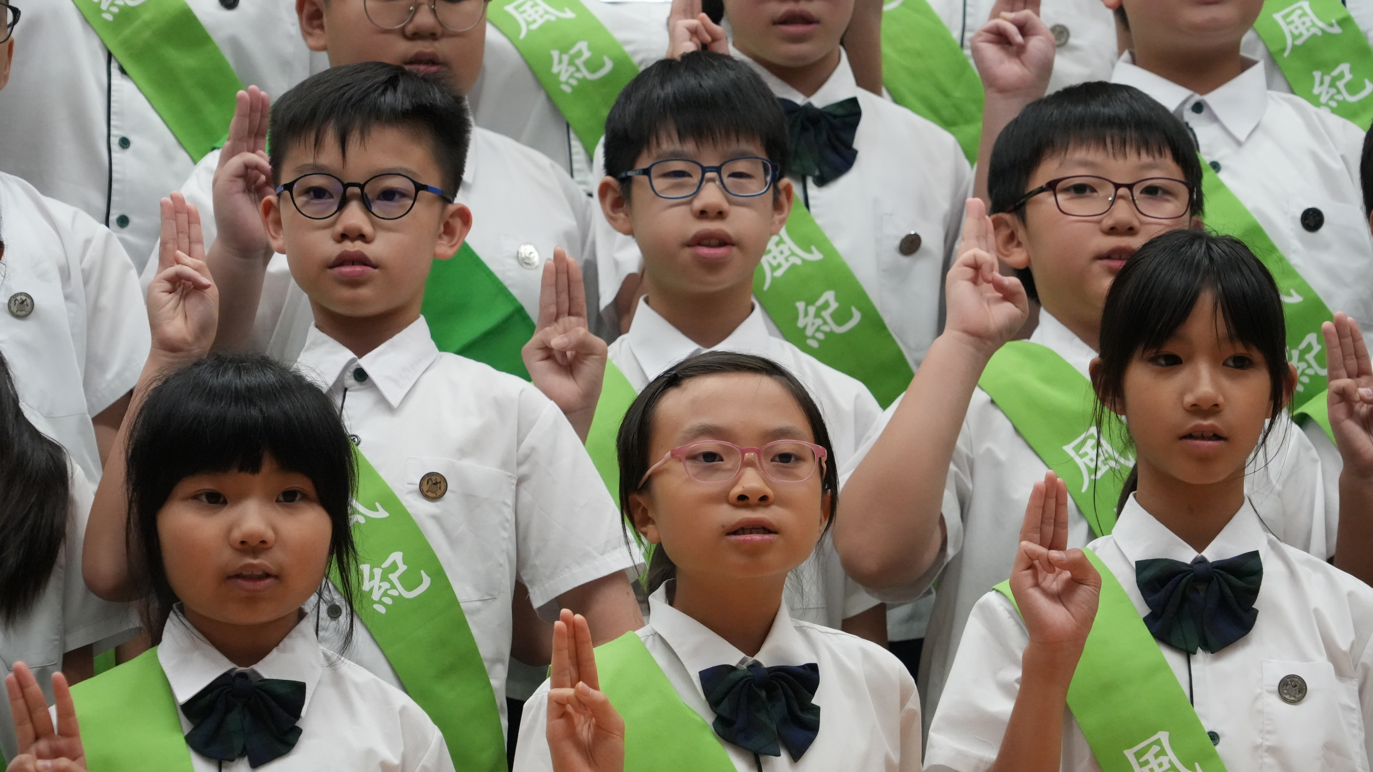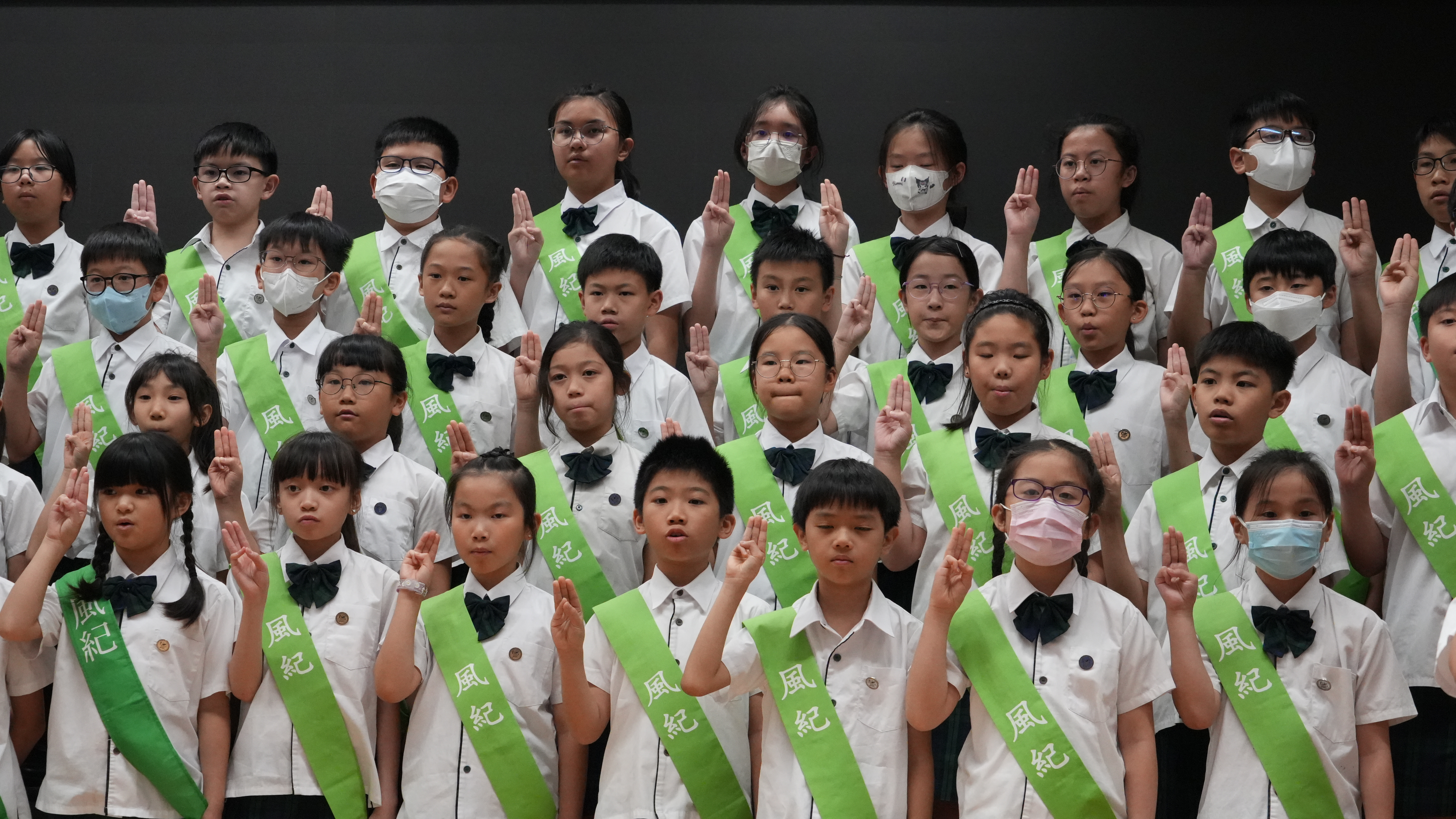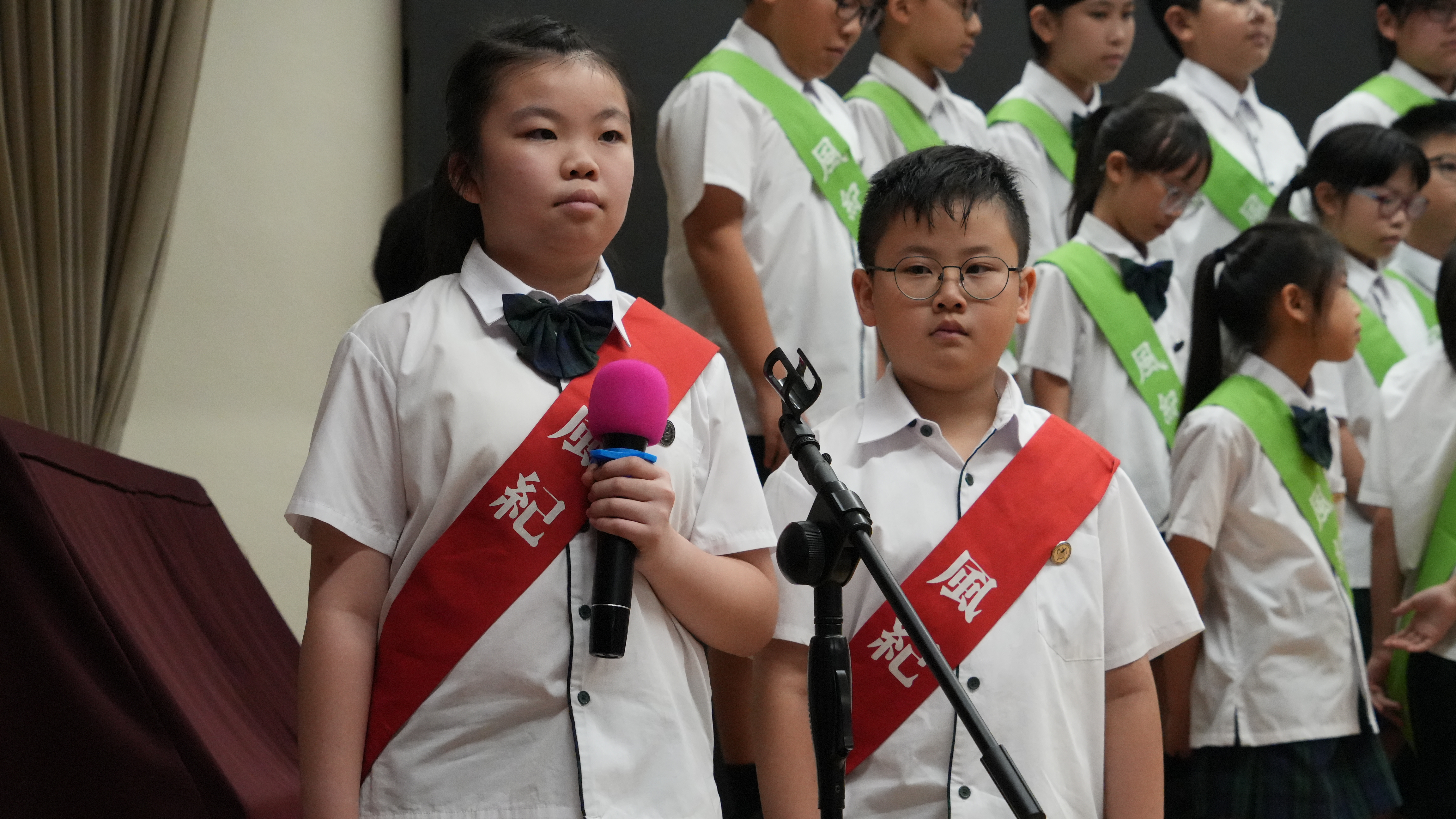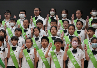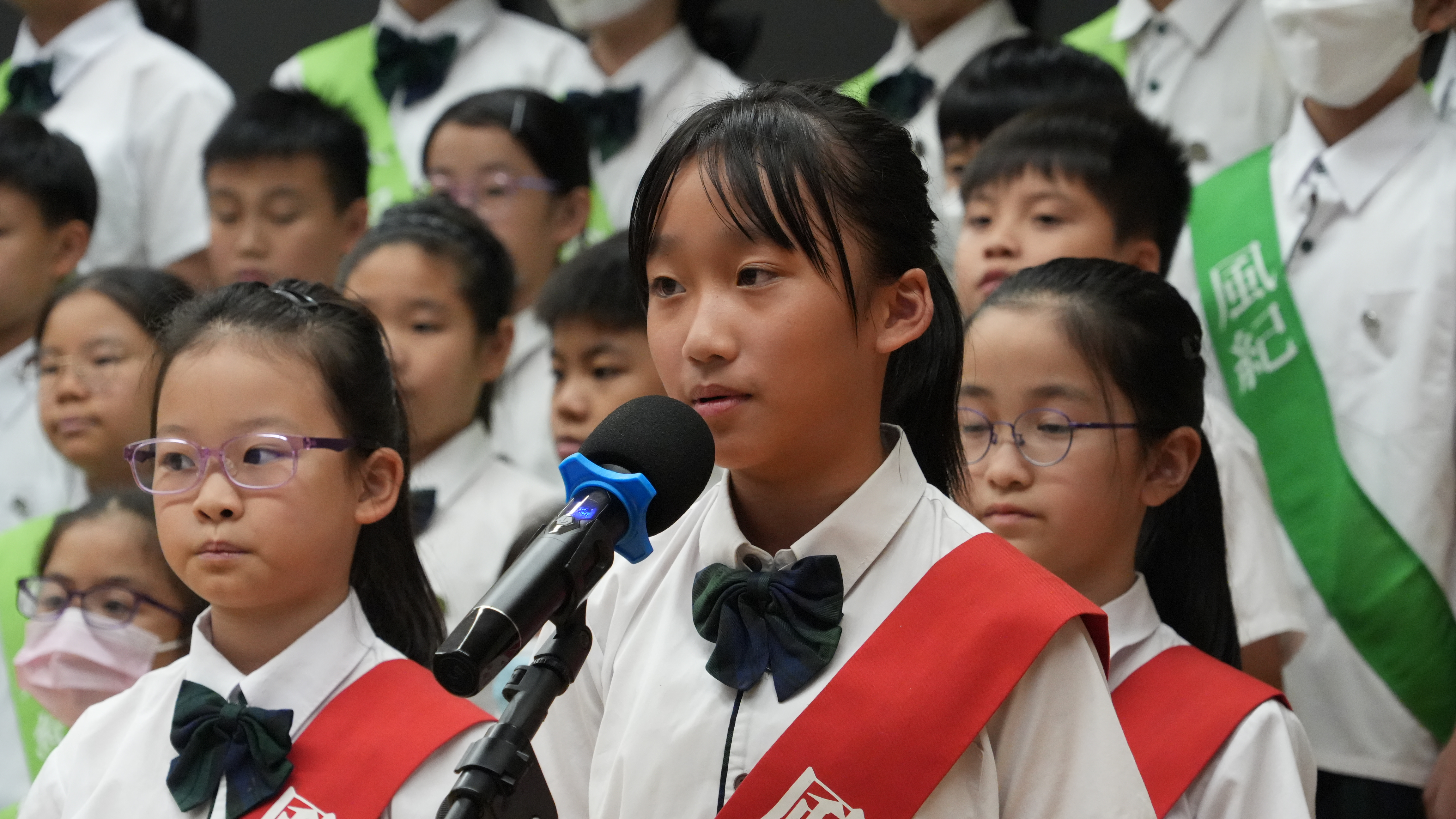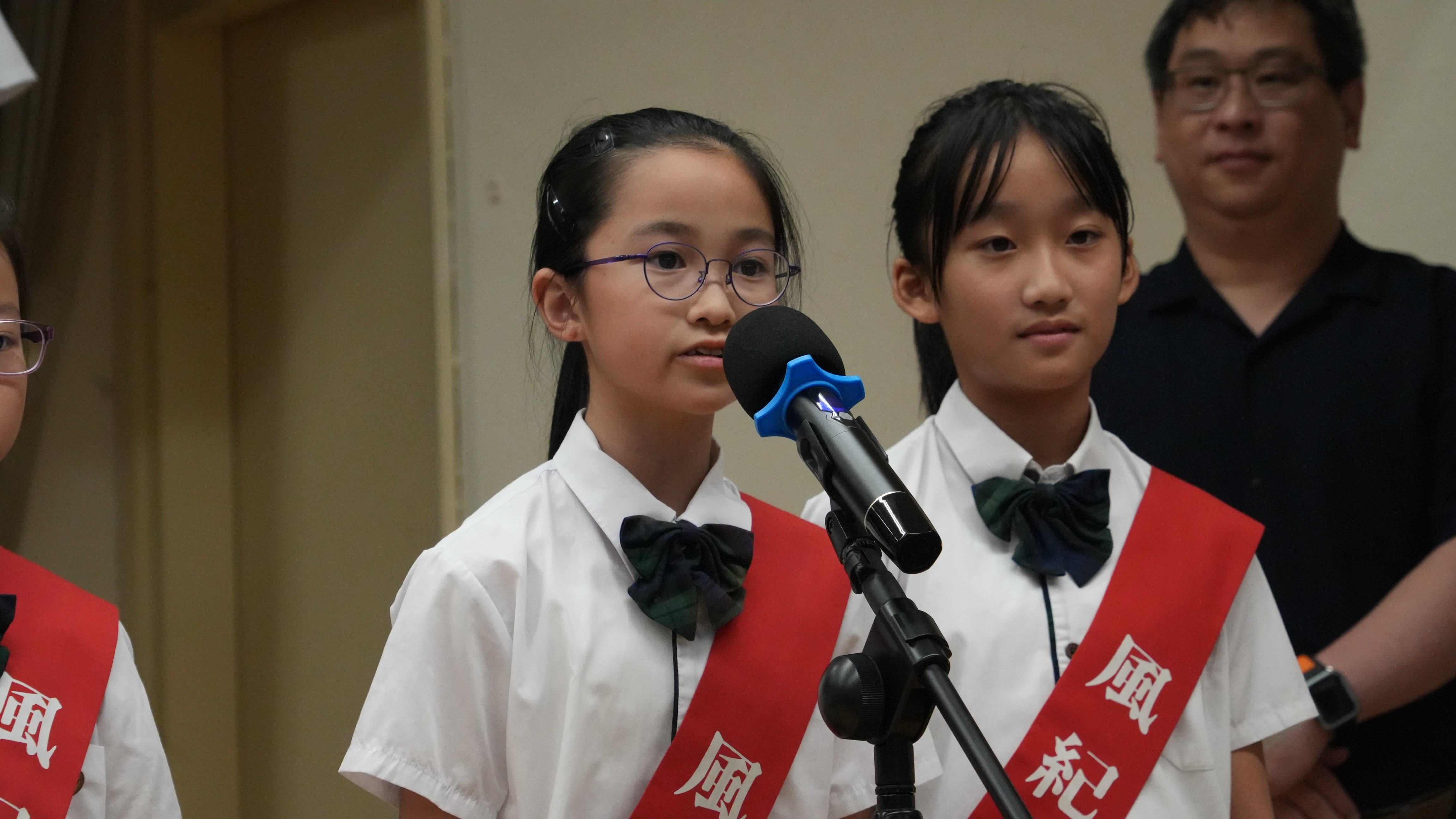 校長的監誓、四位負責老師及全校師生的見證下進行宣誓,正式成為本年度的風紀隊員,肩負為學校及同學服務的使命。