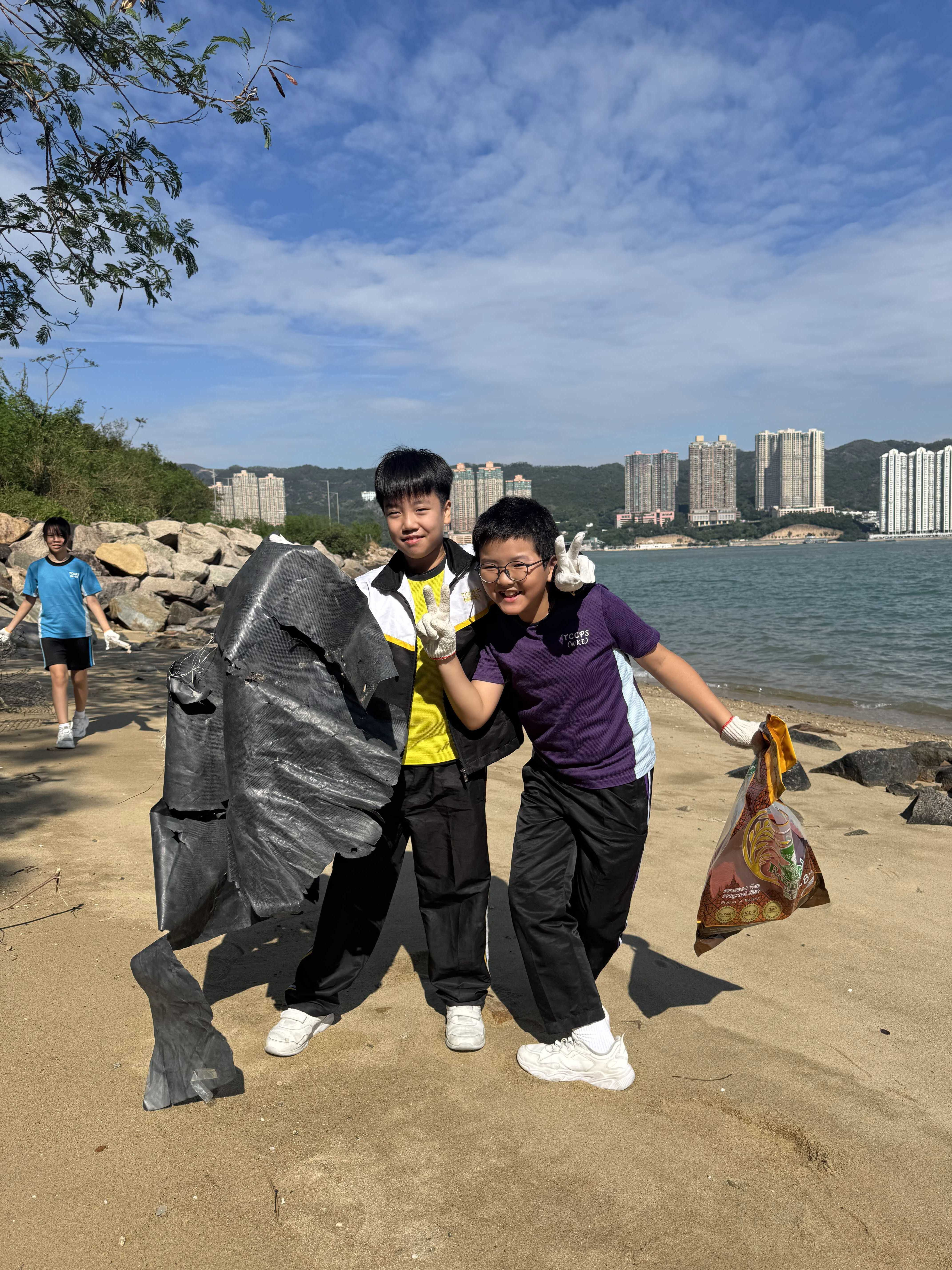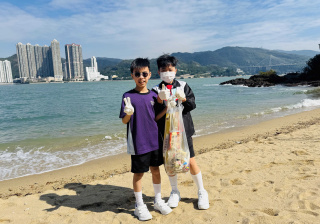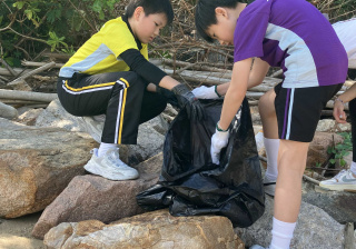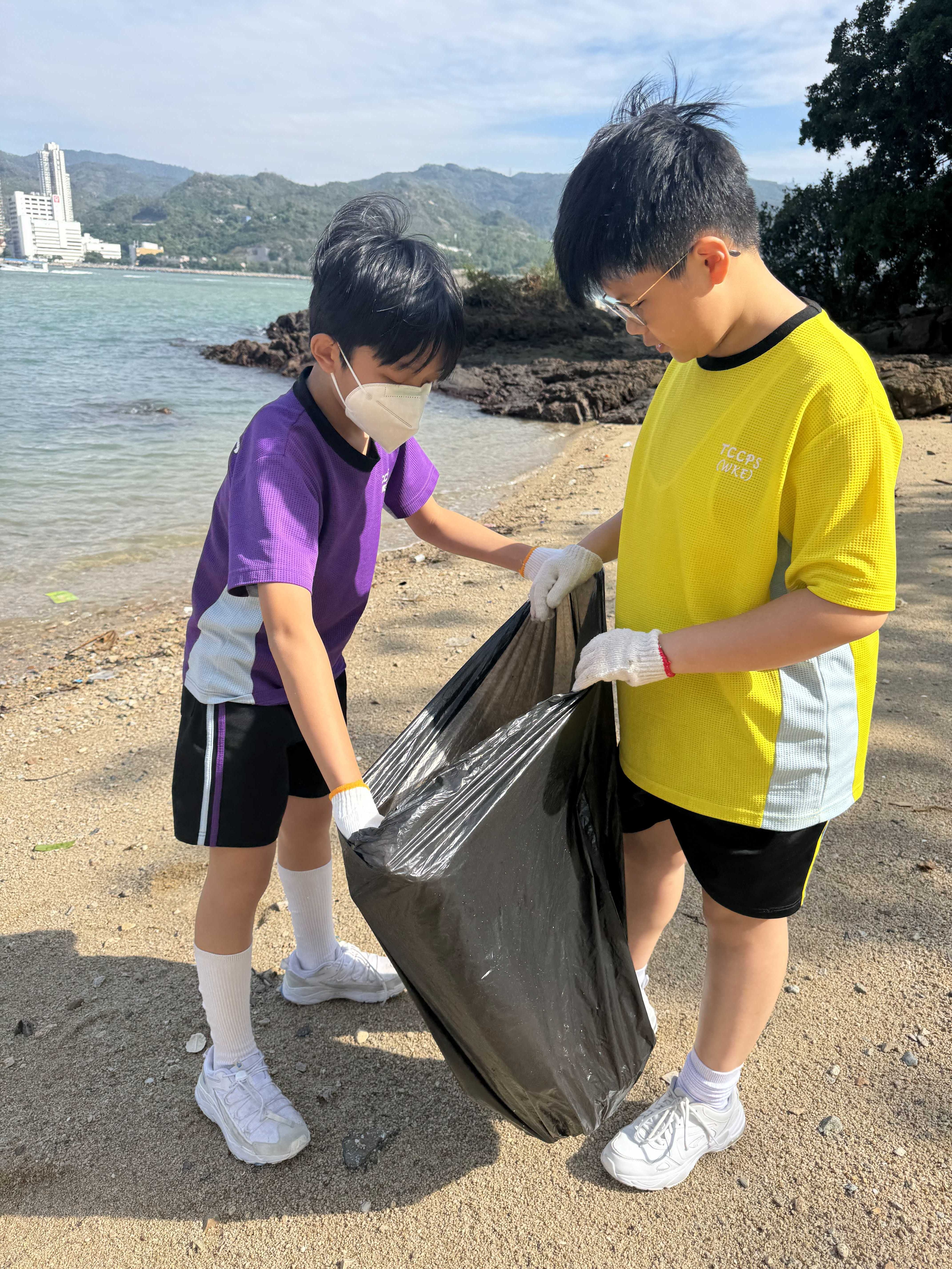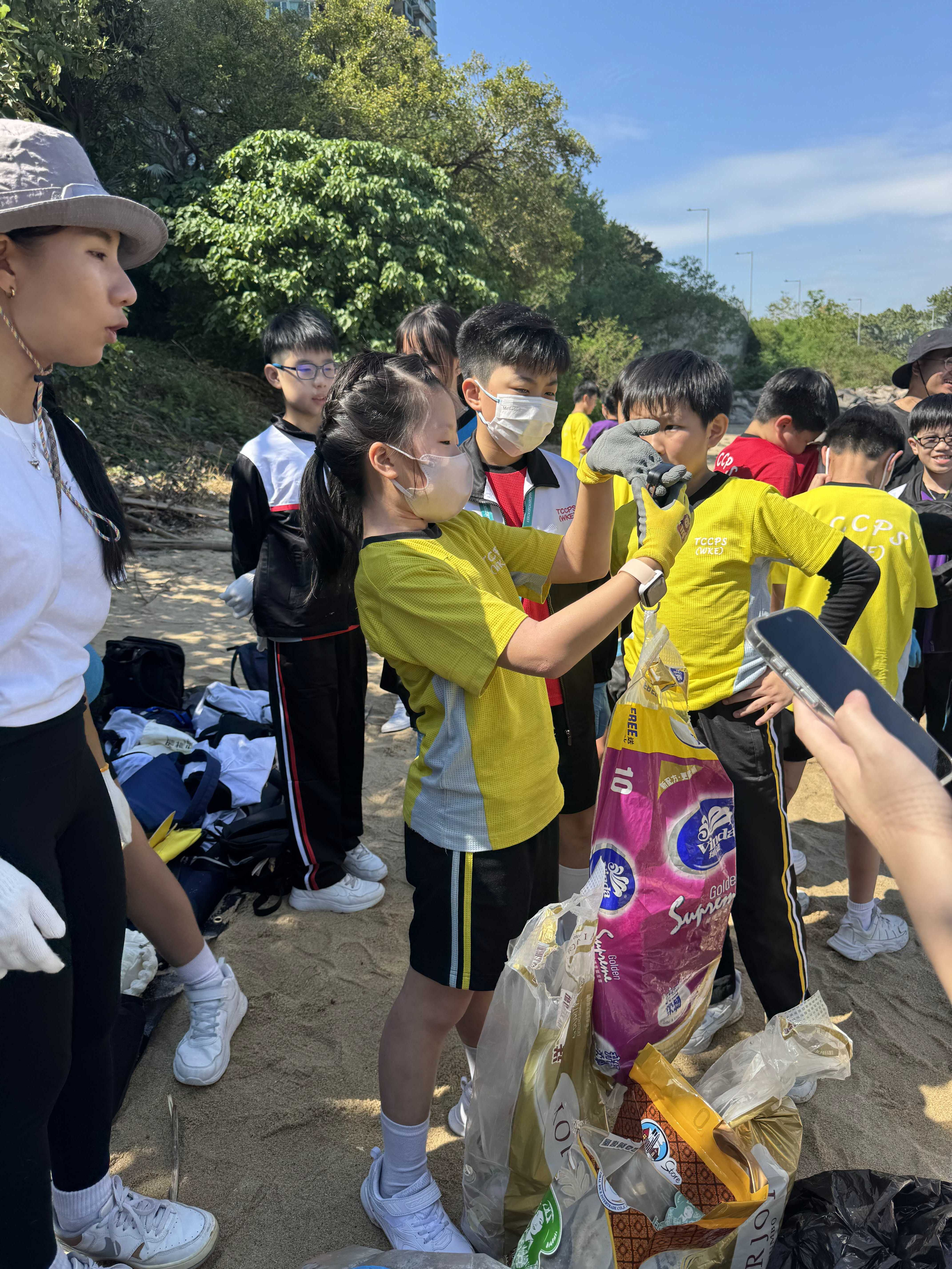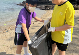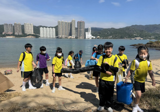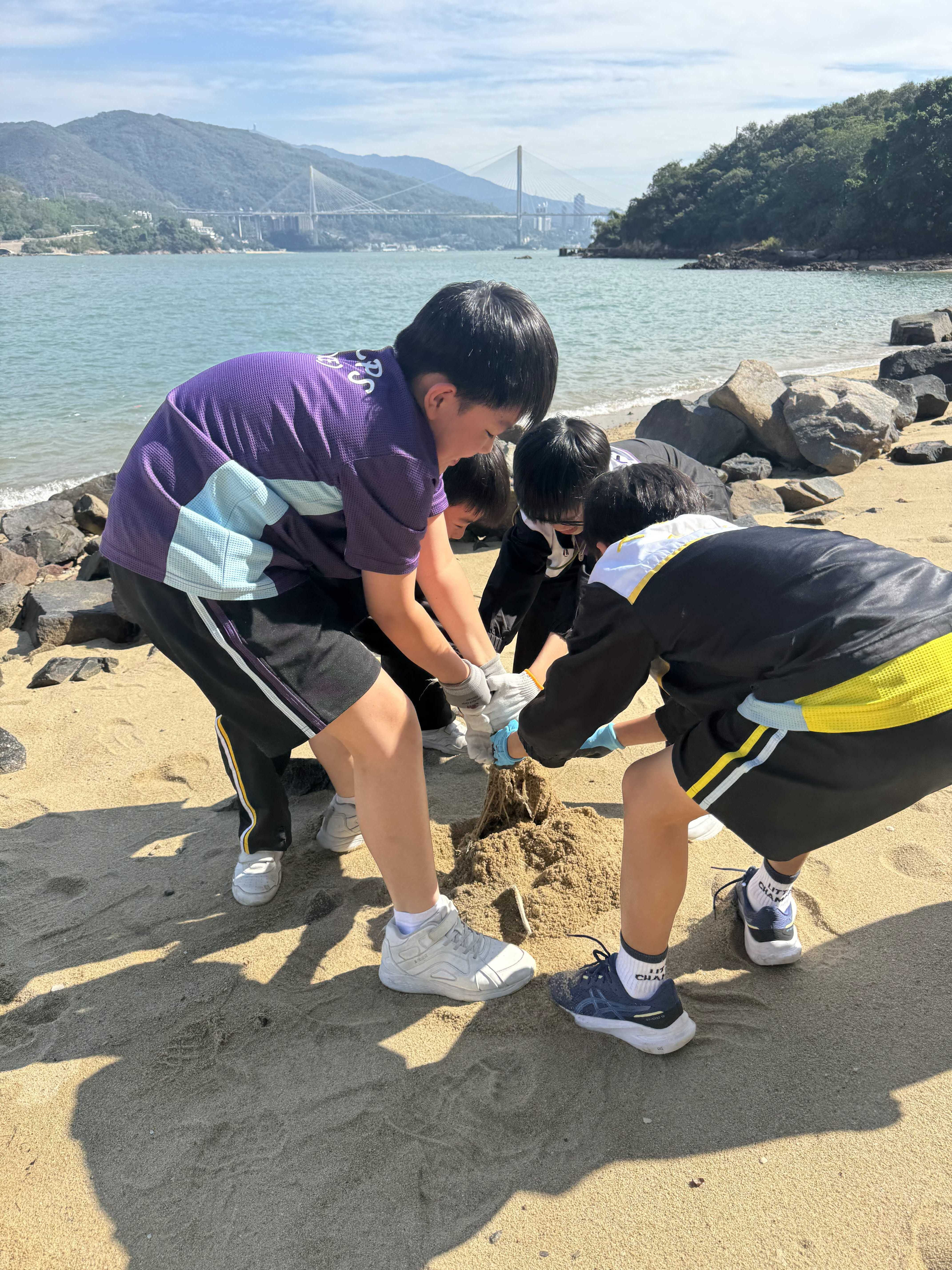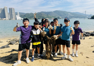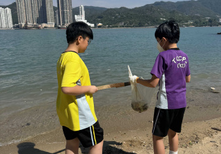 5-6年級同學身體力行,前往沙灘清潔垃圾,齊齊為保護海岸生態出一分力。
