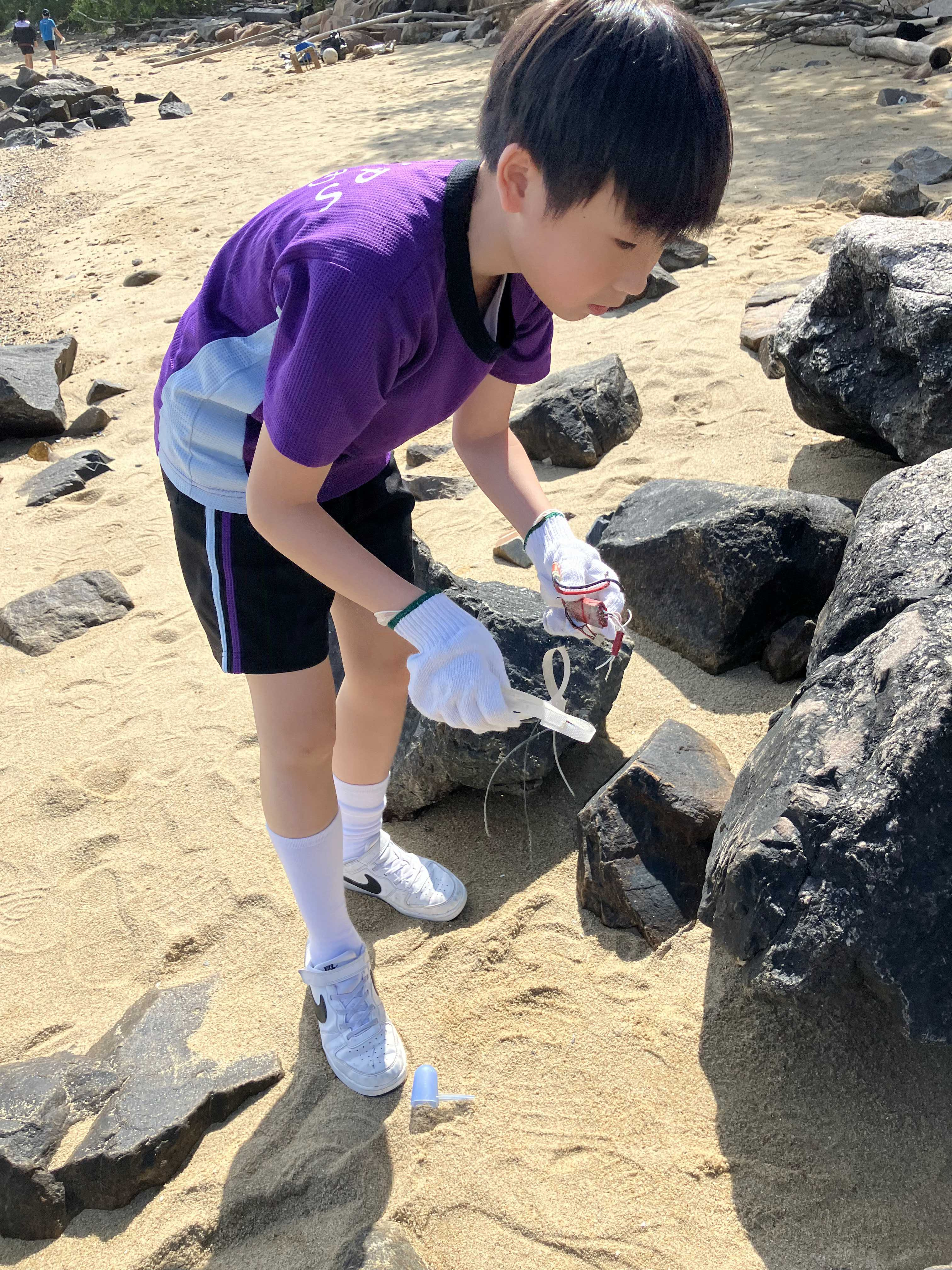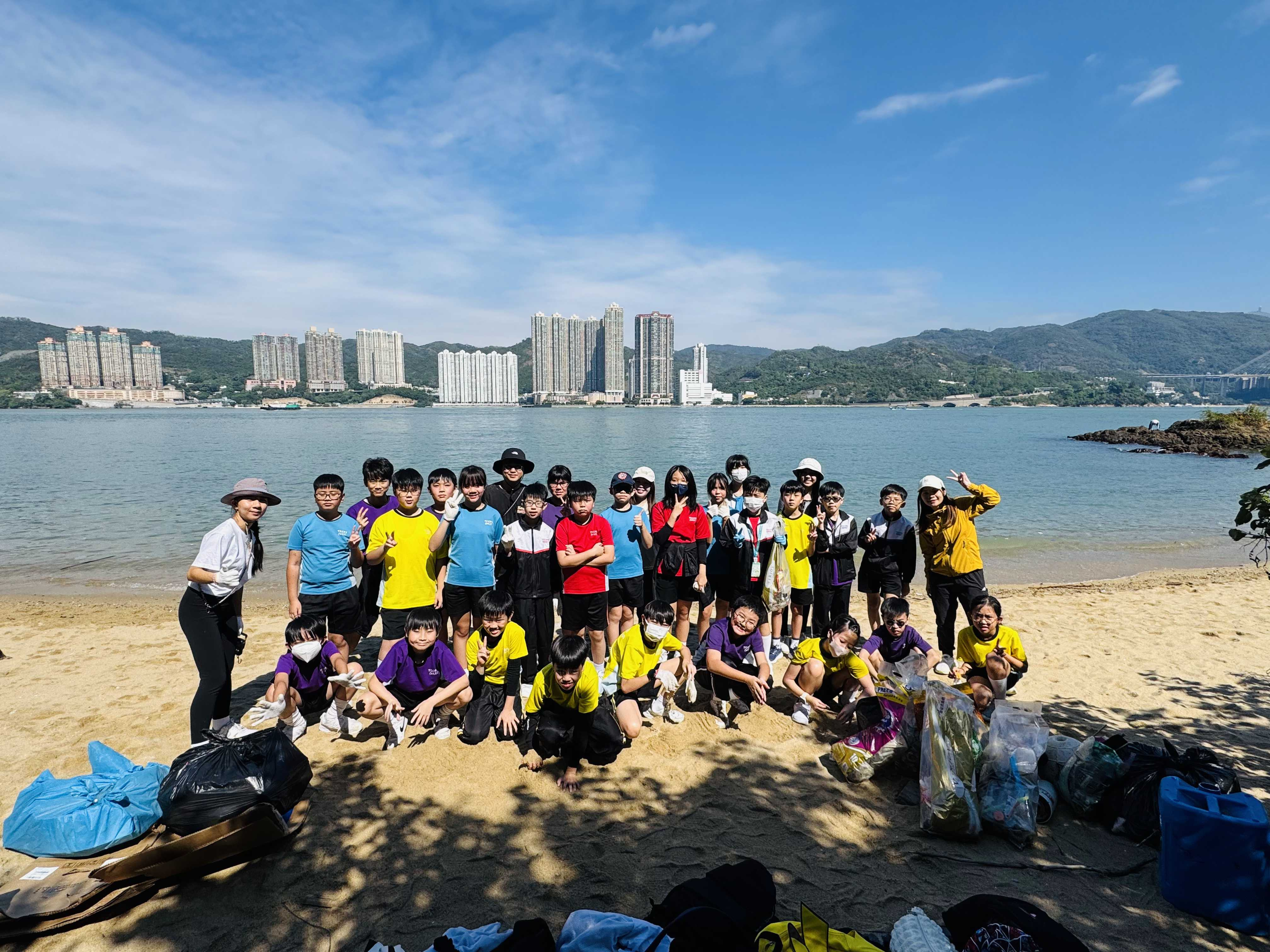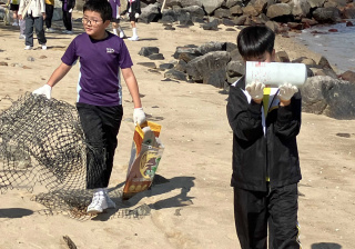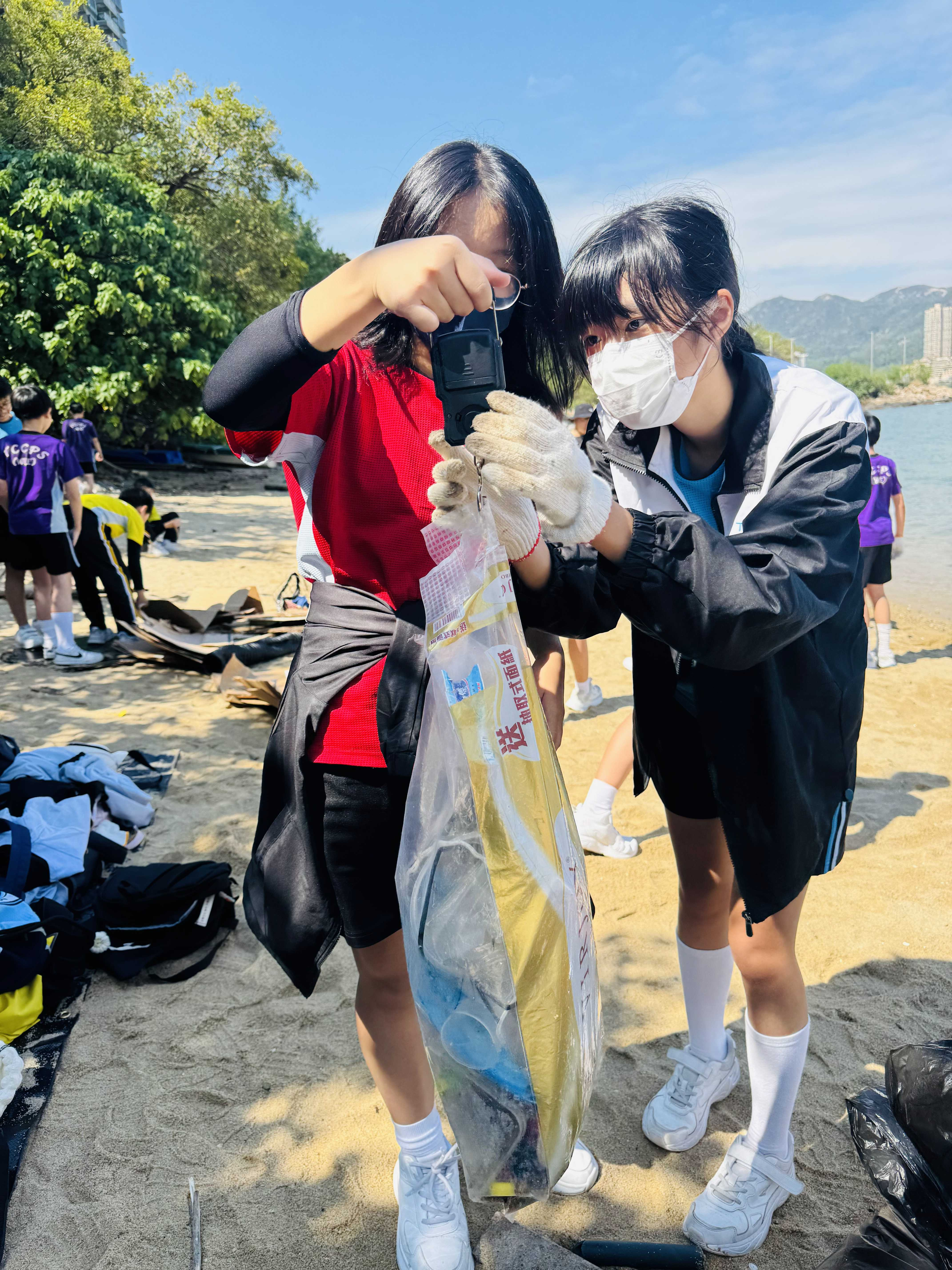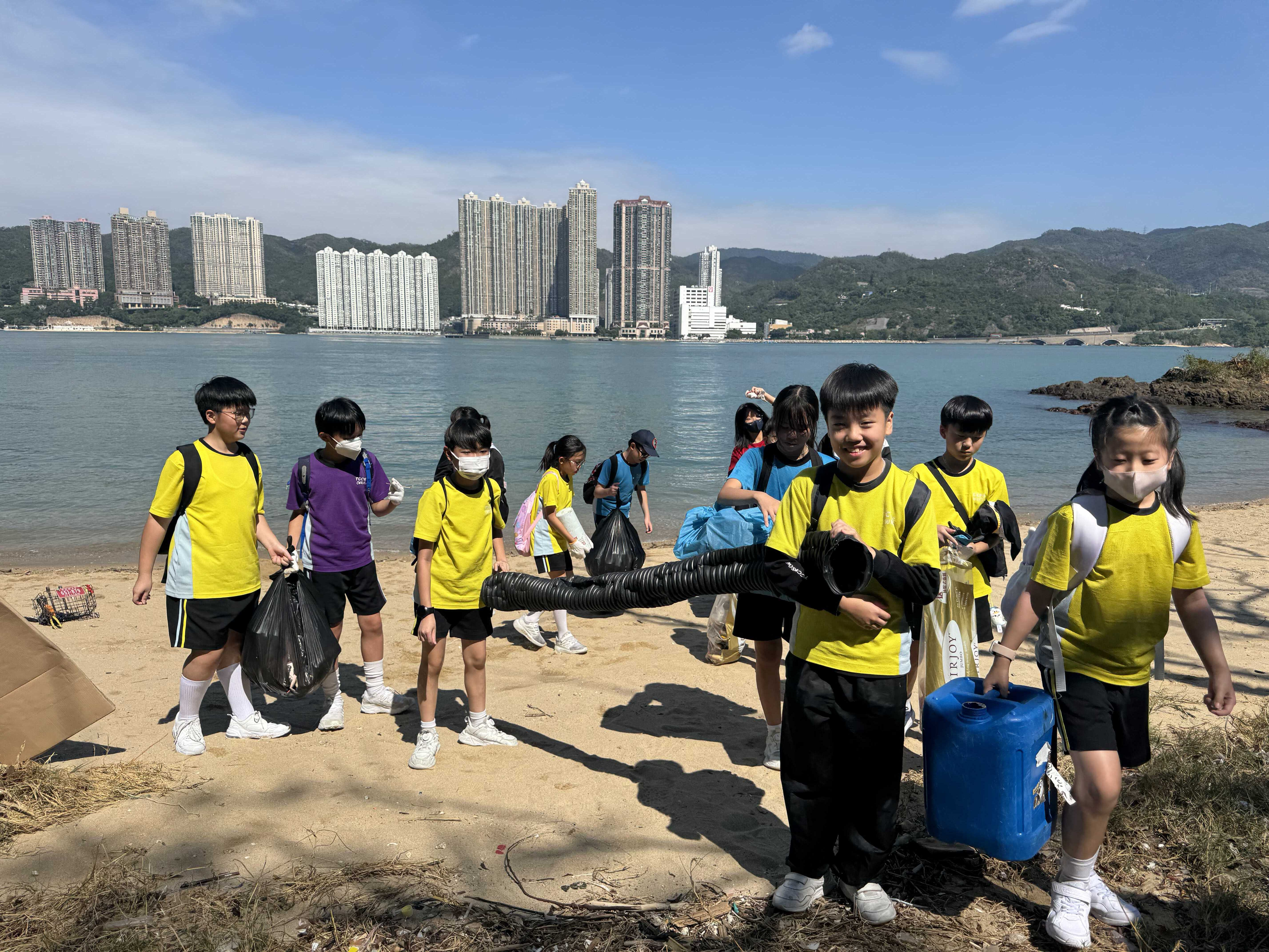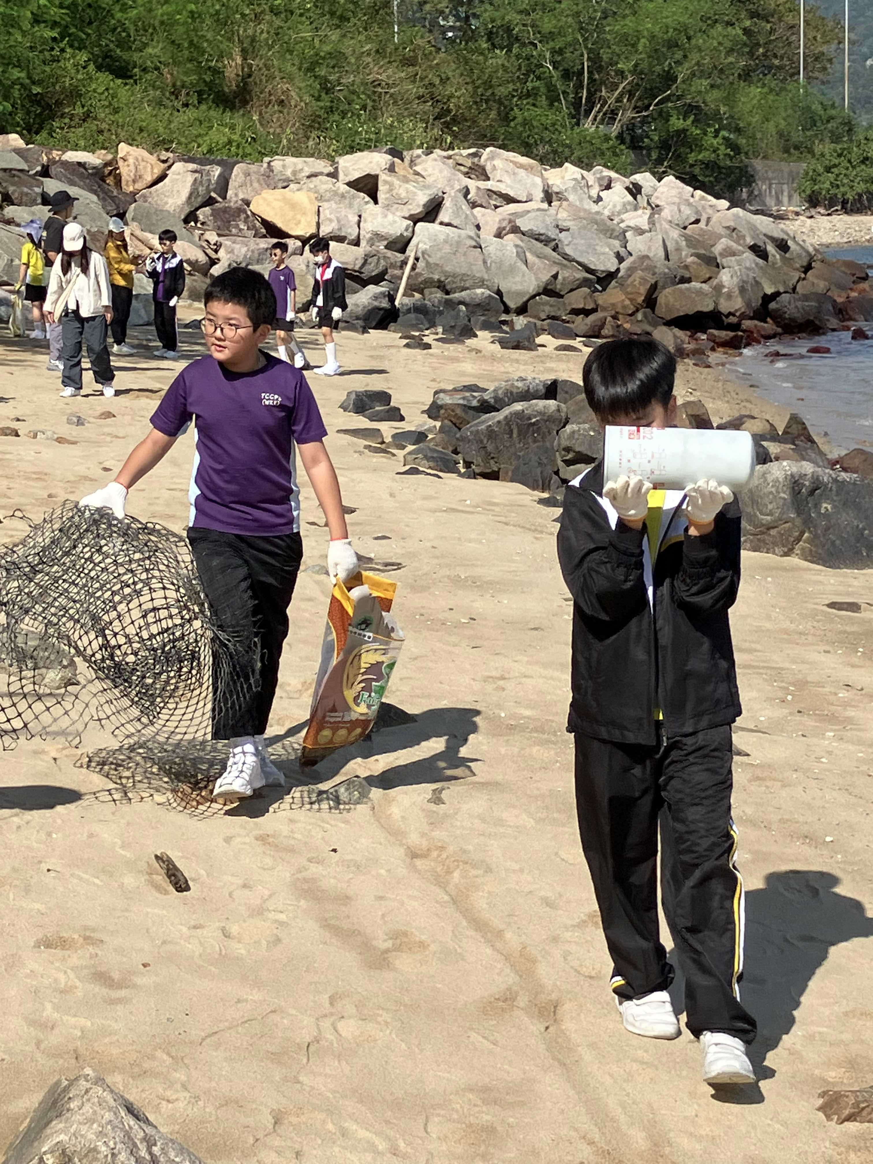5-6年級同學身體力行,前往沙灘清潔垃圾,齊齊為保護海岸生態出一分力。