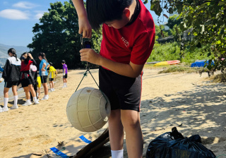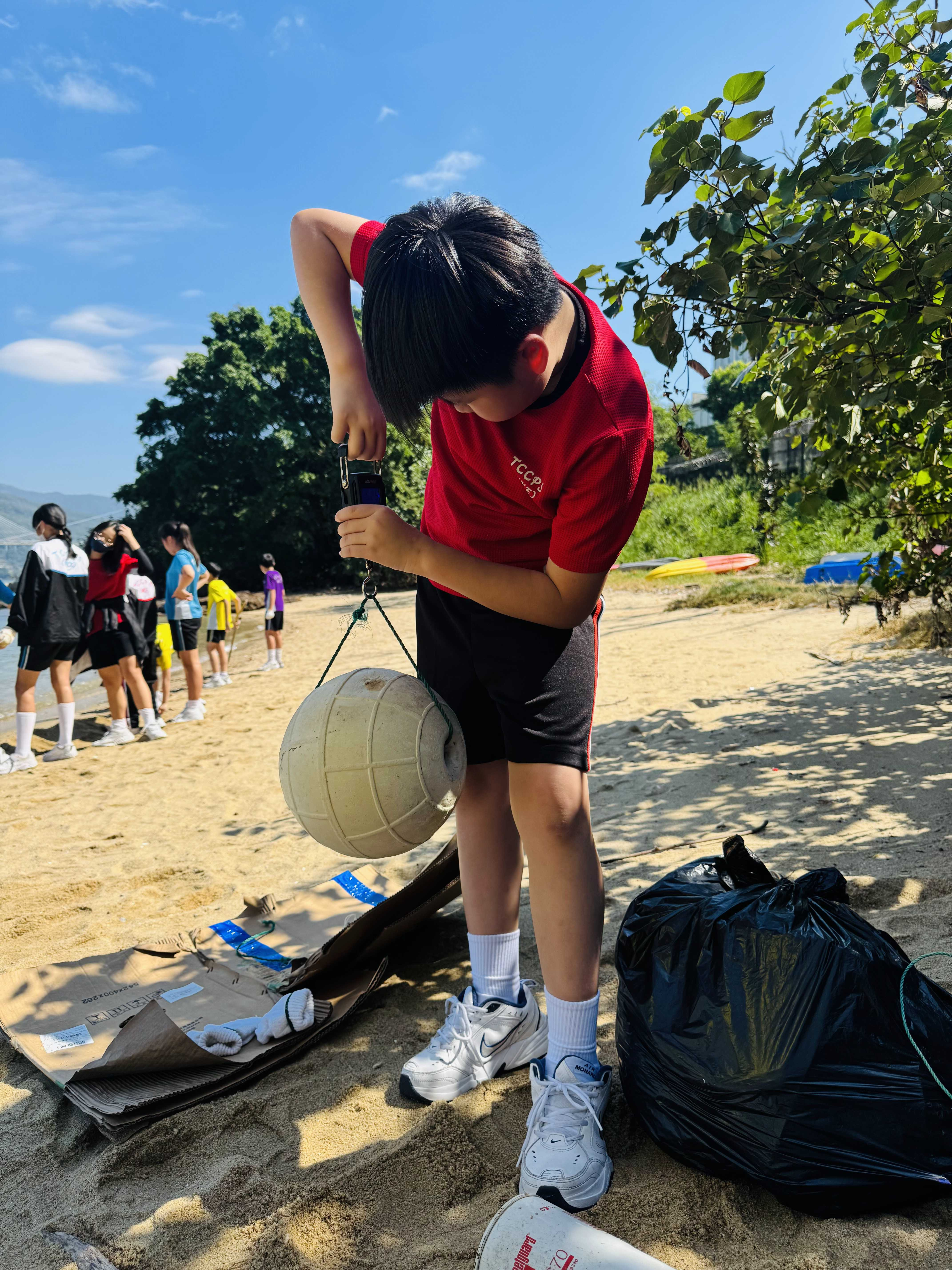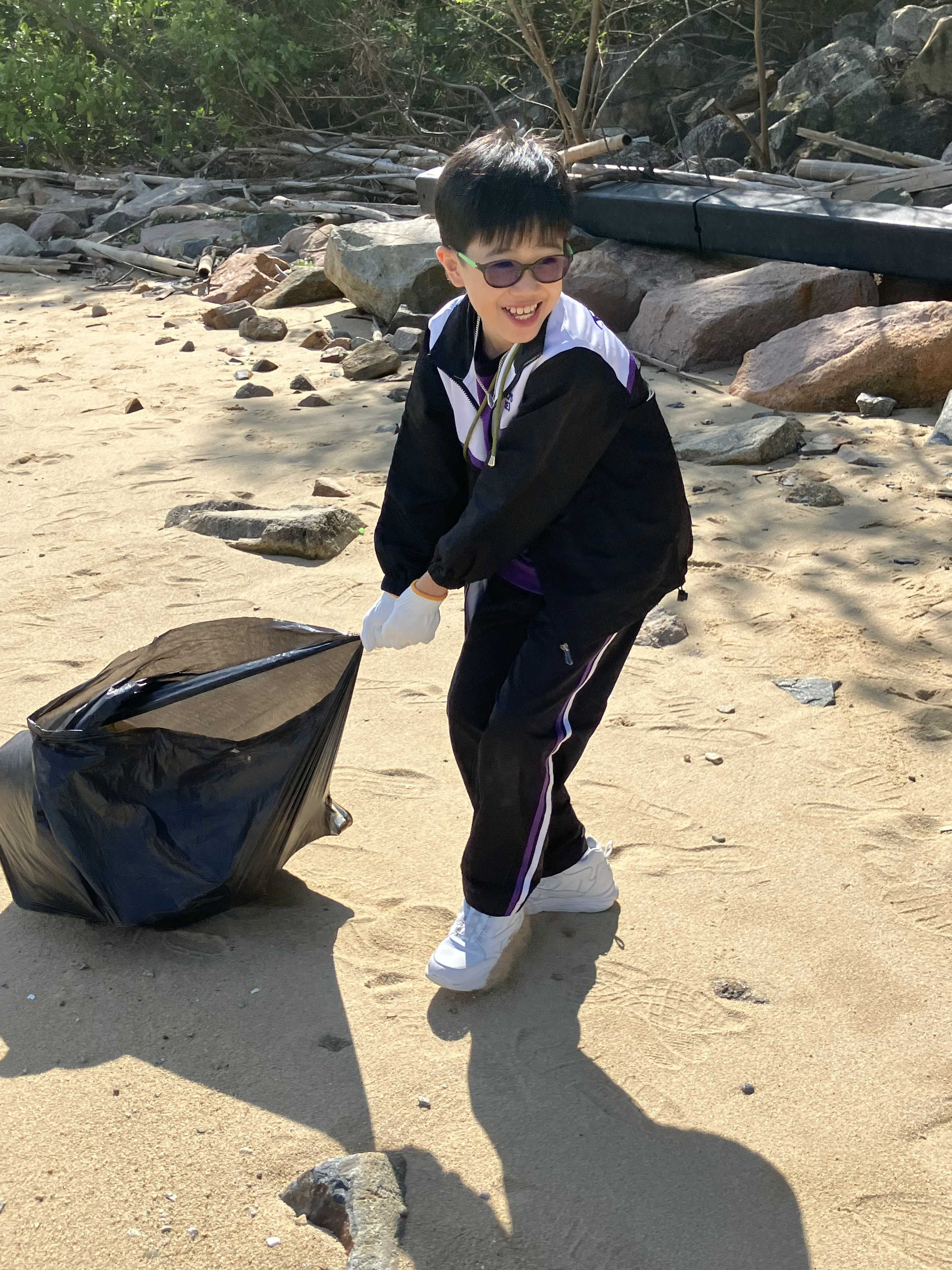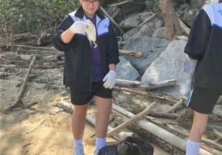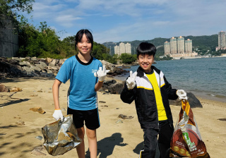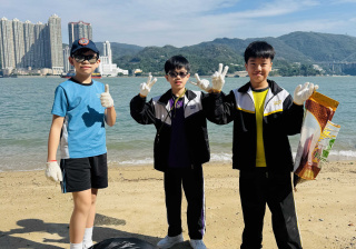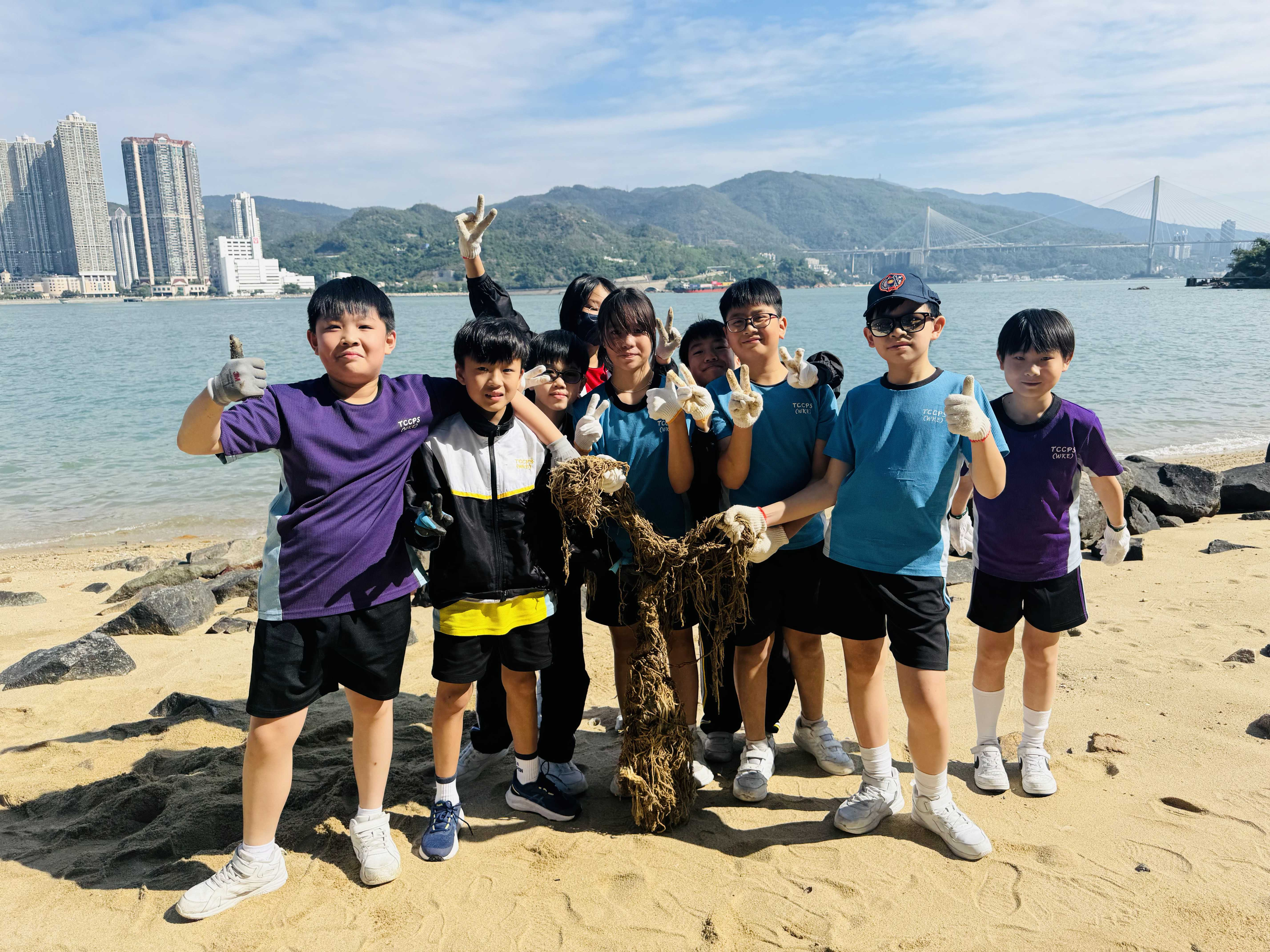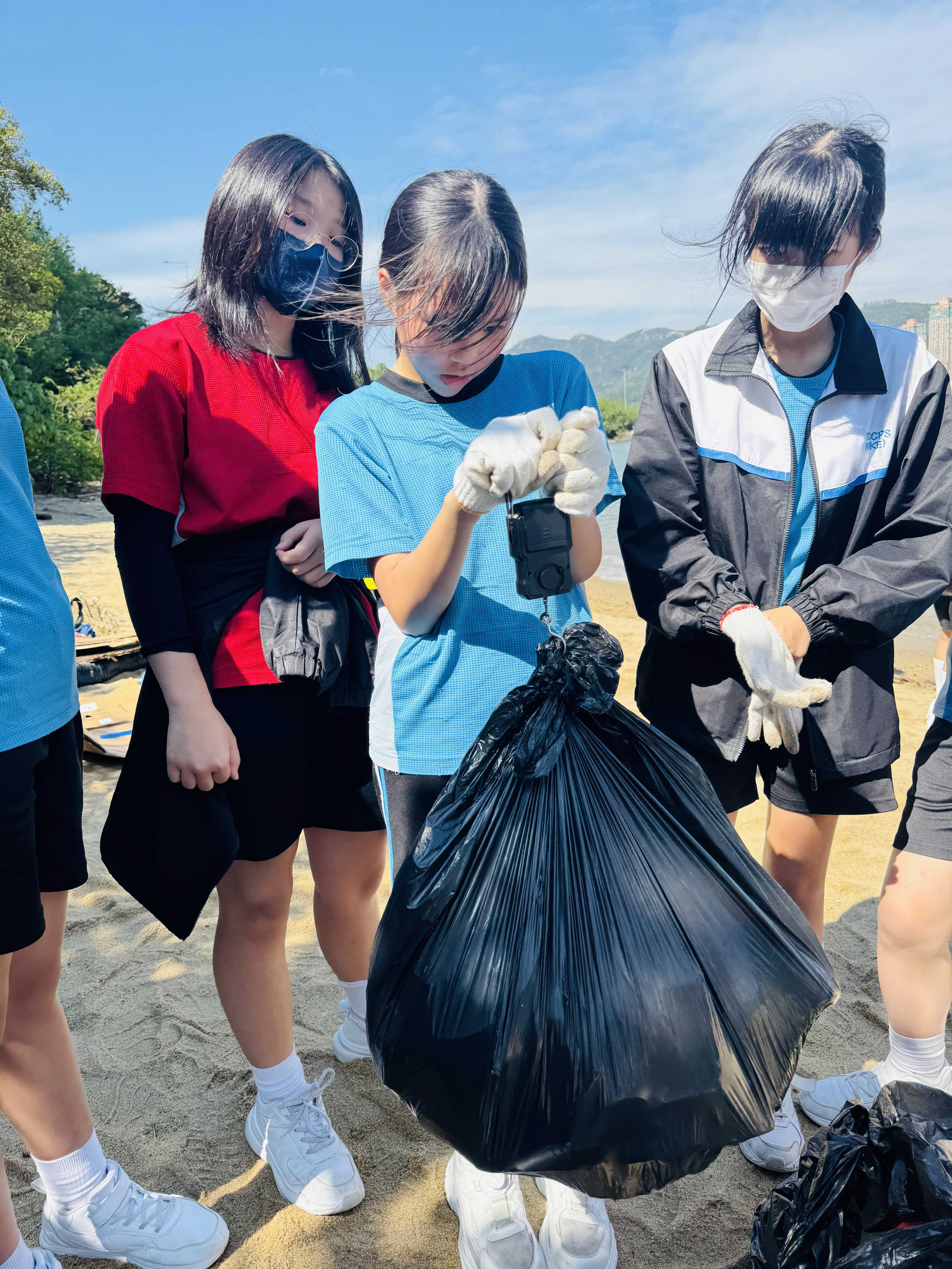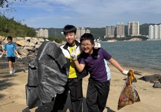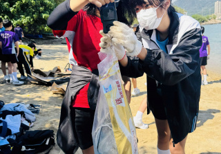 5-6年級同學身體力行,前往沙灘清潔垃圾,齊齊為保護海岸生態出一分力。
