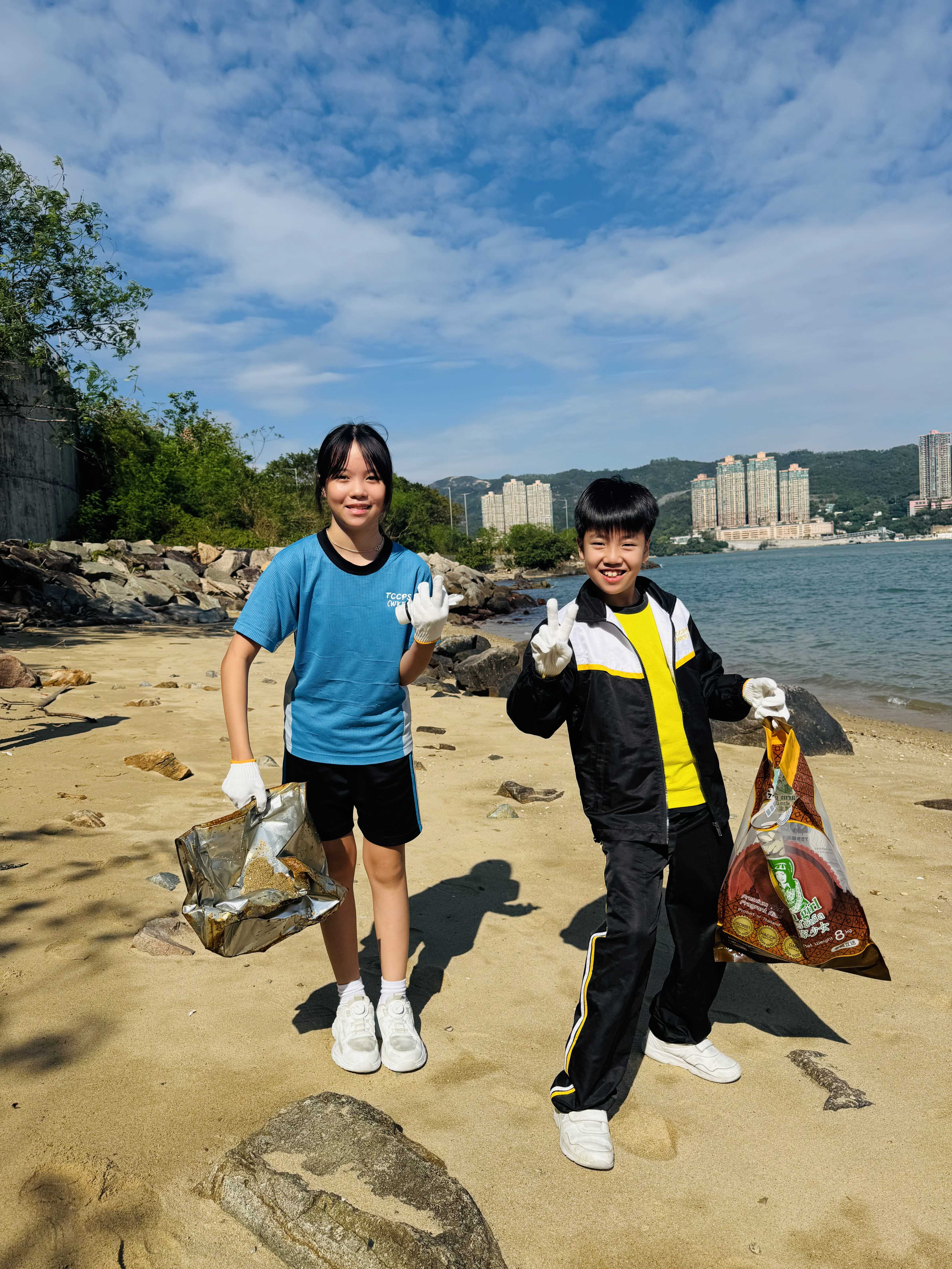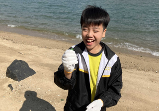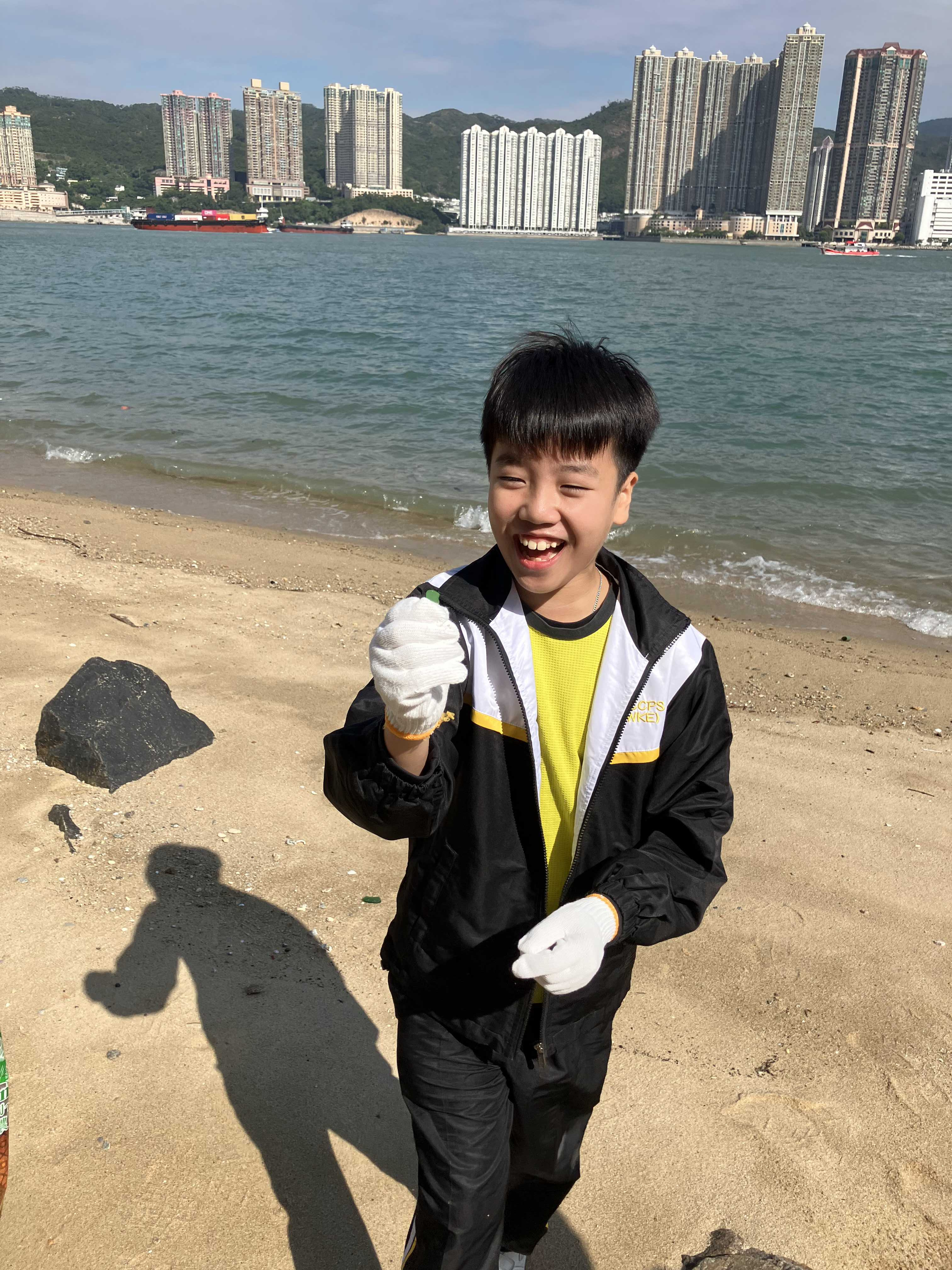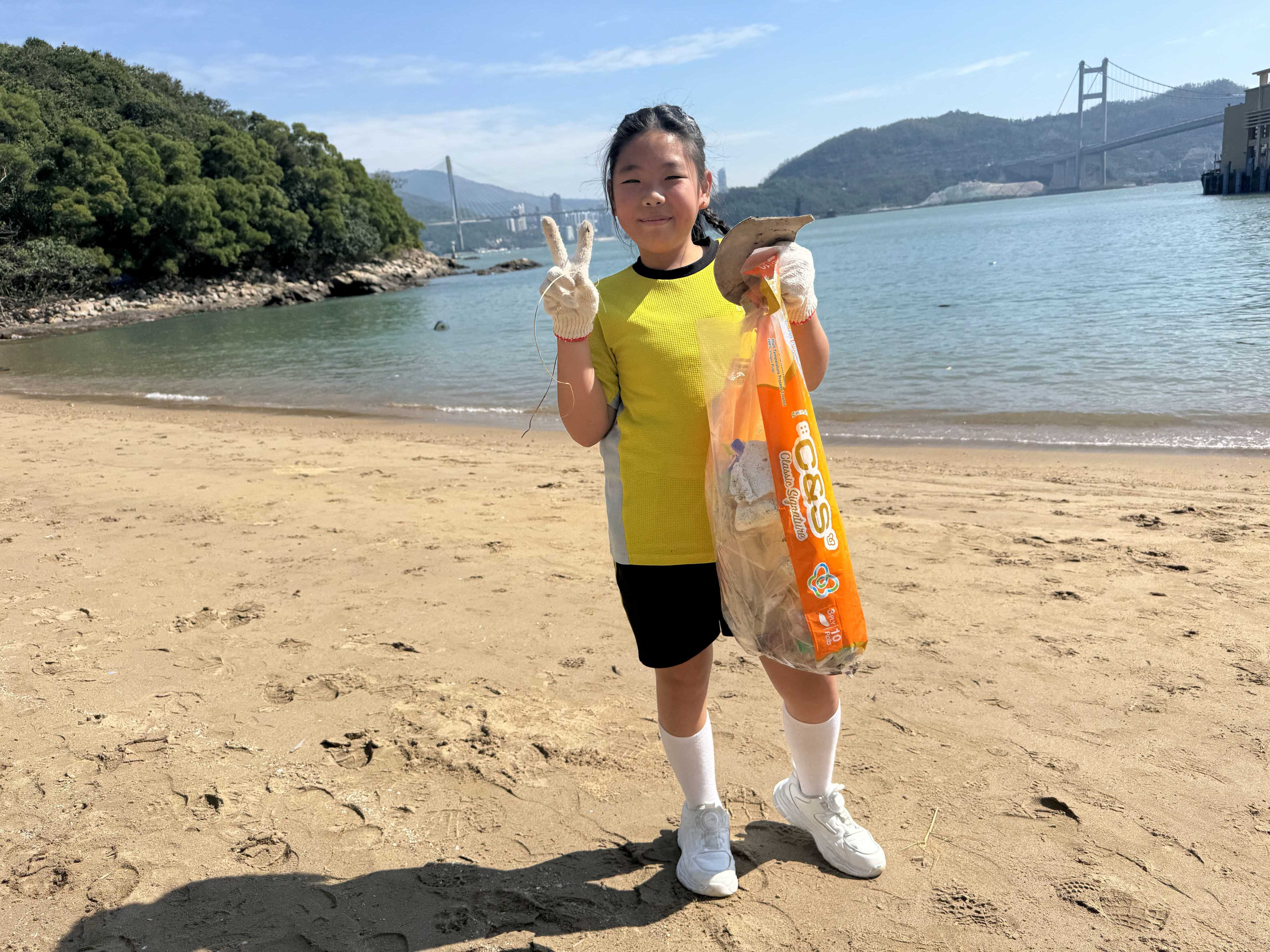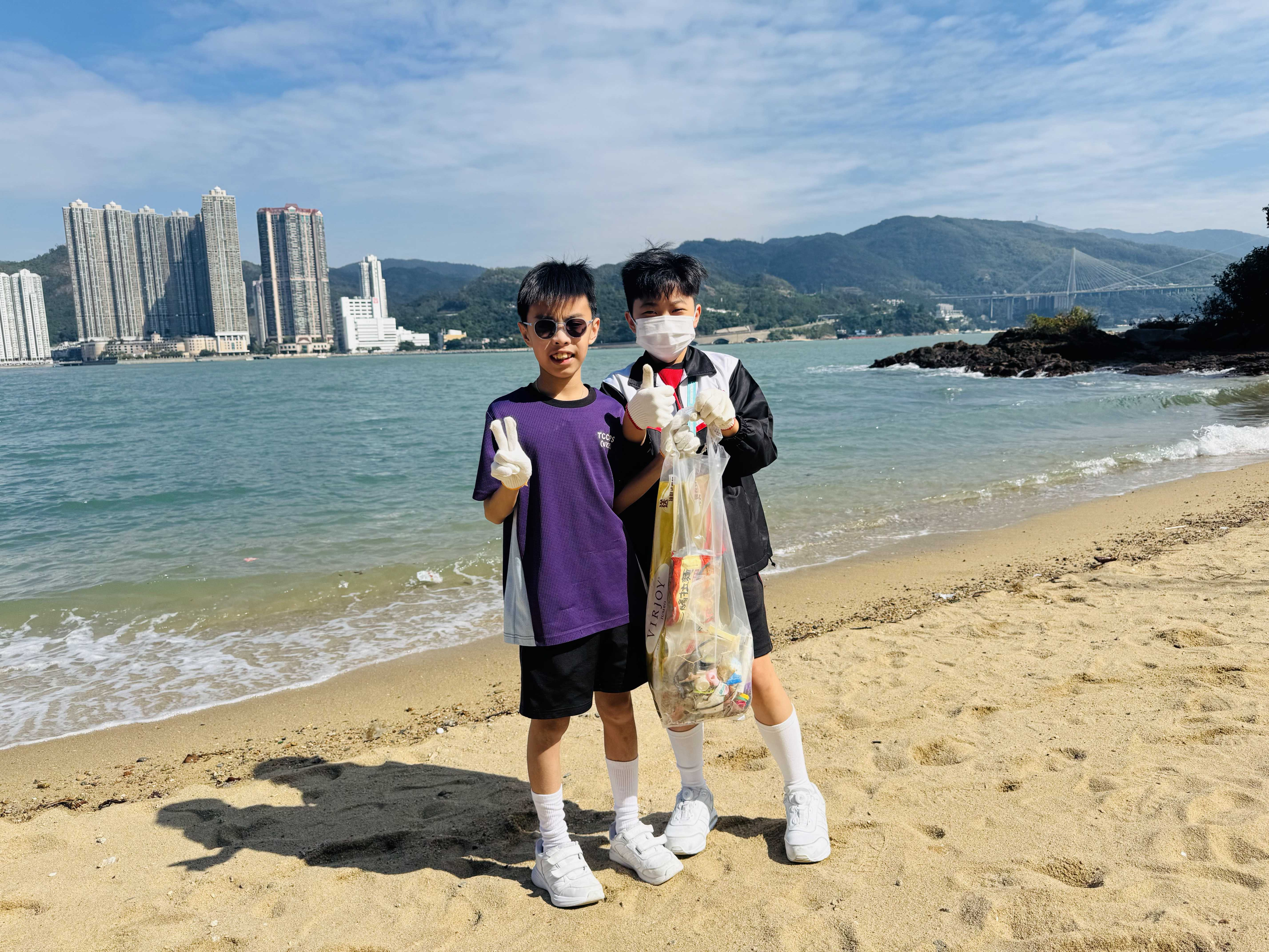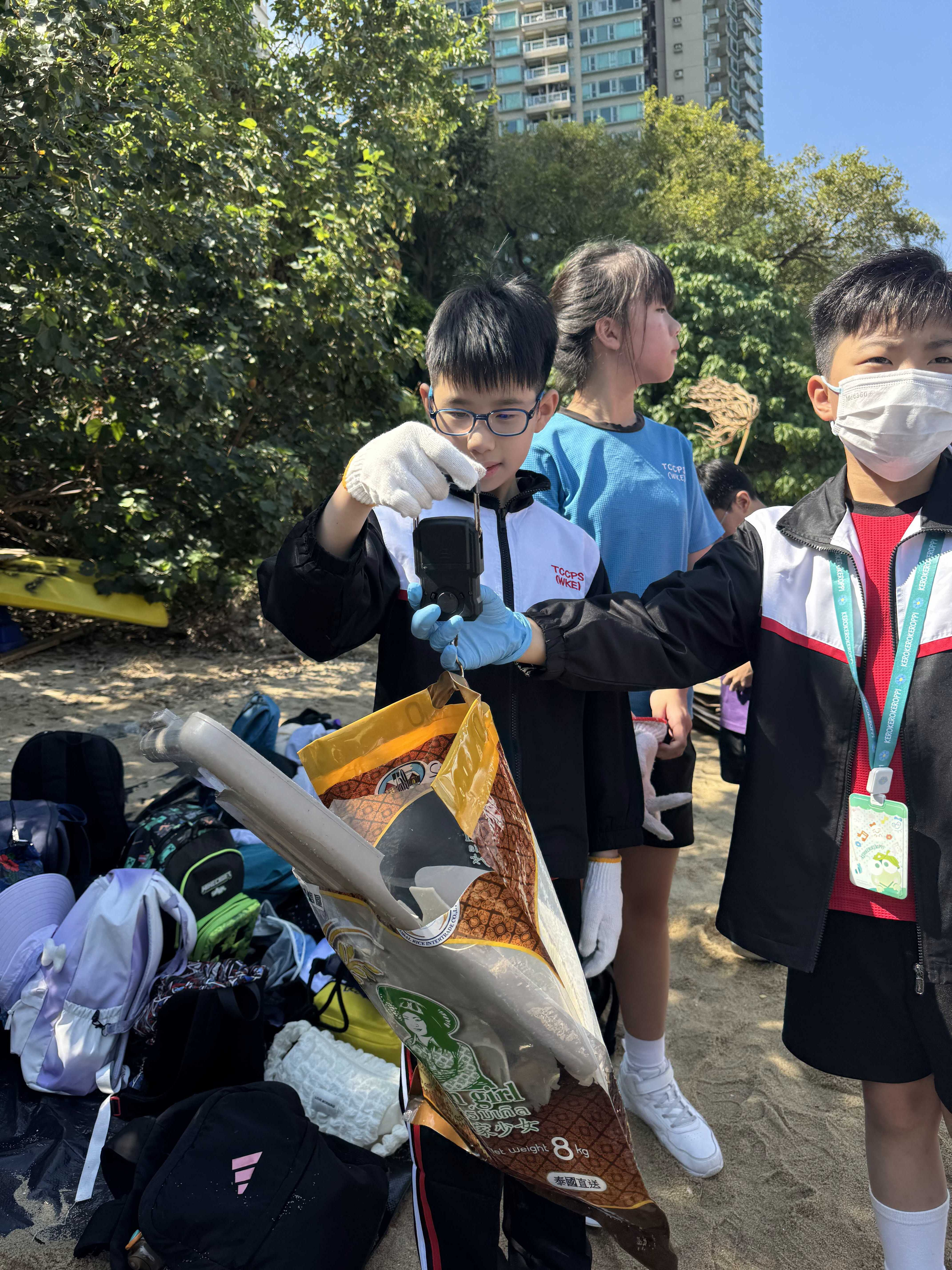 5-6年級同學身體力行,前往沙灘清潔垃圾,齊齊為保護海岸生態出一分力。