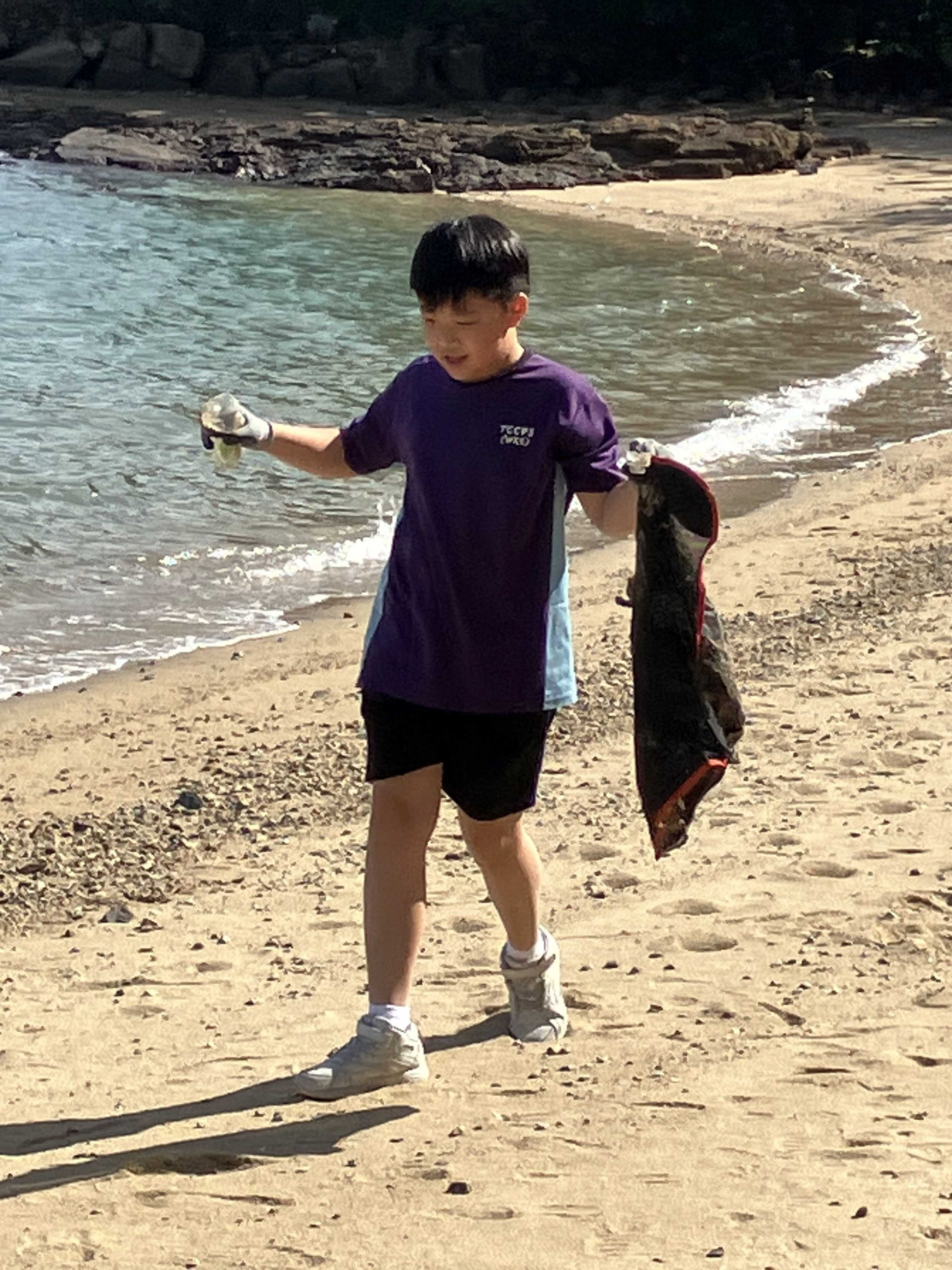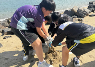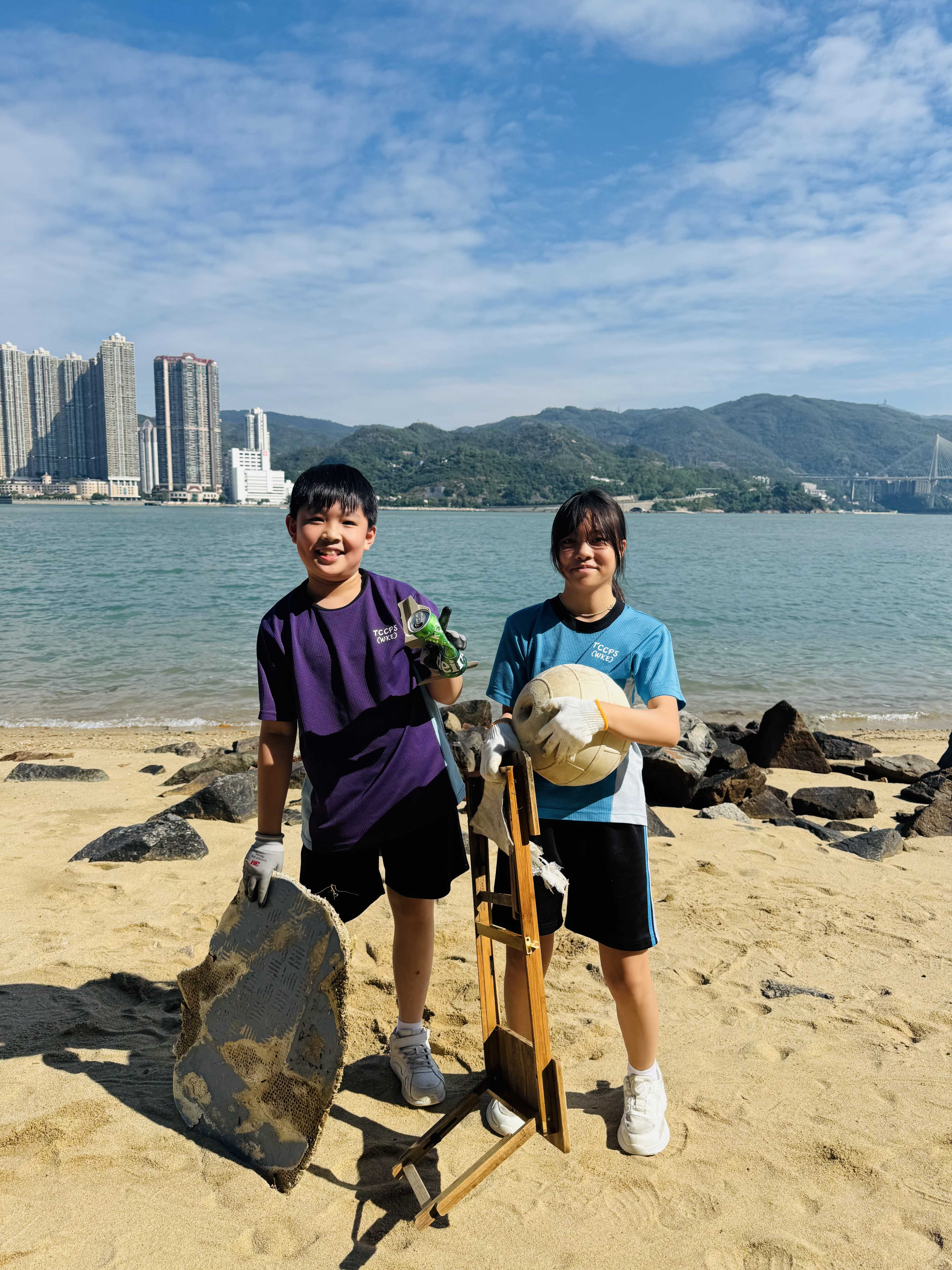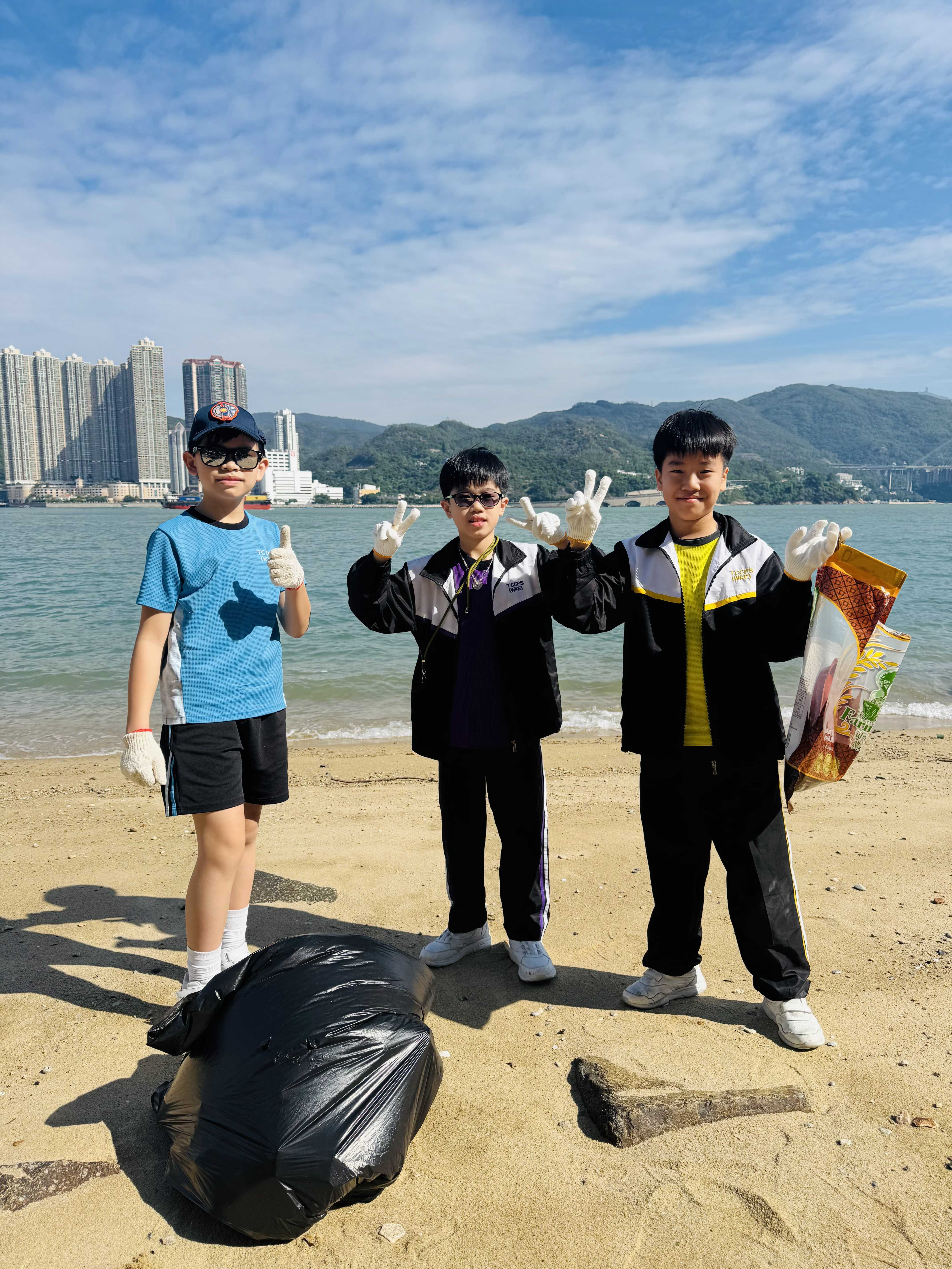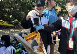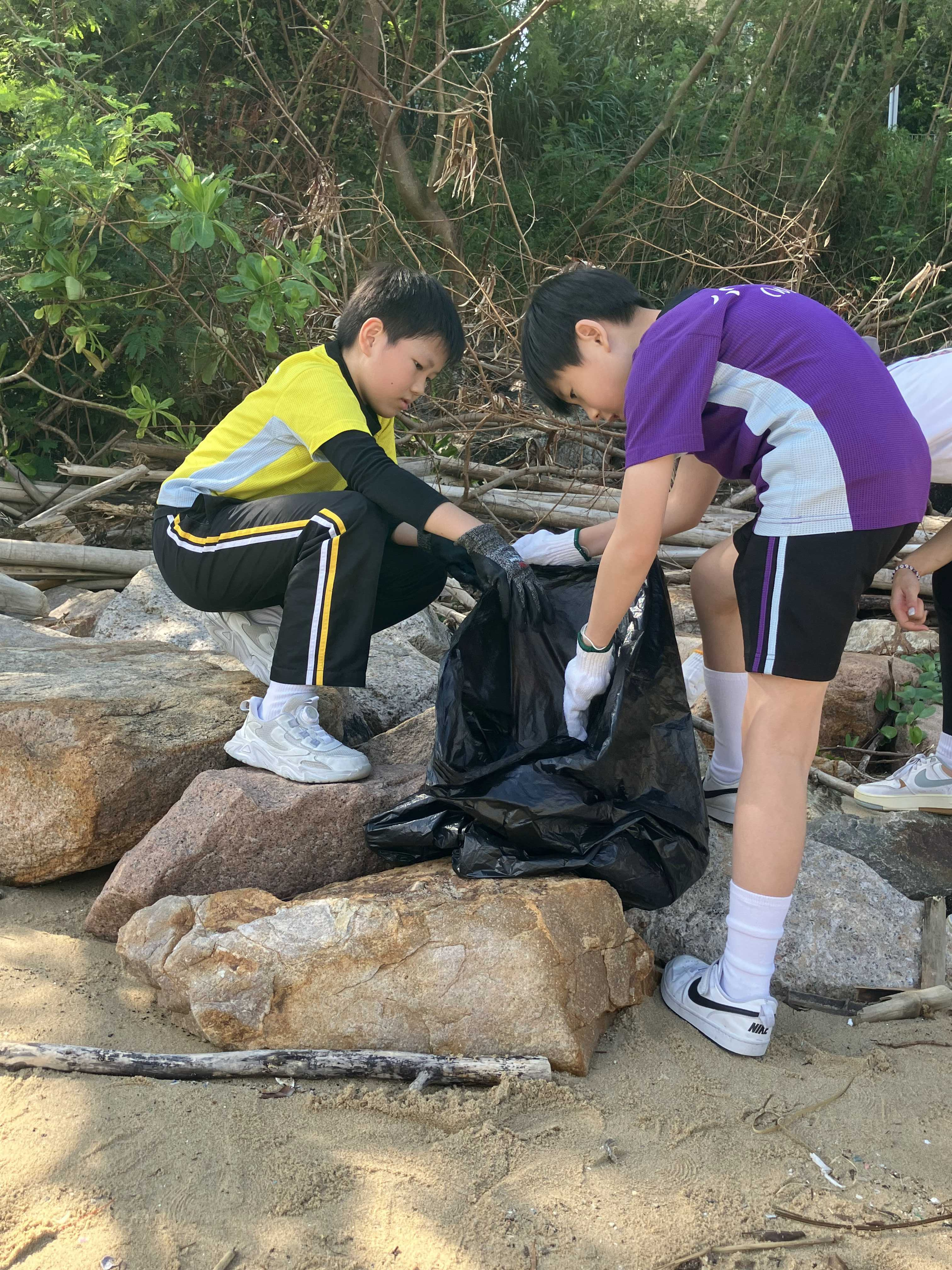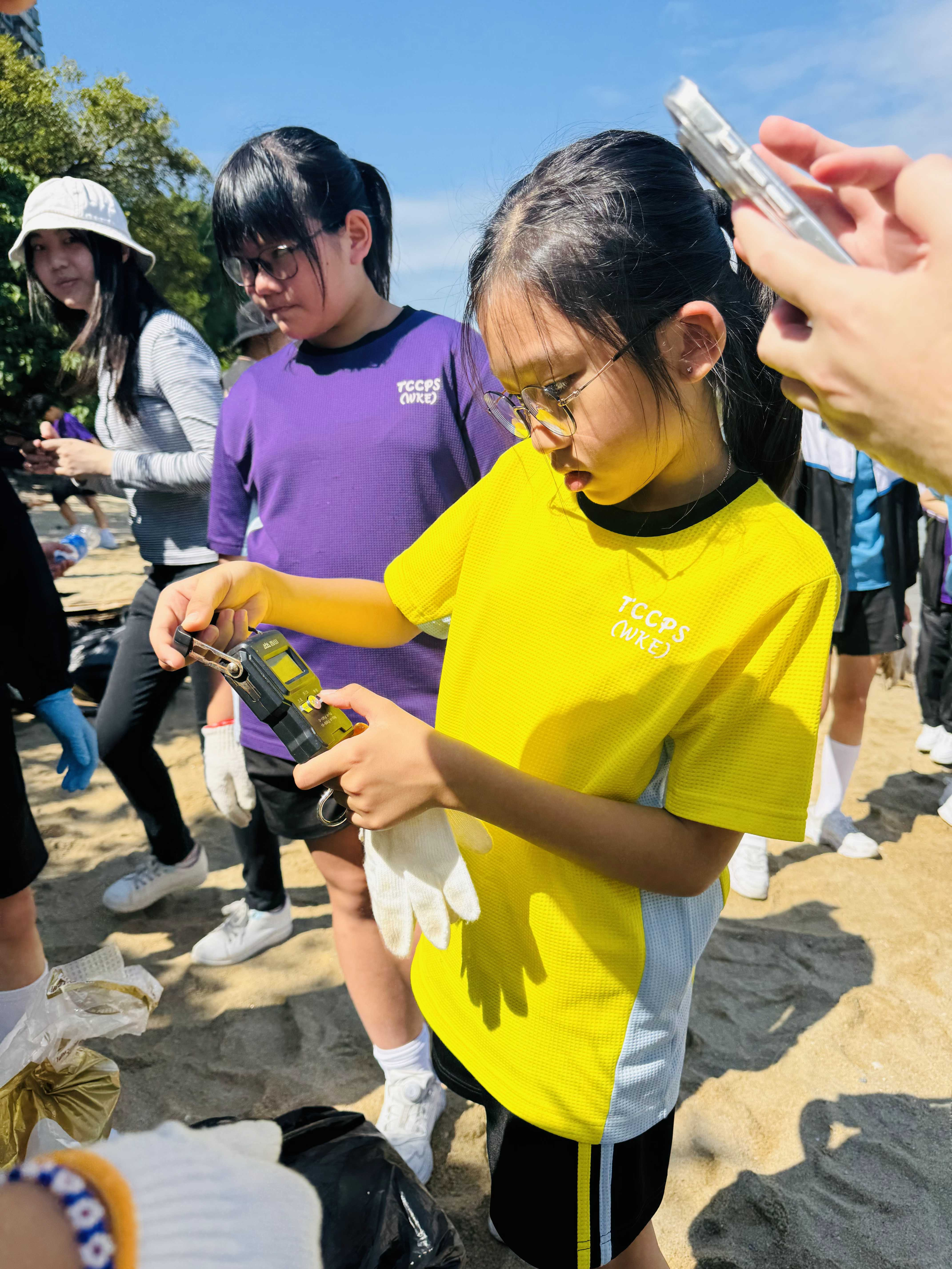 5-6年級同學身體力行,前往沙灘清潔垃圾,齊齊為保護海岸生態出一分力。