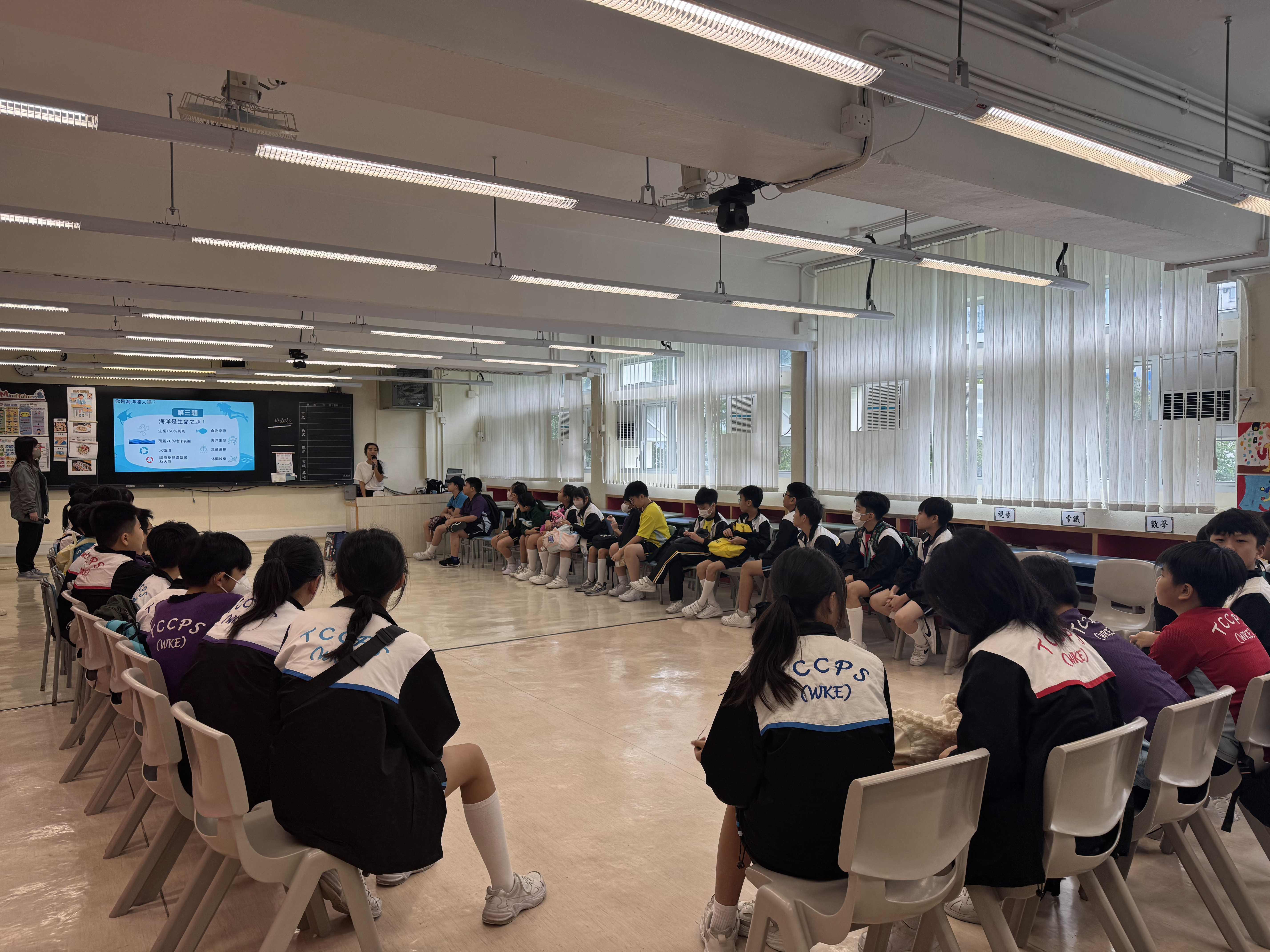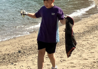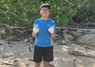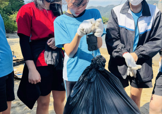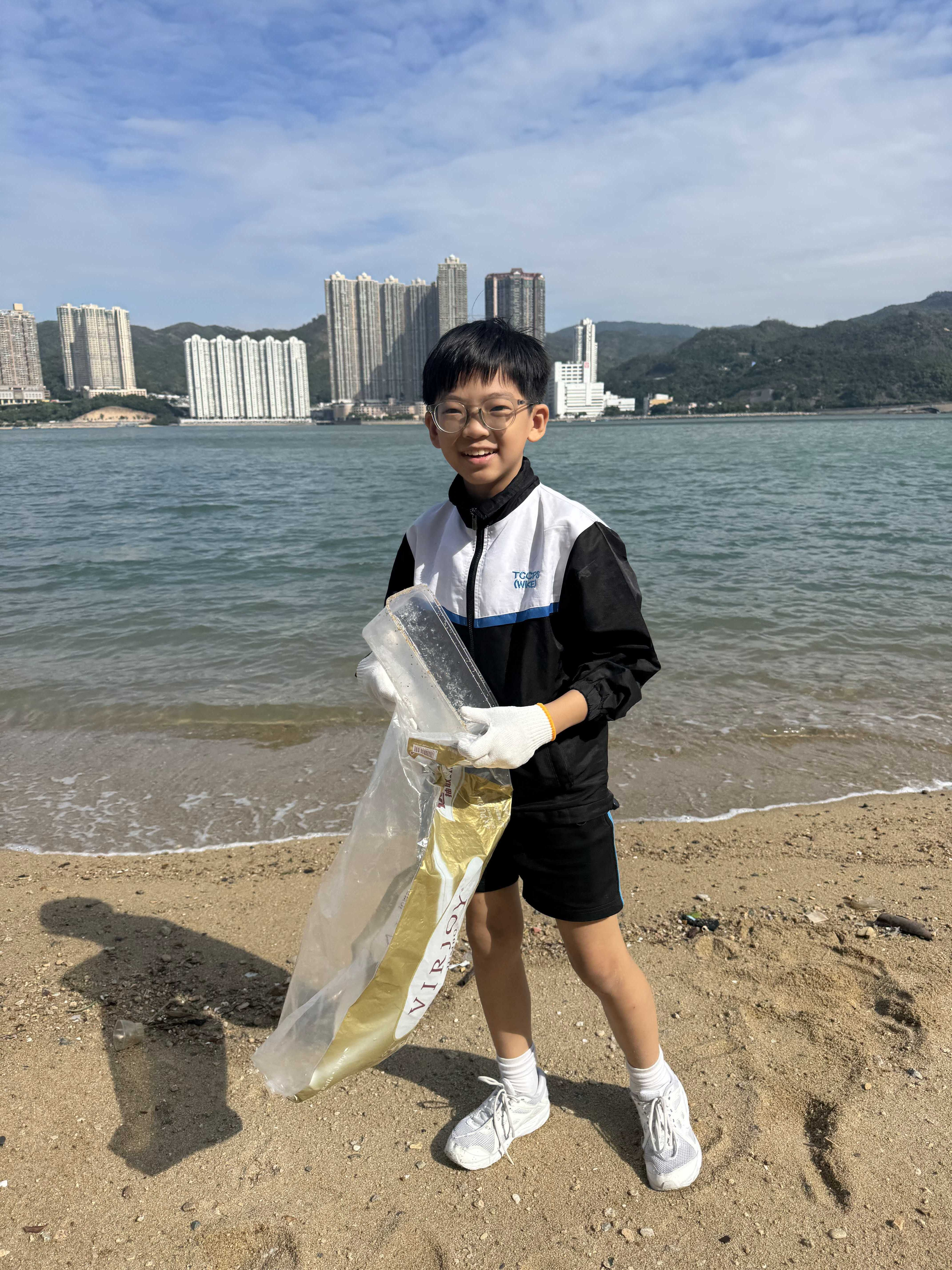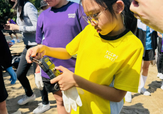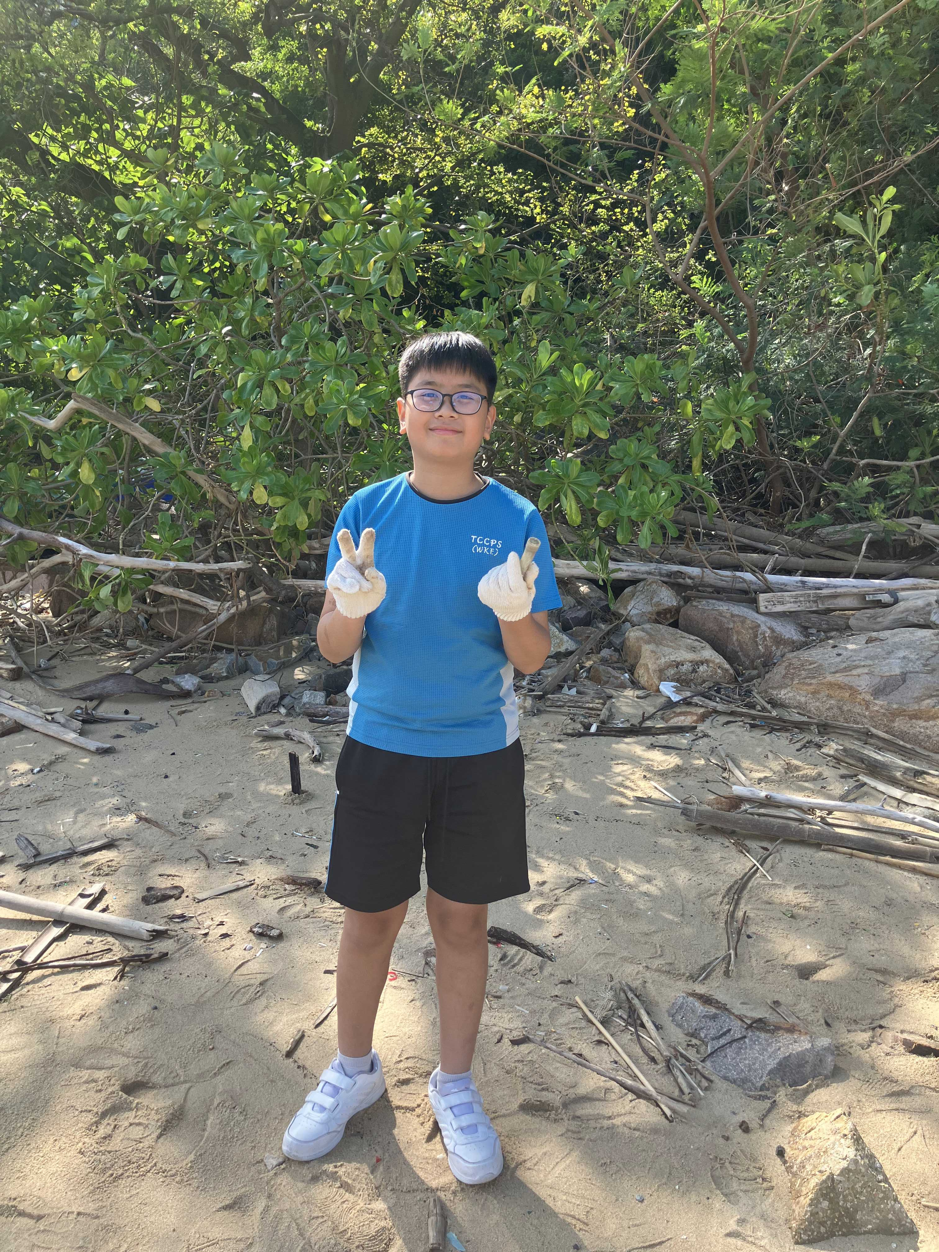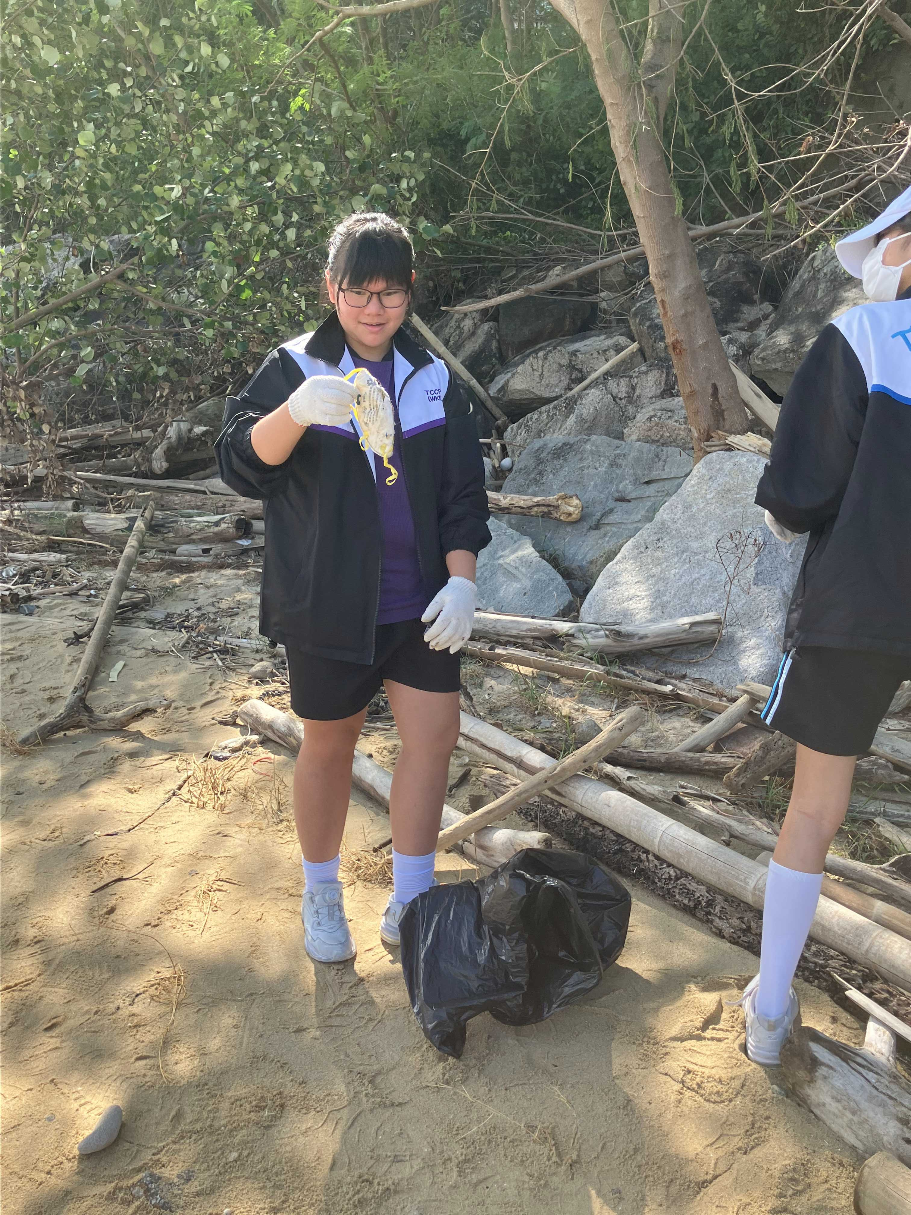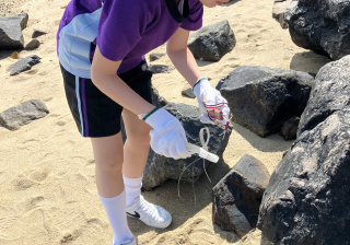 5-6年級同學身體力行,前往沙灘清潔垃圾,齊齊為保護海岸生態出一分力。